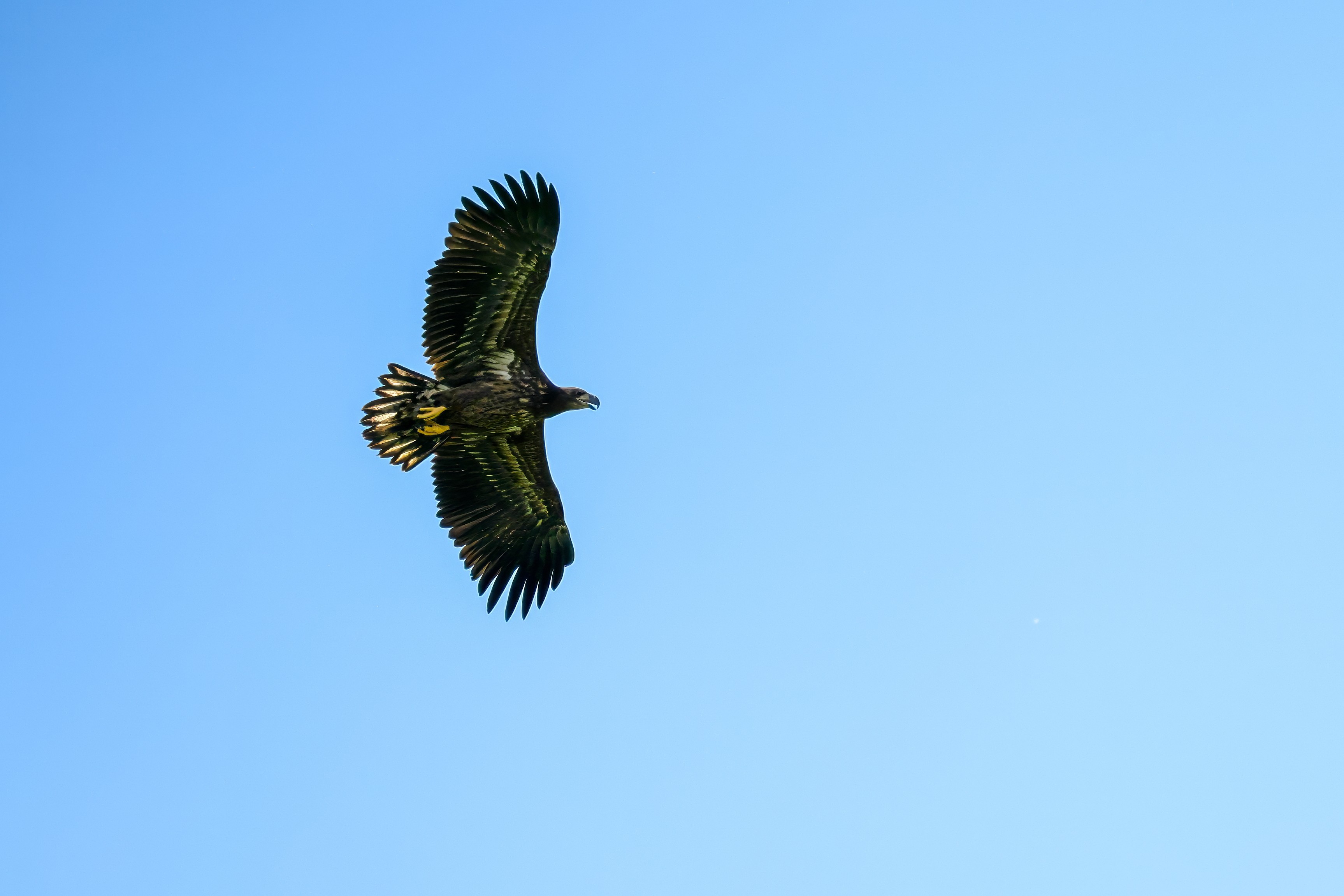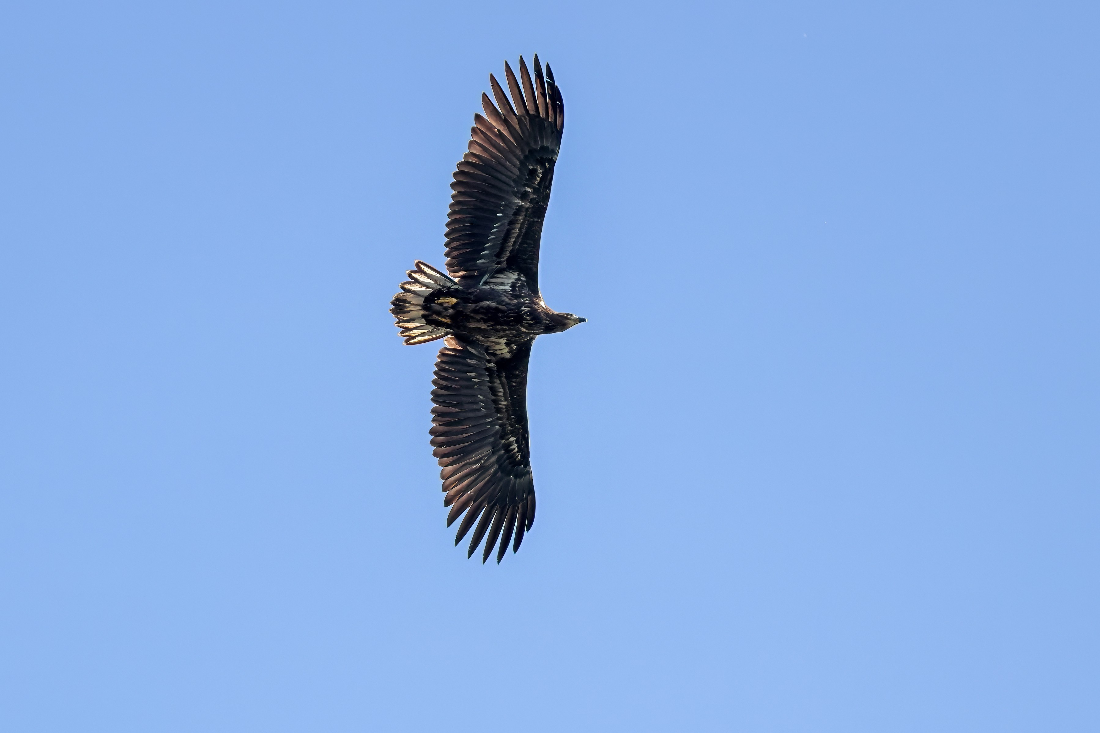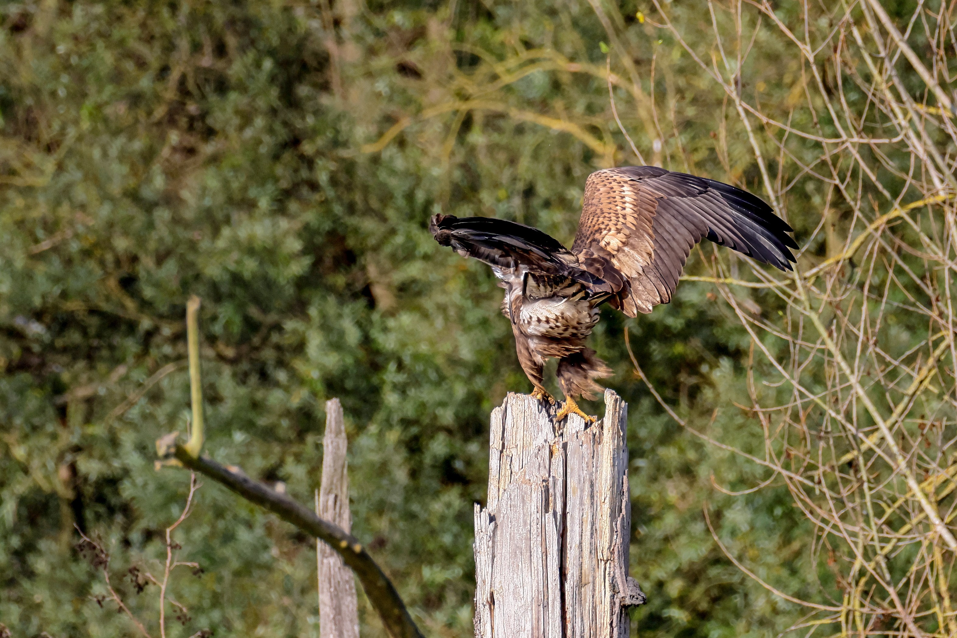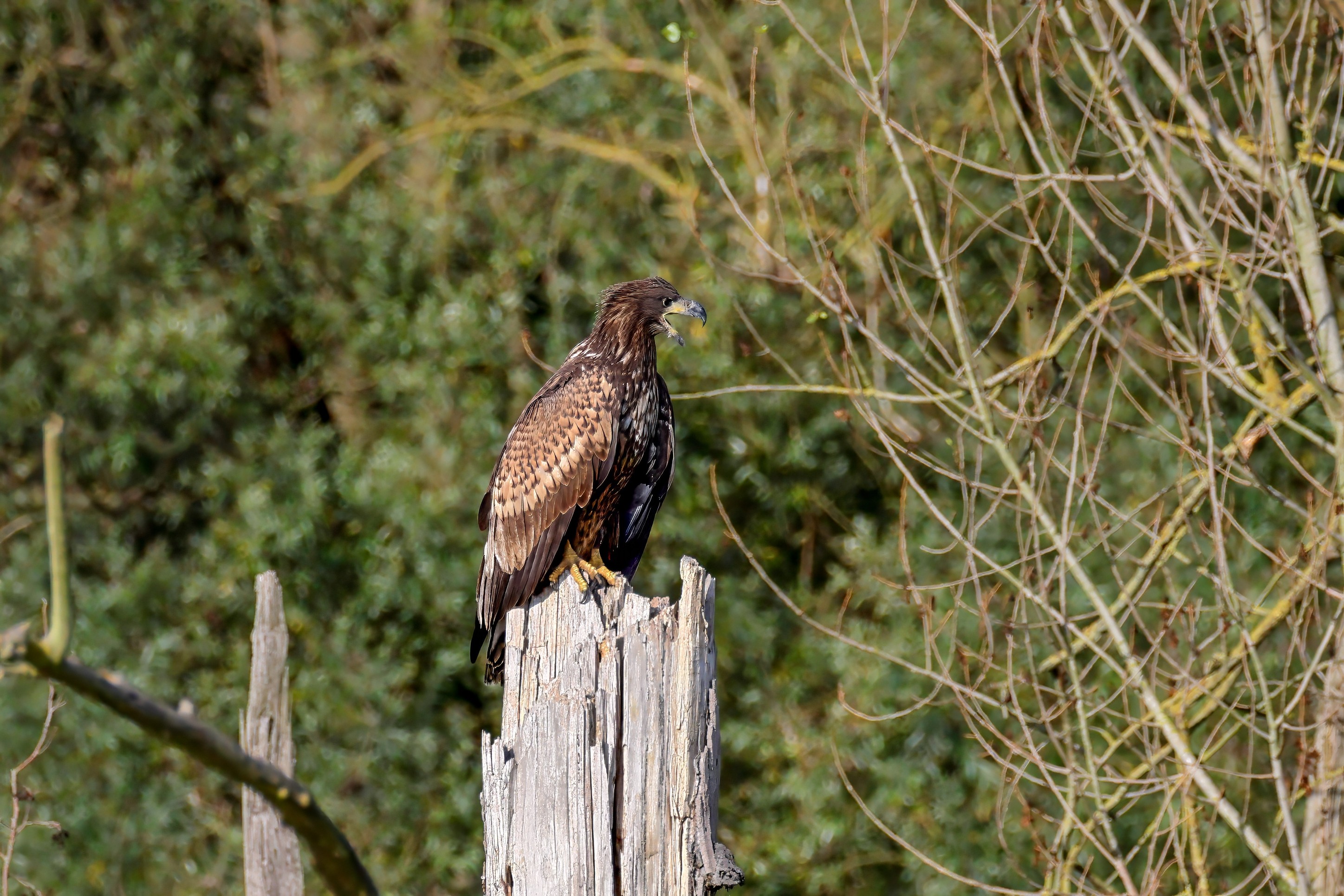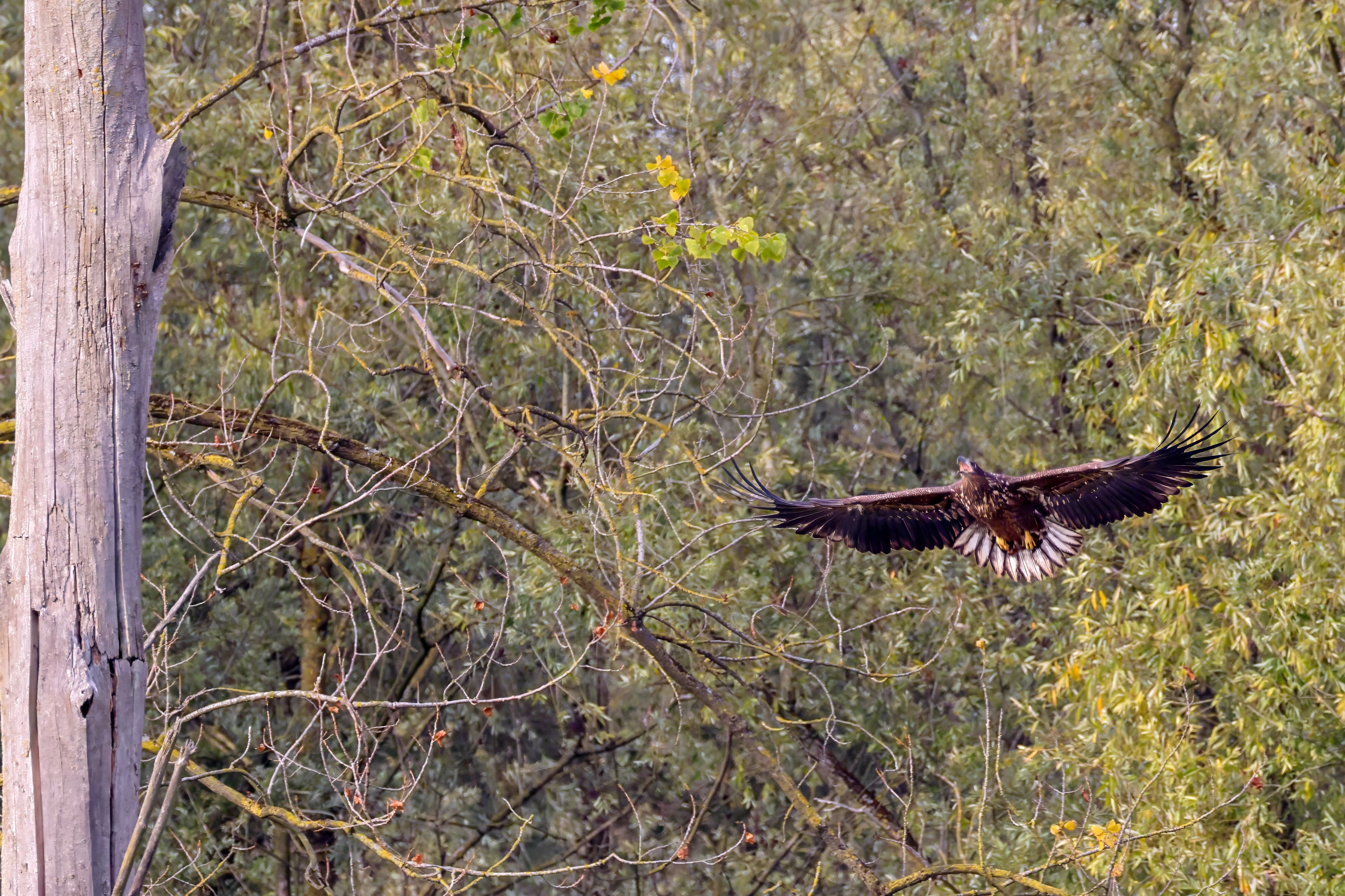 In der warmen Jahreszeit lohnt sich ein genauer Blick auf die Jungseeadler der Bislicher Insel. Sie haben sich prächtig entwickelt und zeigen inzwischen beeindruckende Flugkünste.