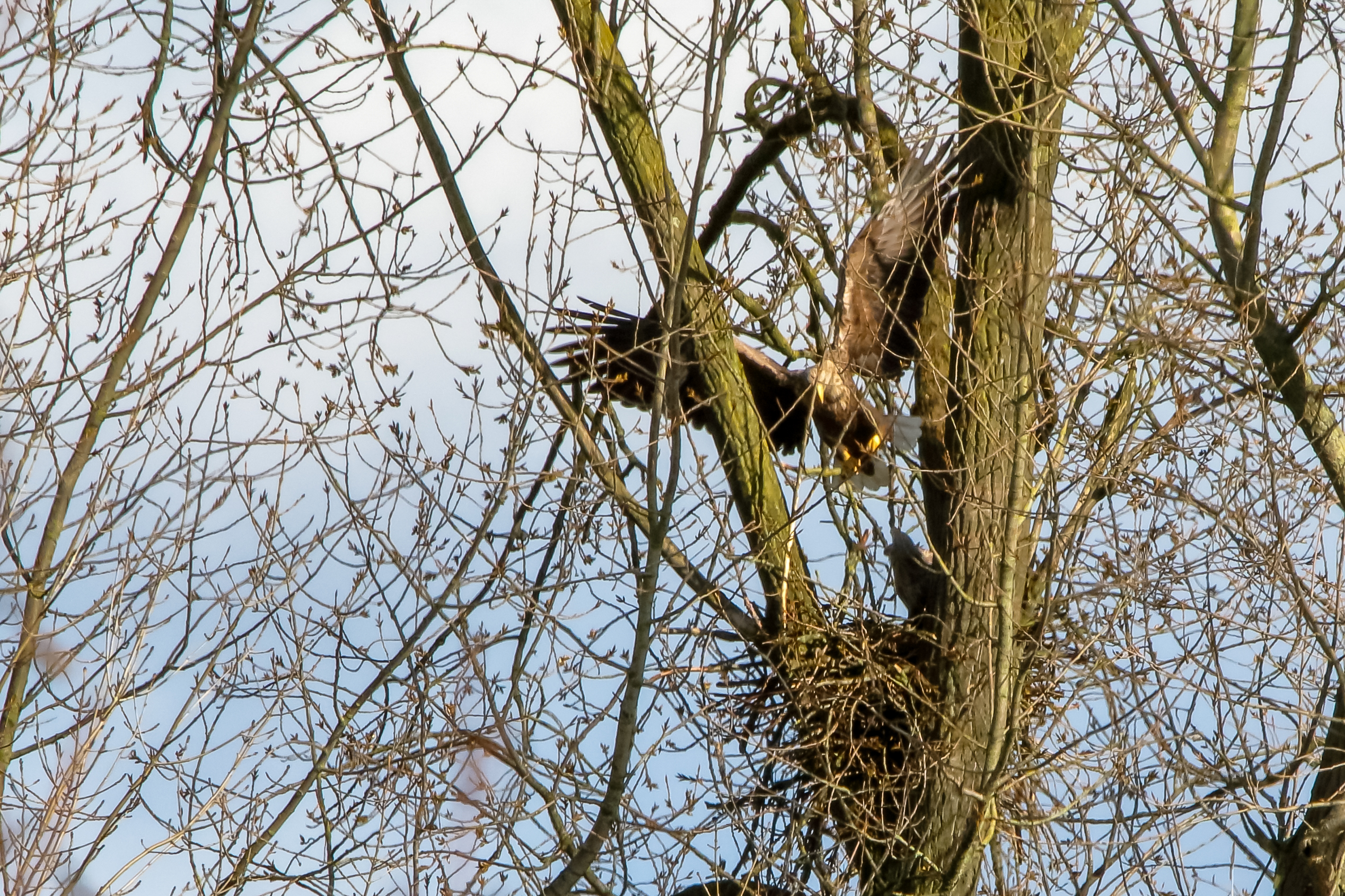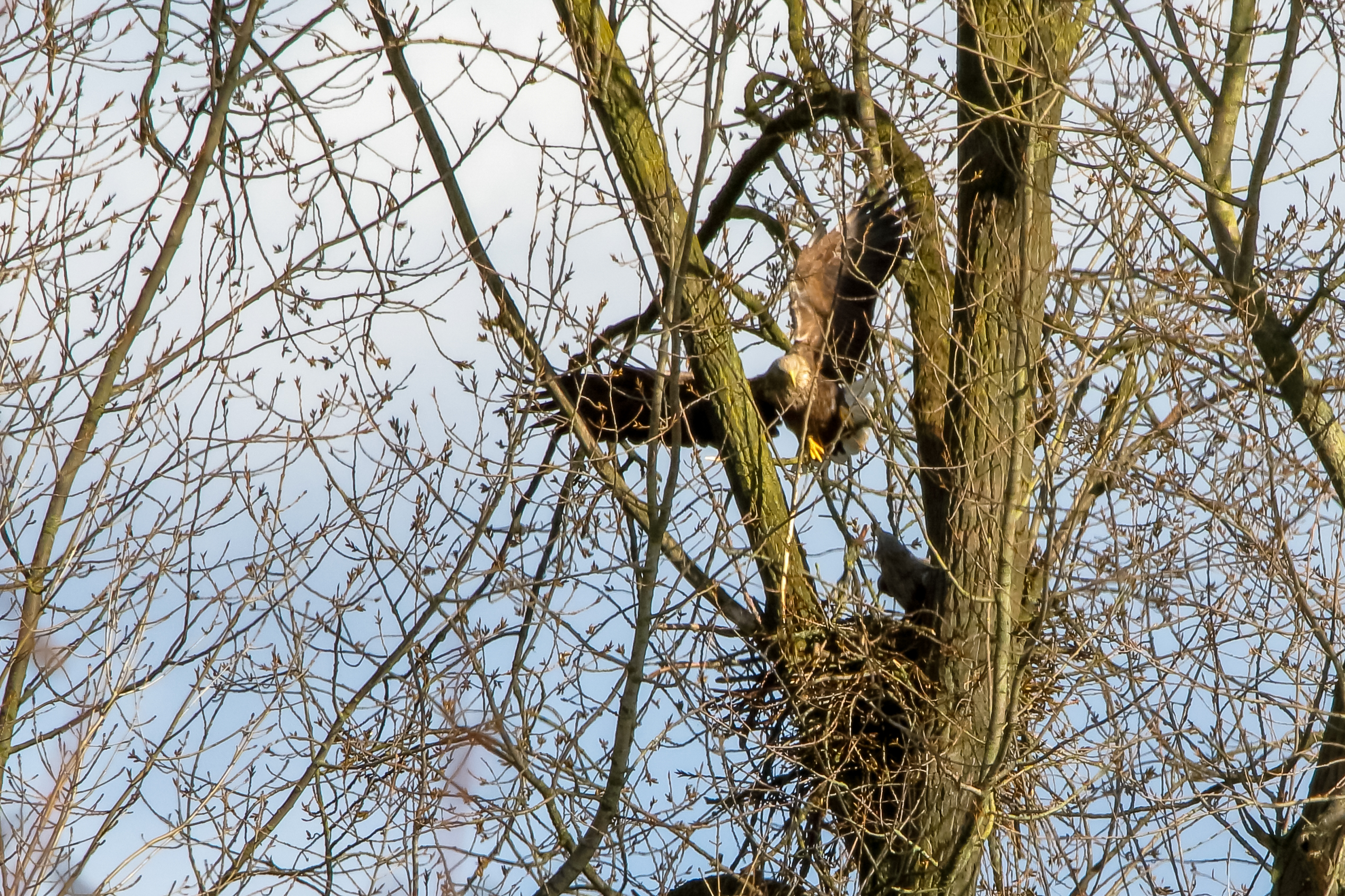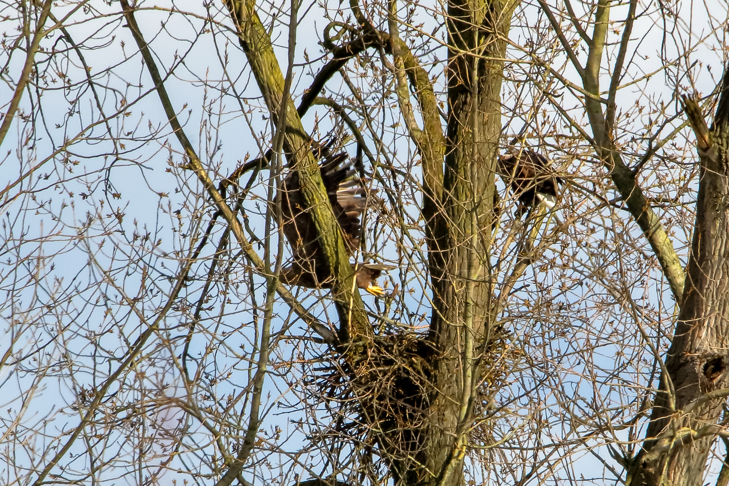 Im Jahr 2020 durften wir uns nicht auf eine weitere erfolgreiche Brut unserer auf der Bislicher Insel angesiedelten Seeadler erfreuen. Ausläufer des Sturmtiefs "Victoria" sind in der Nacht auf Montag (17.02.2020) teils mit heftigen Sturmböen durch NRW gefegt. Bäume, die auf Häuser, Autos, Straßen und Bahngleise fielen, führten vielerorts zu Feuerwehreinsätzen und Sperrungen. Auch die Bislicher Insel war betroffen und verlor den wichtigsten Baum des Pappelbestandes, den Horstbaum der Seeadler.