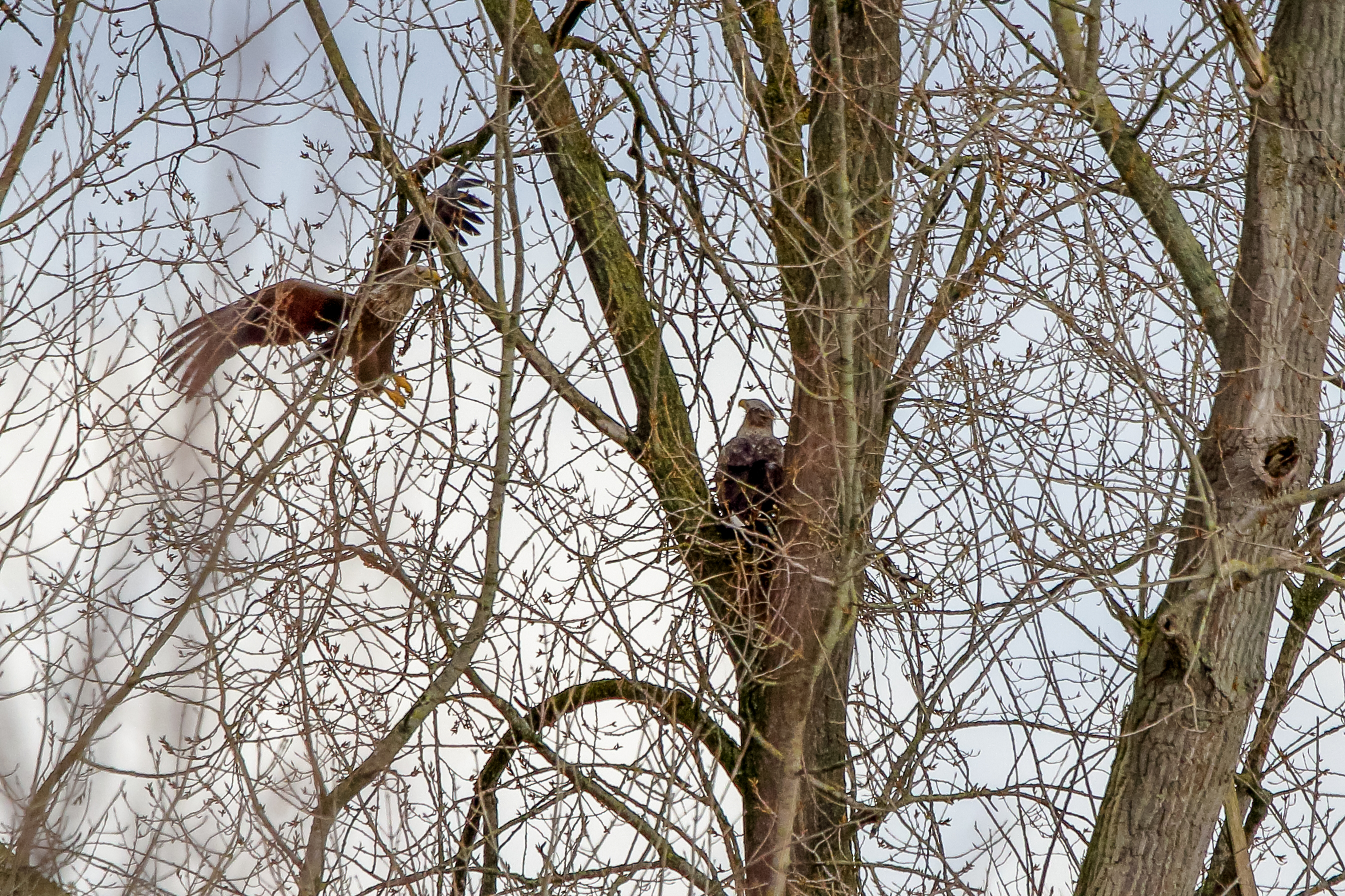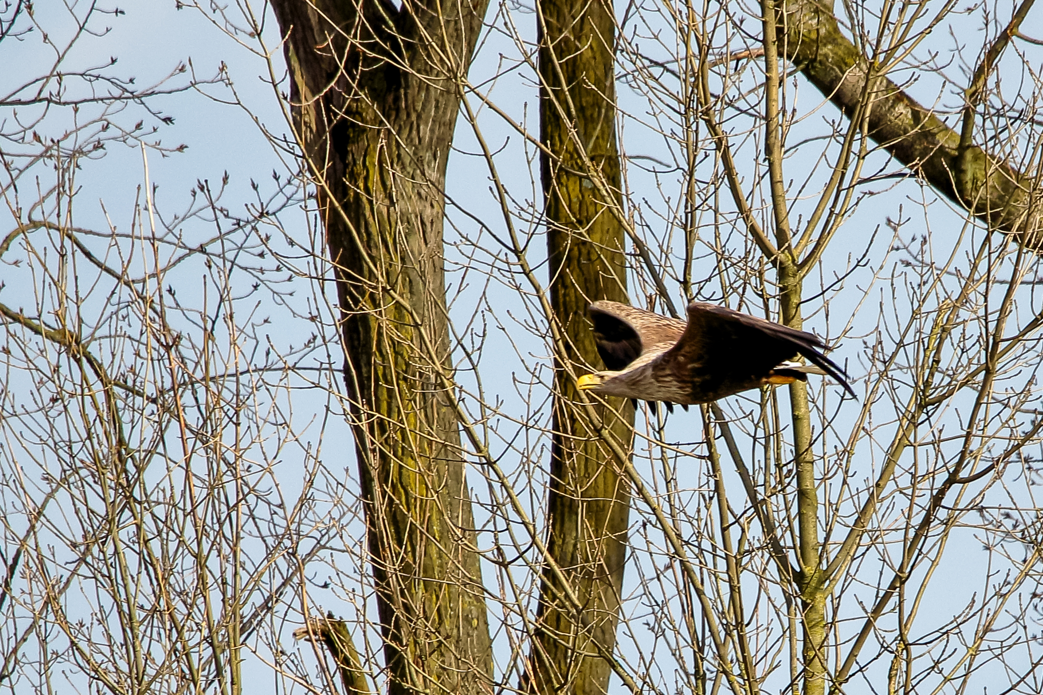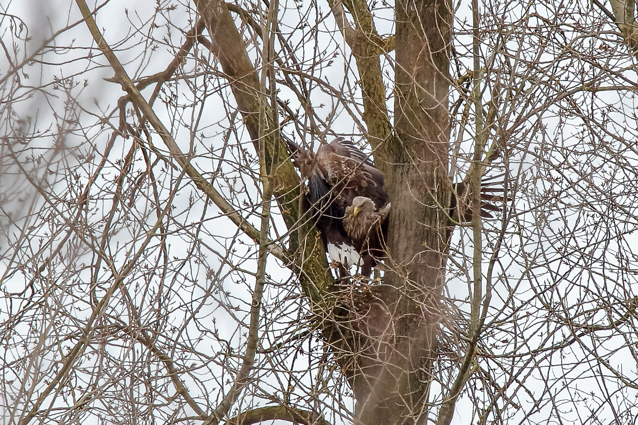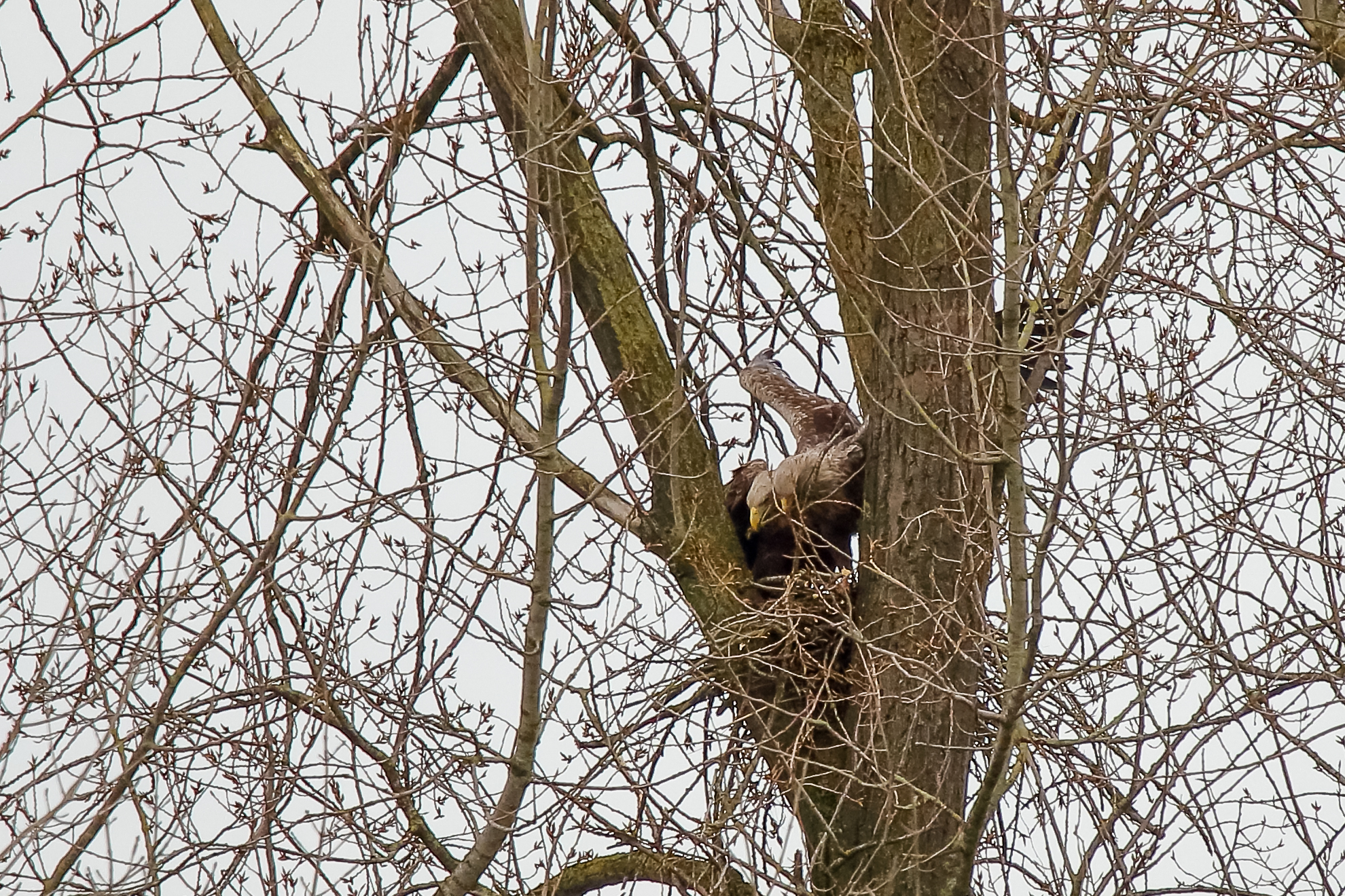 Im Jahr 2020 durften wir uns nicht auf eine weitere erfolgreiche Brut unserer auf der Bislicher Insel angesiedelten Seeadler erfreuen. Ausläufer des Sturmtiefs "Victoria" sind in der Nacht auf Montag (17.02.2020) teils mit heftigen Sturmböen durch NRW gefegt. Bäume, die auf Häuser, Autos, Straßen und Bahngleise fielen, führten vielerorts zu Feuerwehreinsätzen und Sperrungen. Auch die Bislicher Insel war betroffen und verlor den wichtigsten Baum des Pappelbestandes, den Horstbaum der Seeadler.
