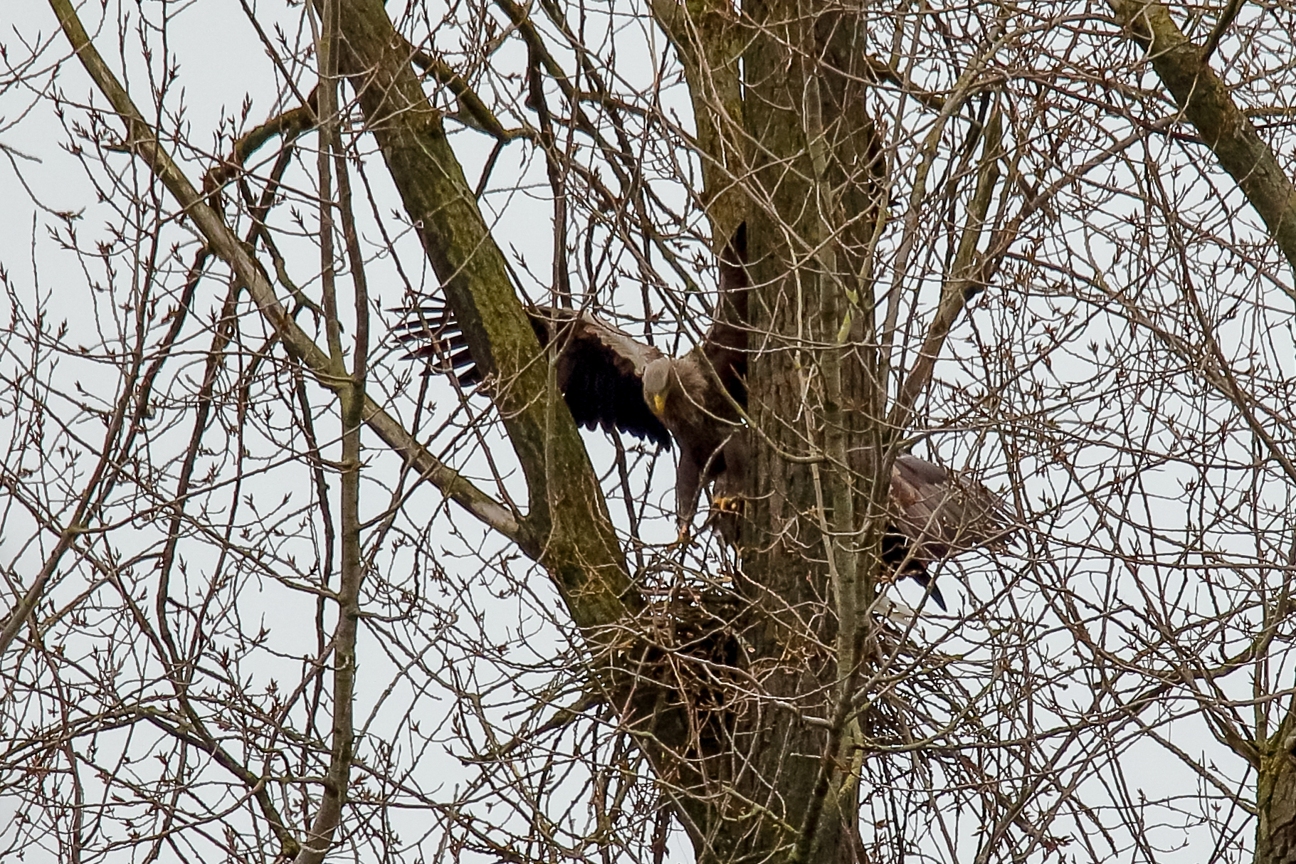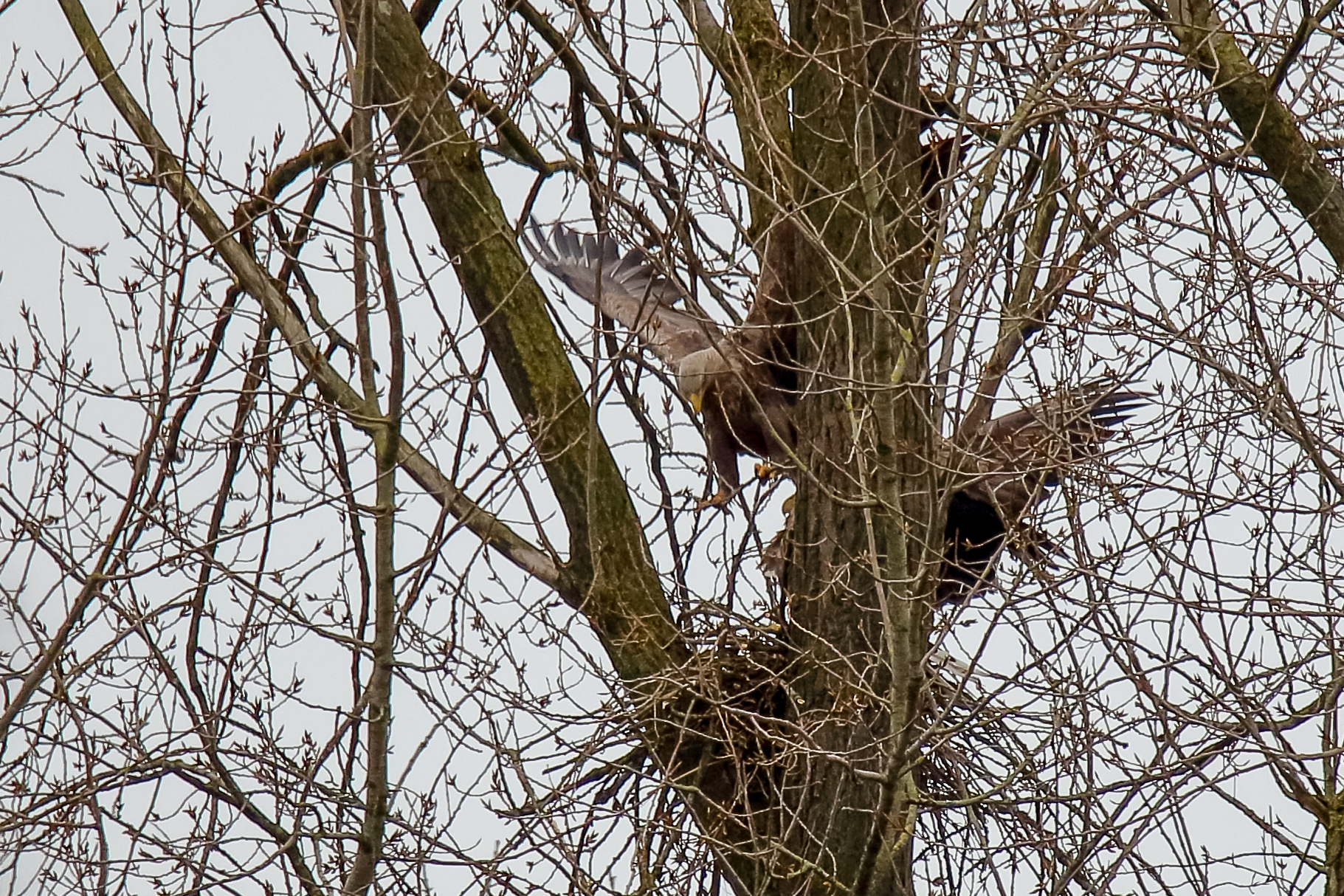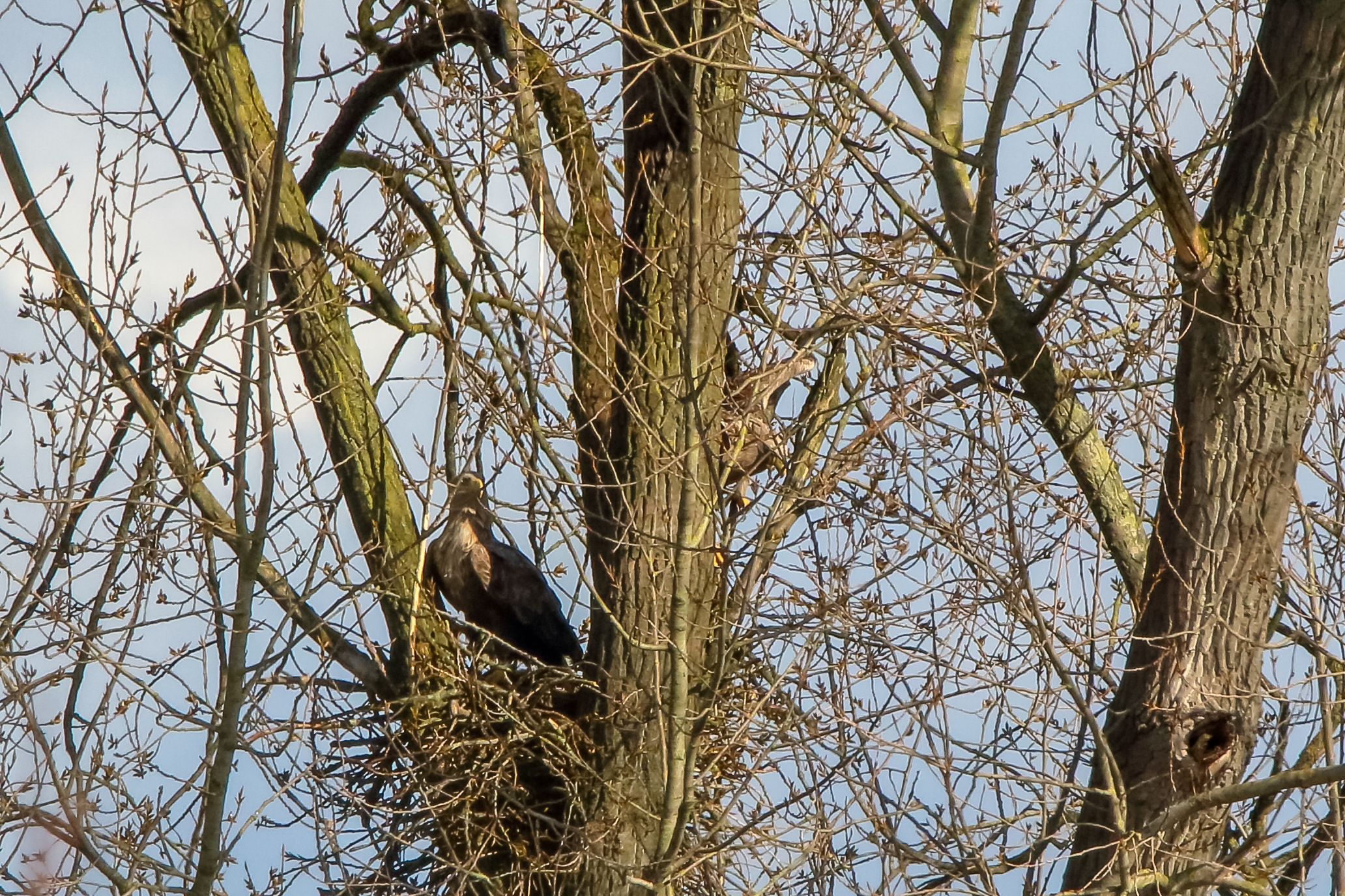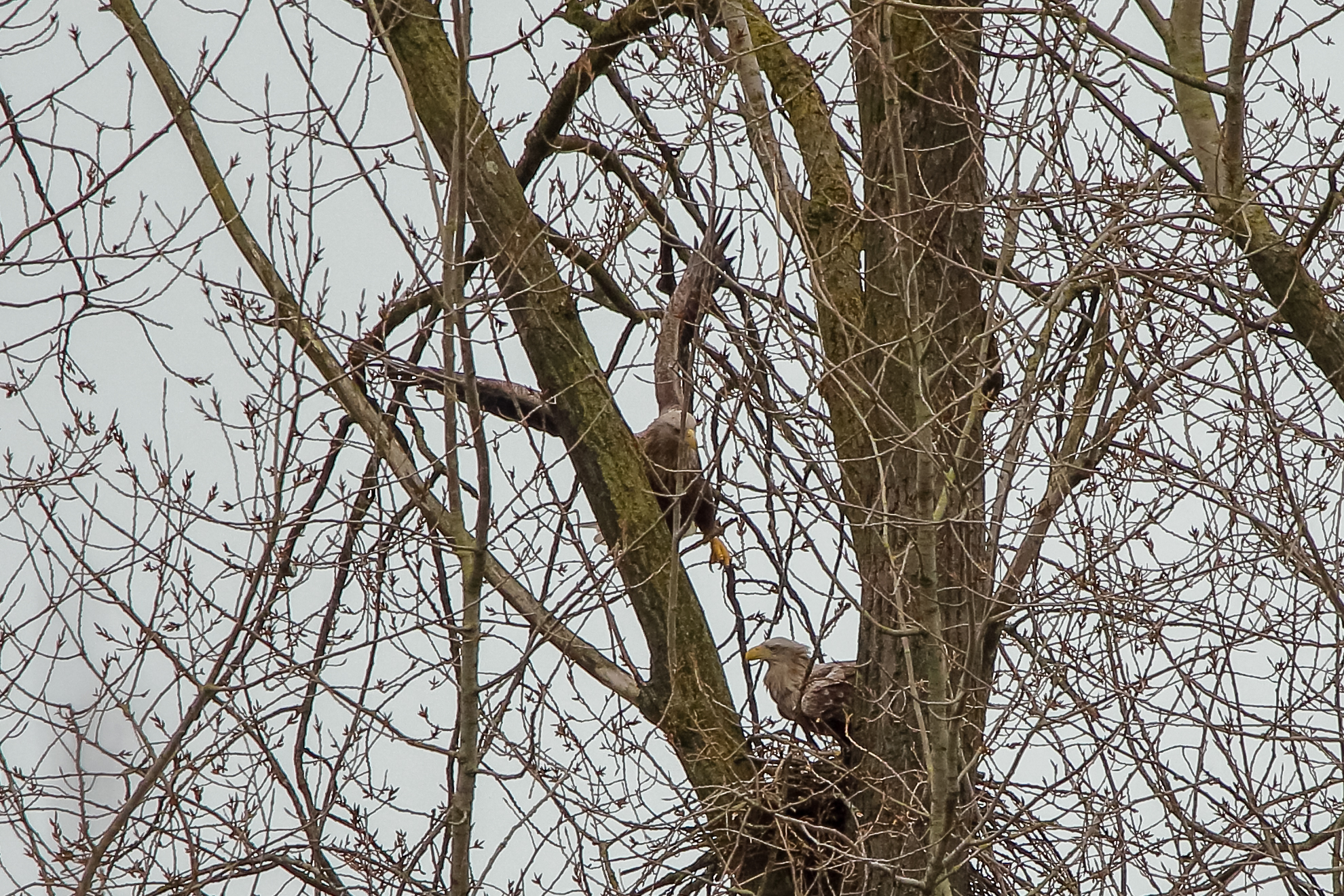 Nach dem der Verlust verarbeitet war, legten die disziplinierten Baumeister einen neuen Horst in den Pappeln nahe des Deichbereiches am Altrhein an. Nach Fertigstellung des neuen Horstes, nach der geleisteten Anstrengung und kurz vor der Eiablage, wurden sie durch einen Hundebesitzer am Wasserrand zur Aufgabe des Horstes veranlasst. Der Zweite, im sicheren Kerngebiet erneut gebaute Horst, konnte einer in diesem Jahr erfolgreichen Brut nicht mehr dienen, da die Seeadler trotz allen Bemühungen nicht mehr über die Kraft verfügten und den für die Brut bekannten letzten Zeitraum überschritten hatten.