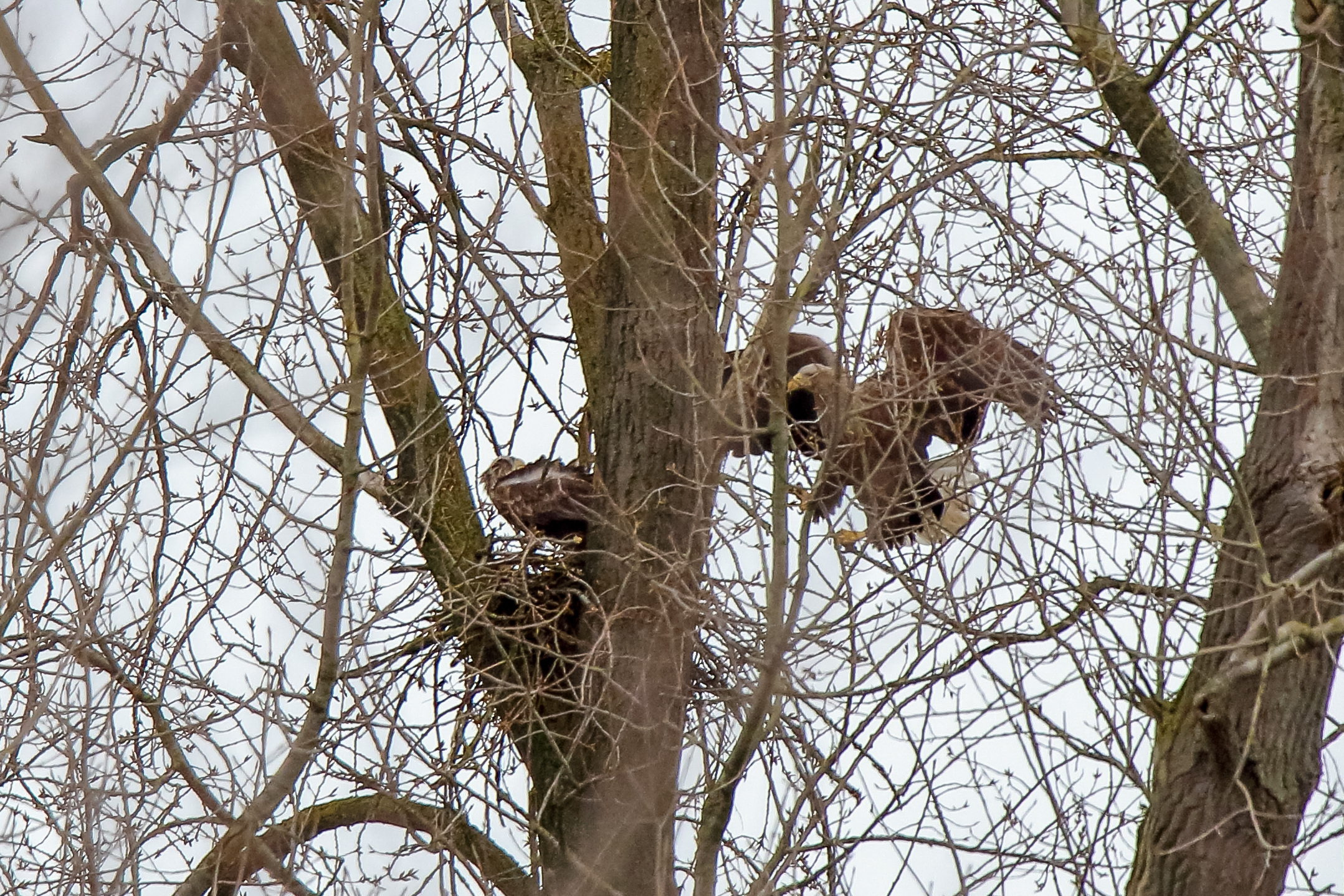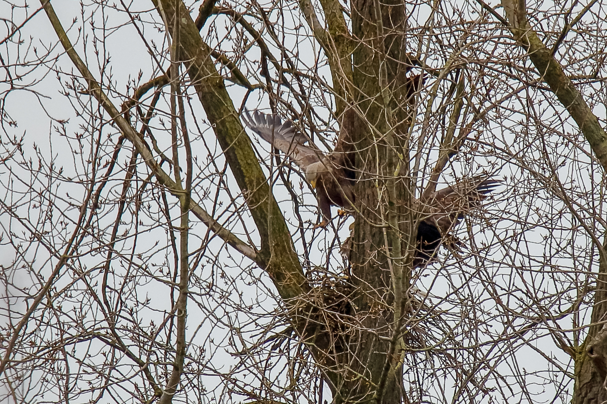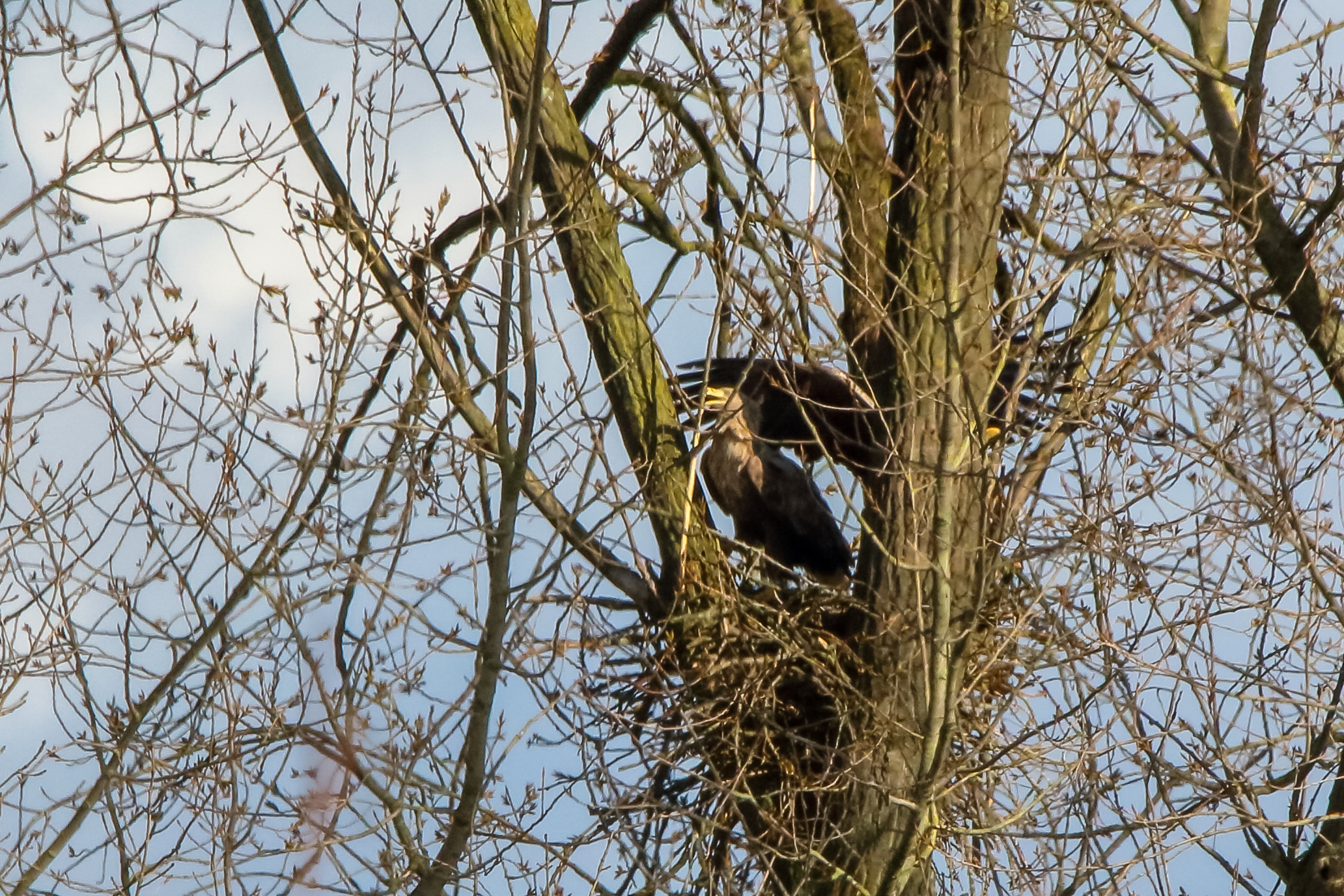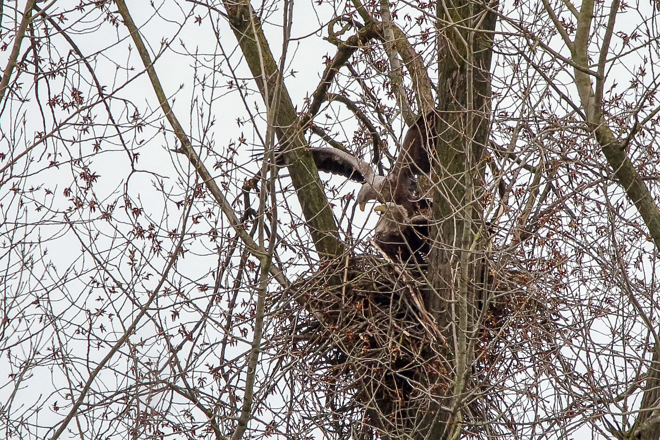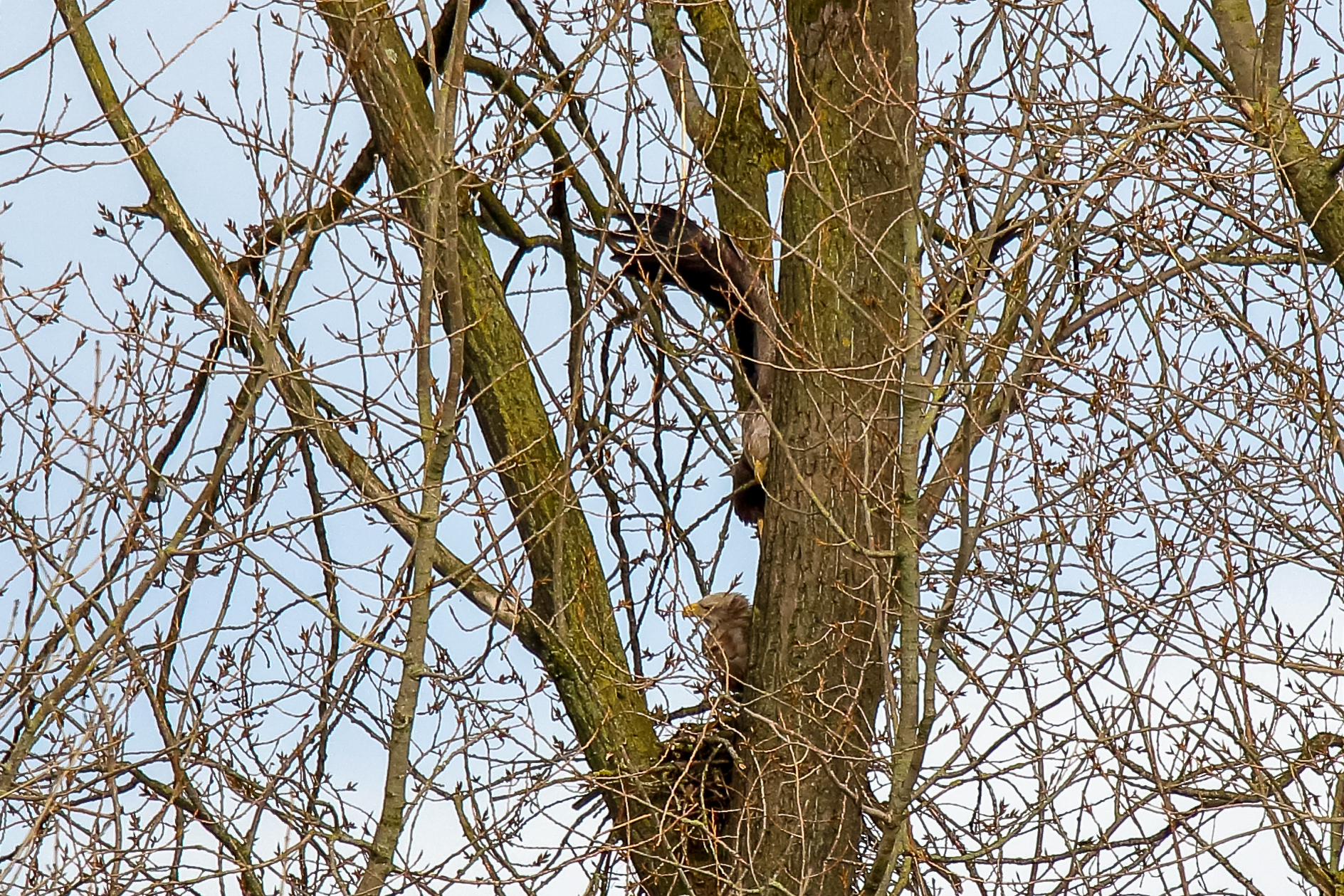Nach dem der Verlust verarbeitet war, legten die disziplinierten Baumeister einen neuen Horst in den Pappeln nahe des Deichbereiches am Altrhein an. Nach Fertigstellung des neuen Horstes, nach der geleisteten Anstrengung und kurz vor der Eiablage, wurden sie durch einen Hundebesitzer am Wasserrand zur Aufgabe des Horstes veranlasst. Der Zweite, im sicheren Kerngebiet erneut gebaute Horst, konnte einer in diesem Jahr erfolgreichen Brut nicht mehr dienen, da die Seeadler trotz allen Bemühungen nicht mehr über die Kraft verfügten und den für die Brut bekannten letzten Zeitraum überschritten hatten.