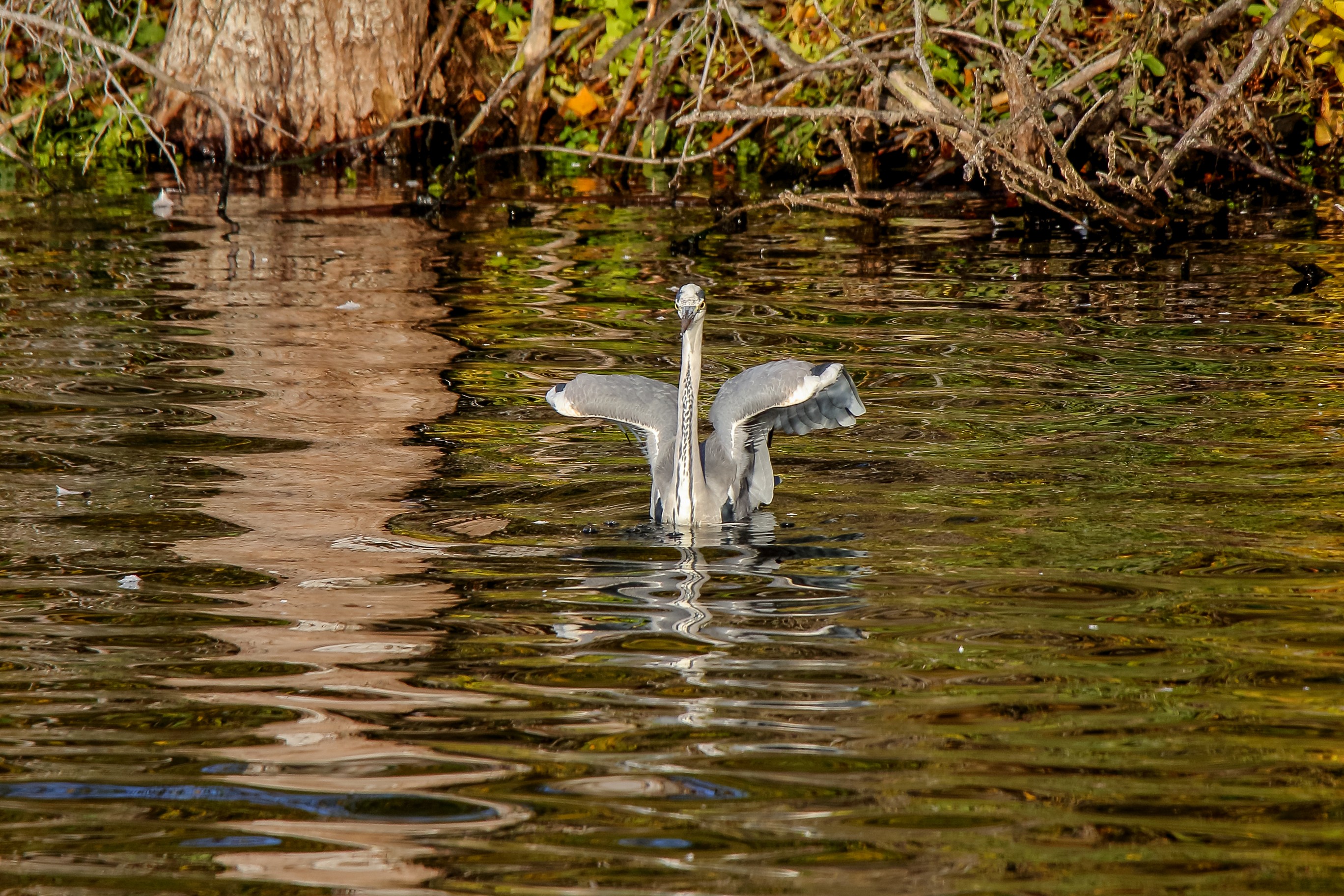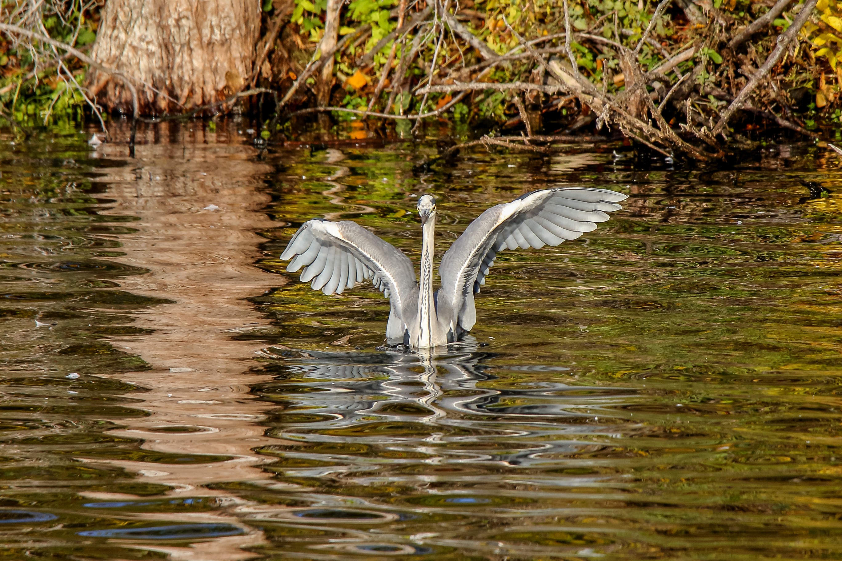 Dem Reiher setzt die Hitze zu