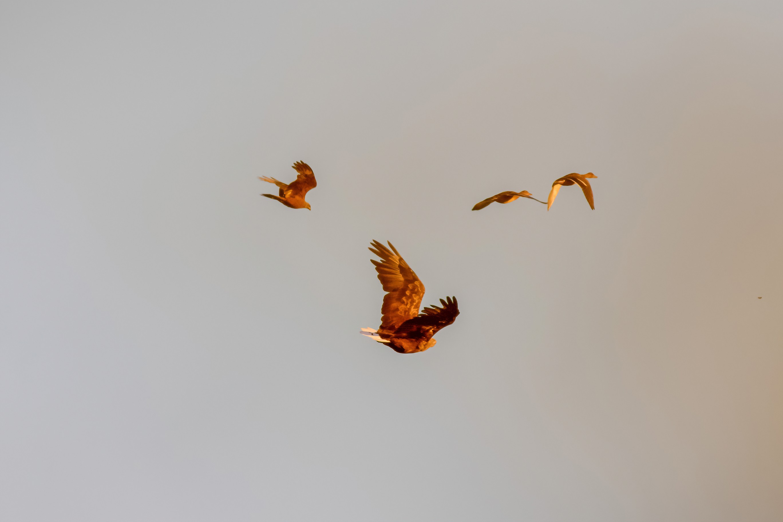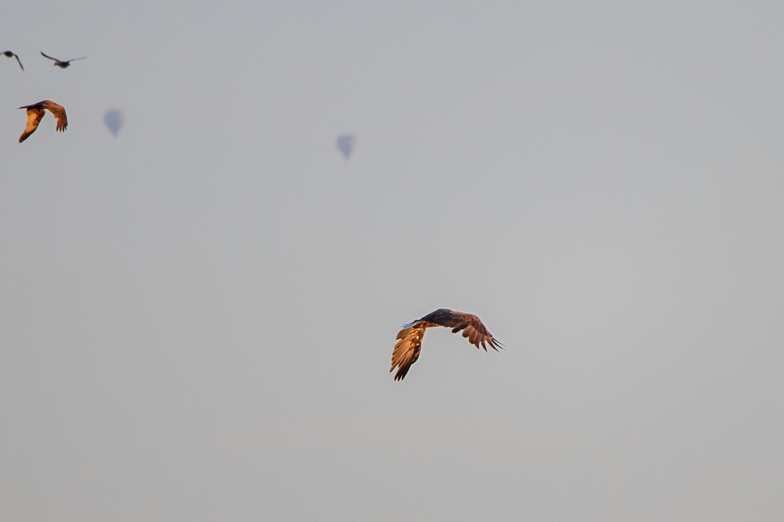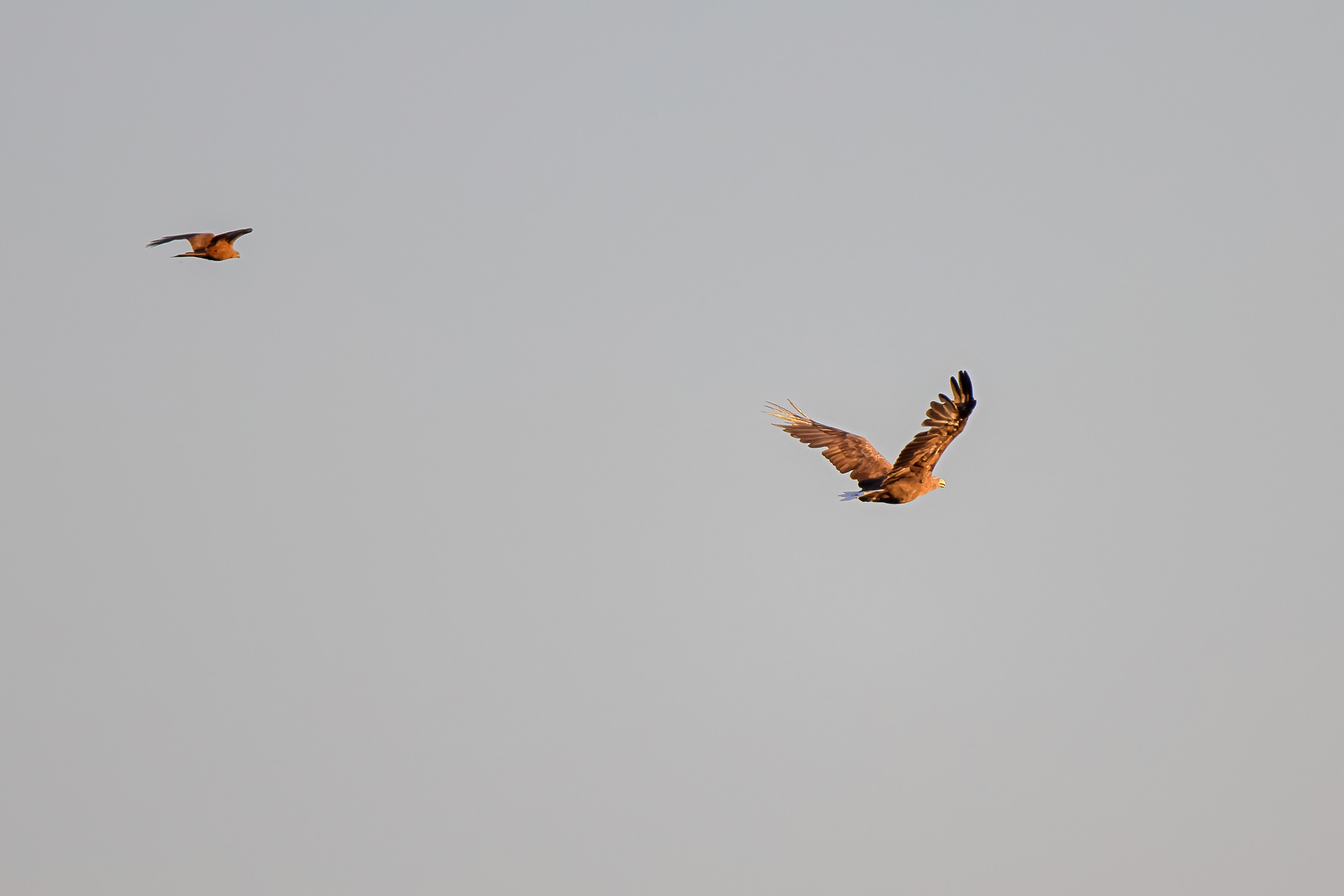 Rohrweihe und junger Rotmilan