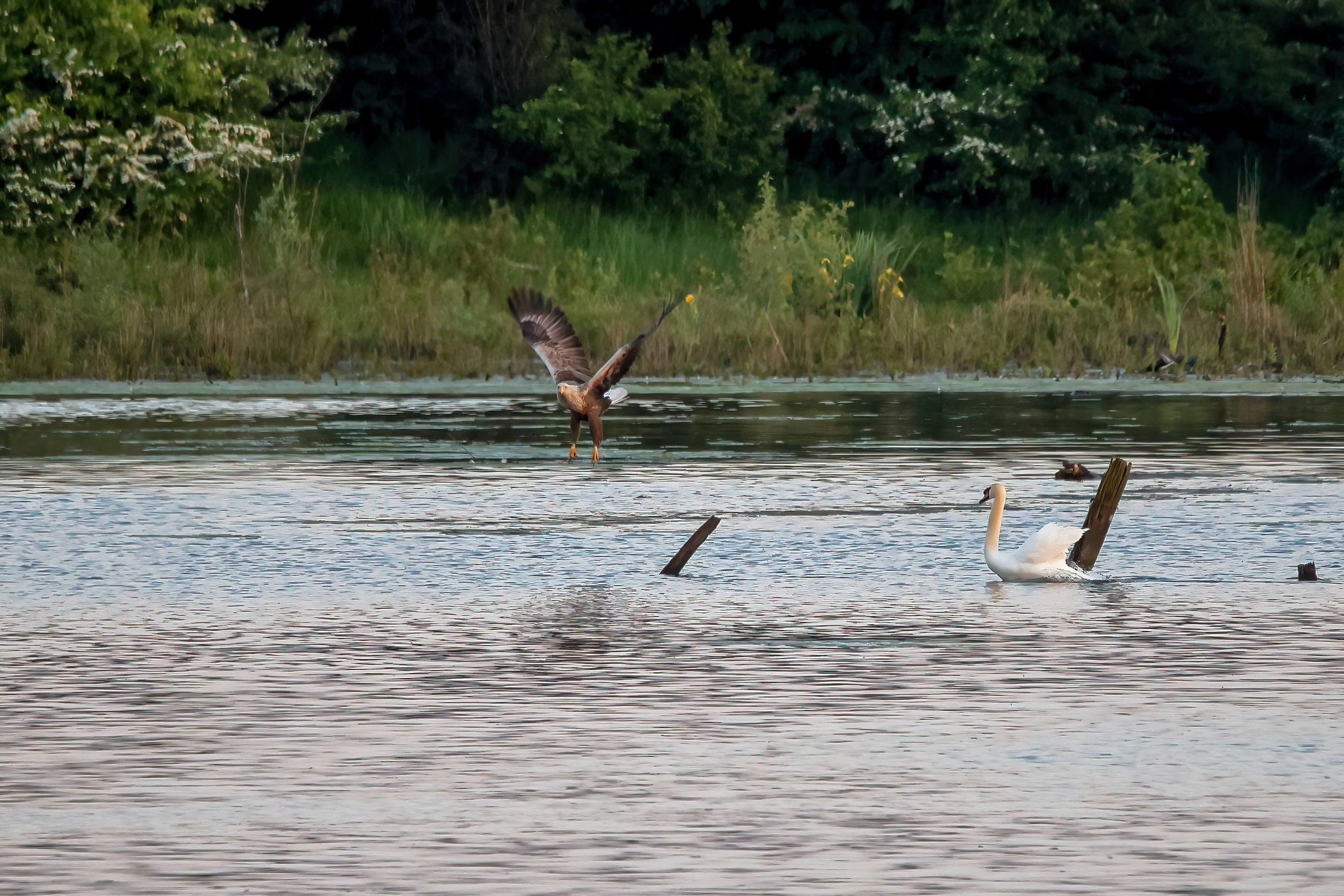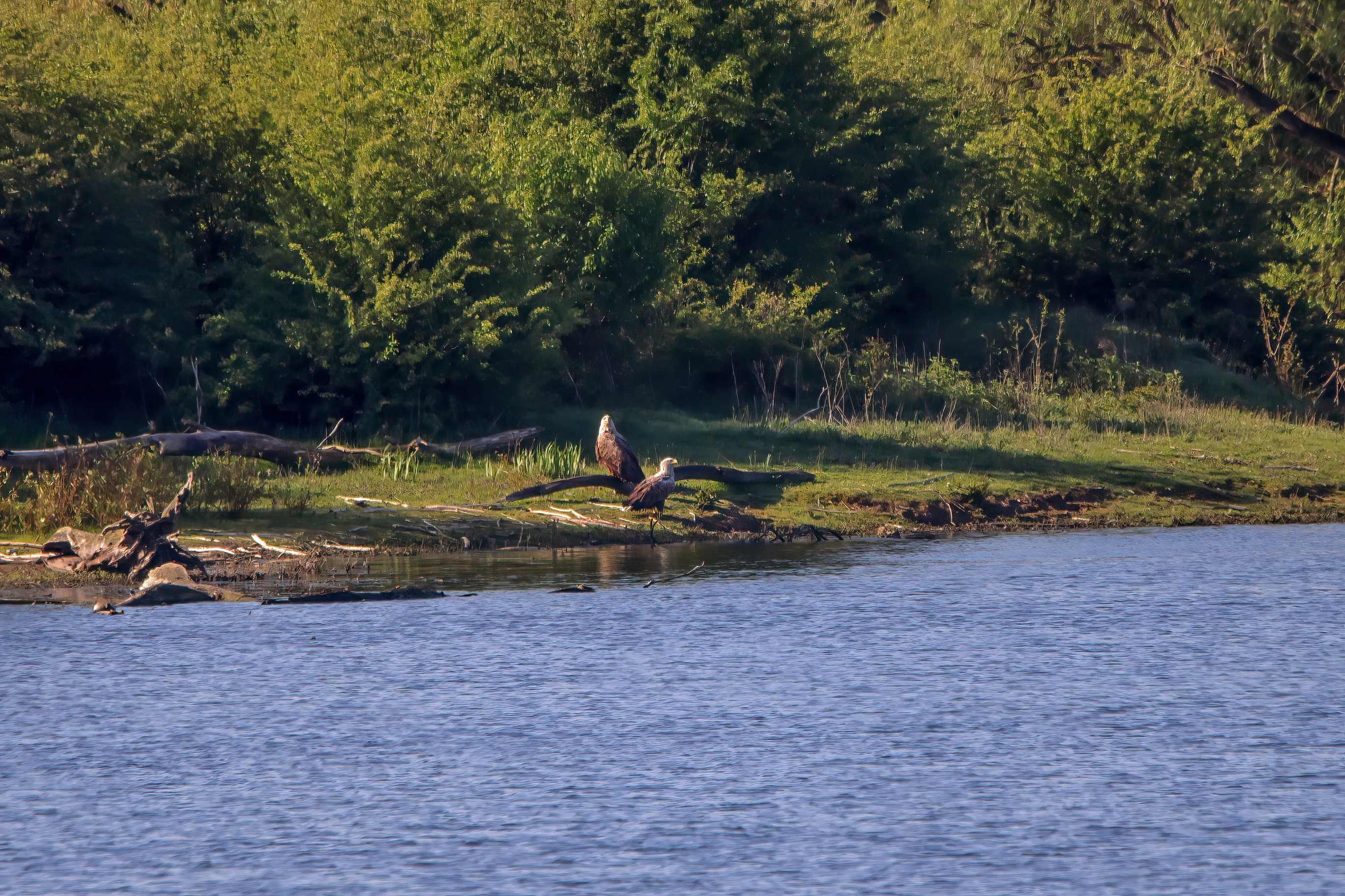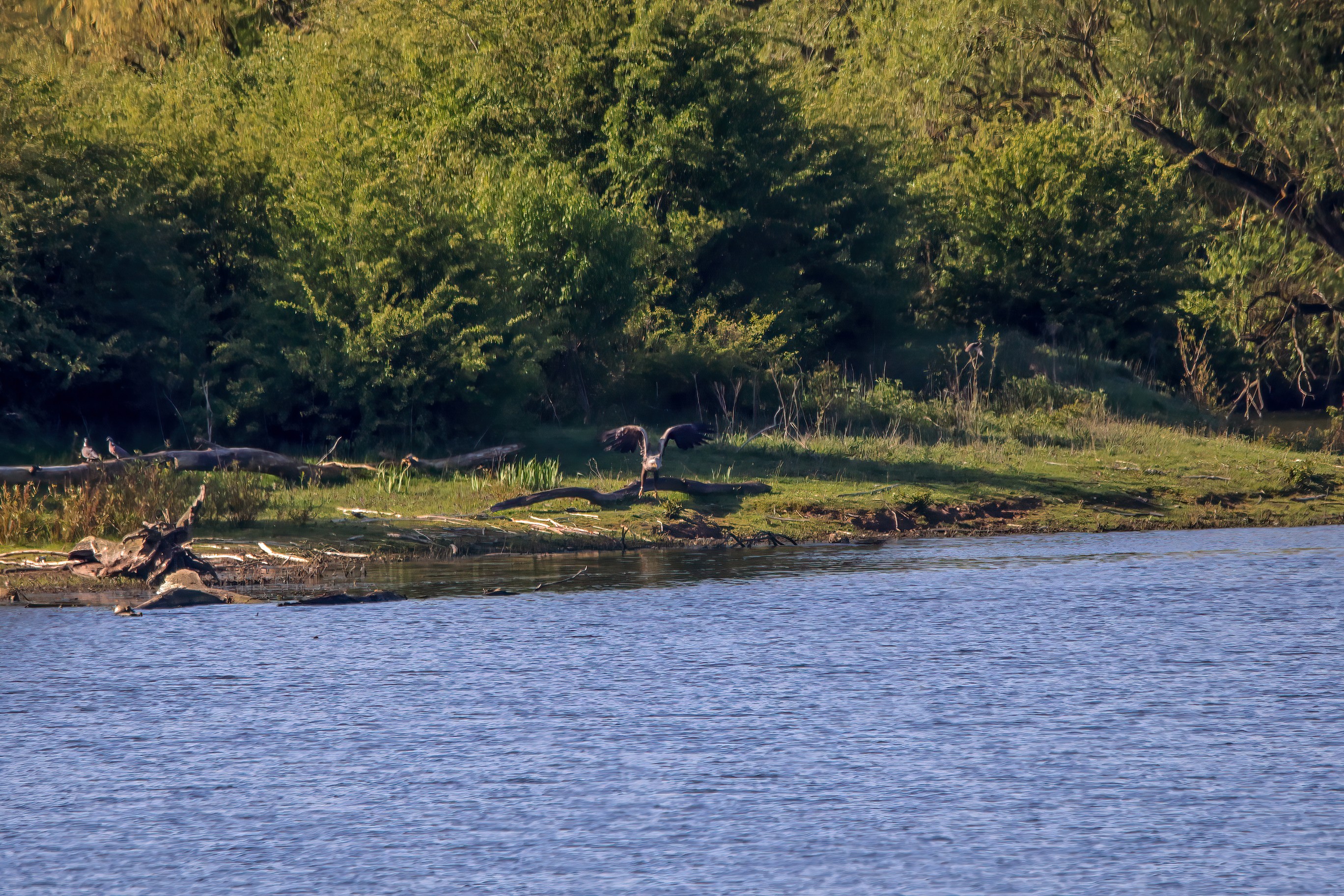 Einerseits bereitet es uns Freude die Jungseeadler voraussichtlich Anfang der vierten Juniwoche als Ästlinge begrüßen zu können, andererseits hatte das Seeadlerweibchen seit der ersten Juniwoche einen schweren Stand ihren Nachwuchs allein zu versorgen. Seit dieser Zeit konnte unser männlicher Seeadler im Habitat nicht mehr gesichtet werden. Weder in den frühen Morgenstunden bis zur Mittagszeit noch vom Nachmittag bis zum Sonnenuntergang zeigte sich der Habitatsgründer auf der Bislicher Insel. Das Seeadlerweibchen übernahm alleinig das Beutegreifen um die schon weitentwickelten Jungvögel ausreichend zu versorgen.