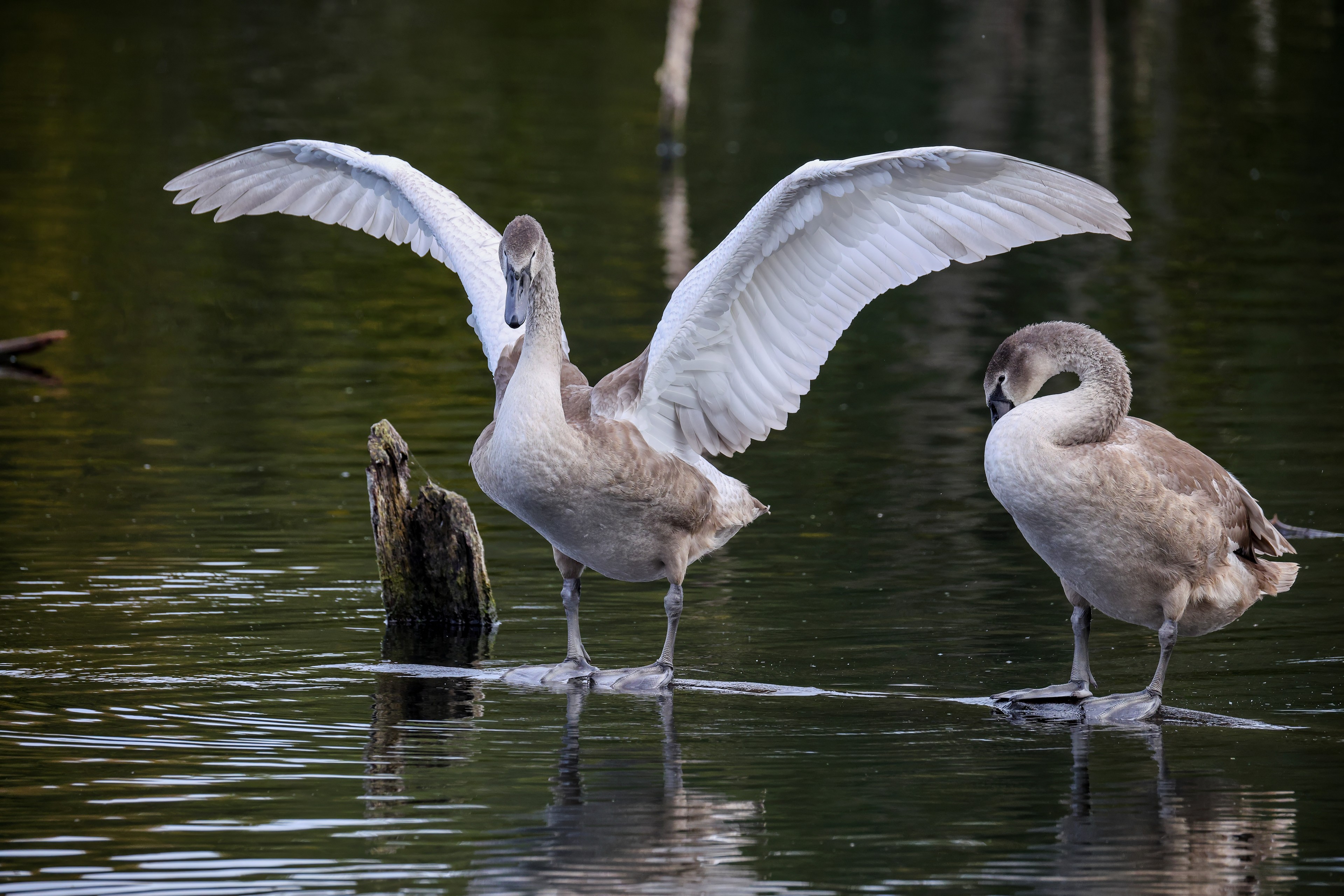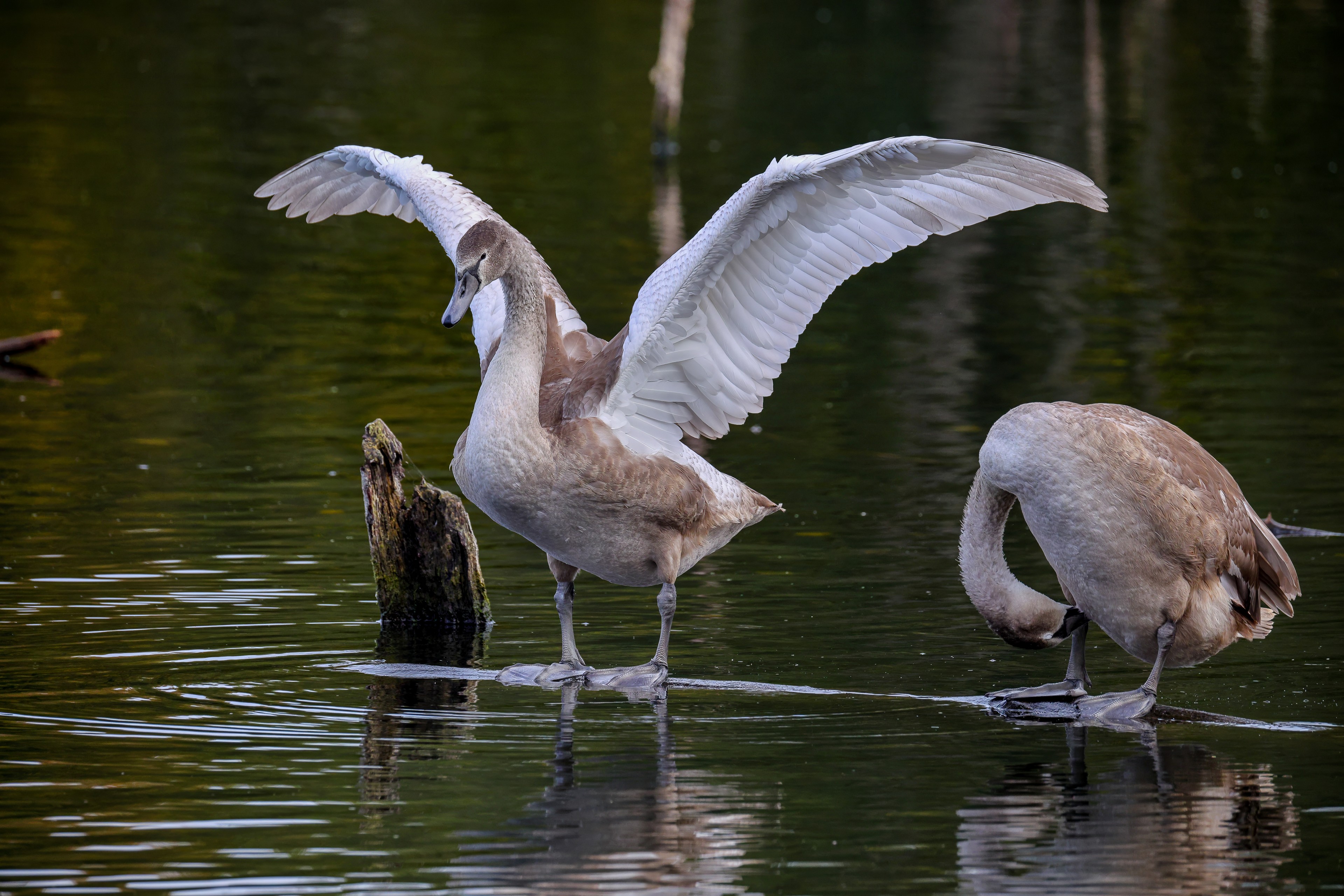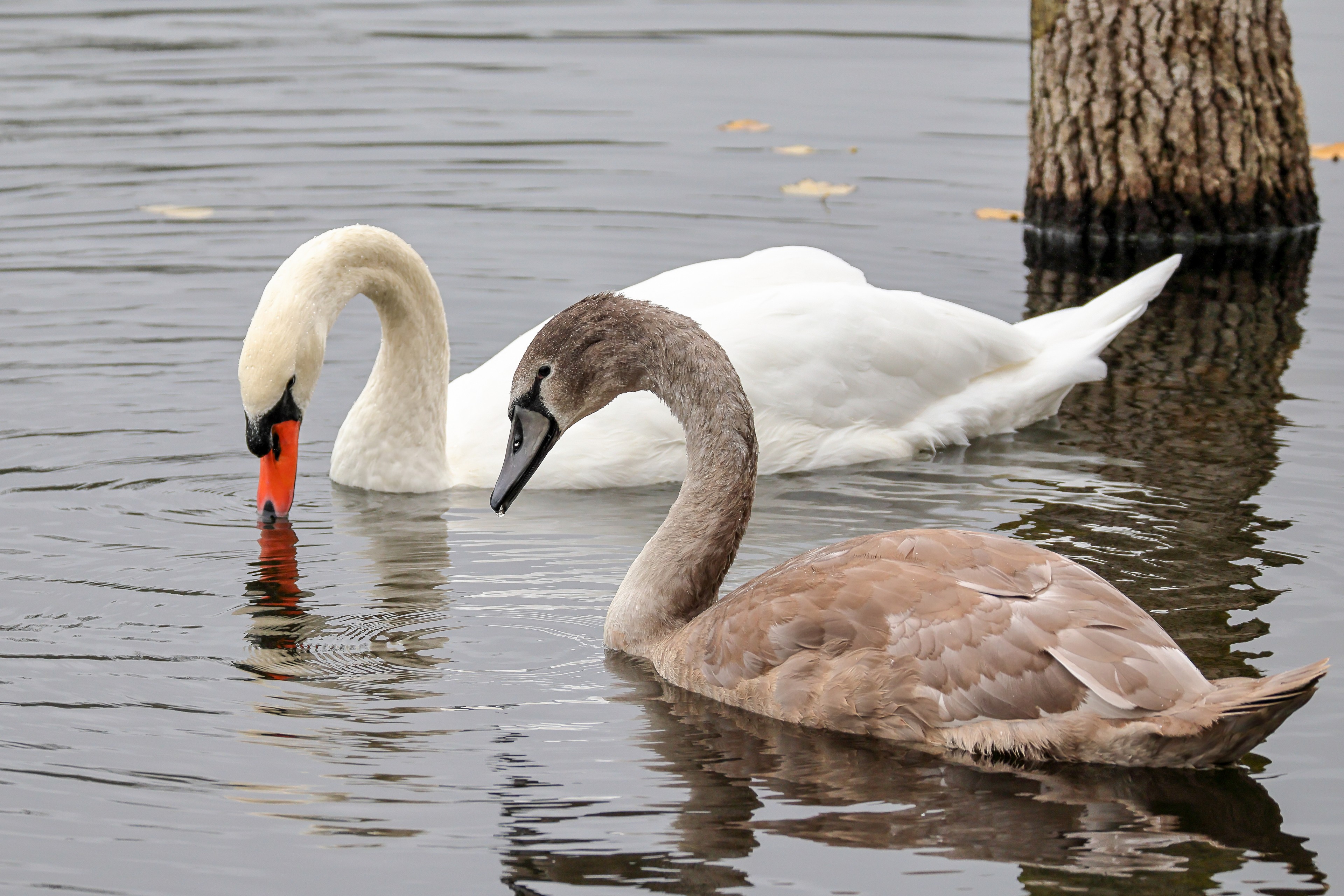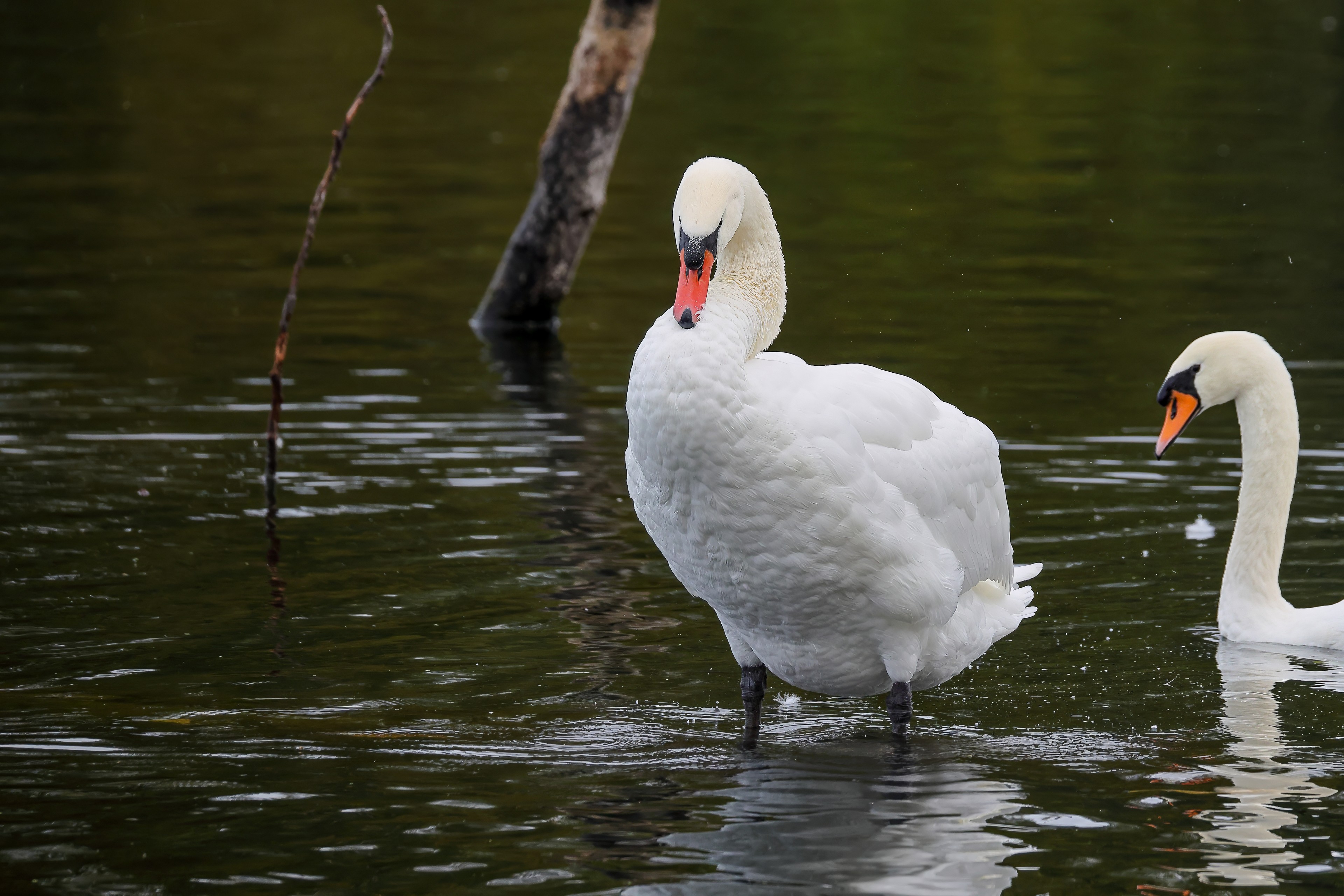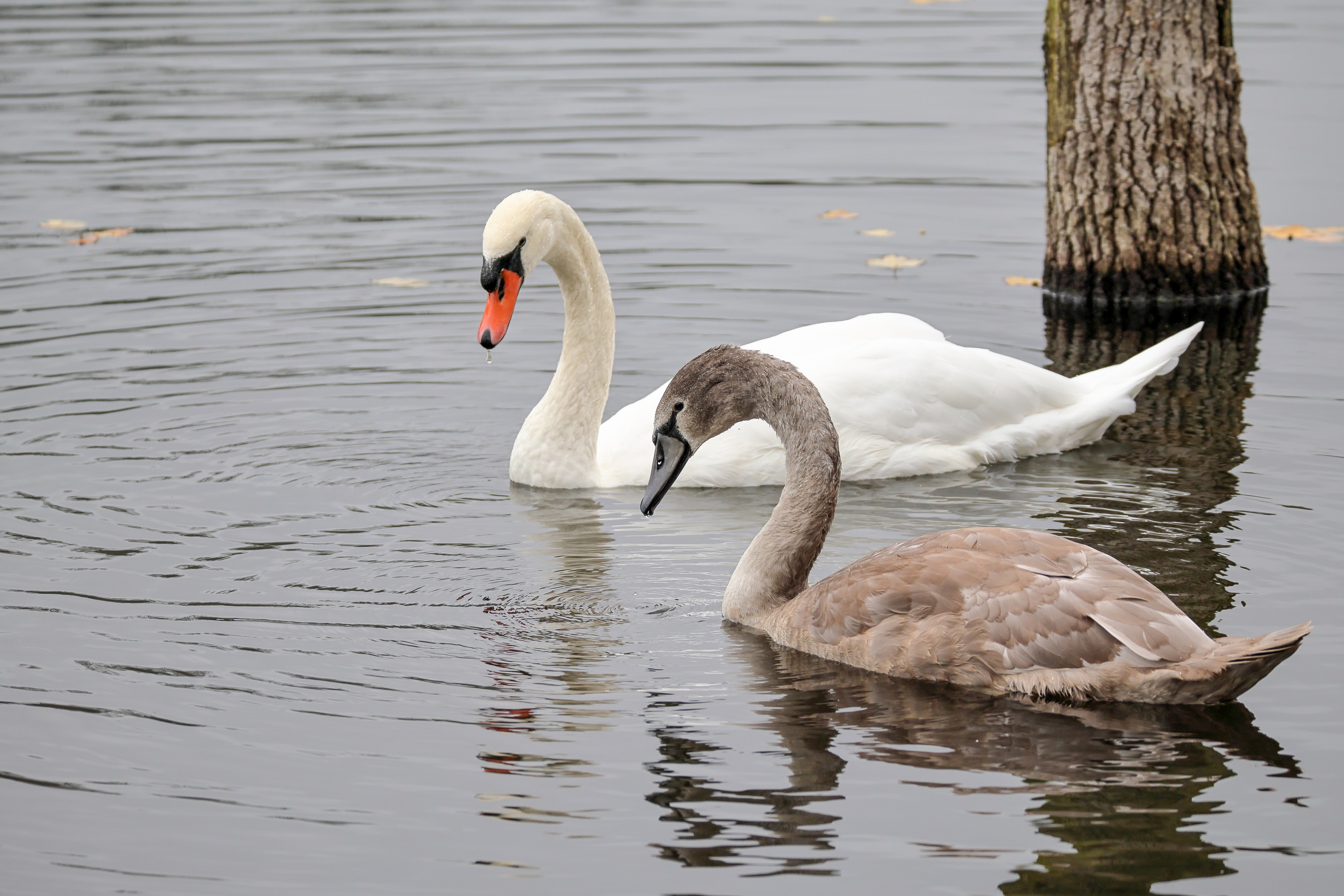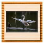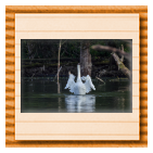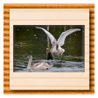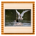 Höckerschwan vertreibt Trauerschwan