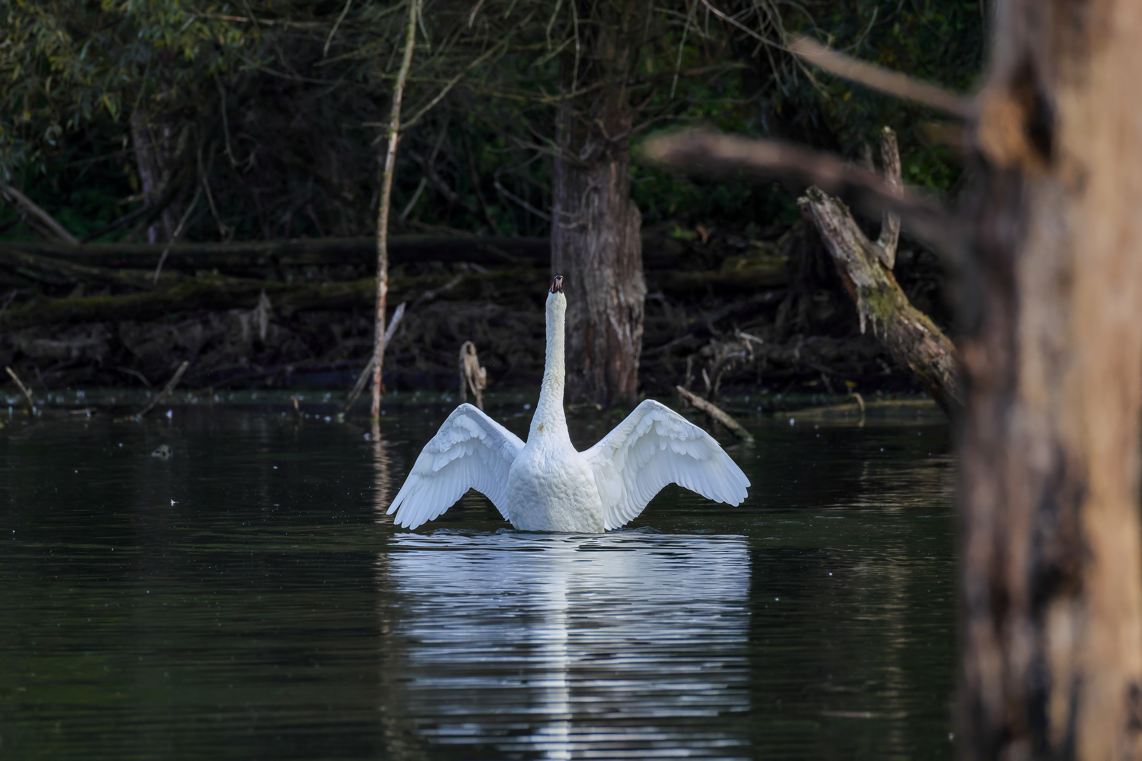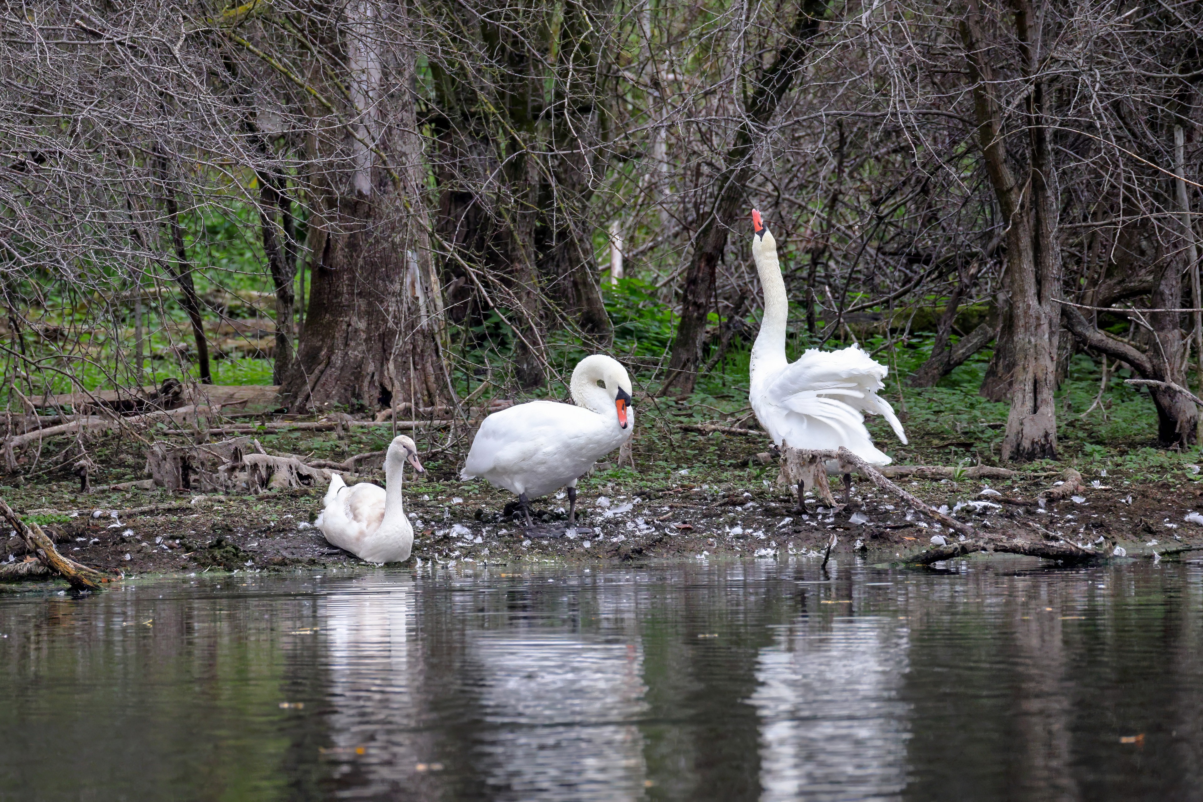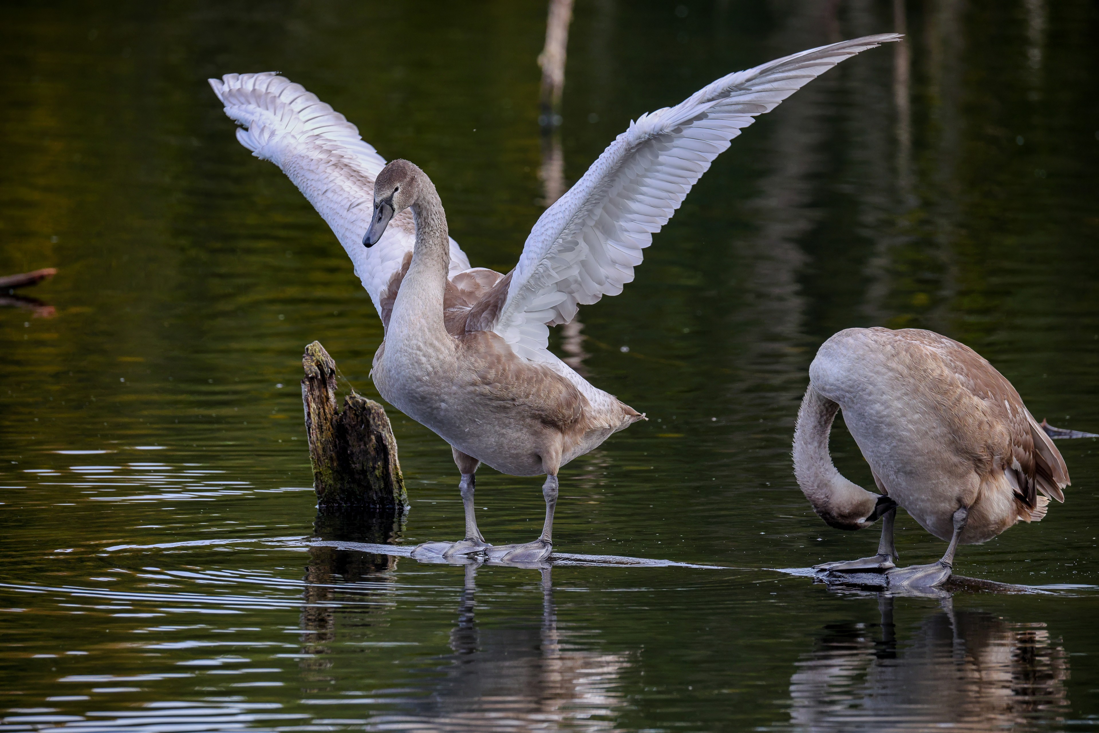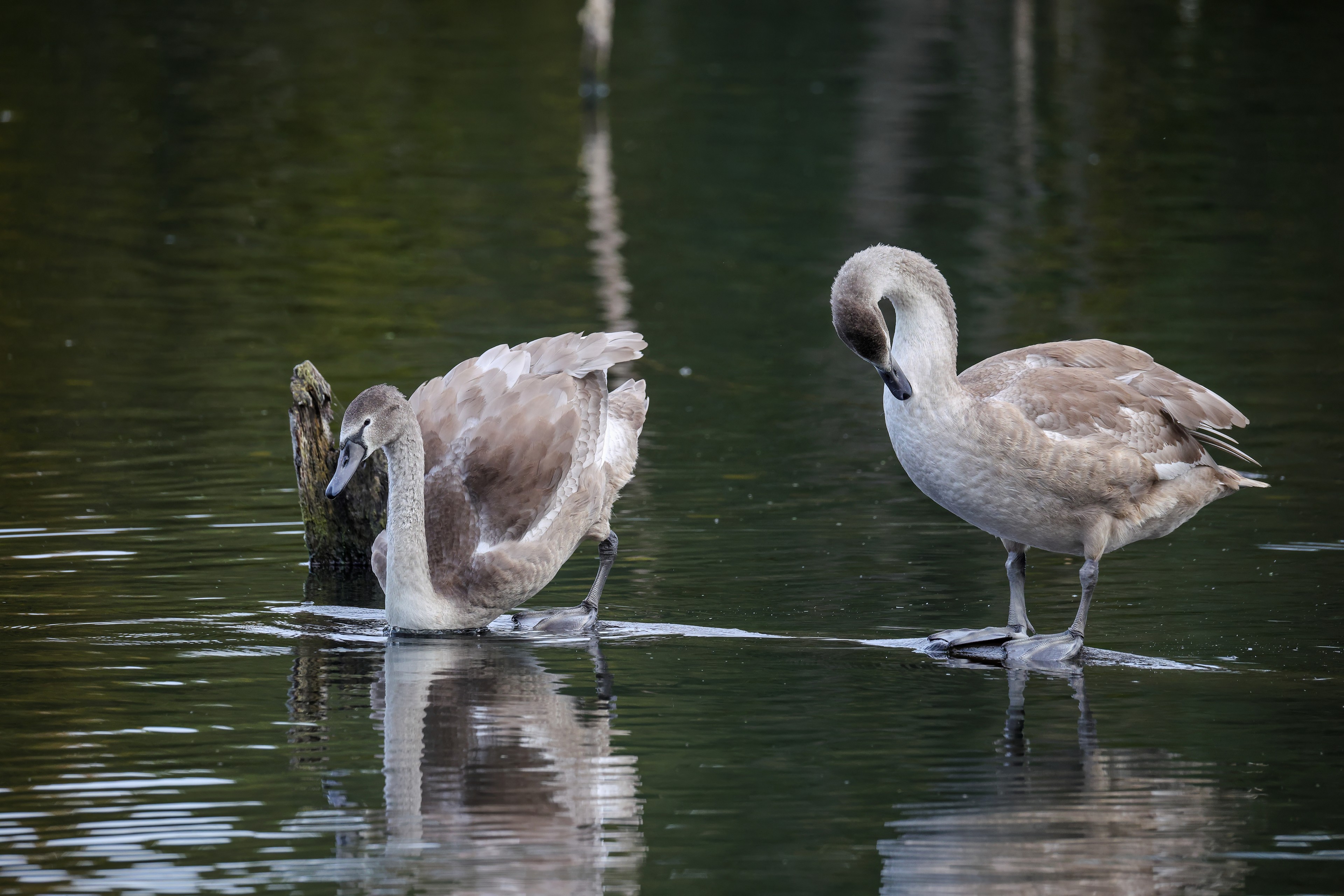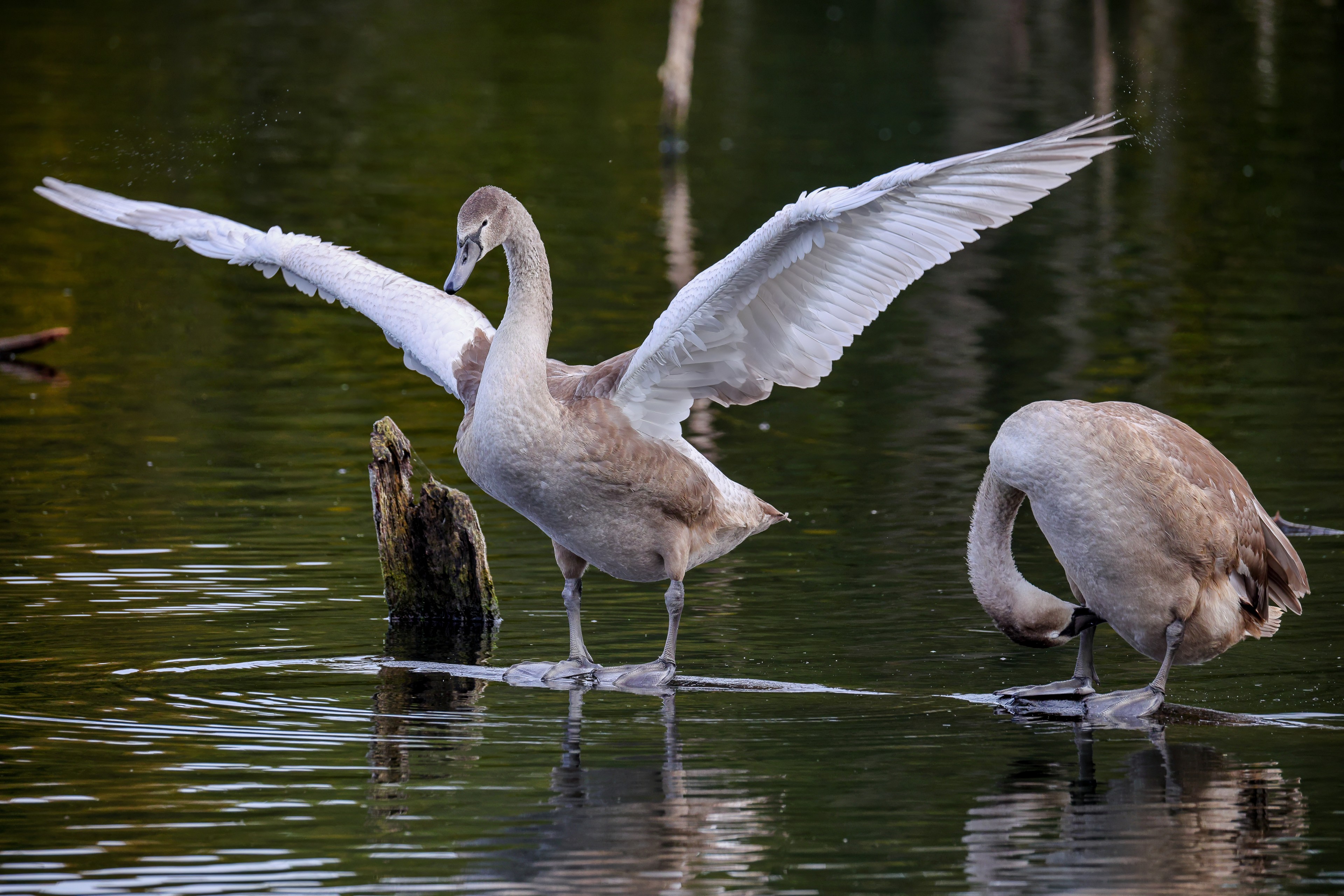 Höckerschwan vertreibt Trauerschwan