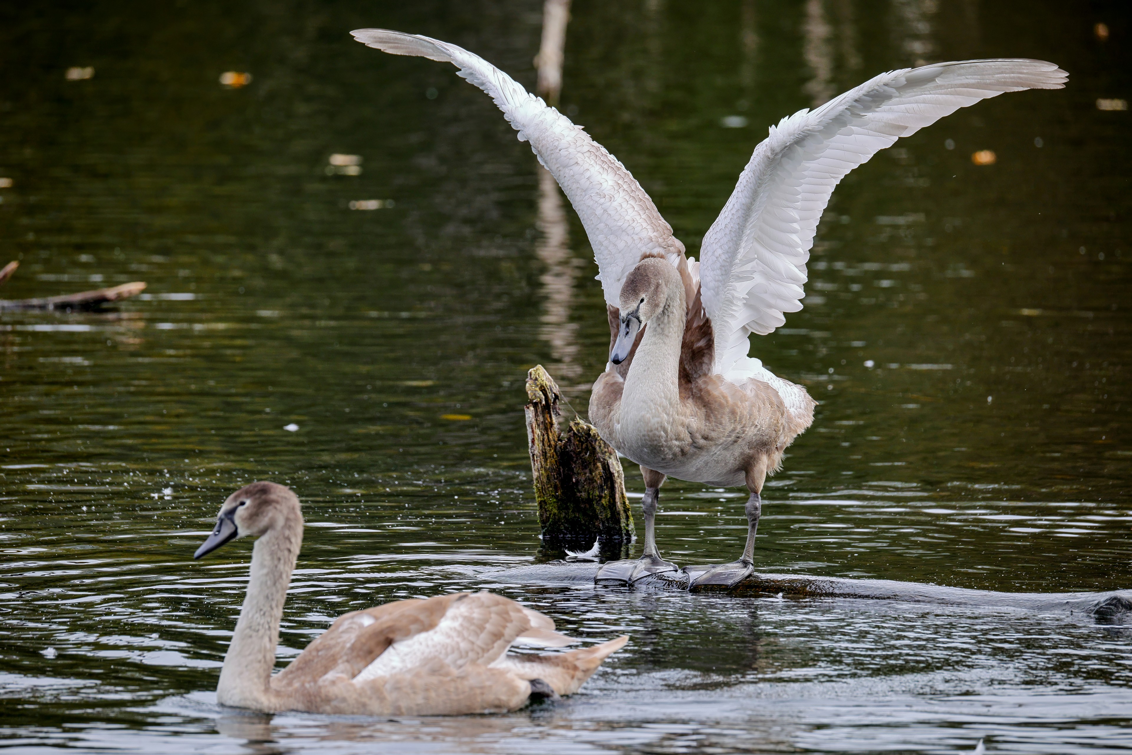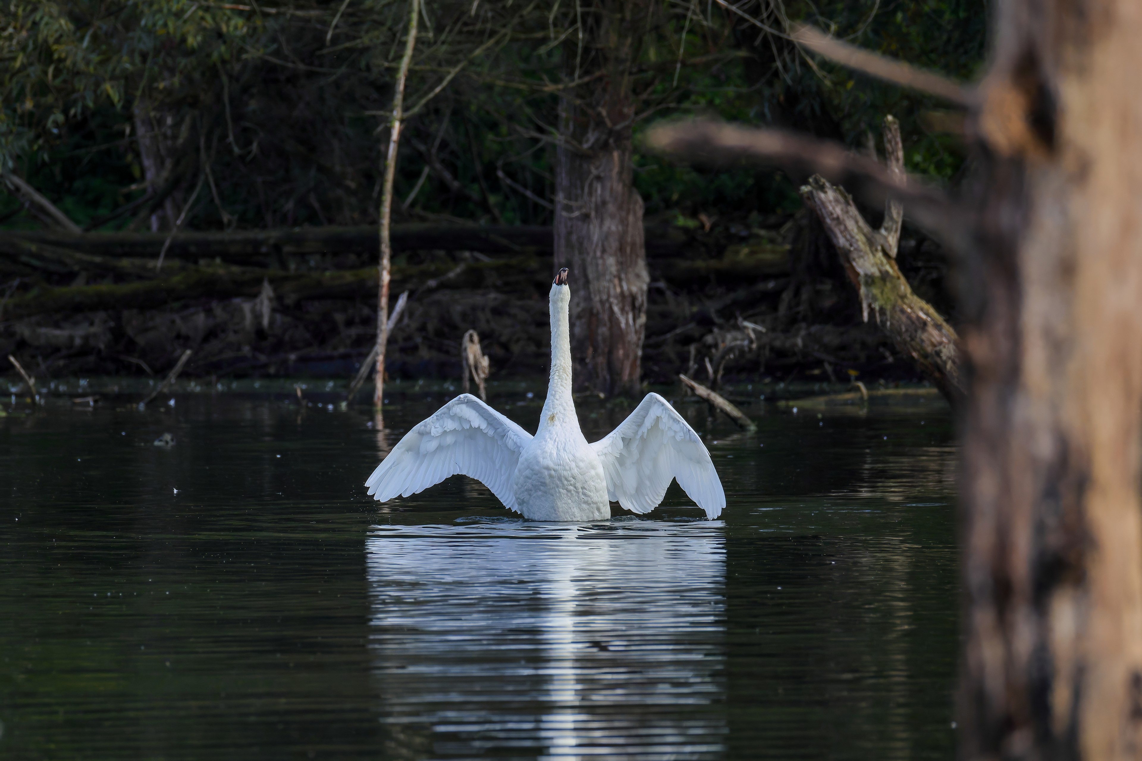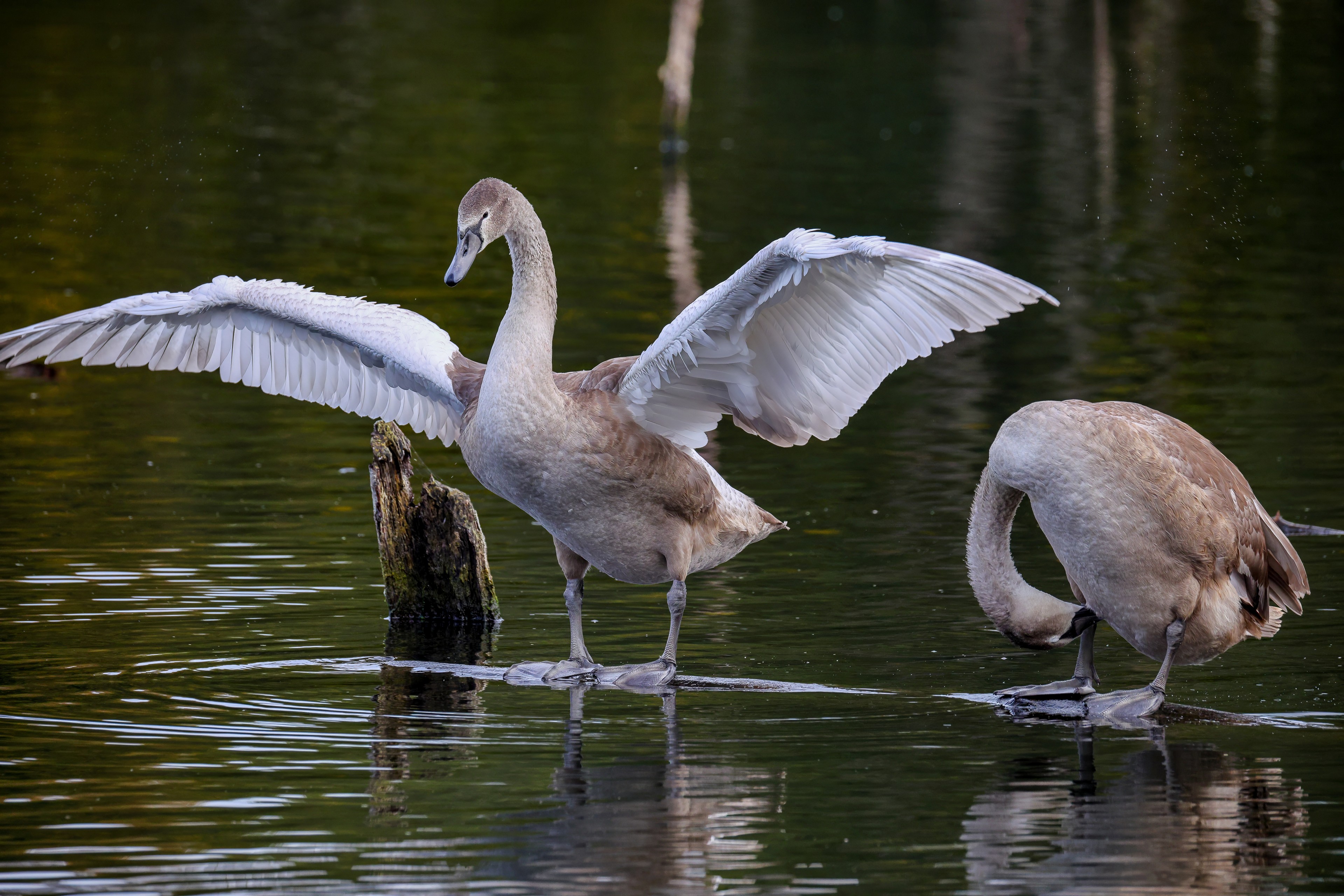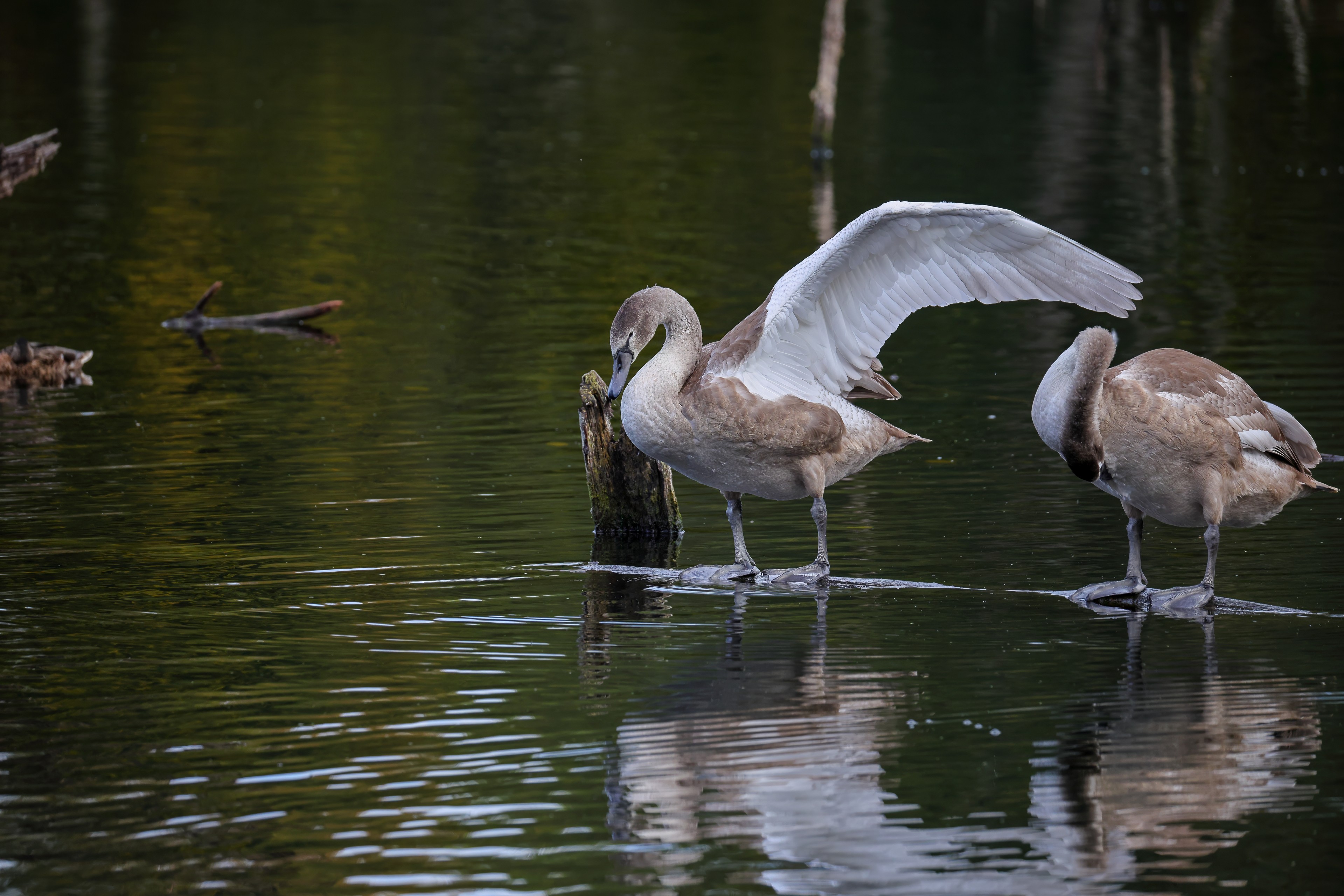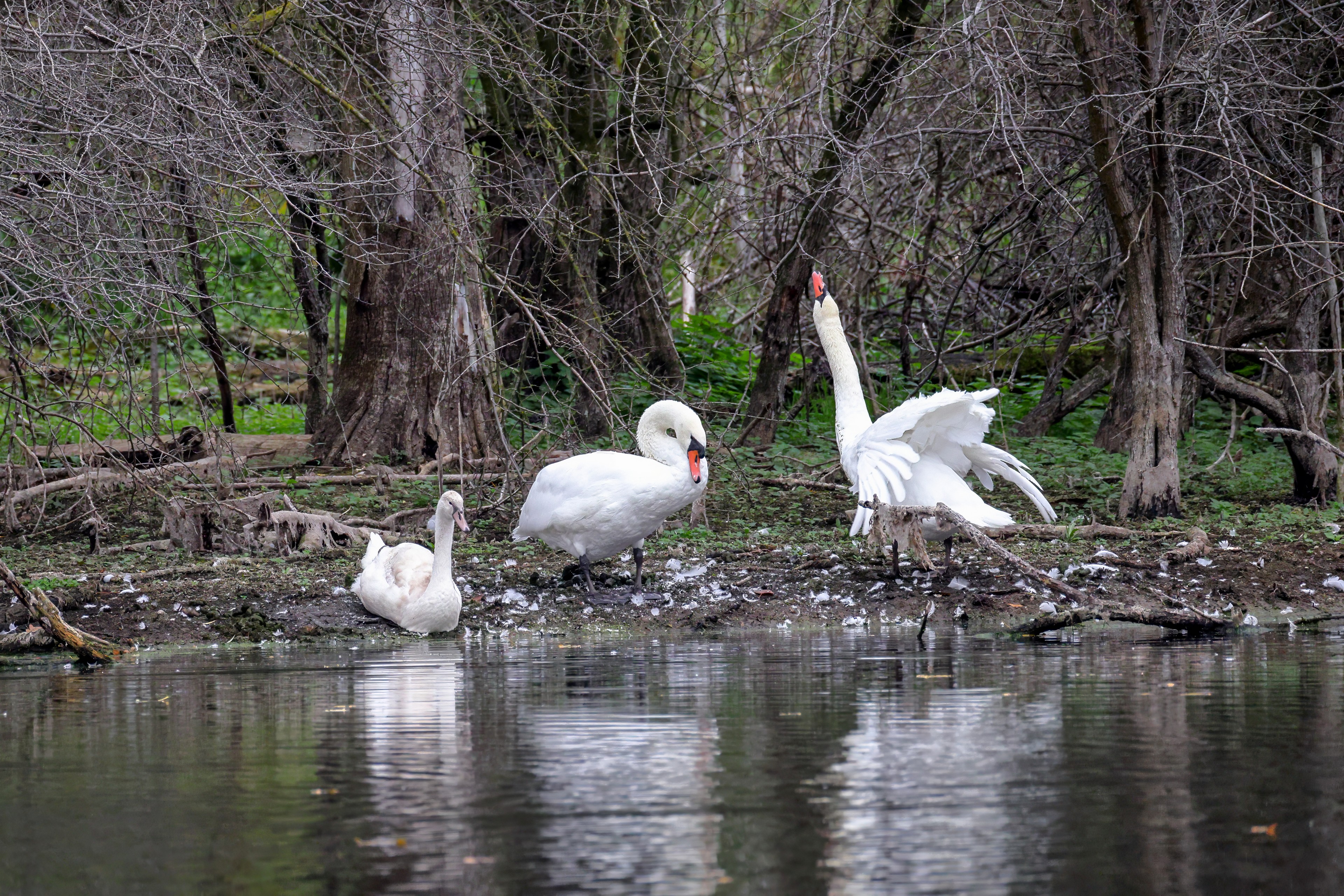 Höckerschwan vertreibt Trauerschwan
