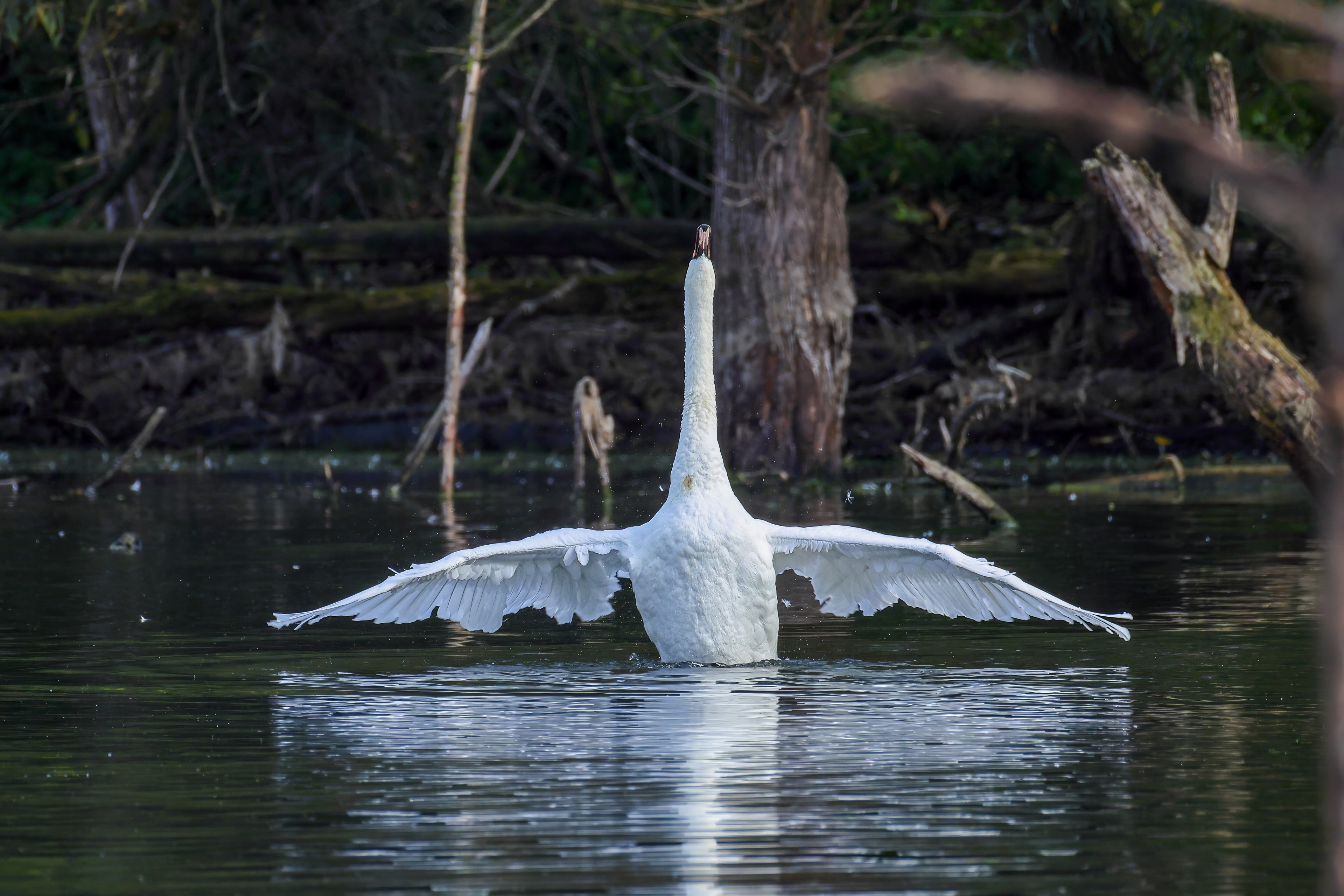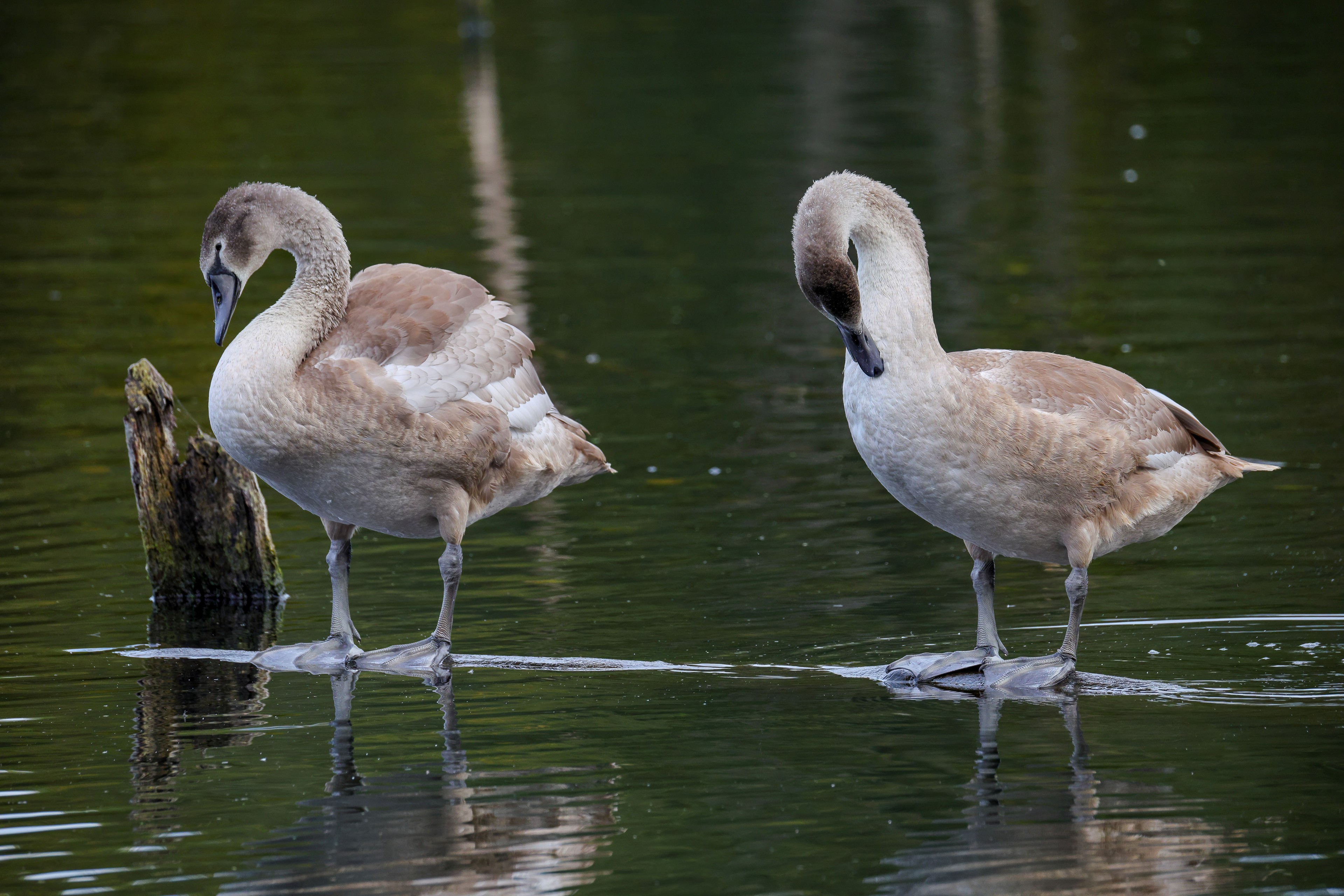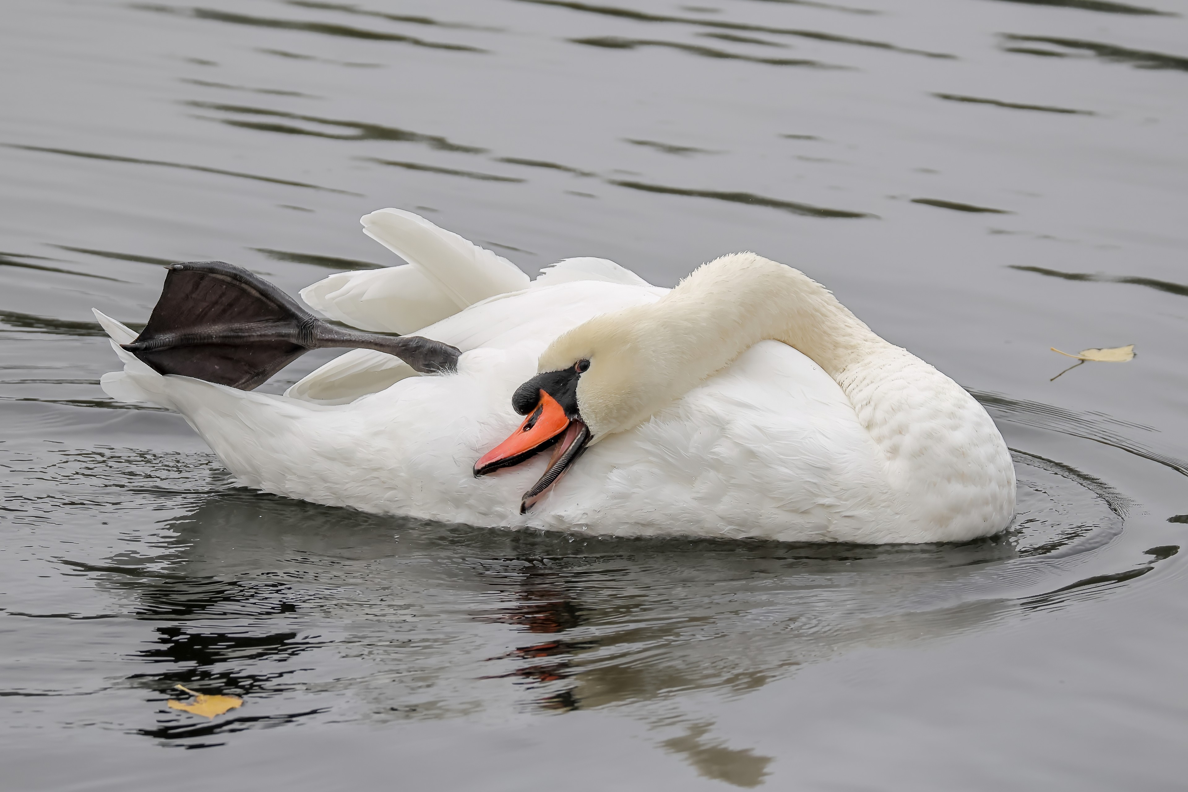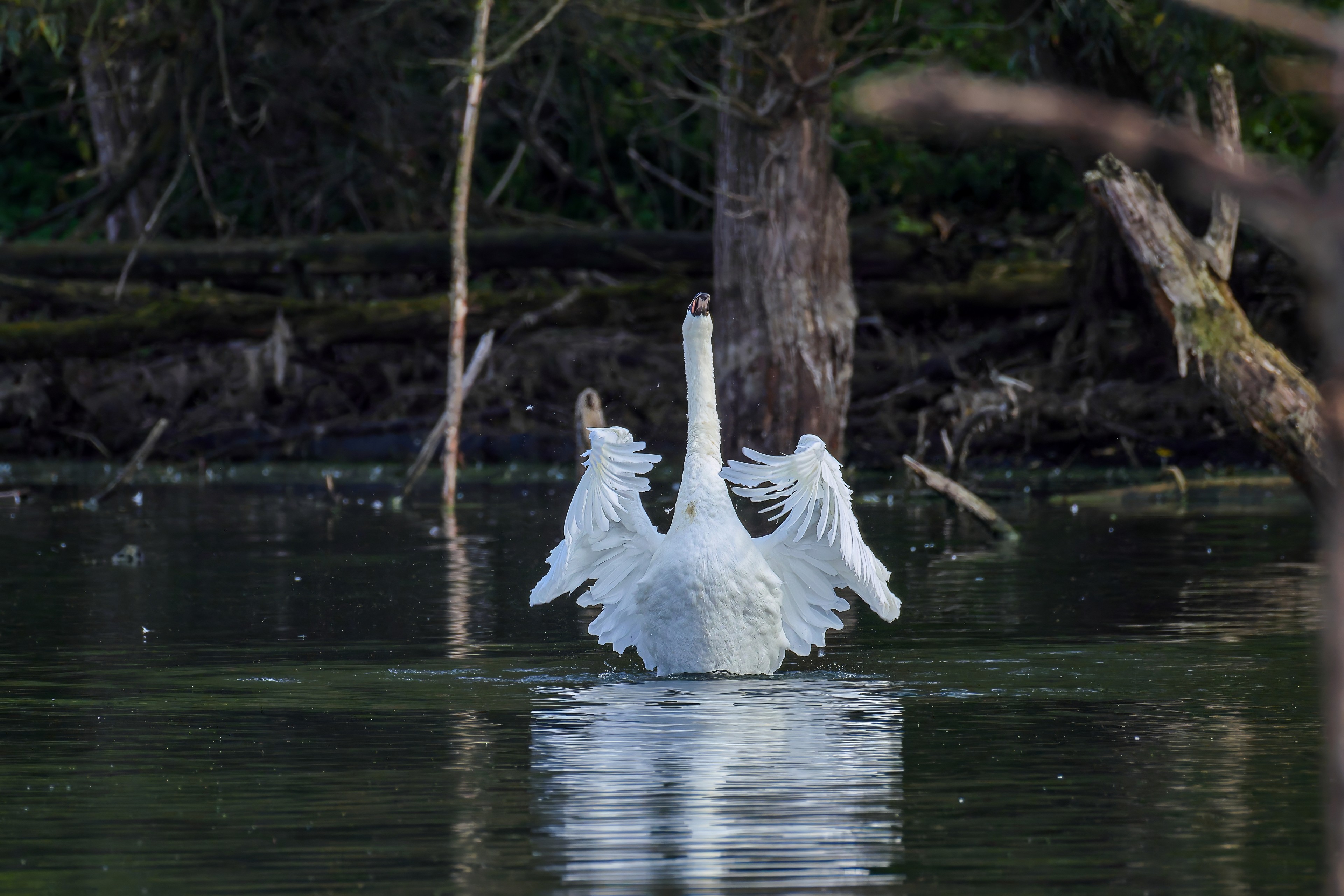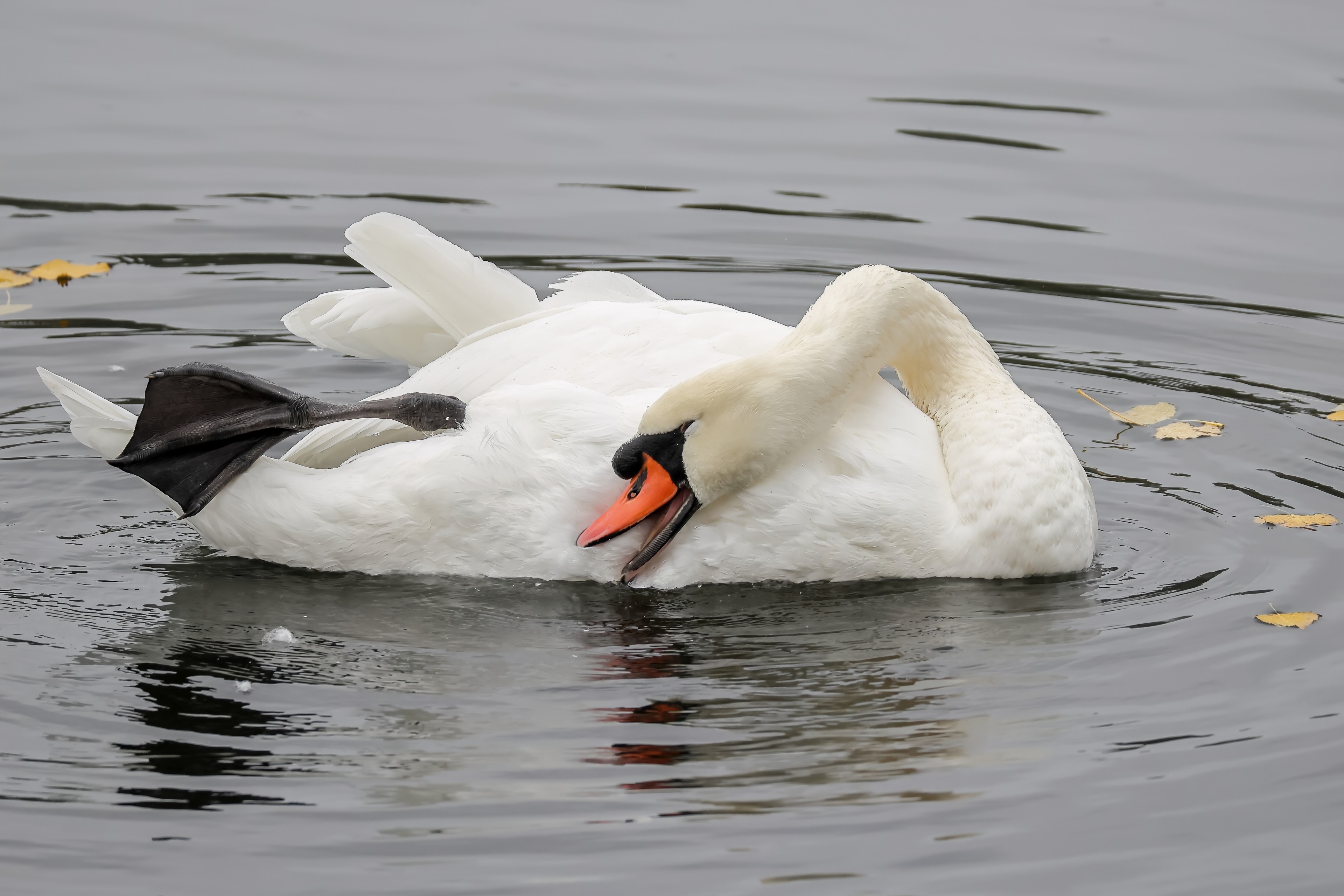 Höckerschwan vertreibt Trauerschwan