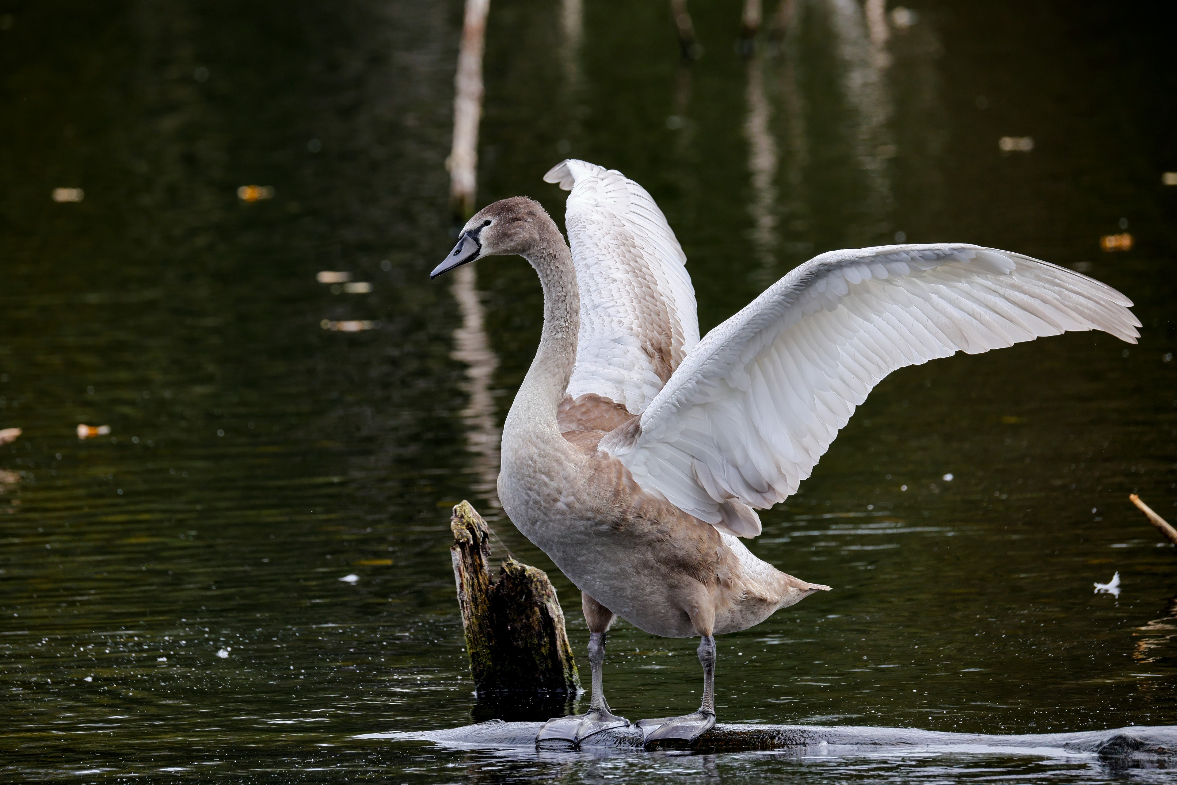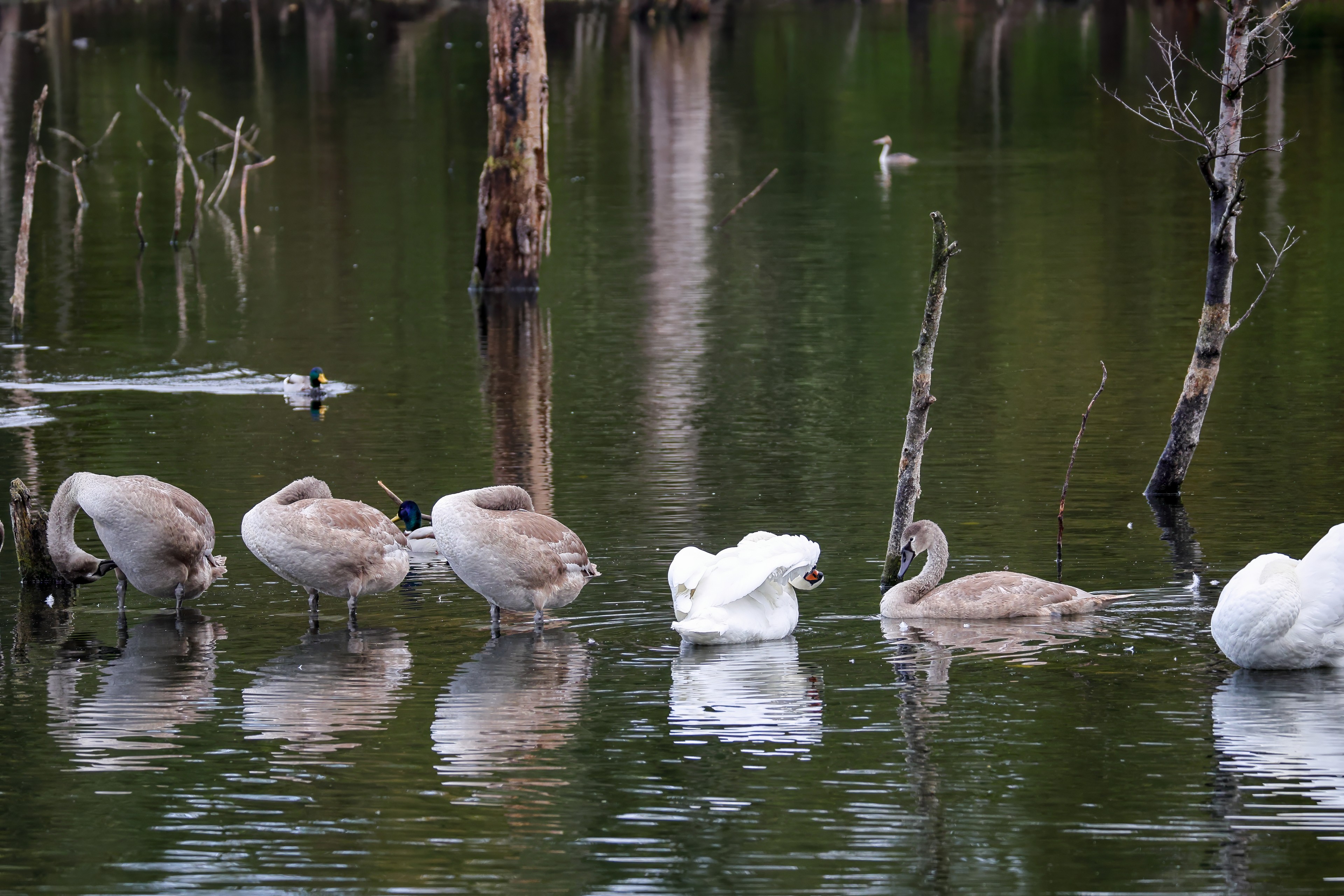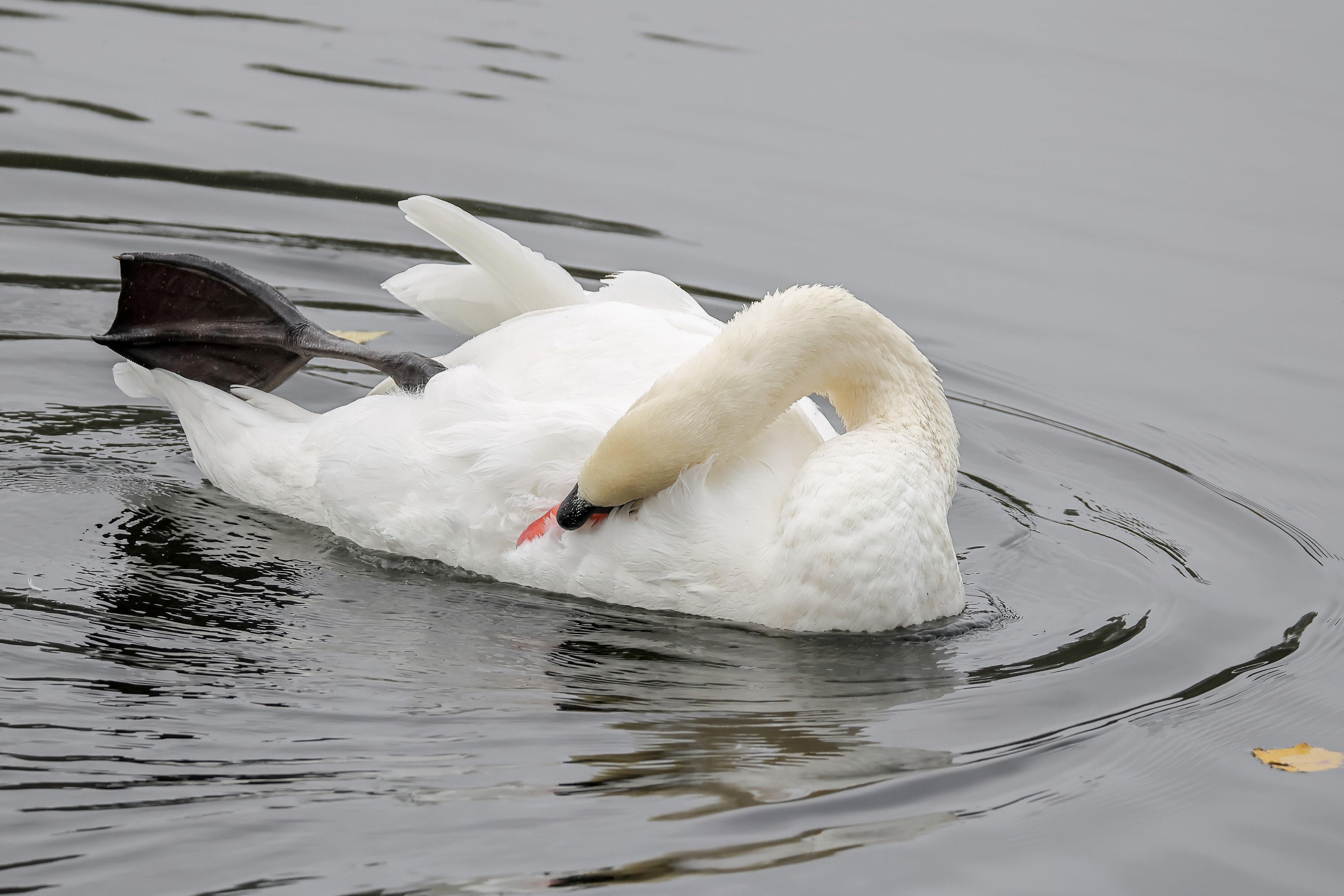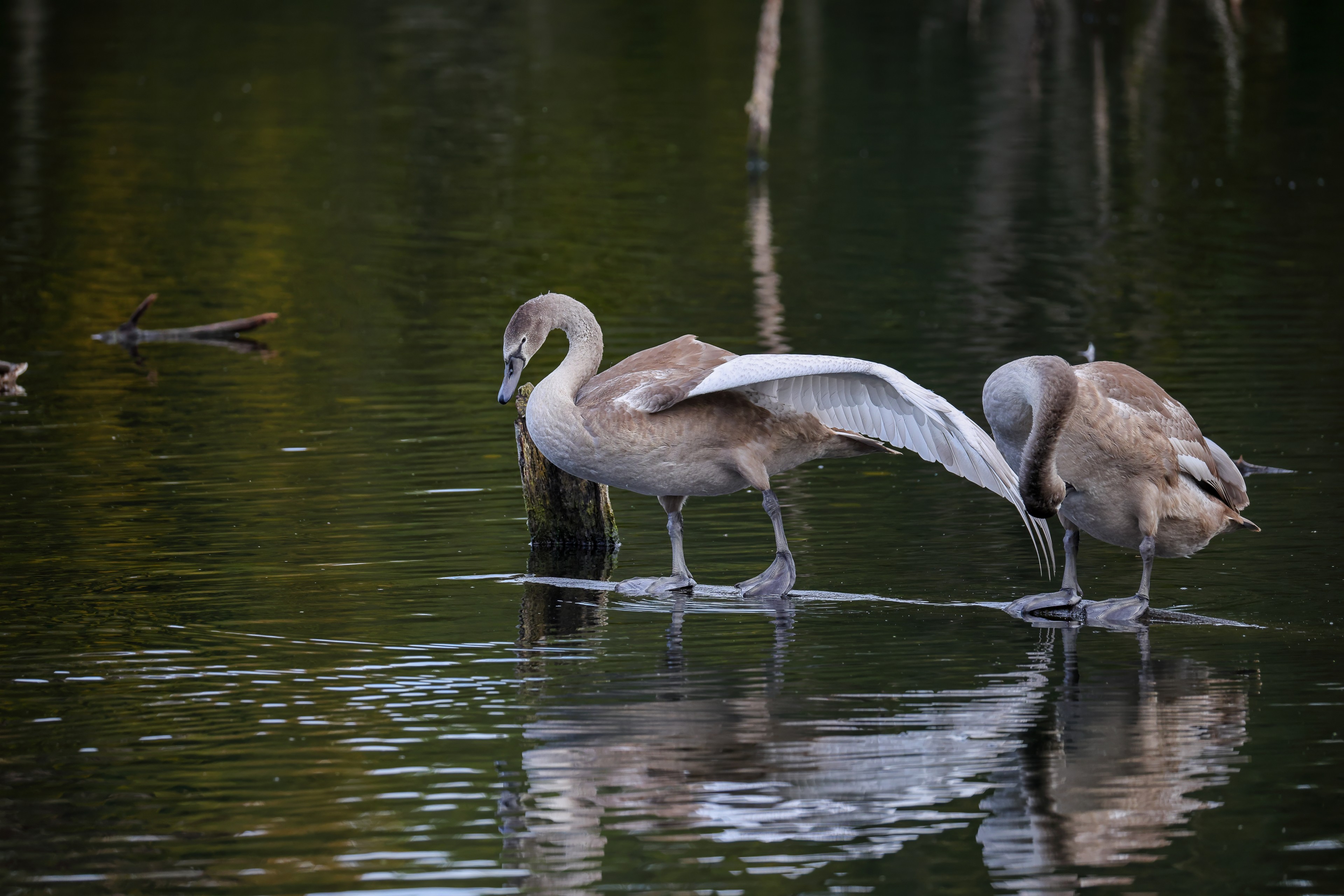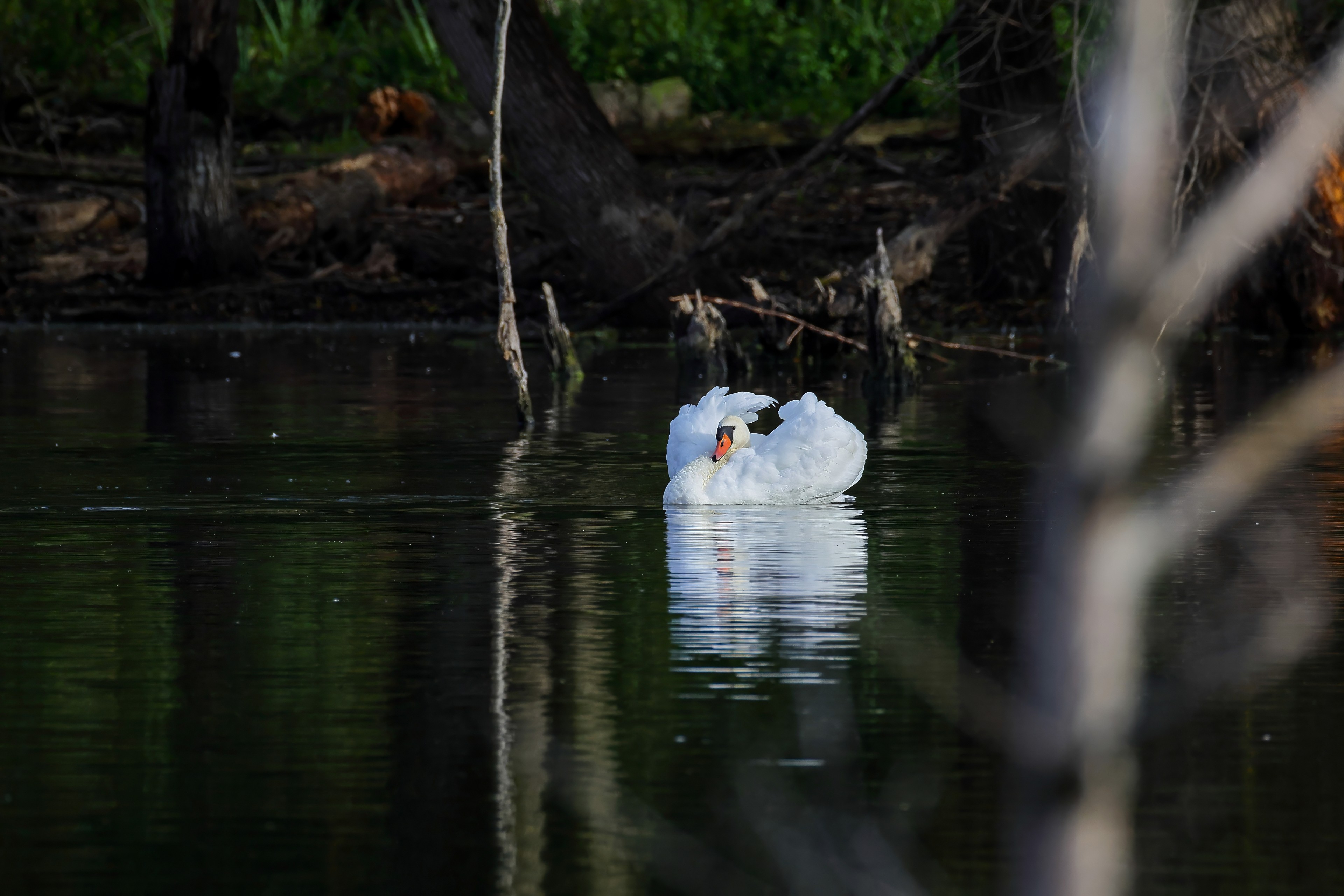 Höckerschwan vertreibt Trauerschwan