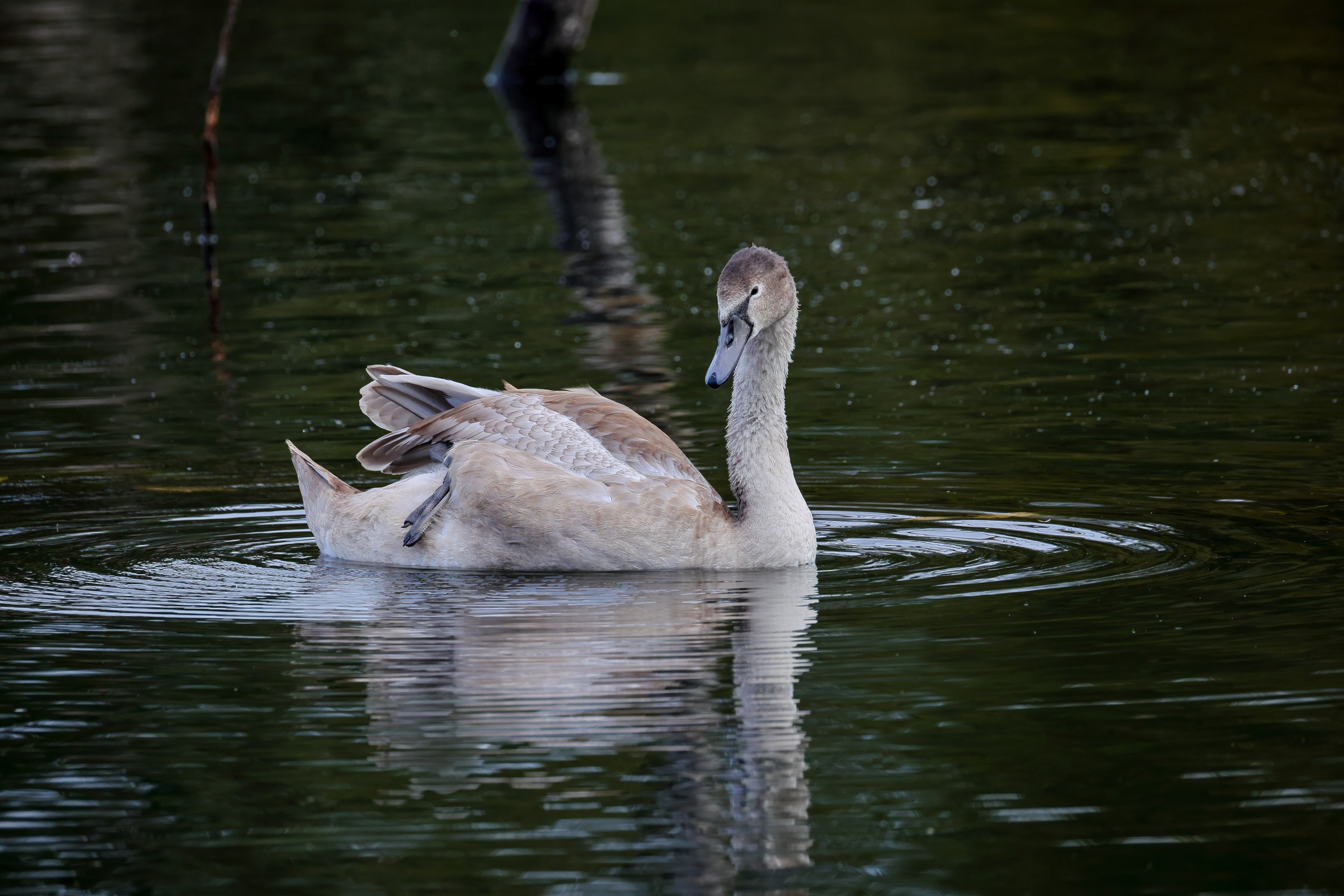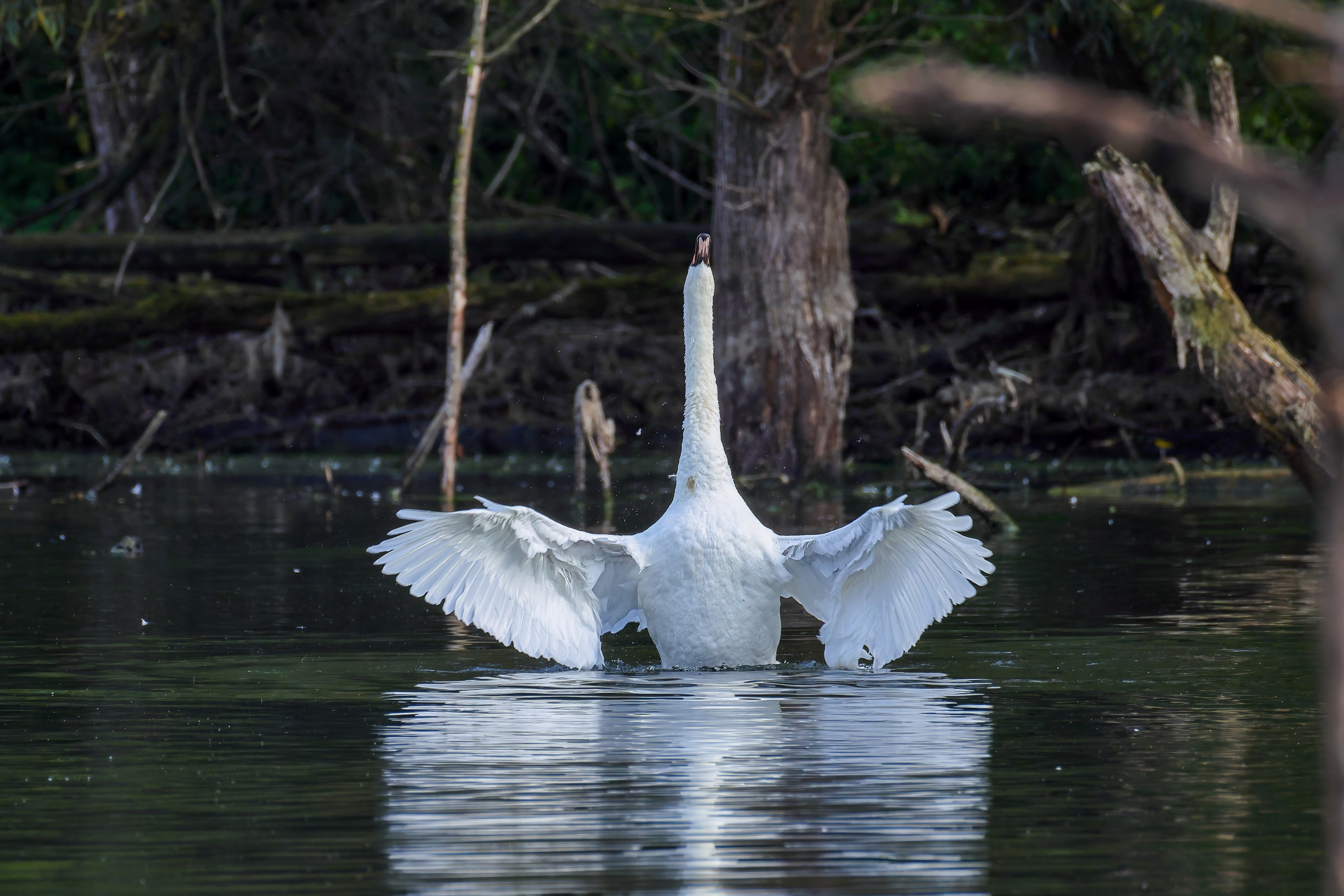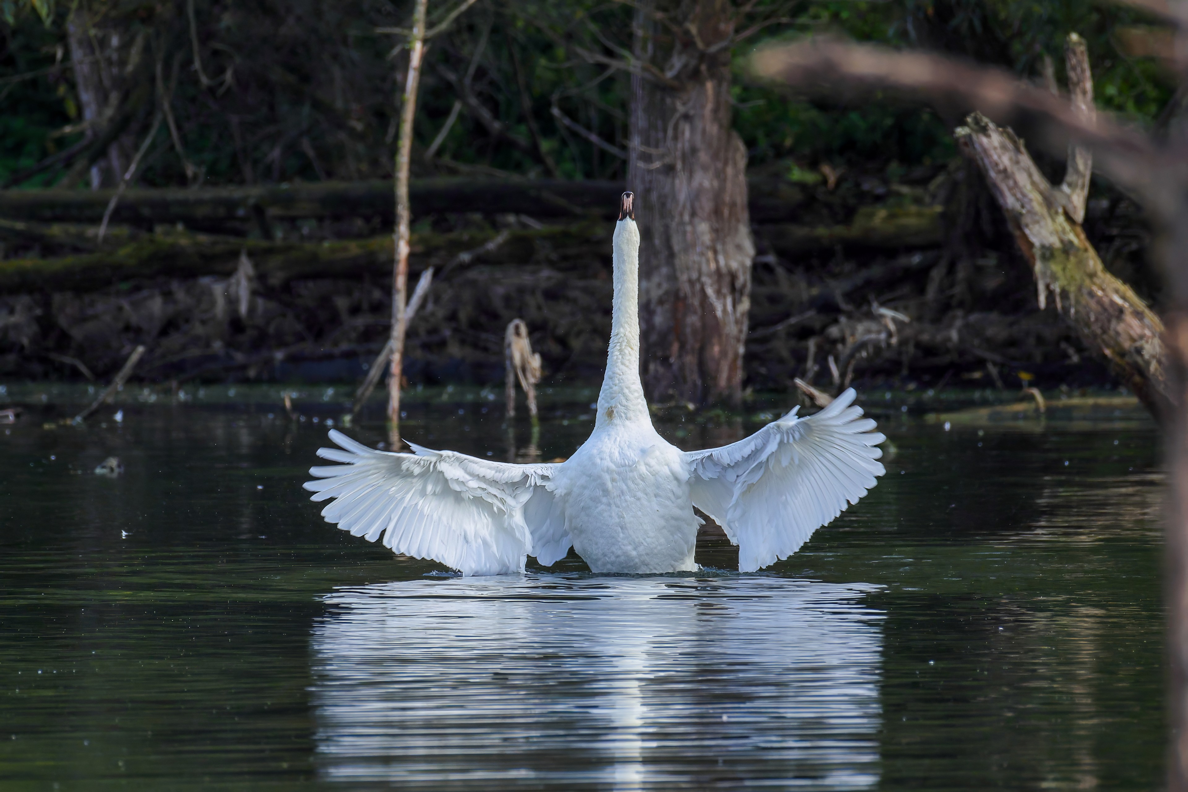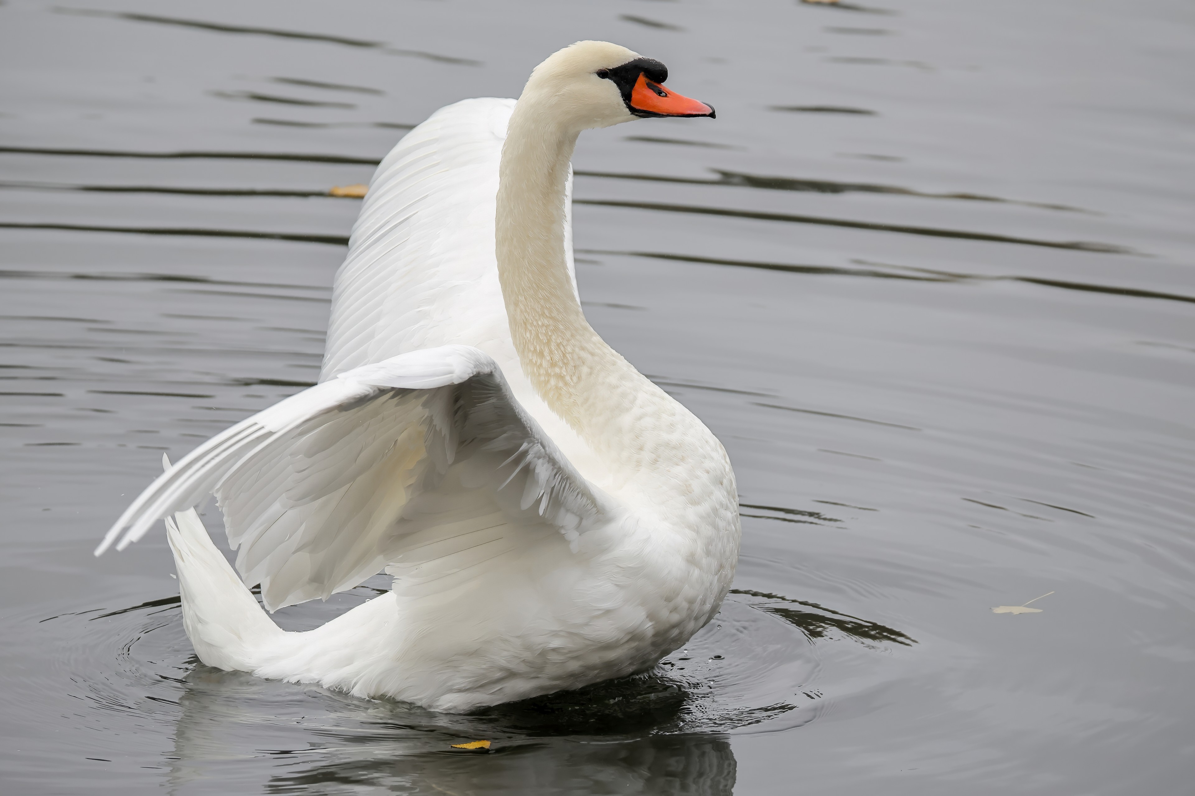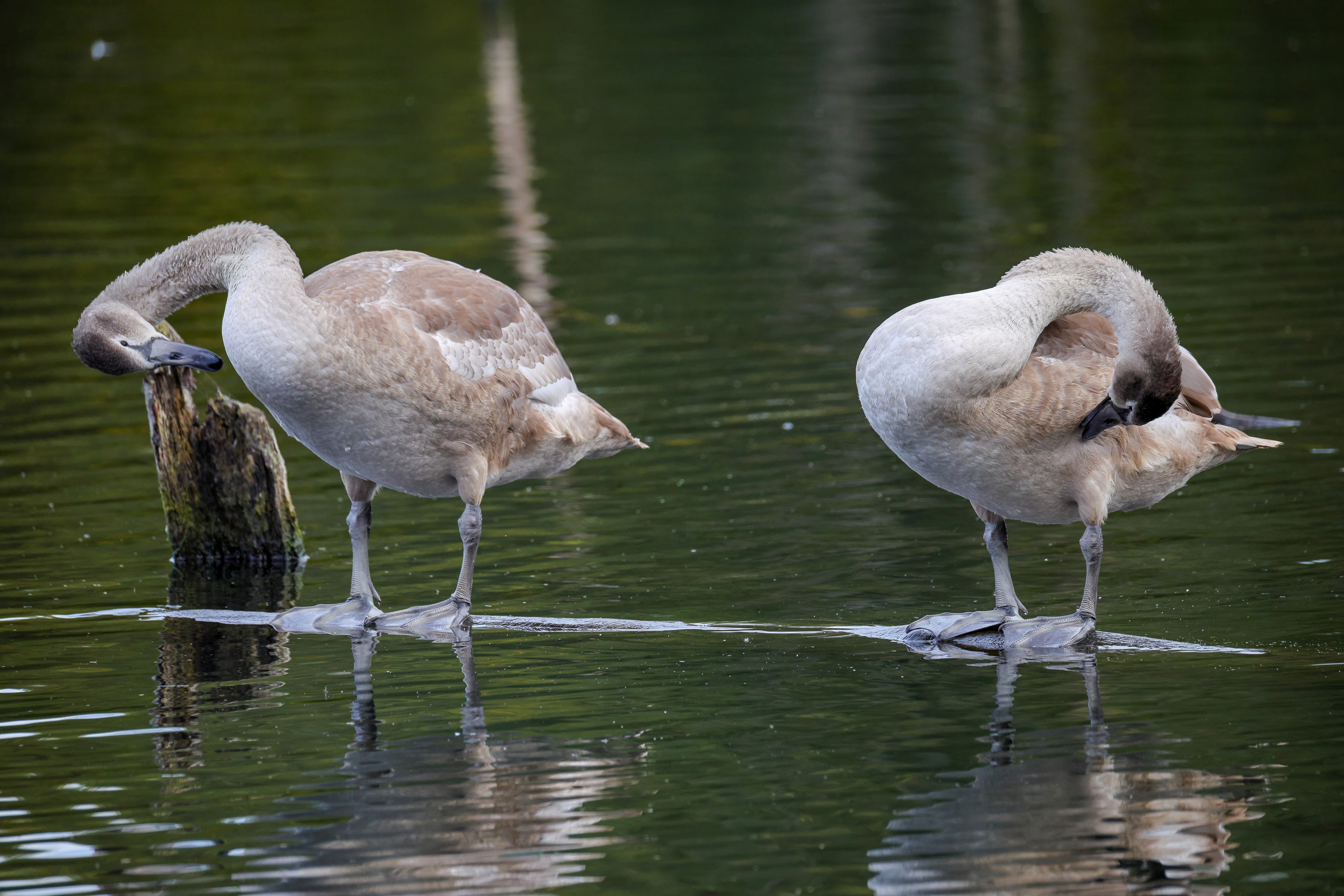 Höckerschwan vertreibt Trauerschwan