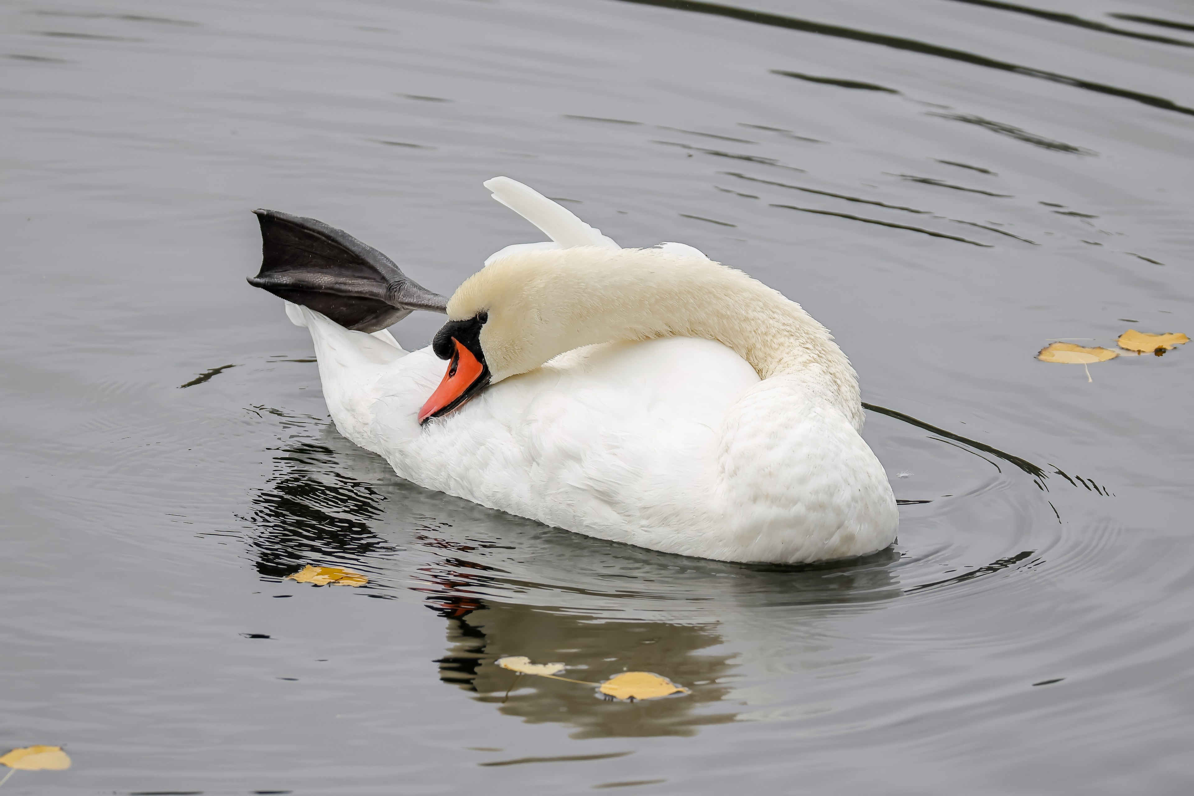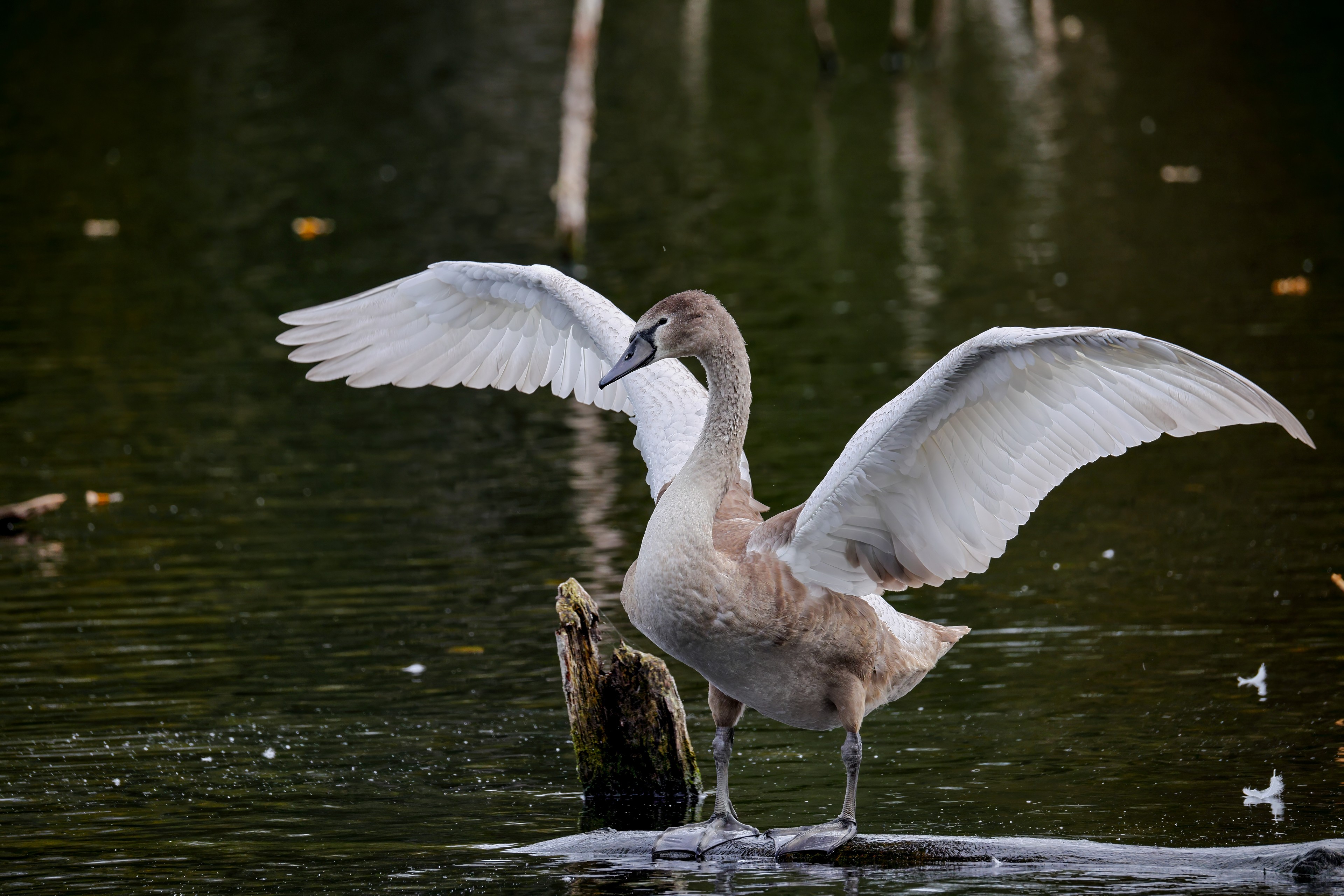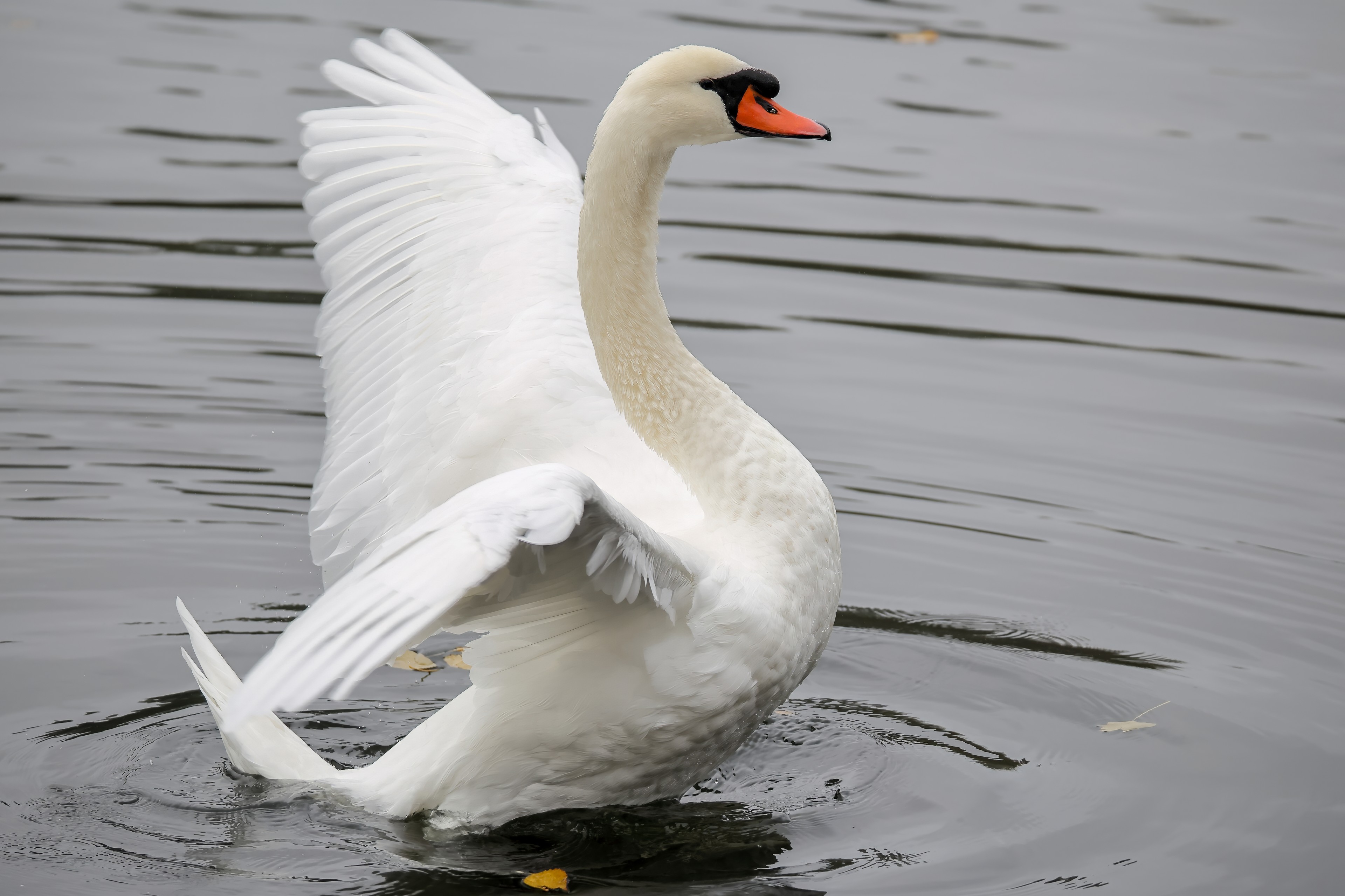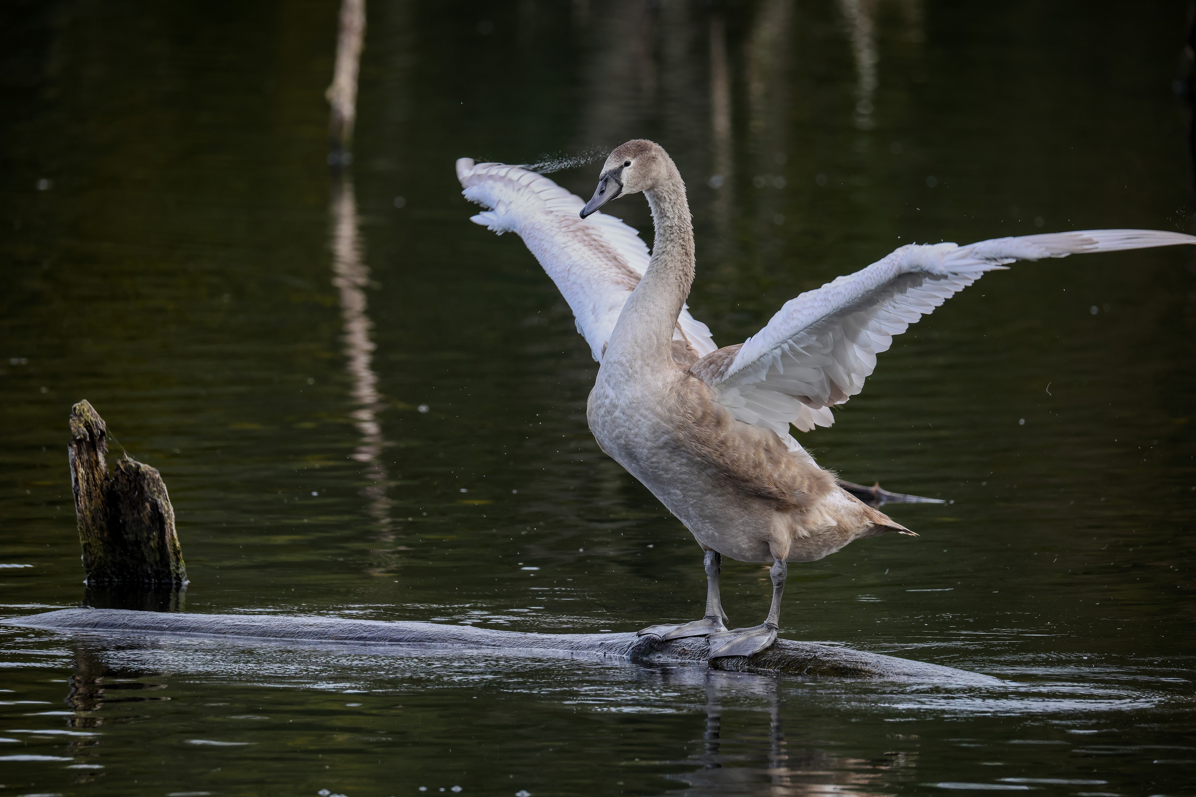 Höckerschwan vertreibt Trauerschwan