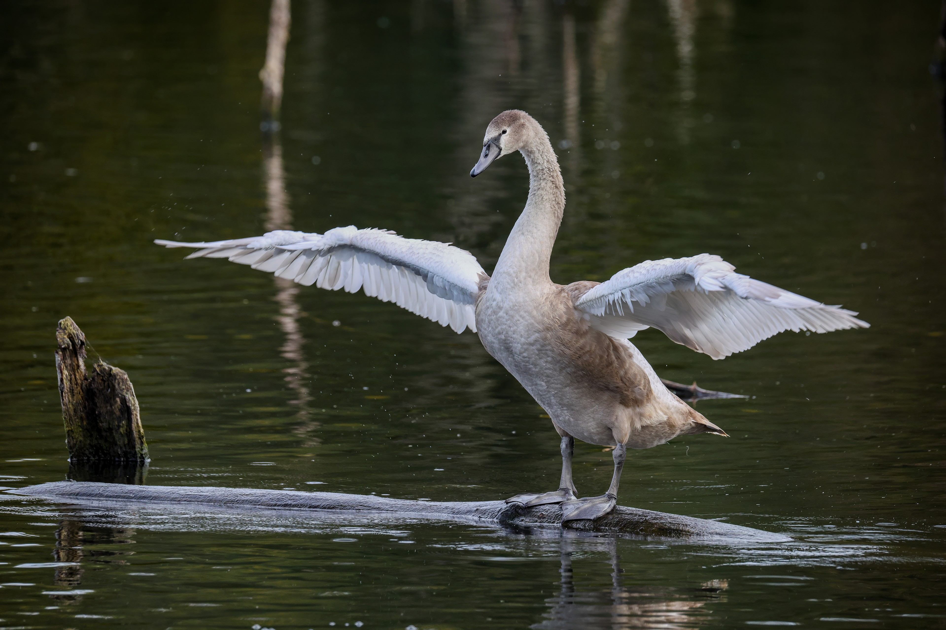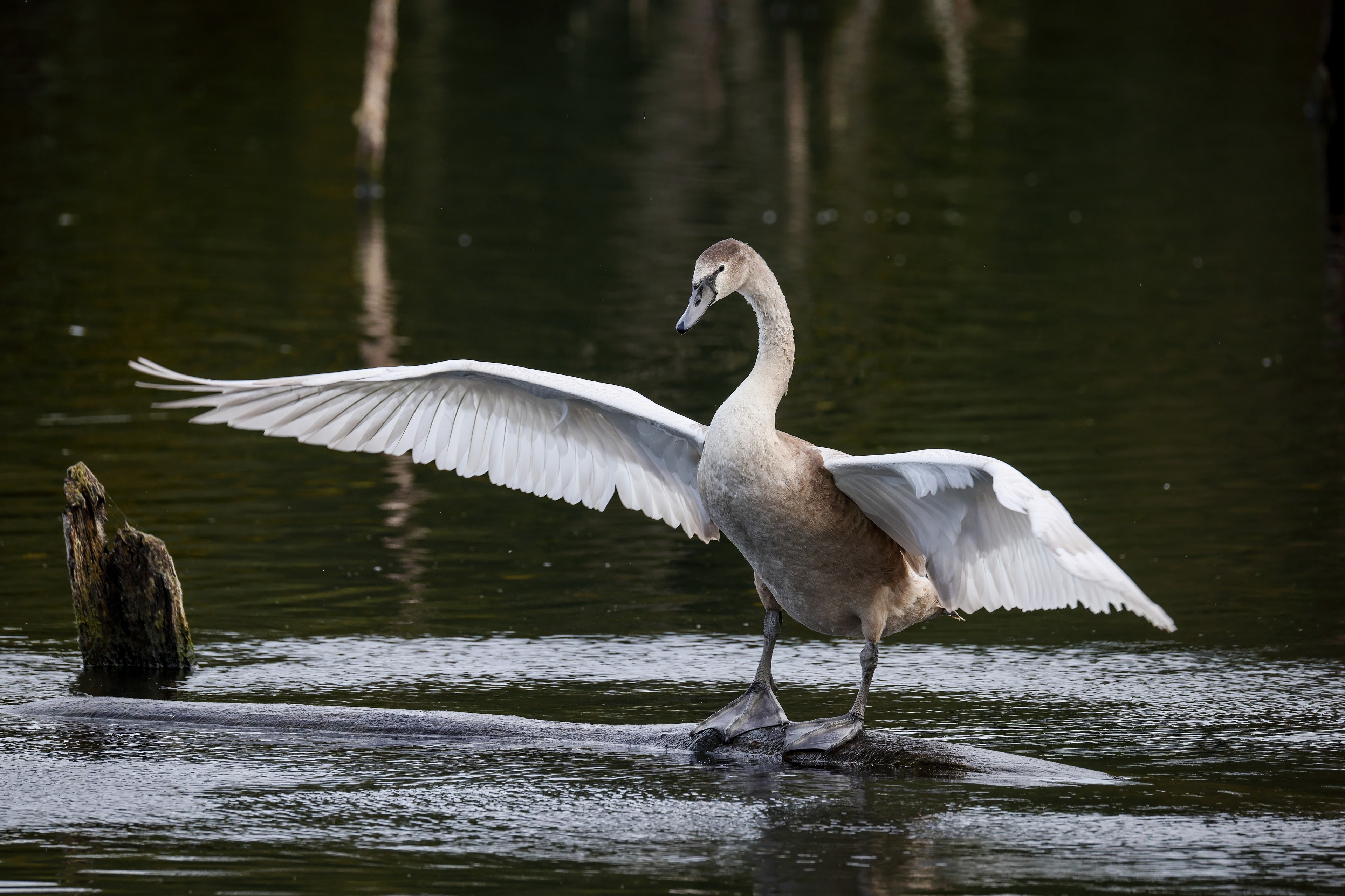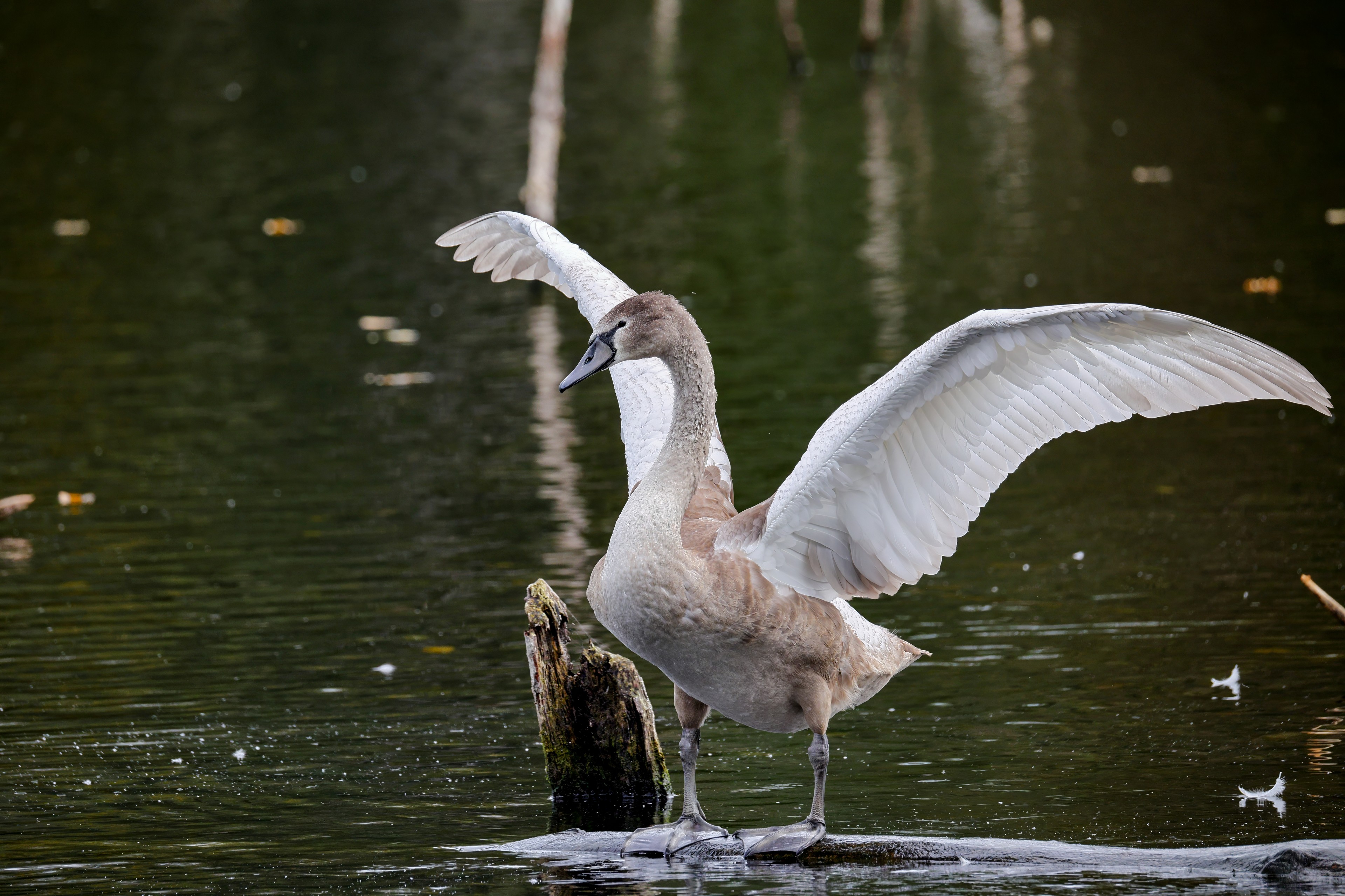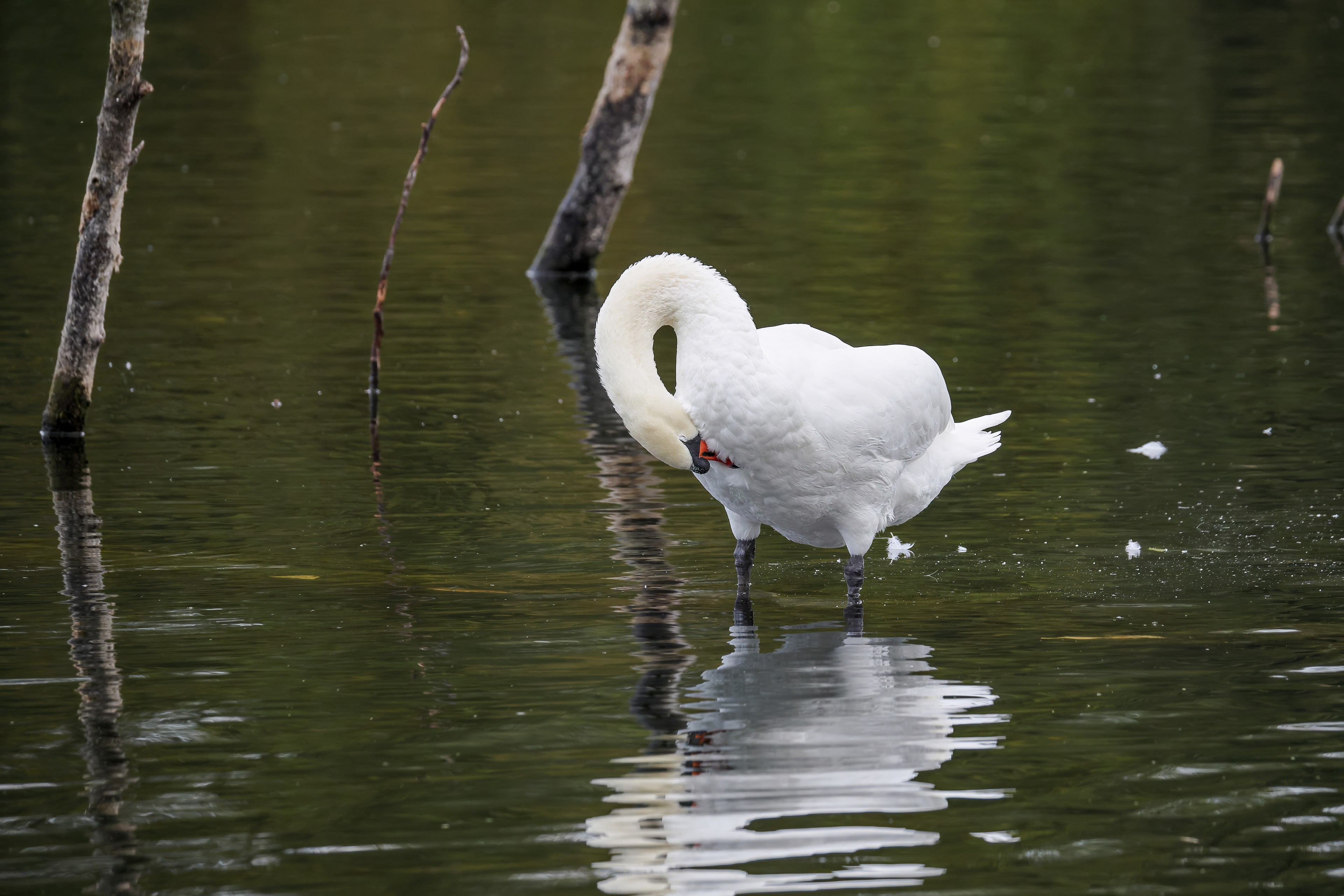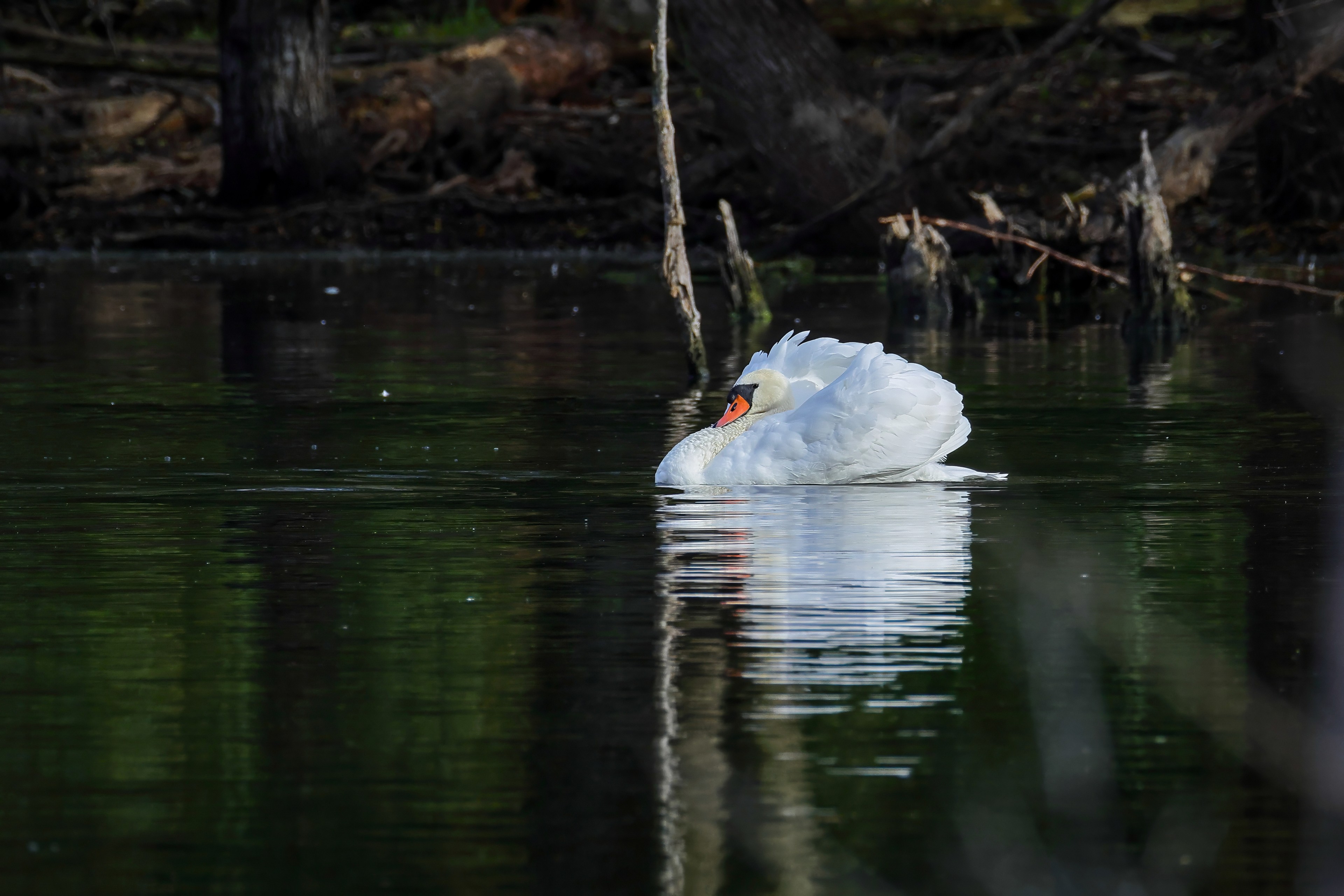 Höckerschwan vertreibt Trauerschwan