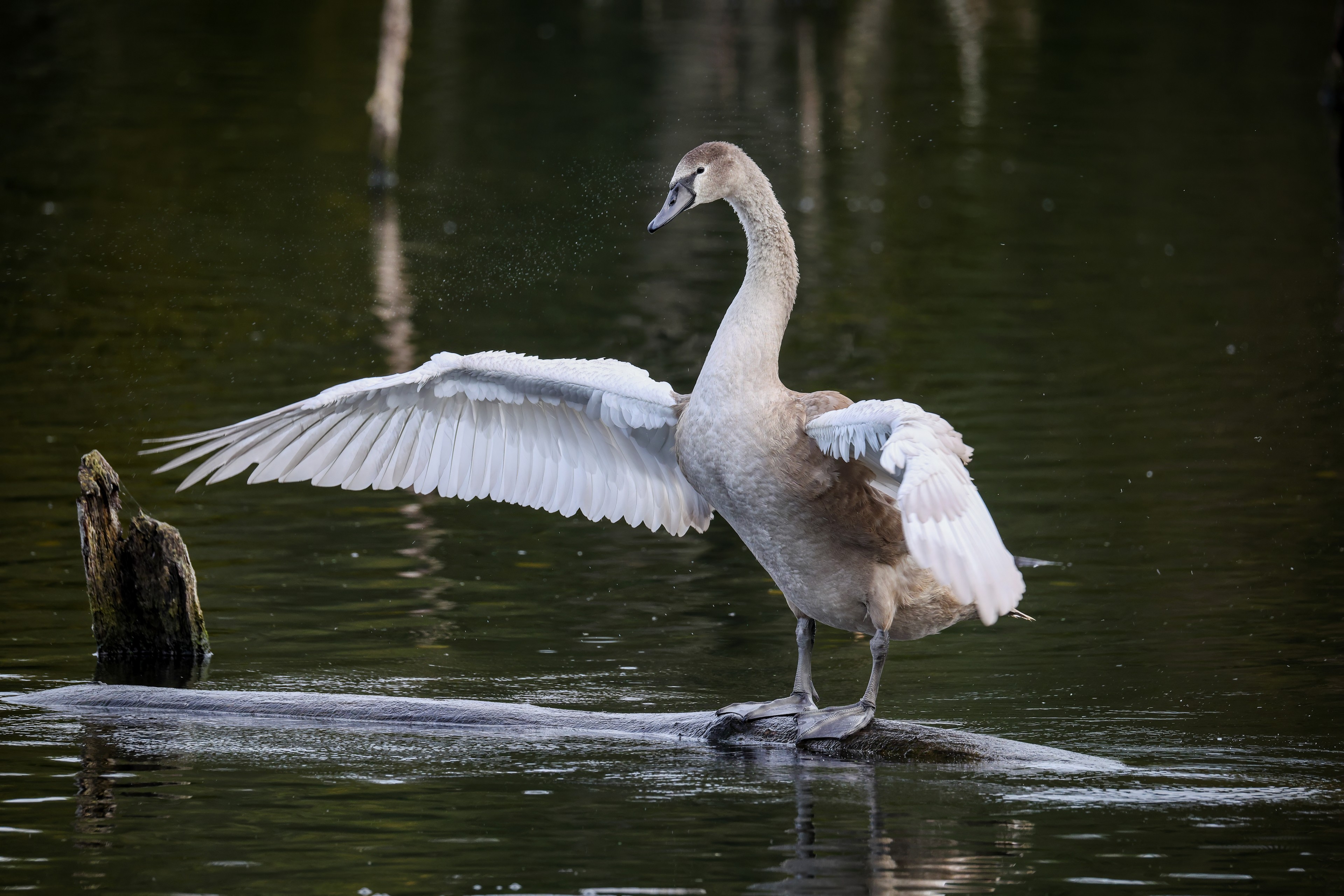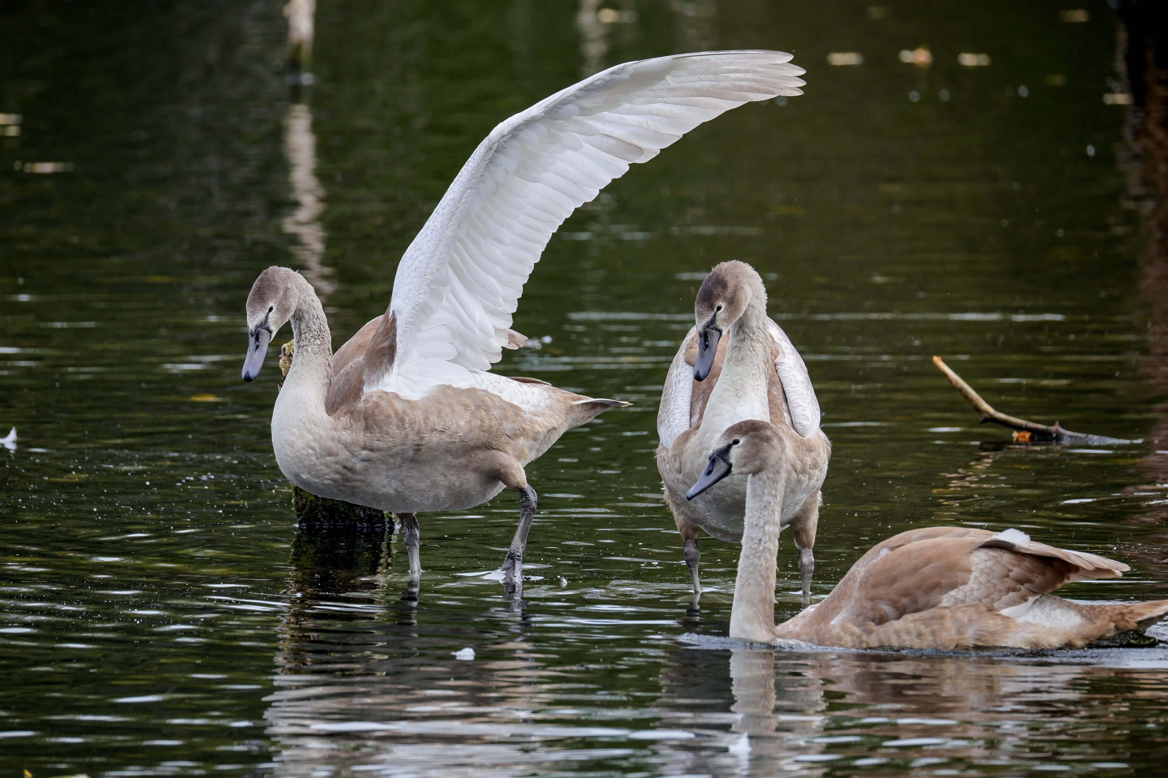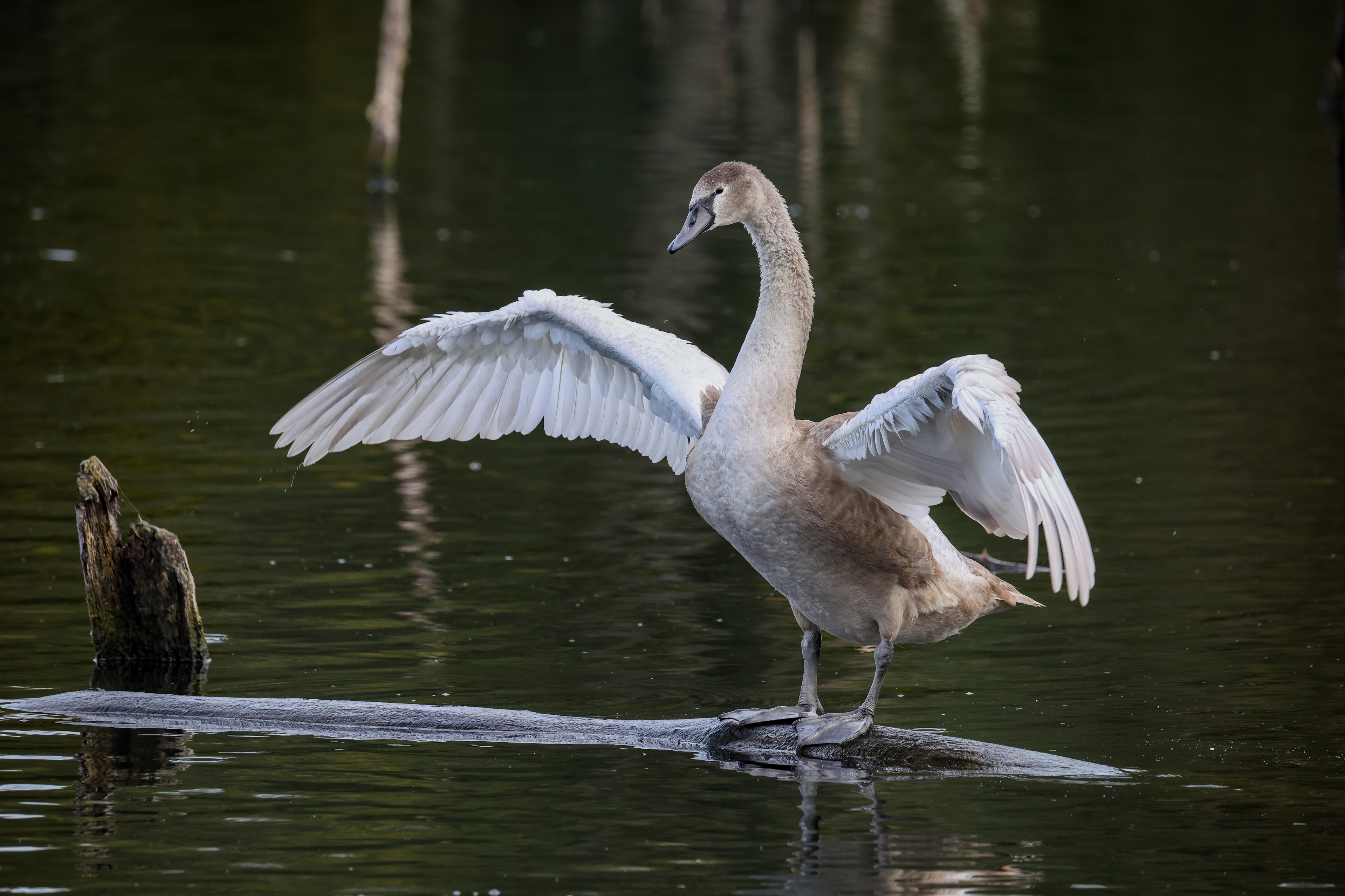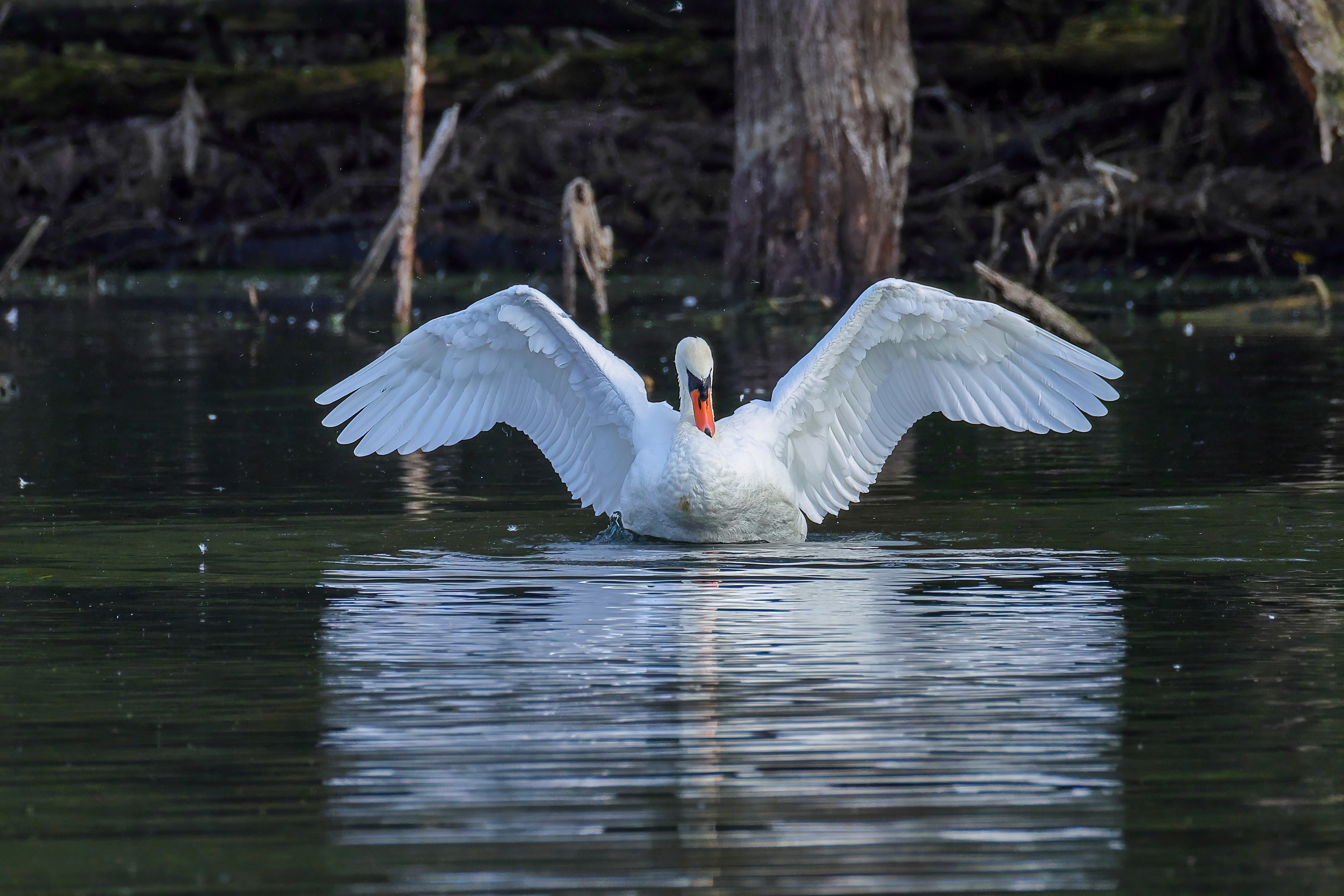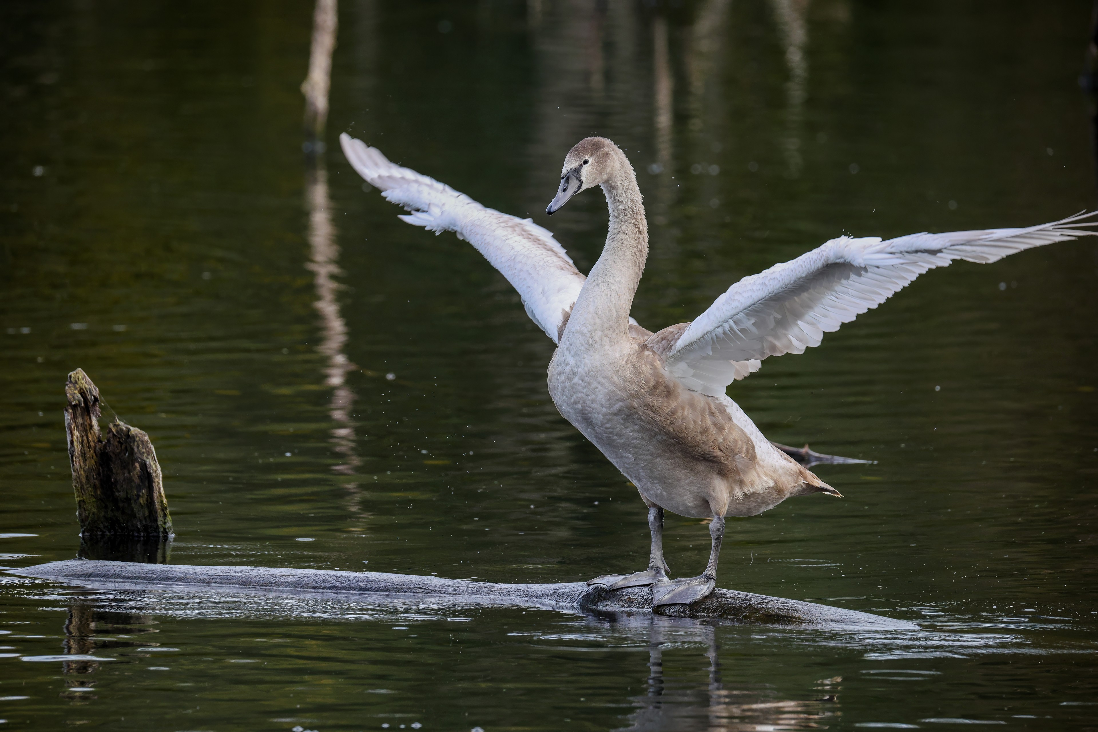 Höckerschwan vertreibt Trauerschwan