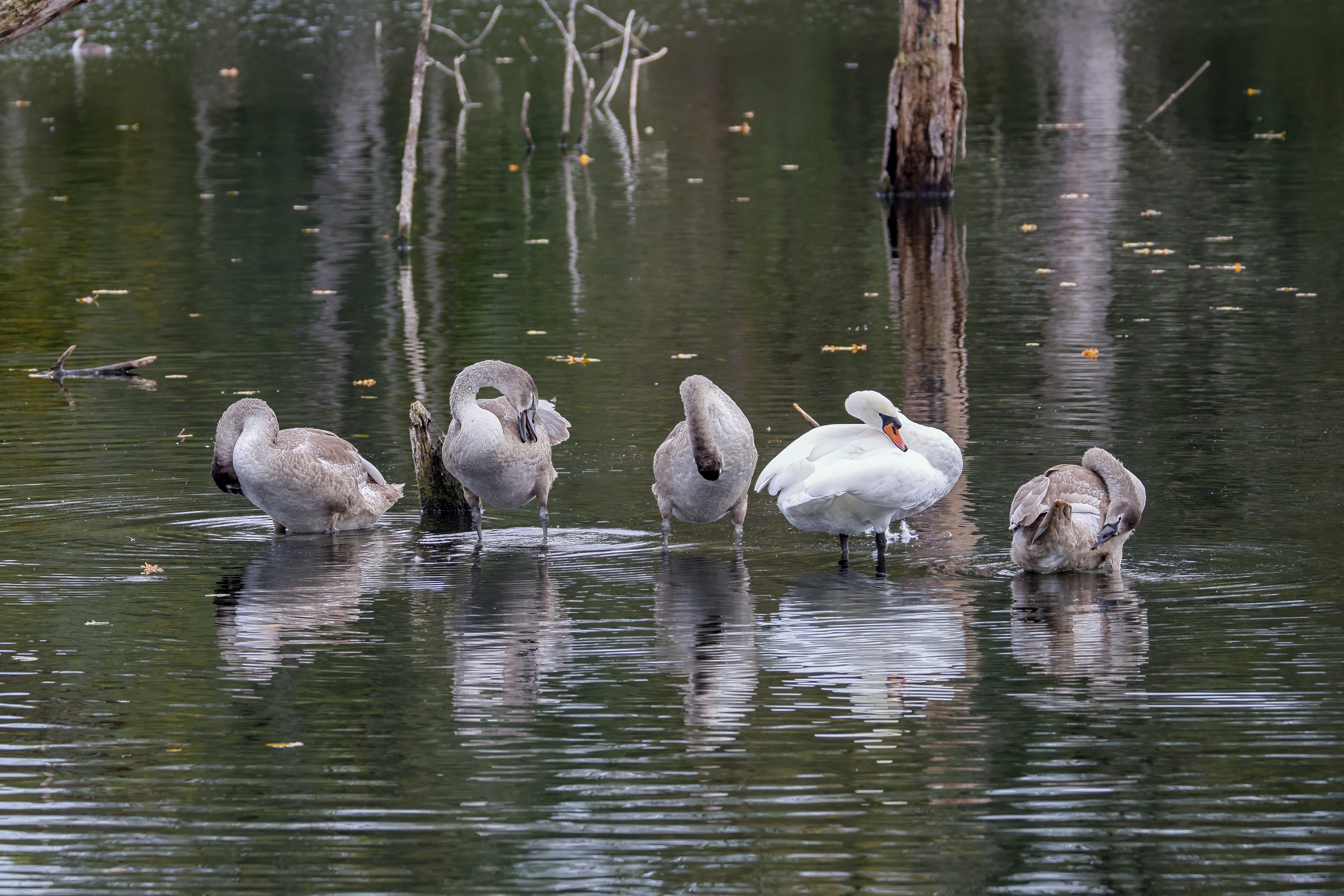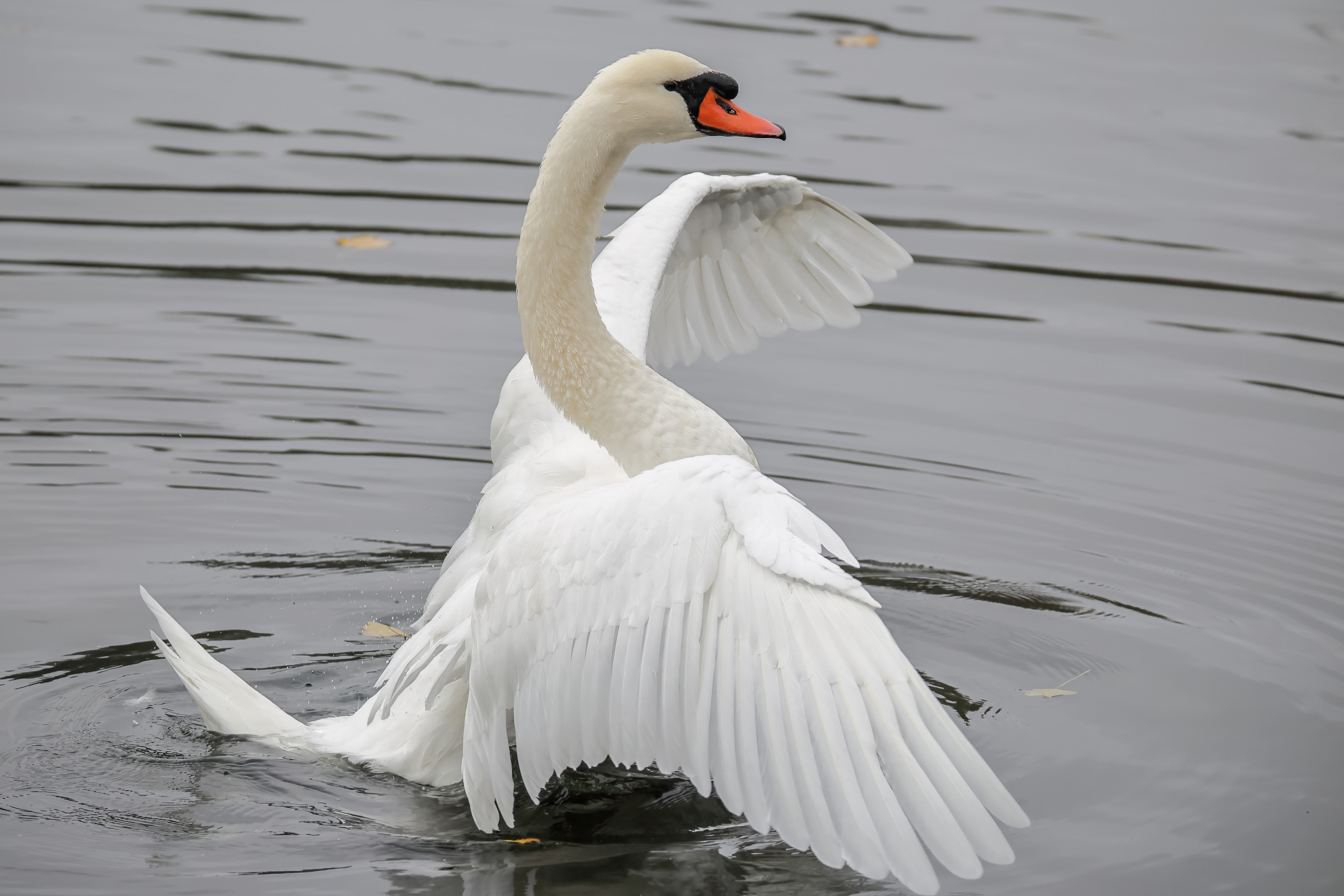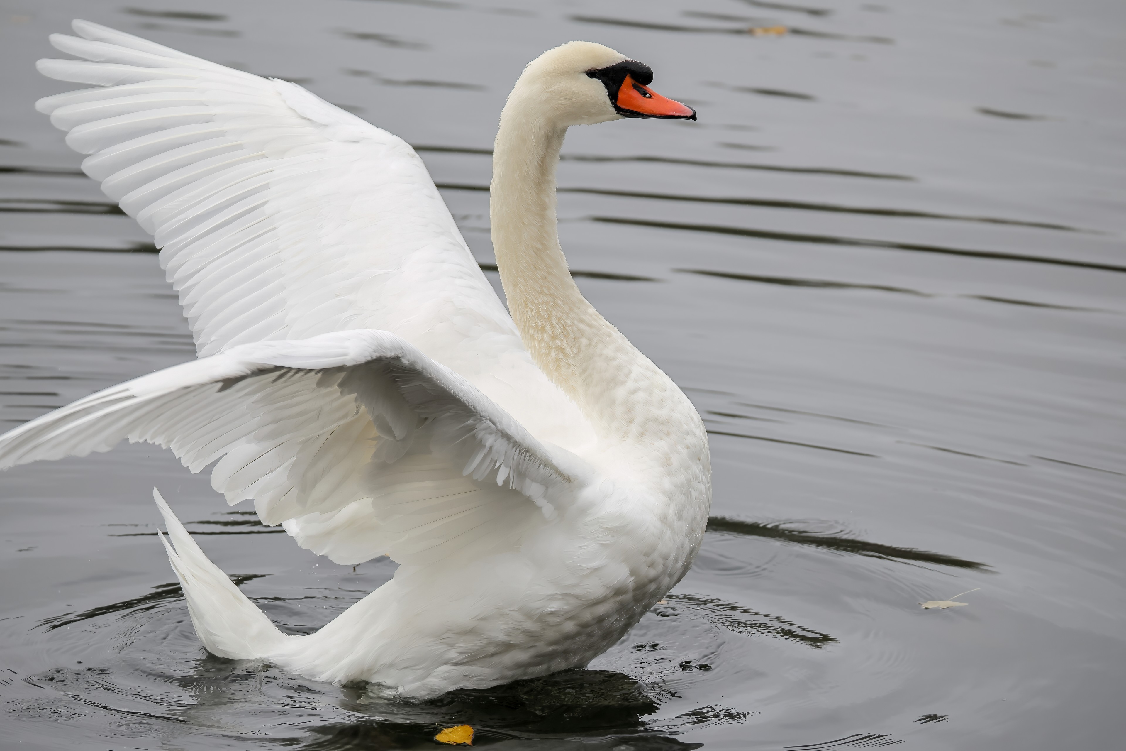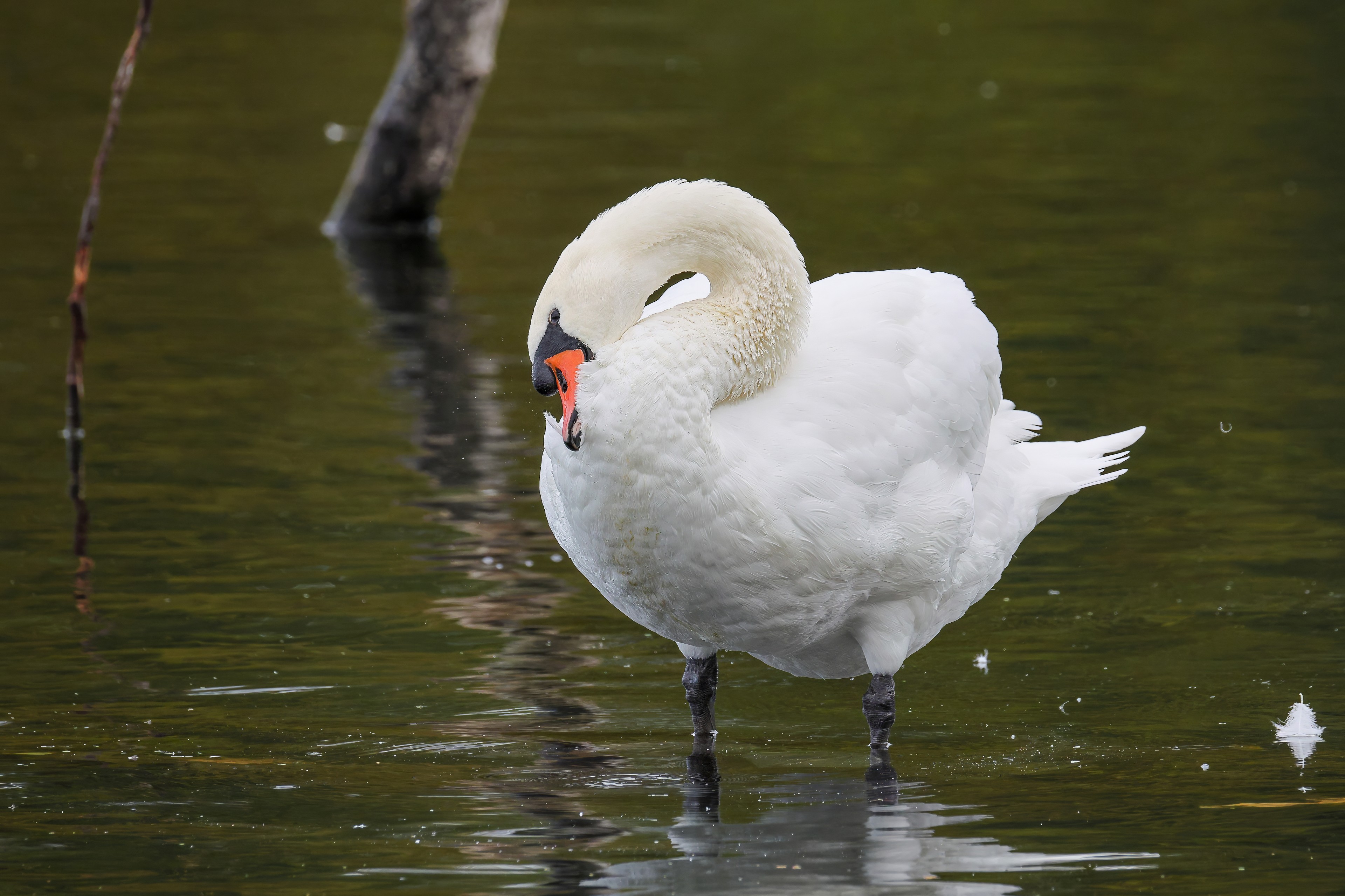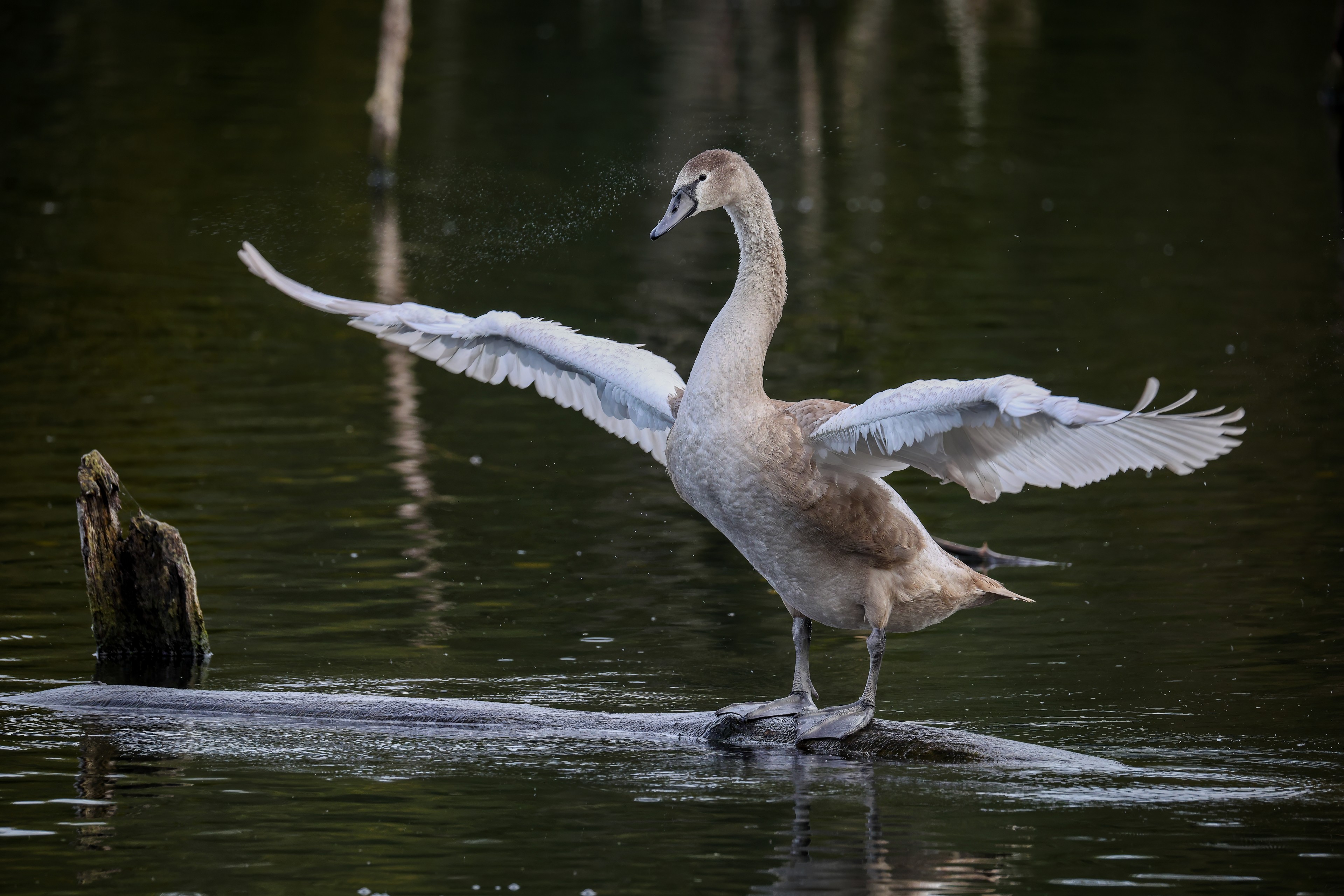Höckerschwan vertreibt Trauerschwan