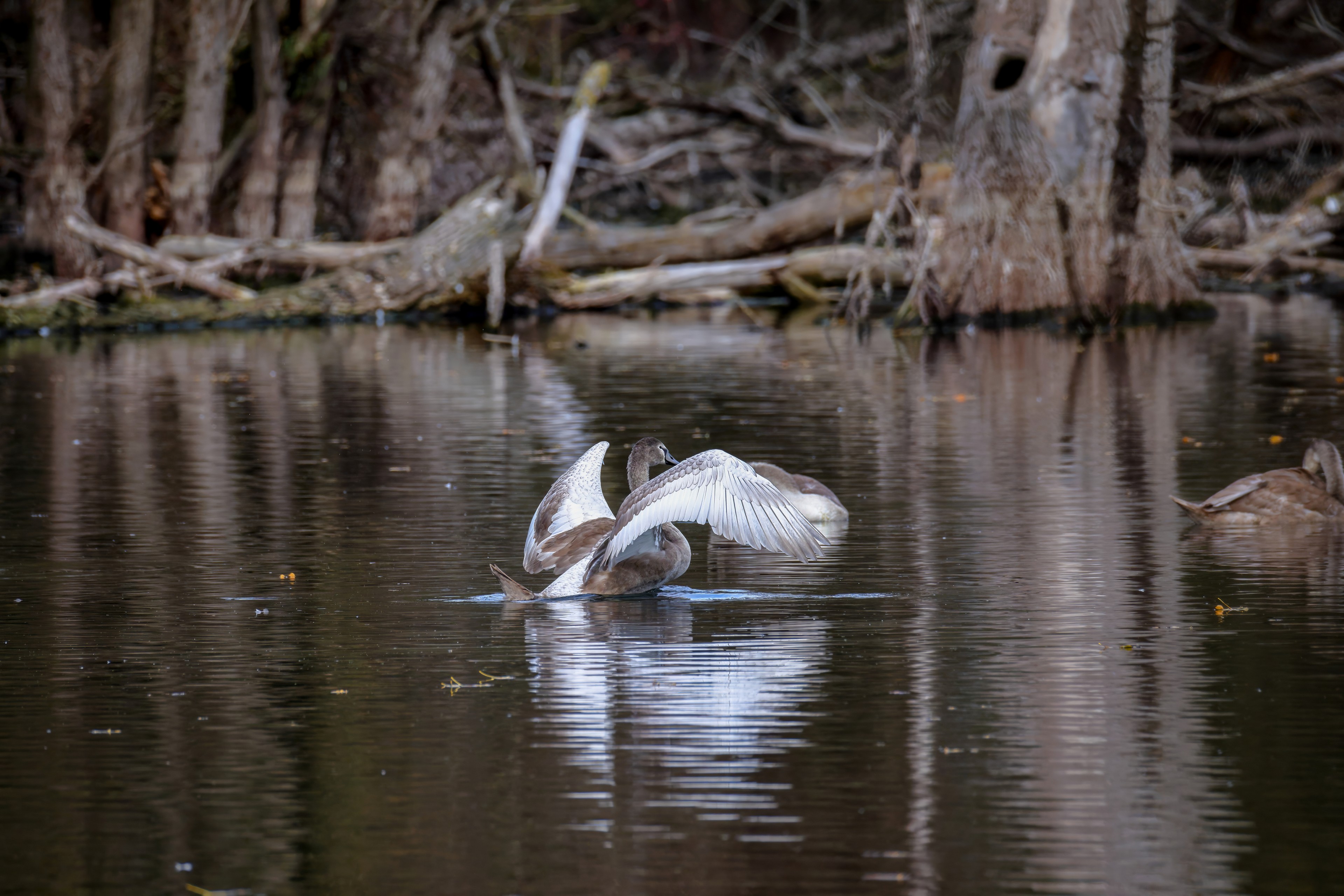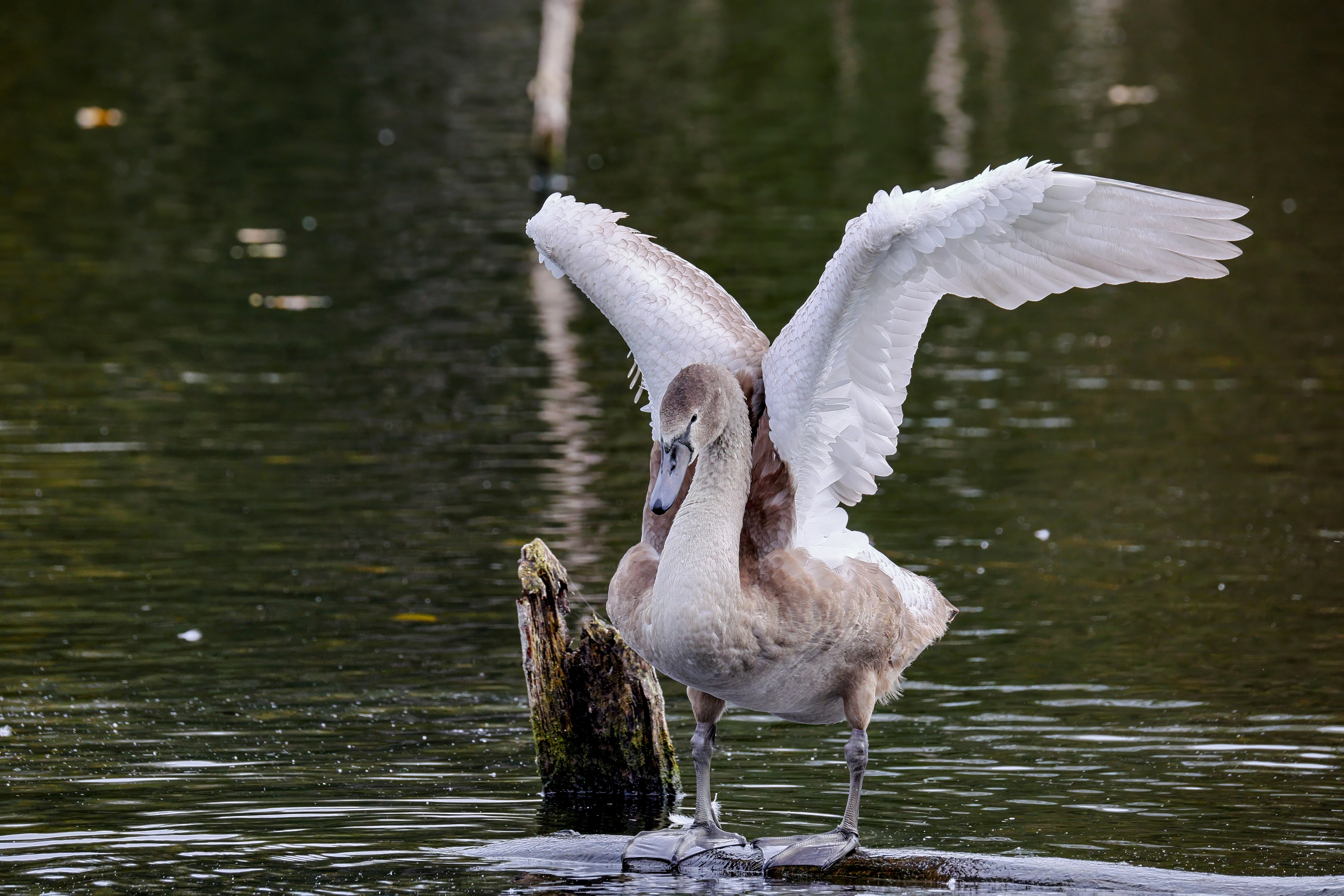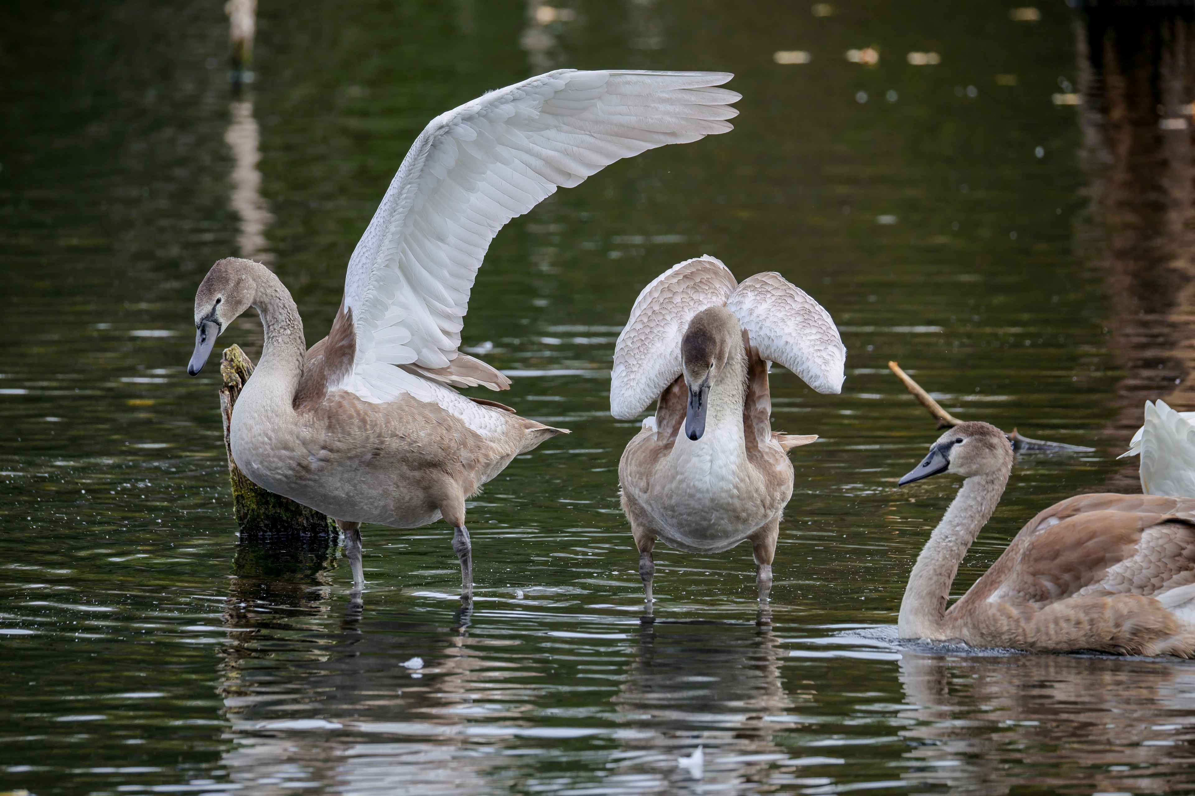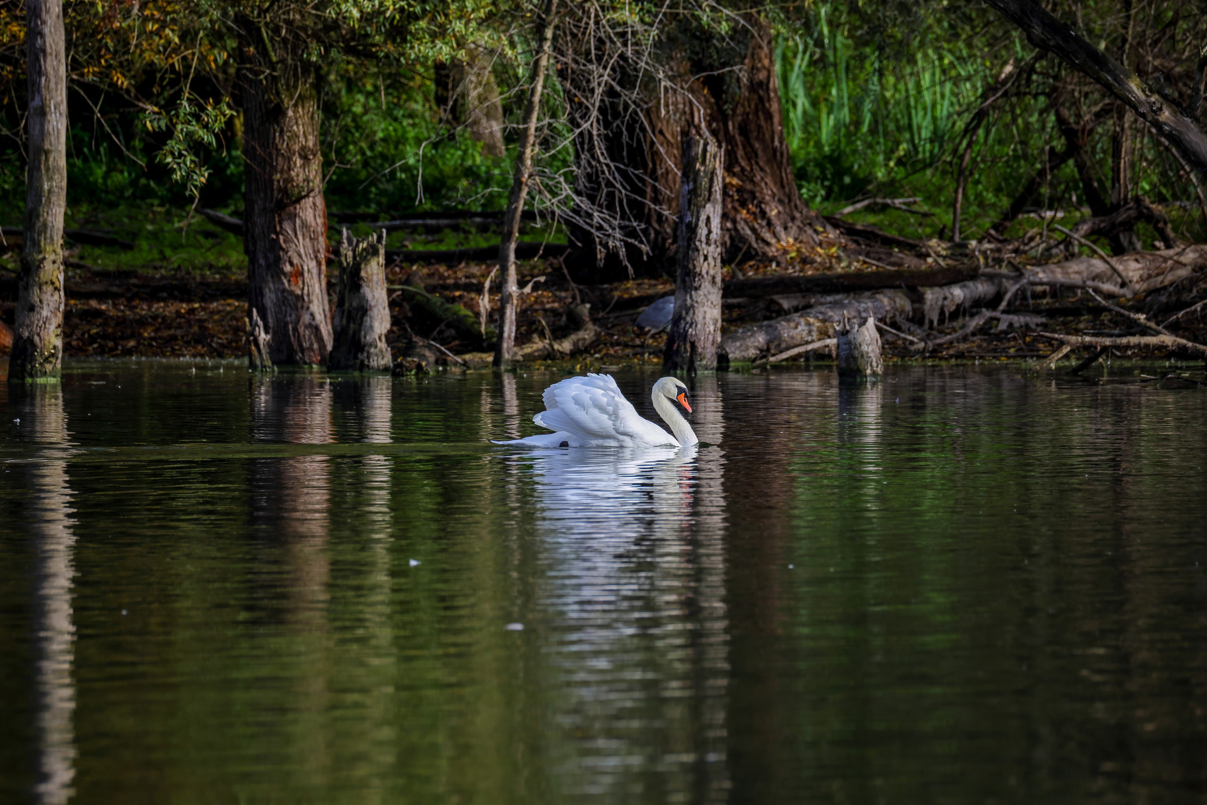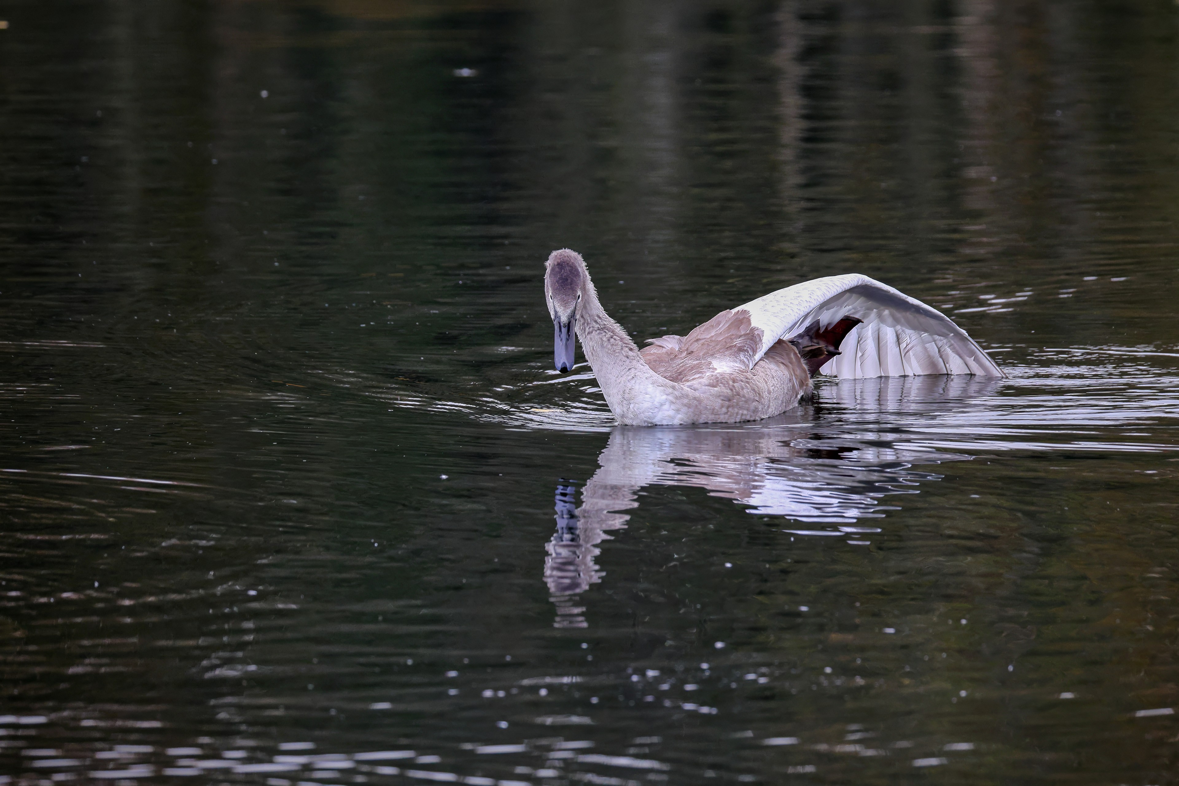 Höckerschwan vertreibt Trauerschwan