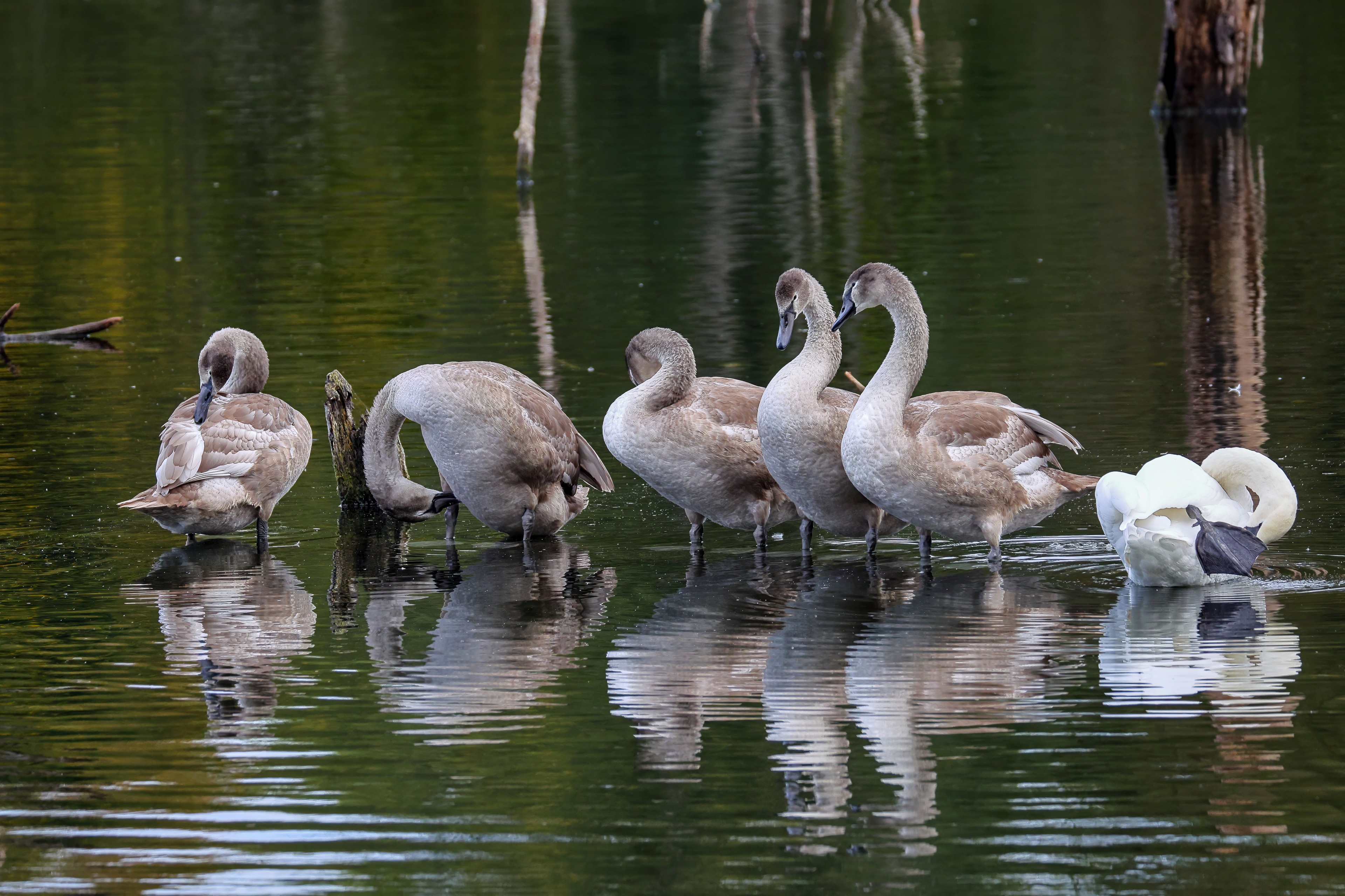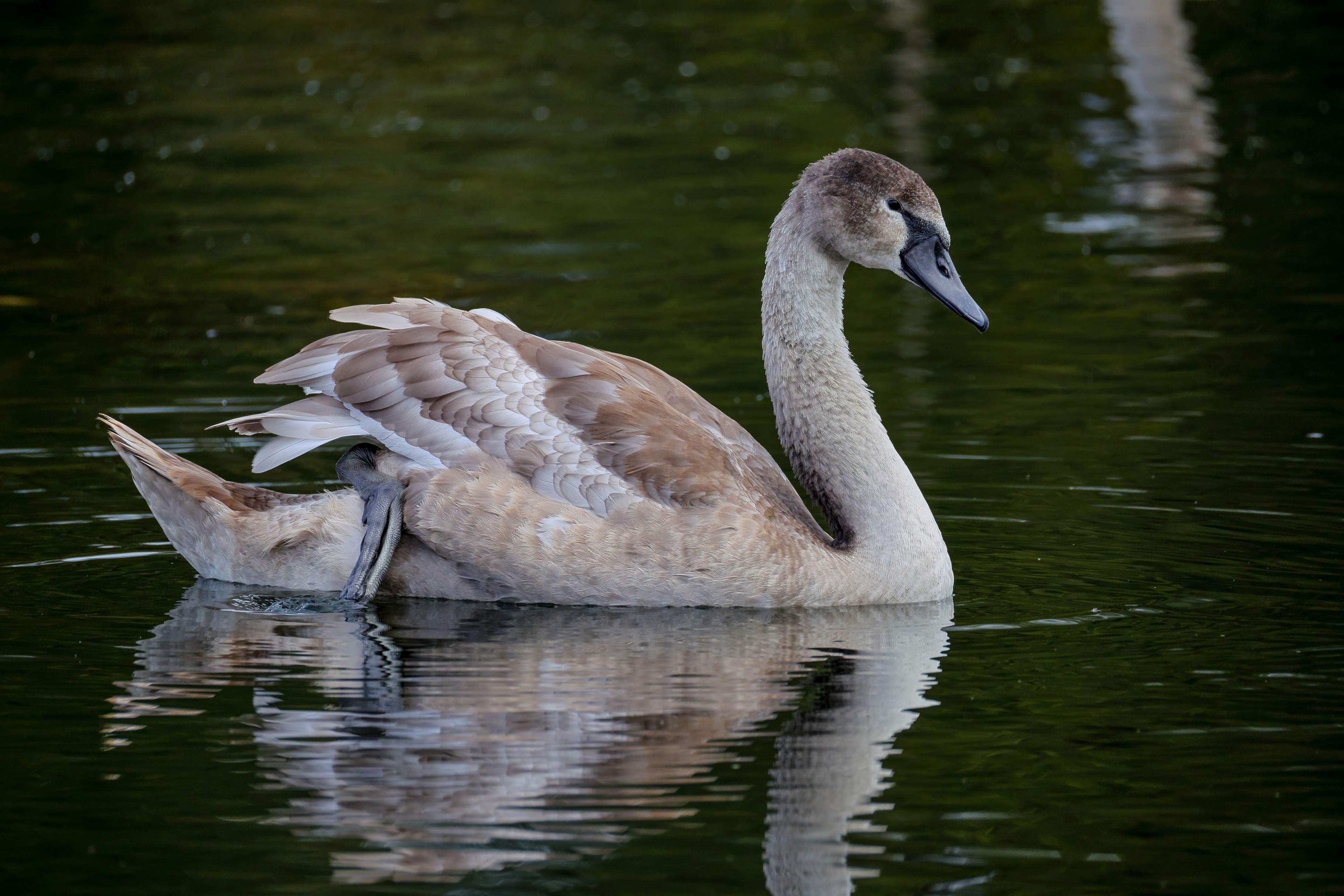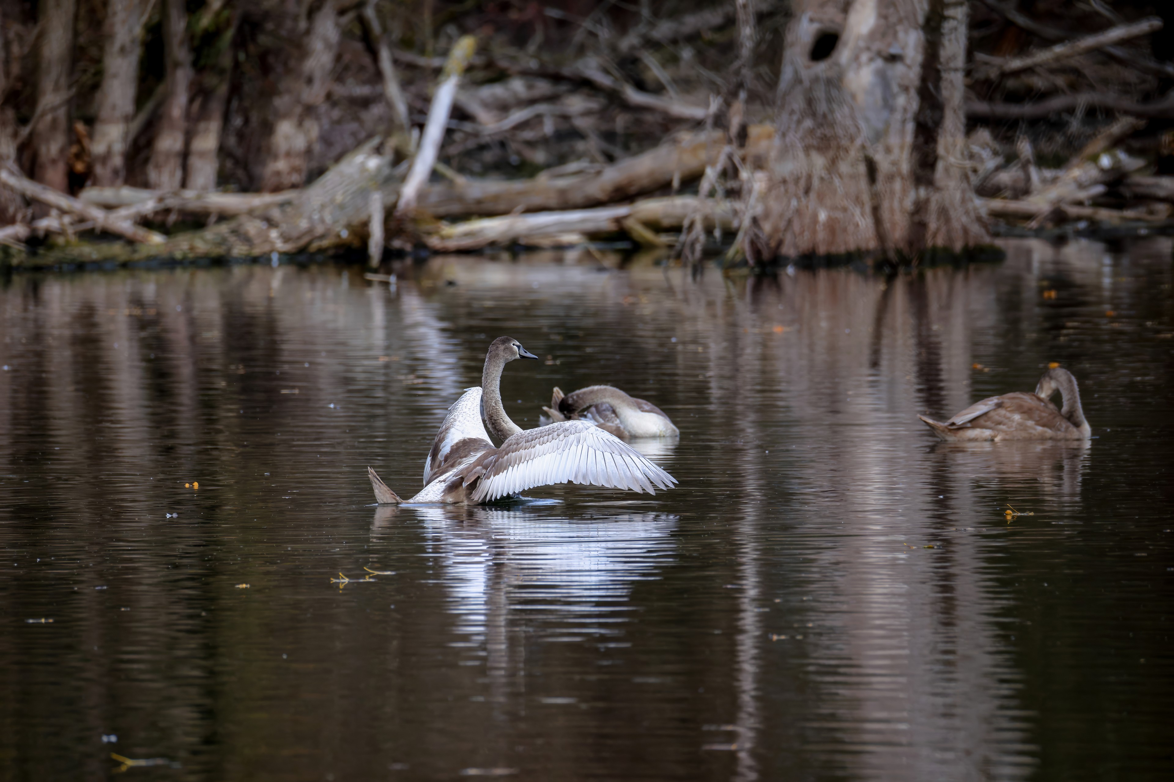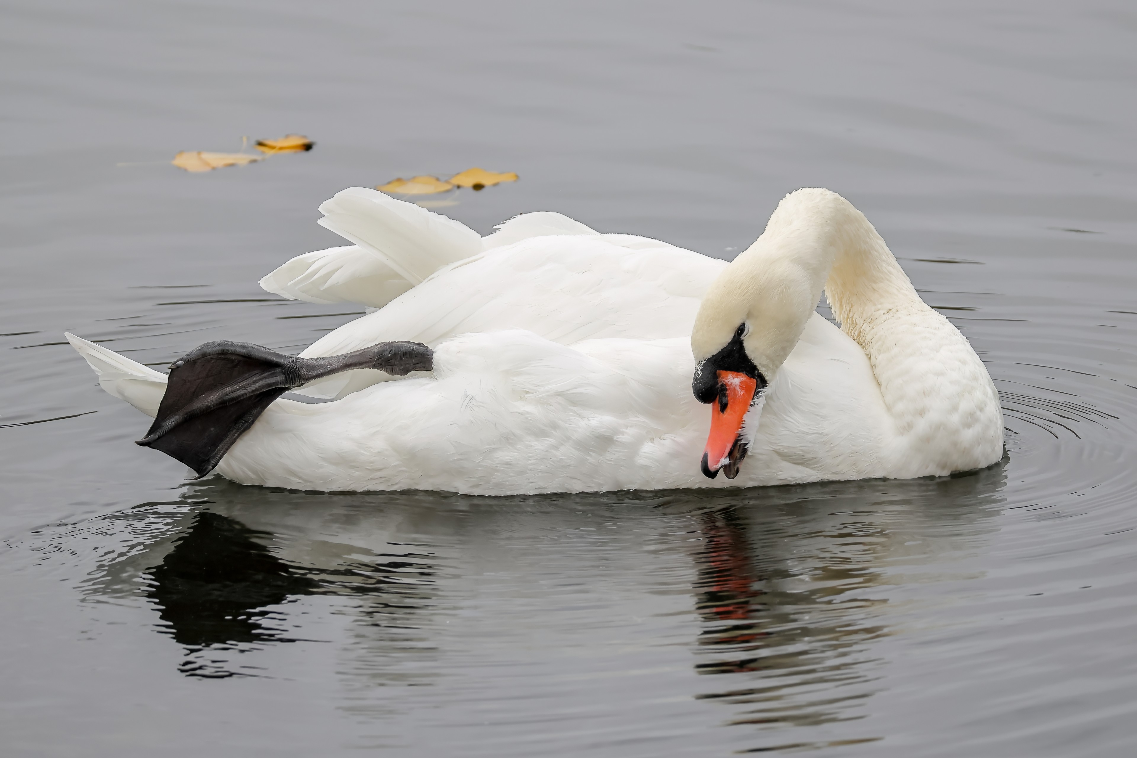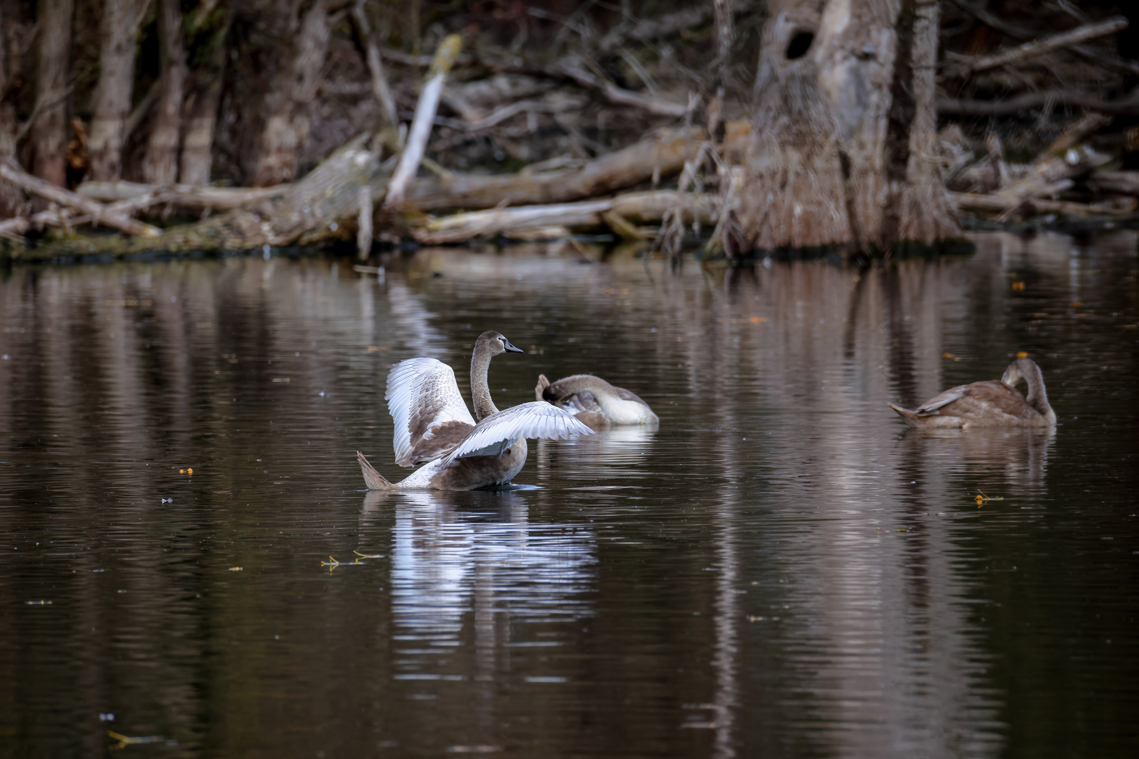 Höckerschwan vertreibt Trauerschwan