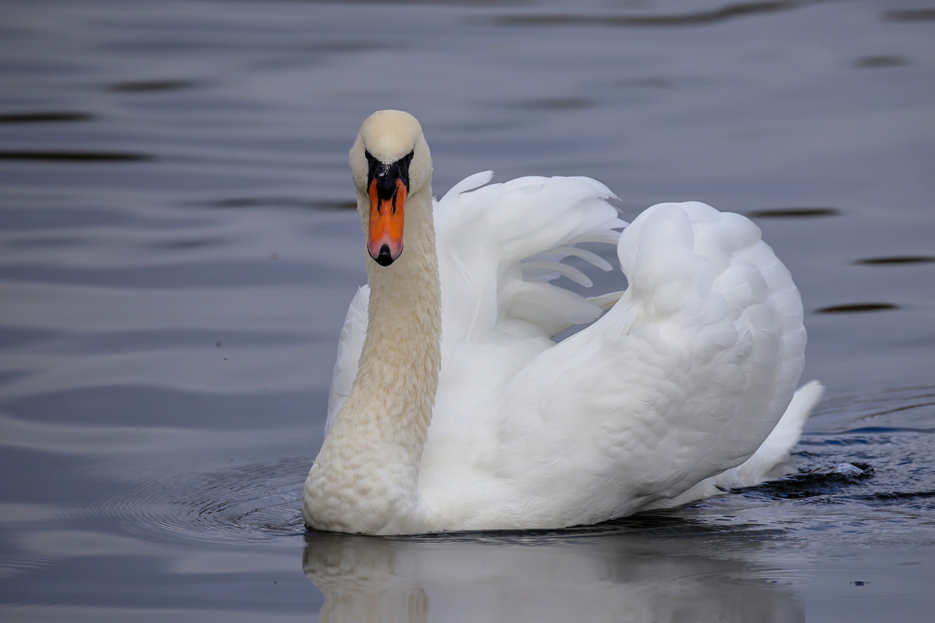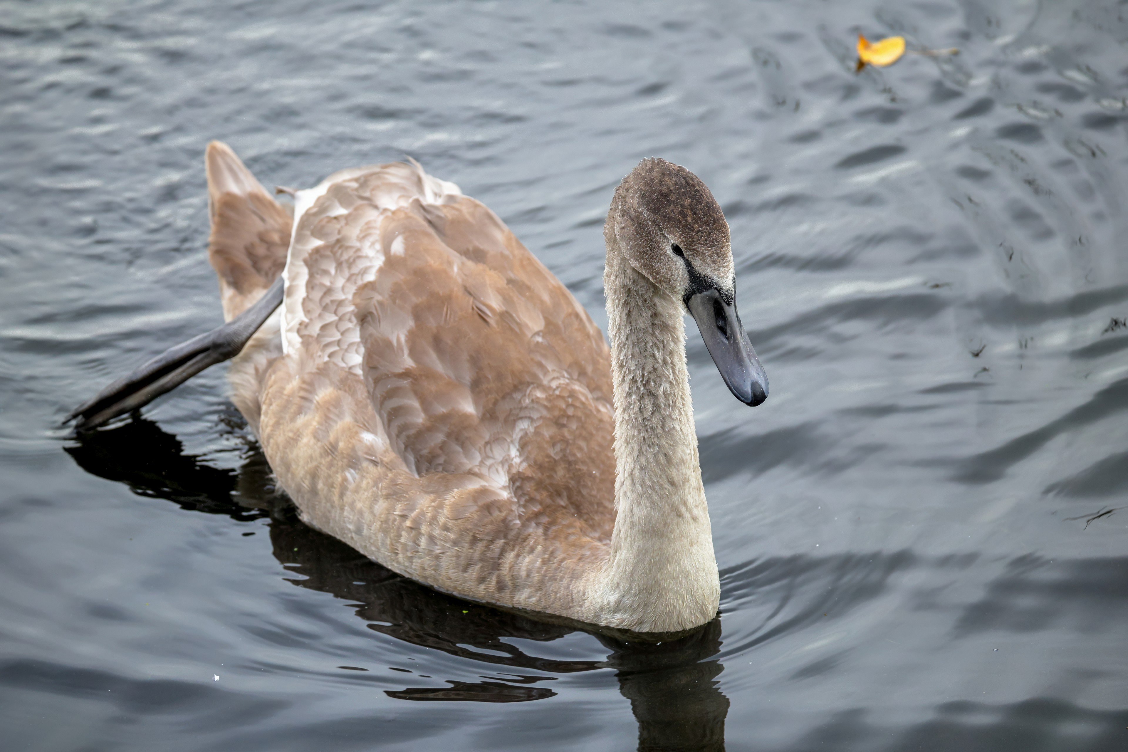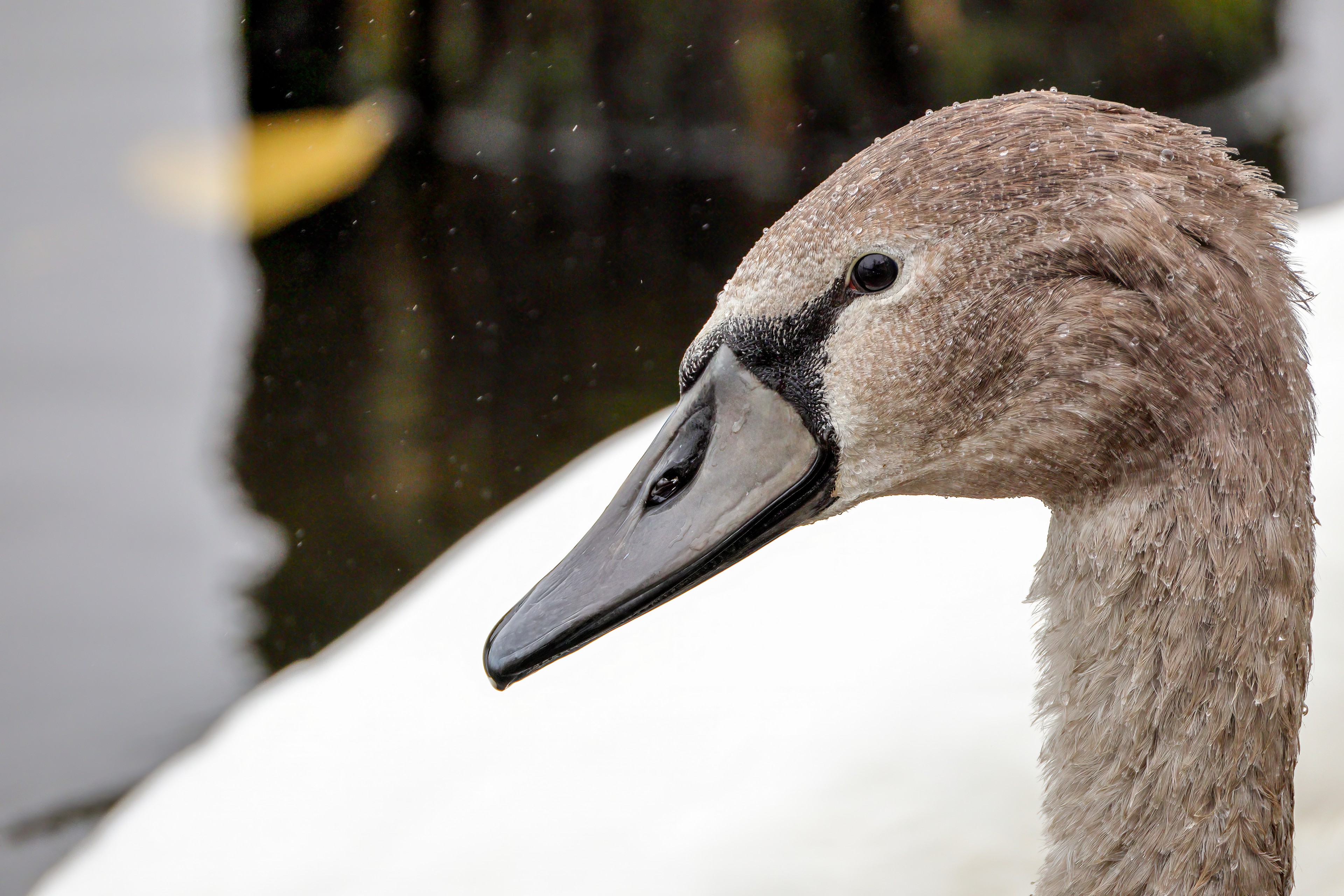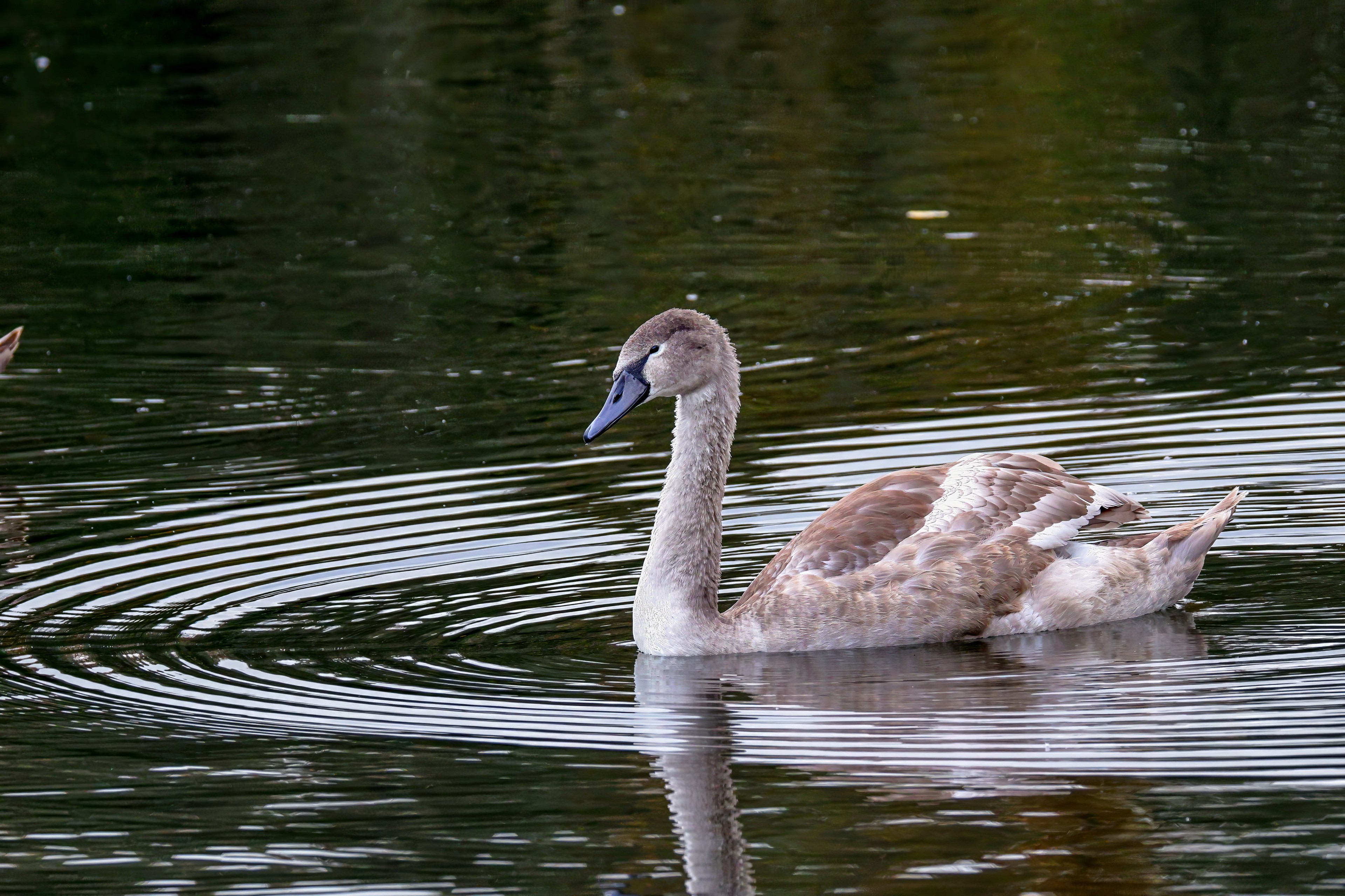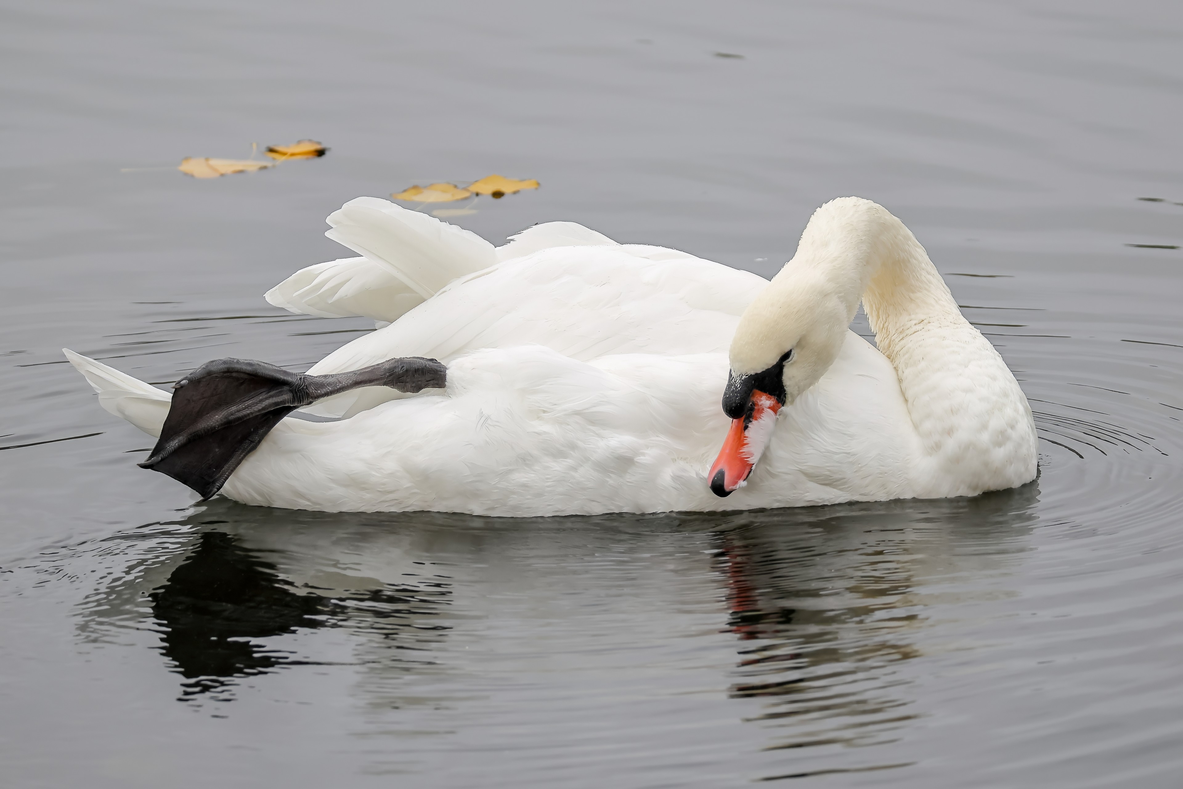 Höckerschwan vertreibt Trauerschwan