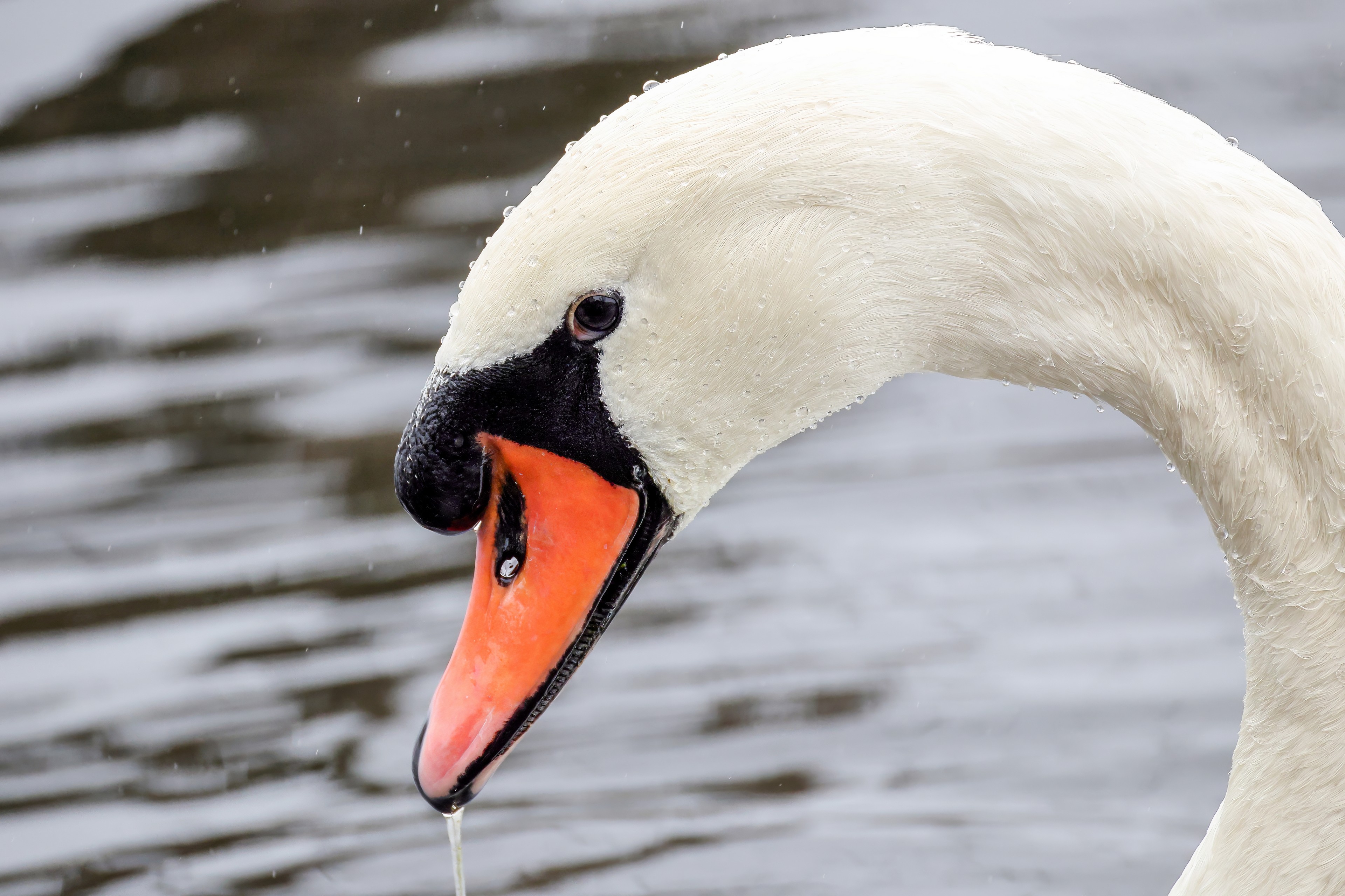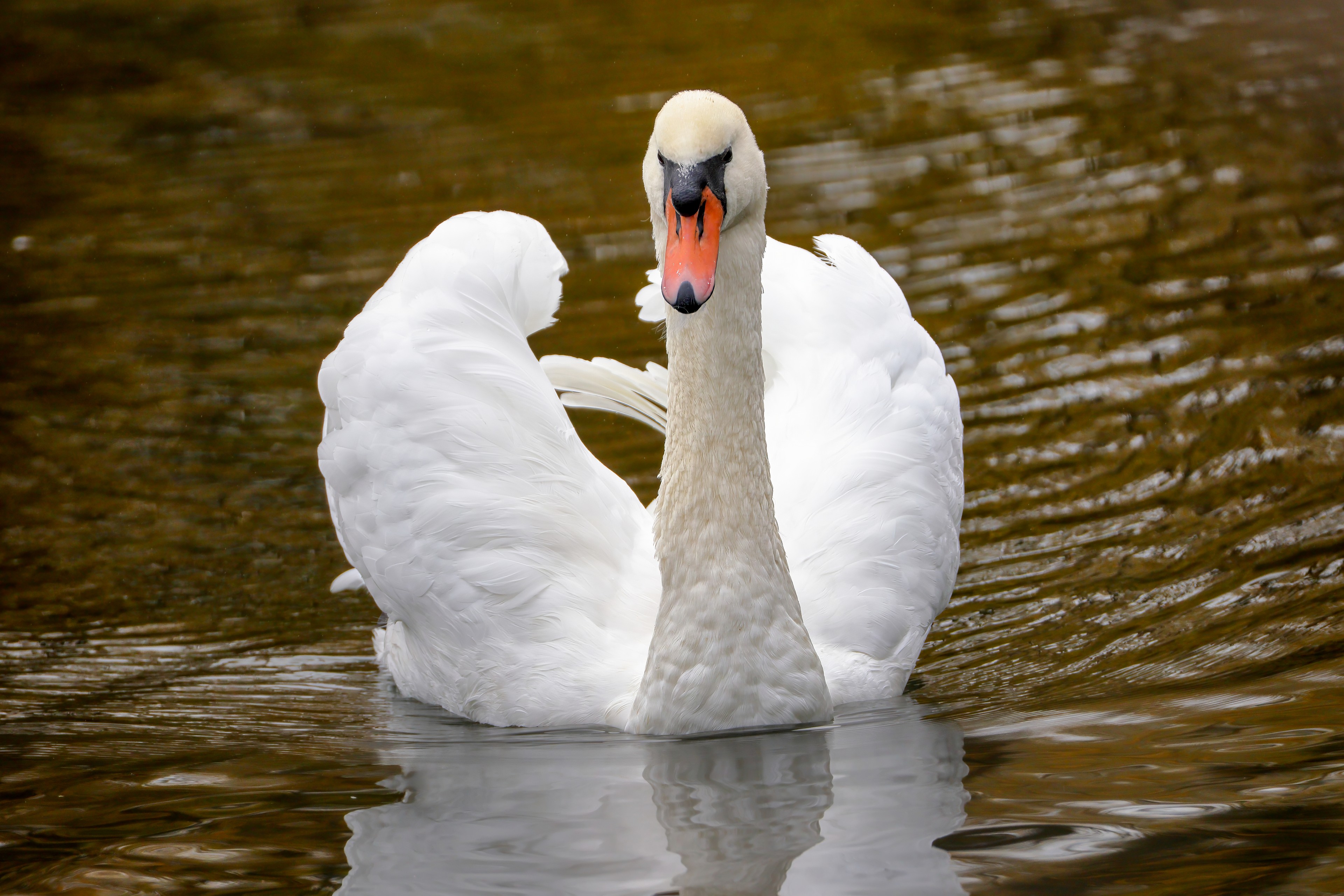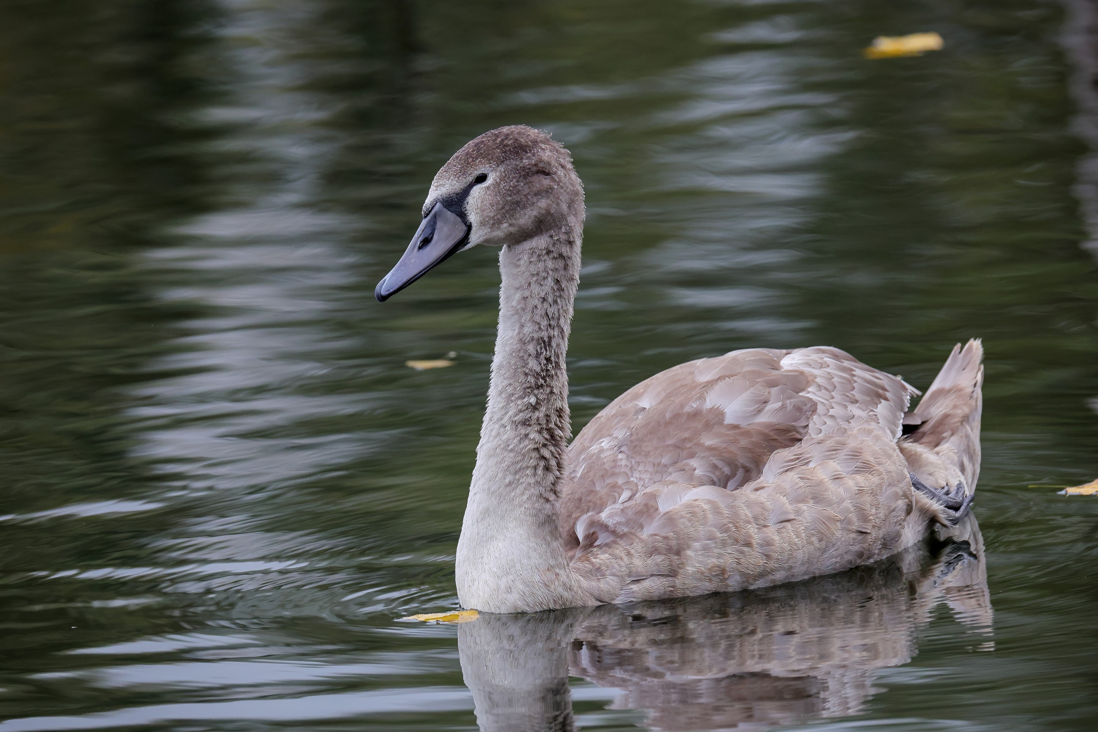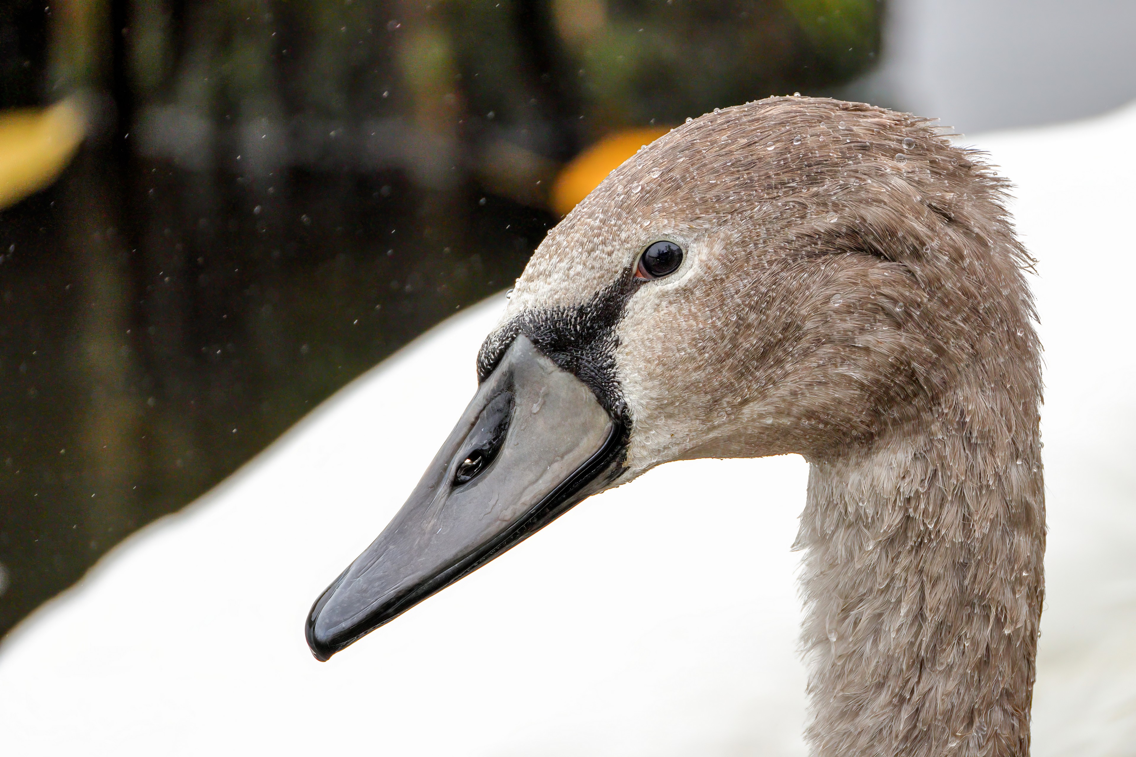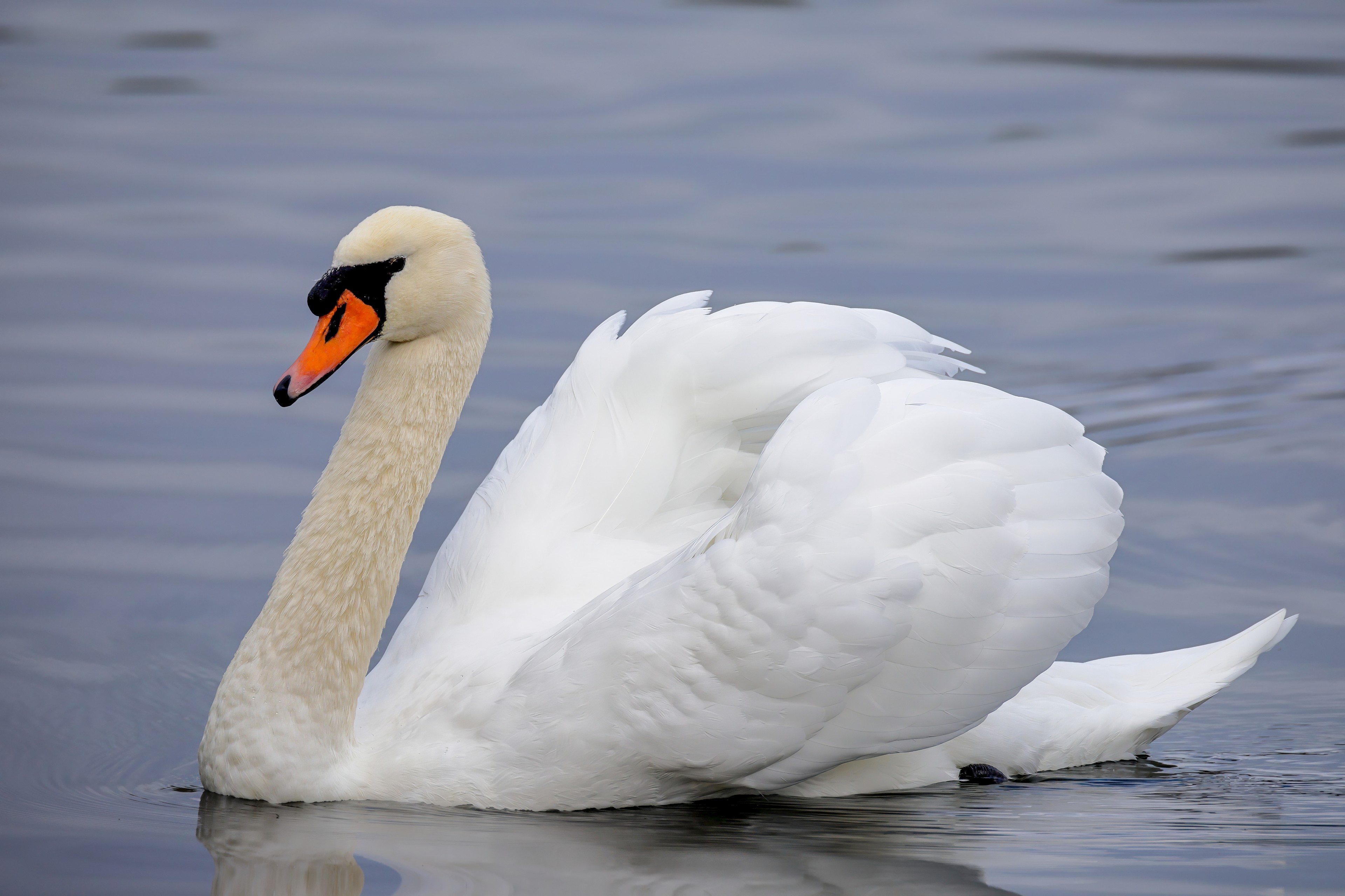 Höckerschwan vertreibt Trauerschwan