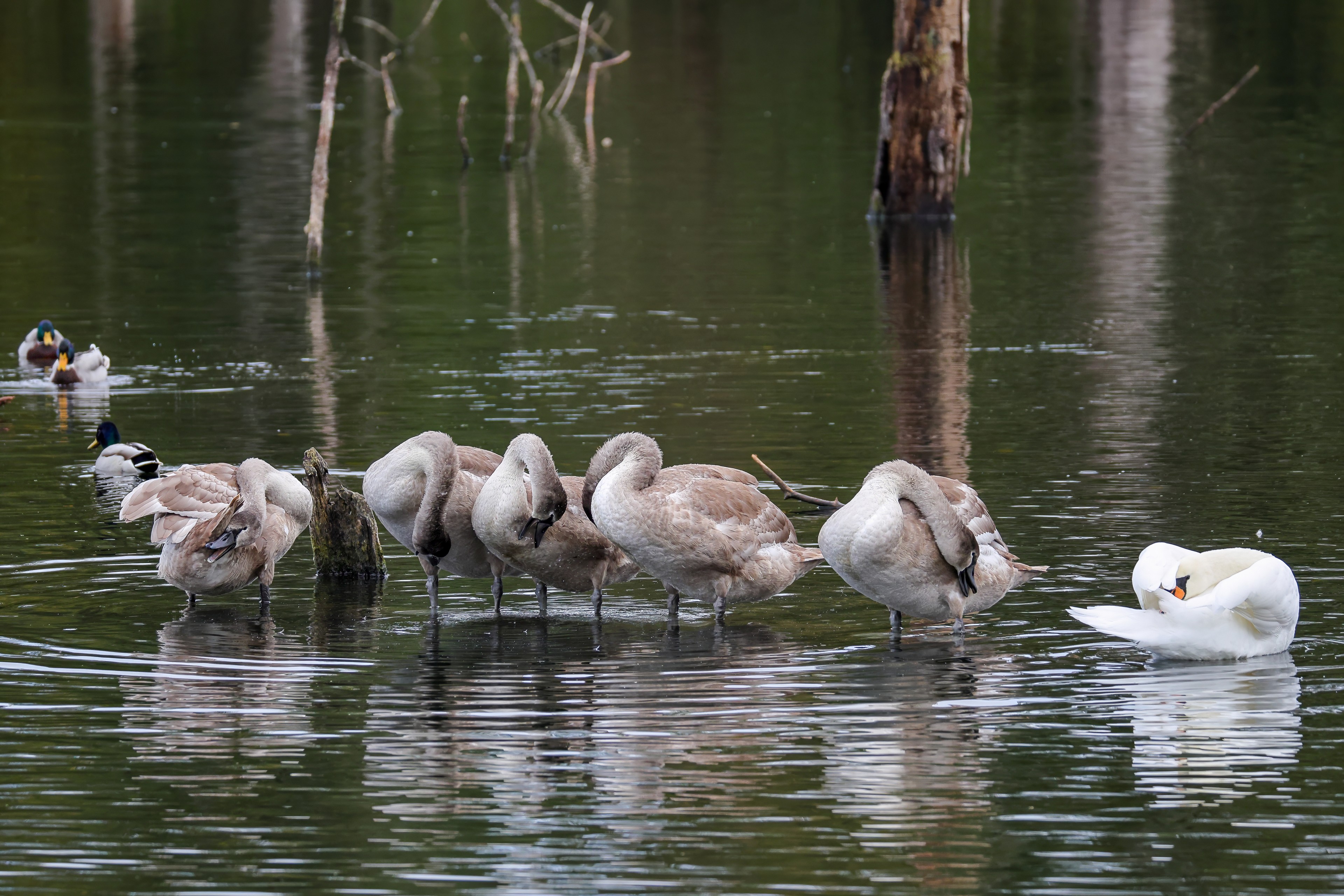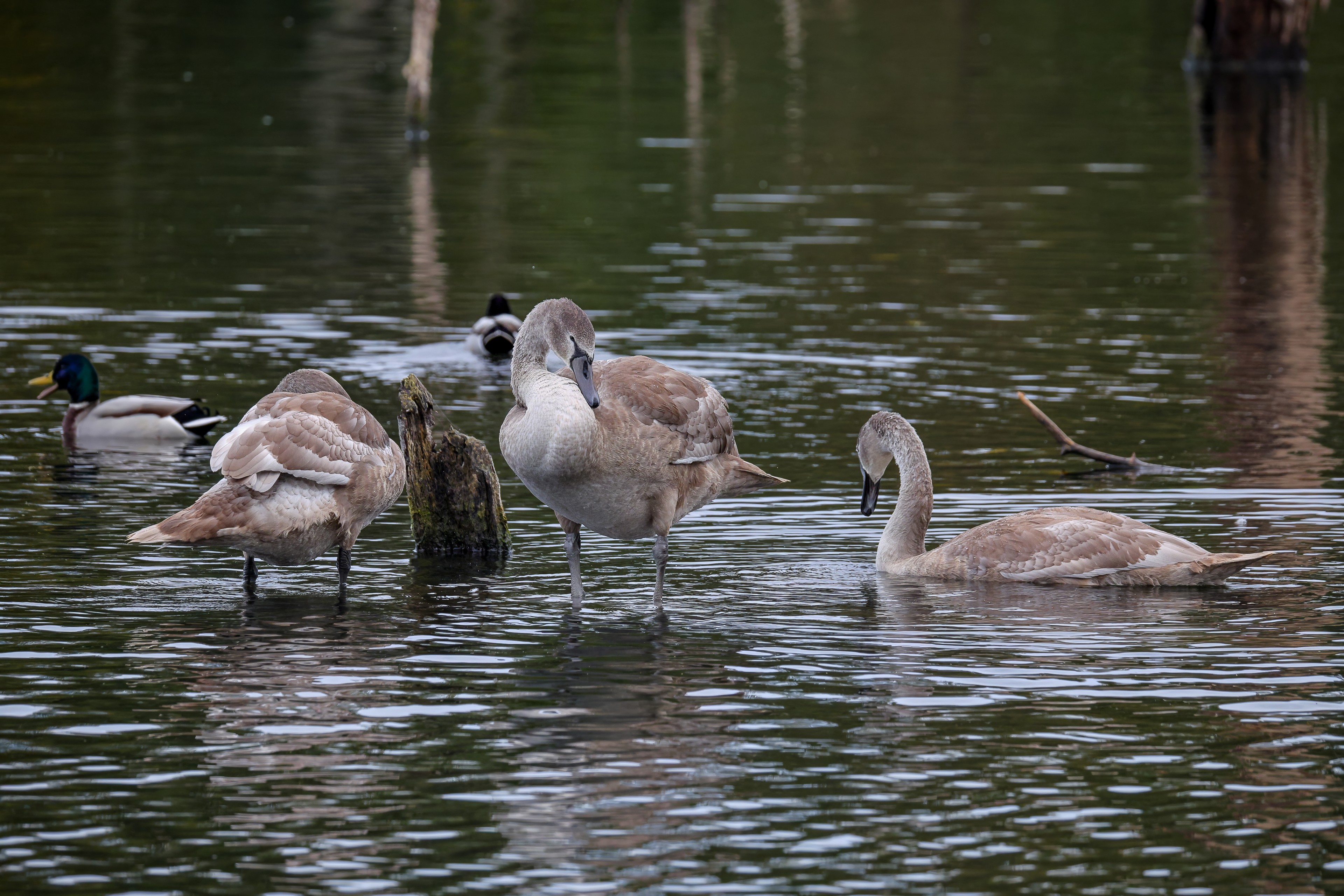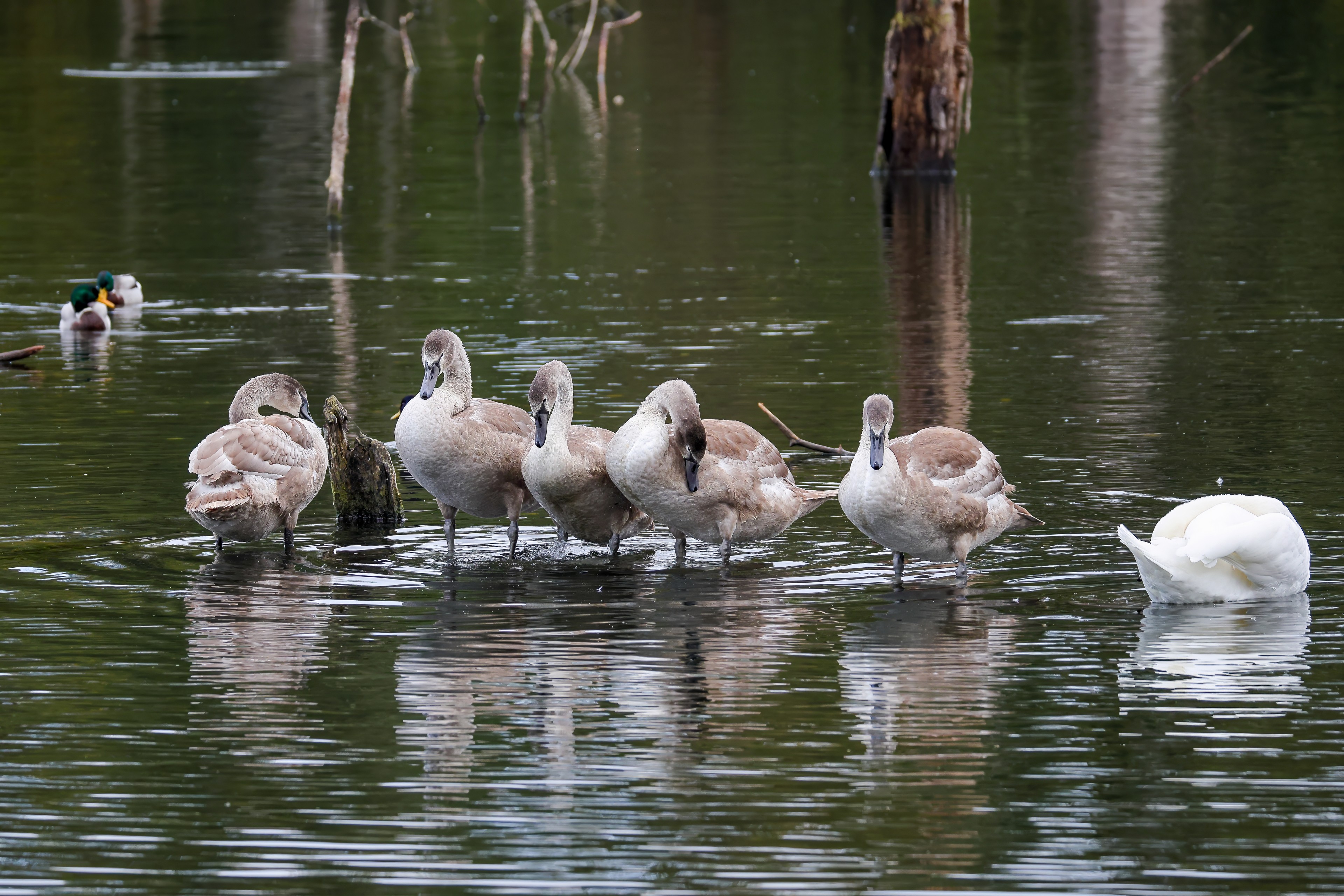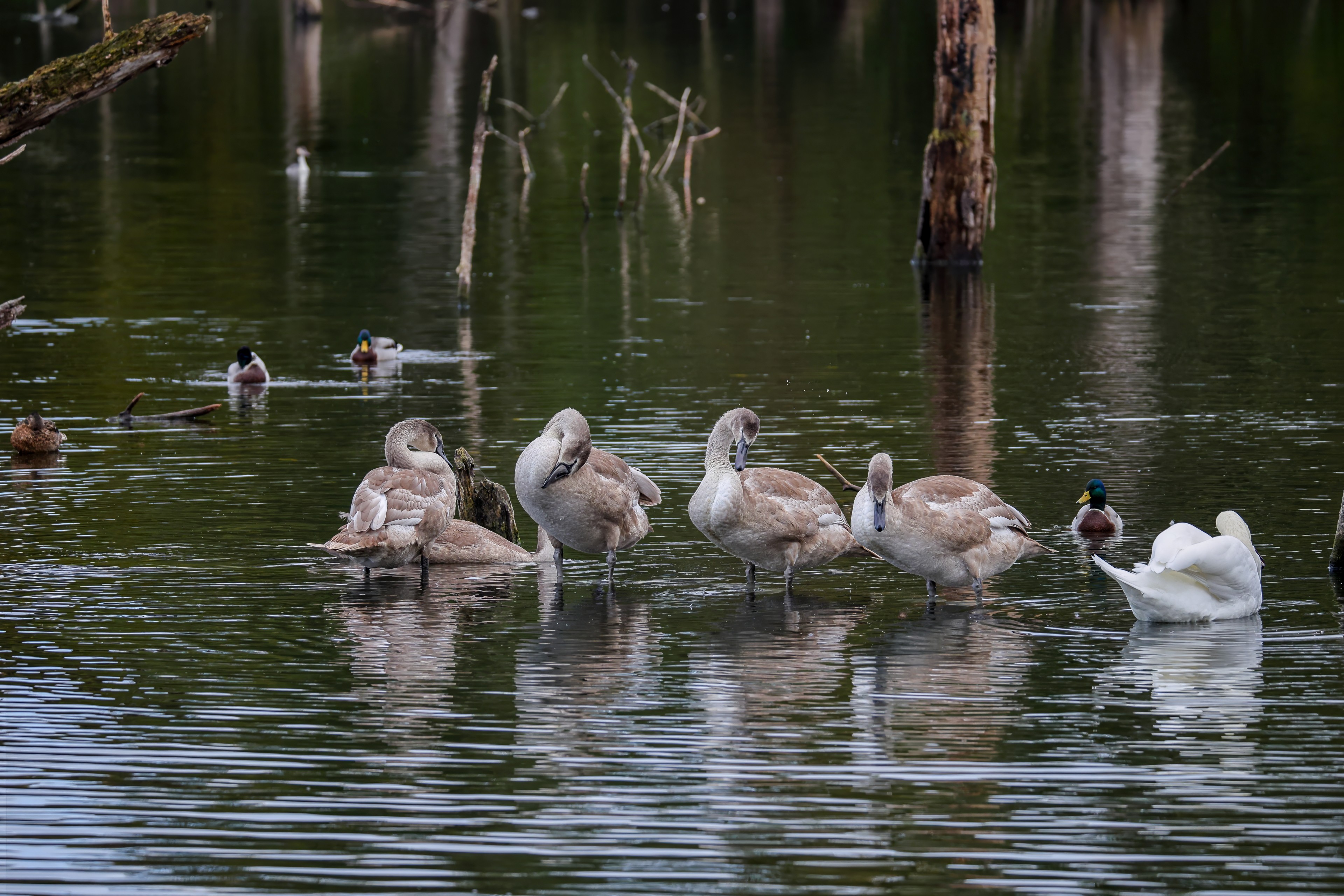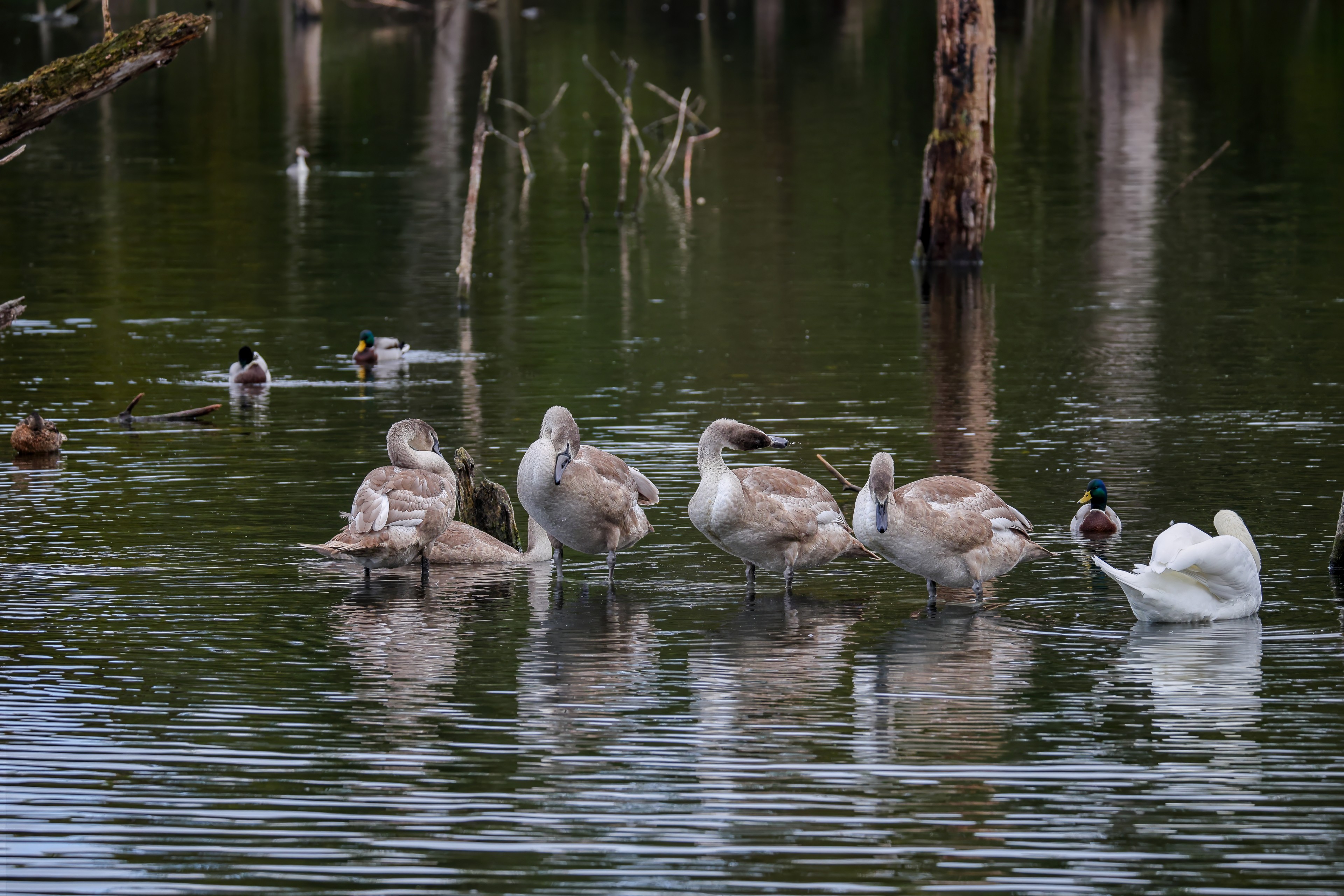 Erster Ausflug der jungen Blässrallen