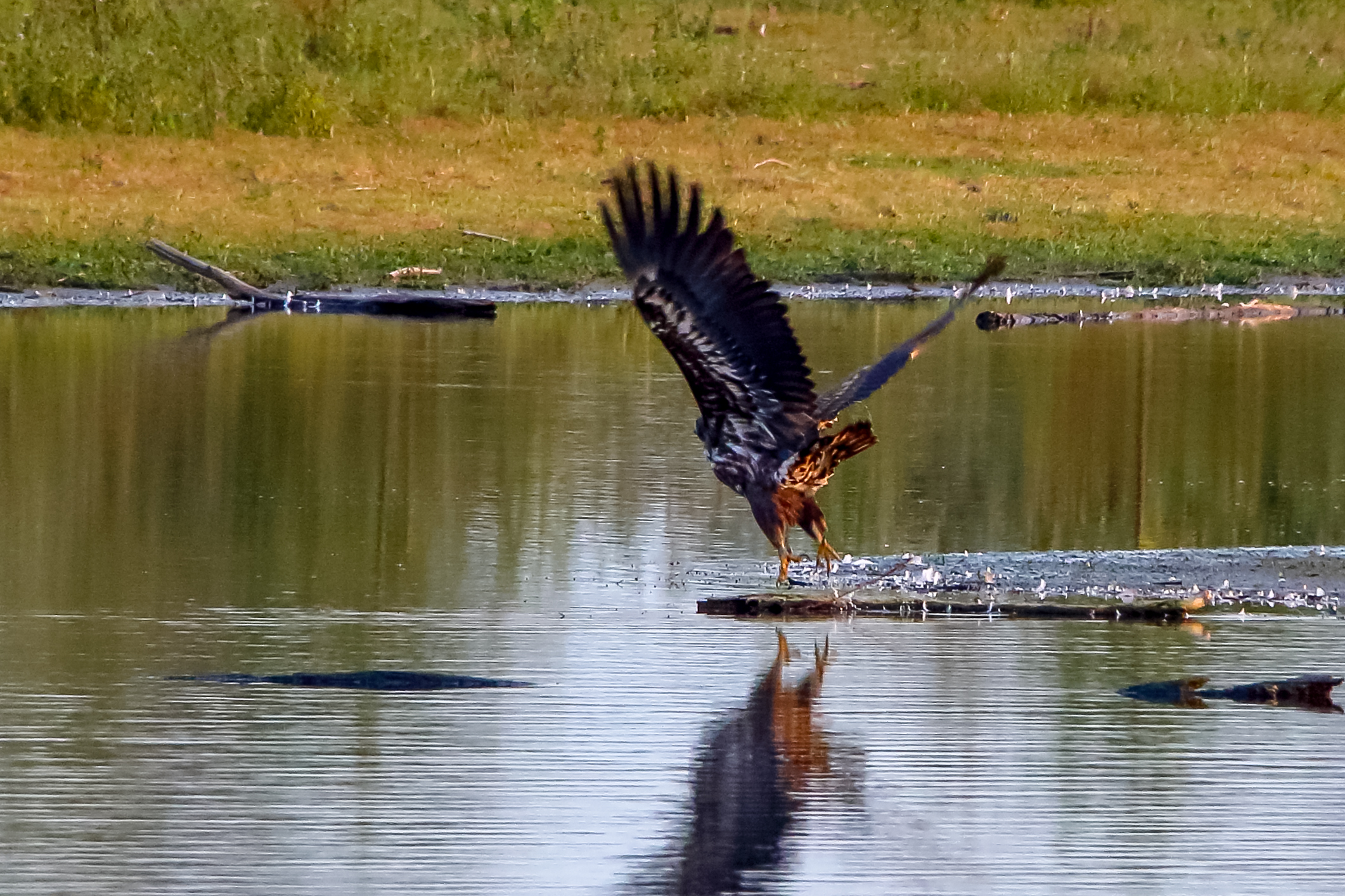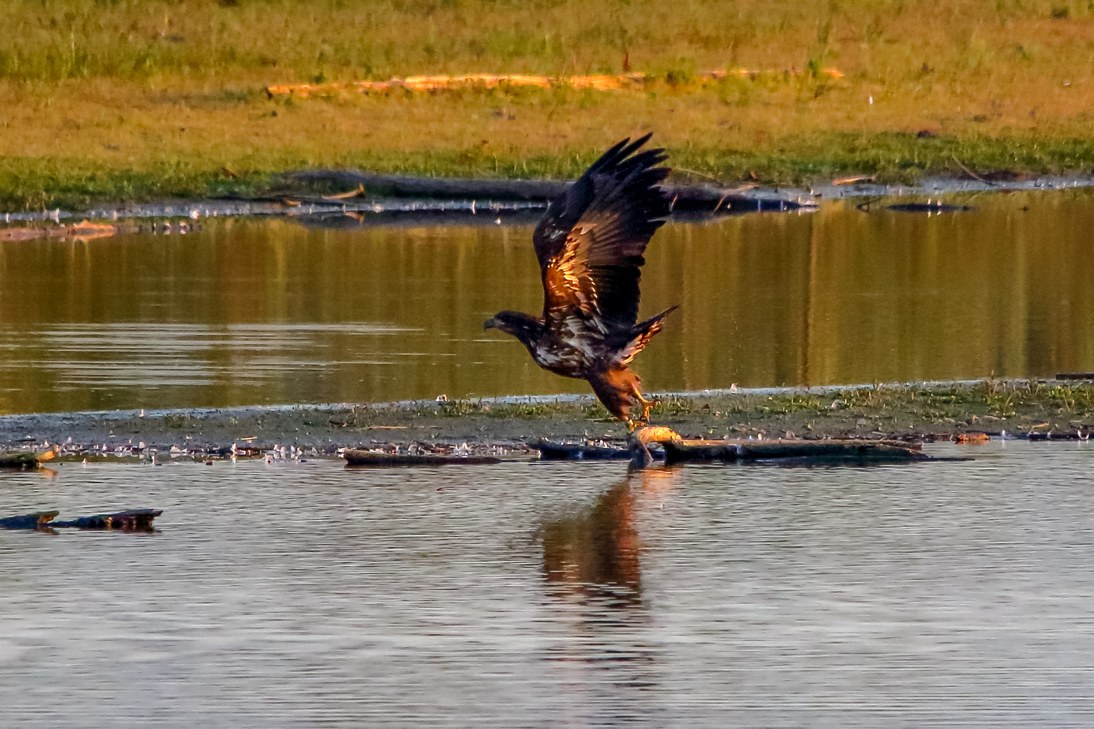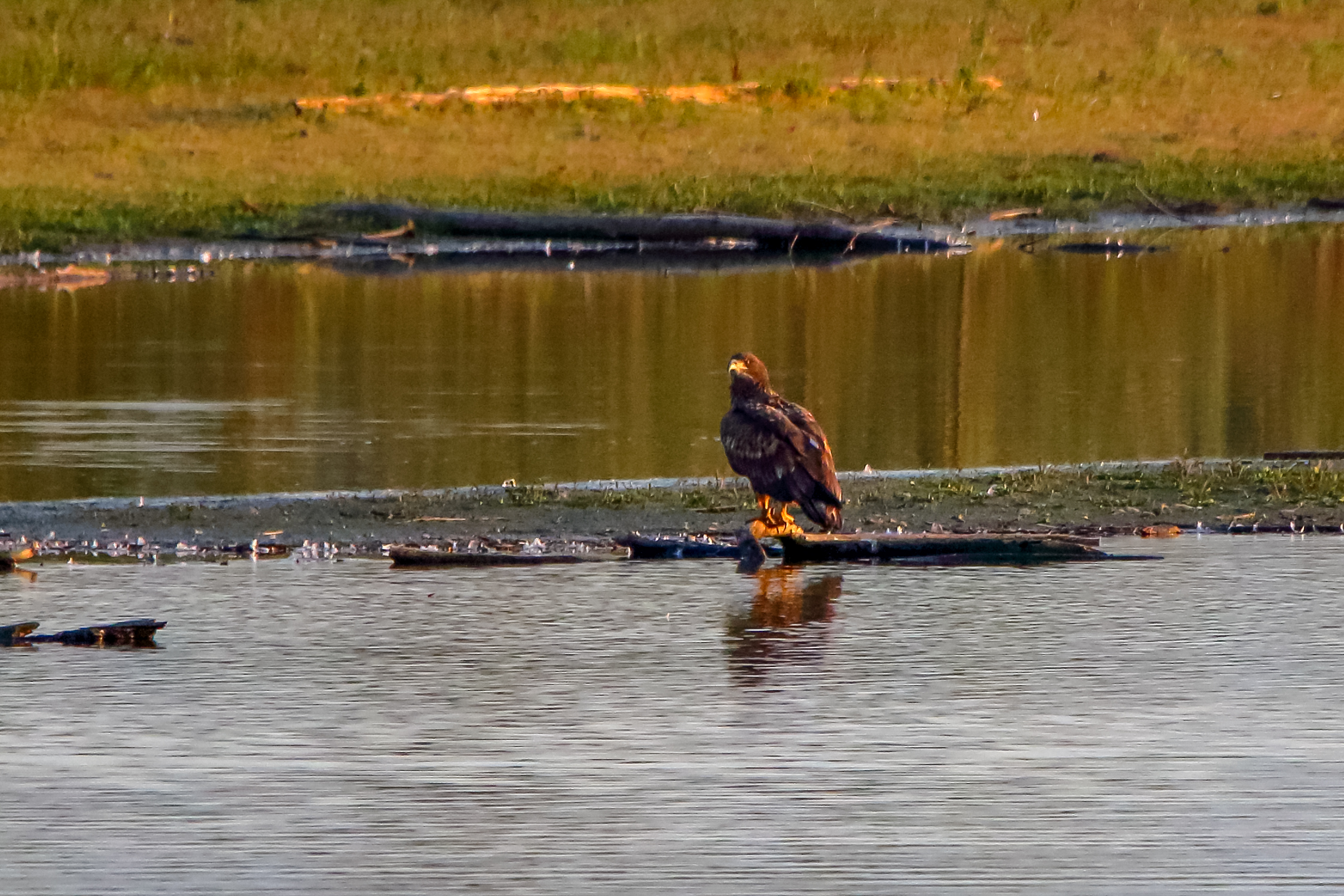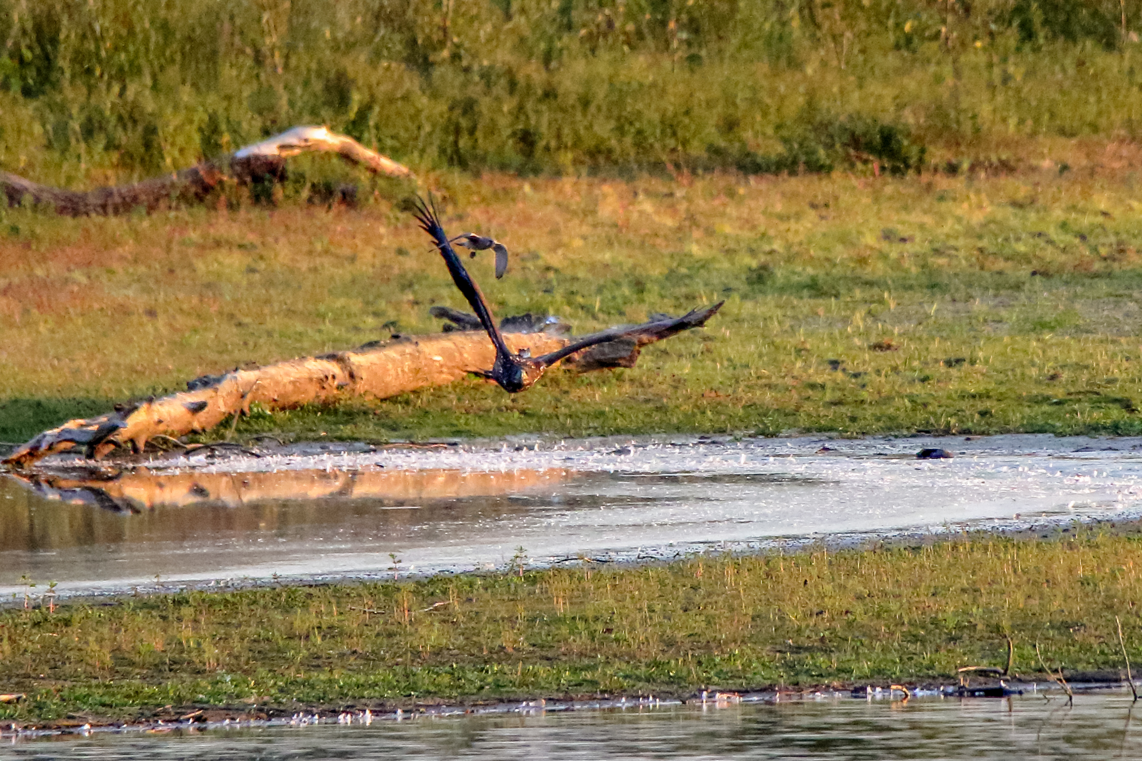 Jungseeadler und streßender Wanderfalke im Restlicht der Abendsonne