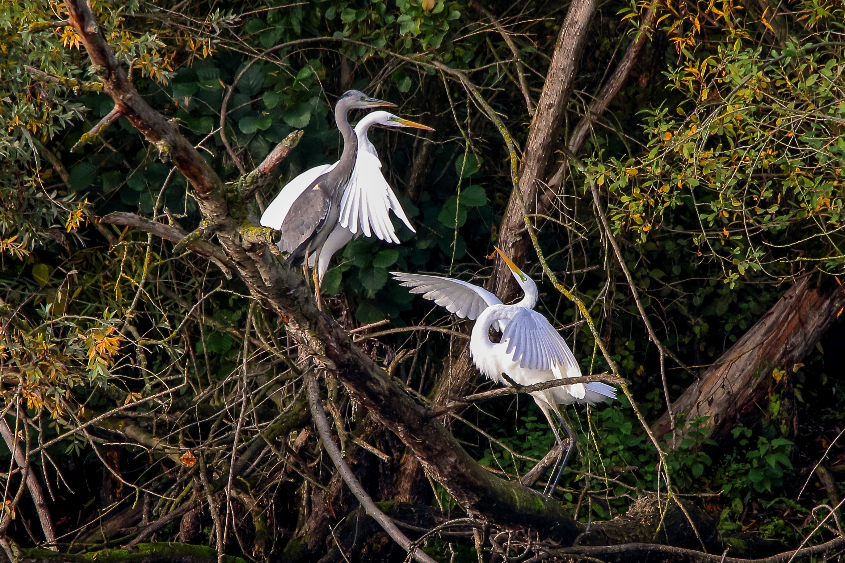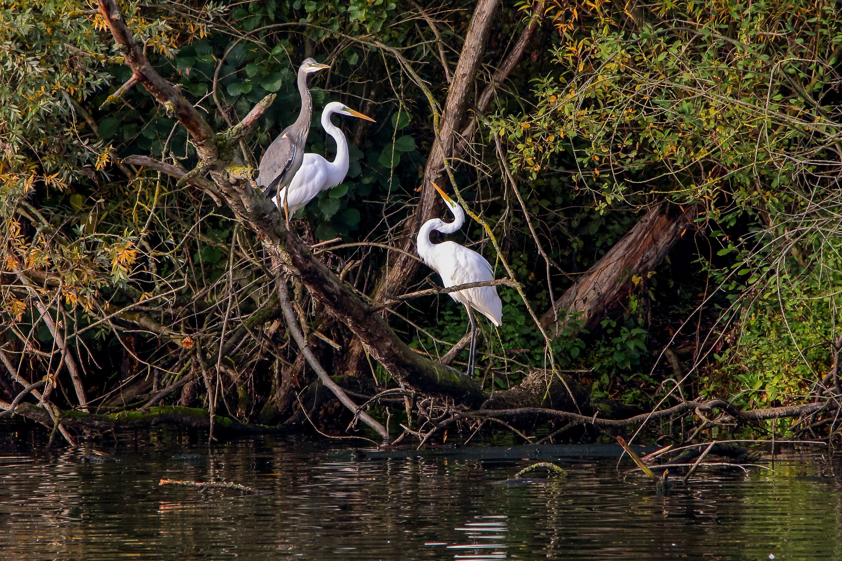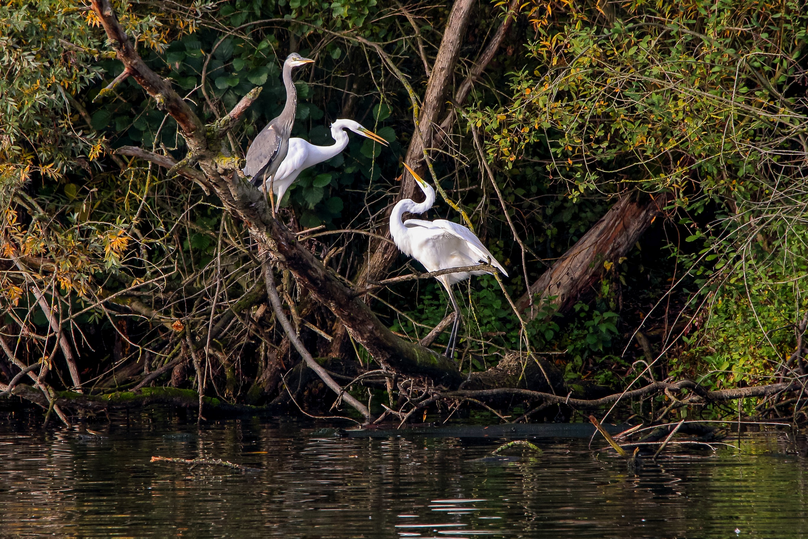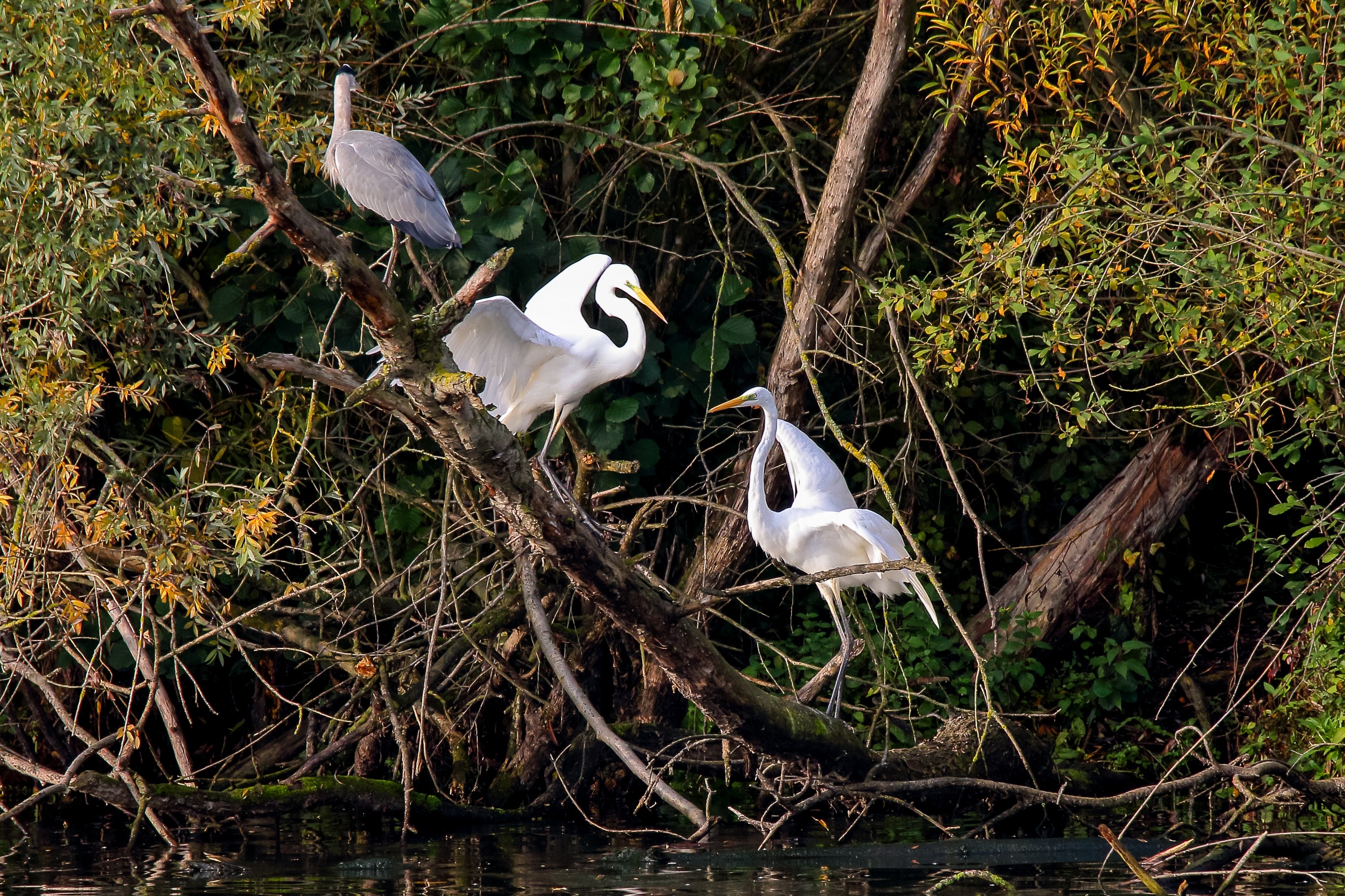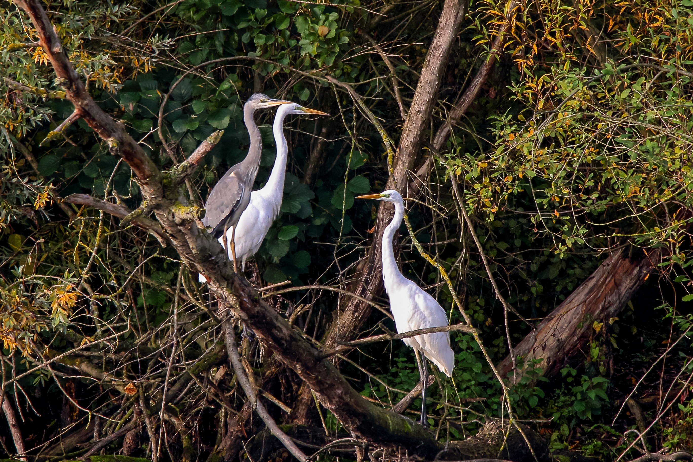 Silberreiher streiten sich um den besten Platz beim Kormoranfischen