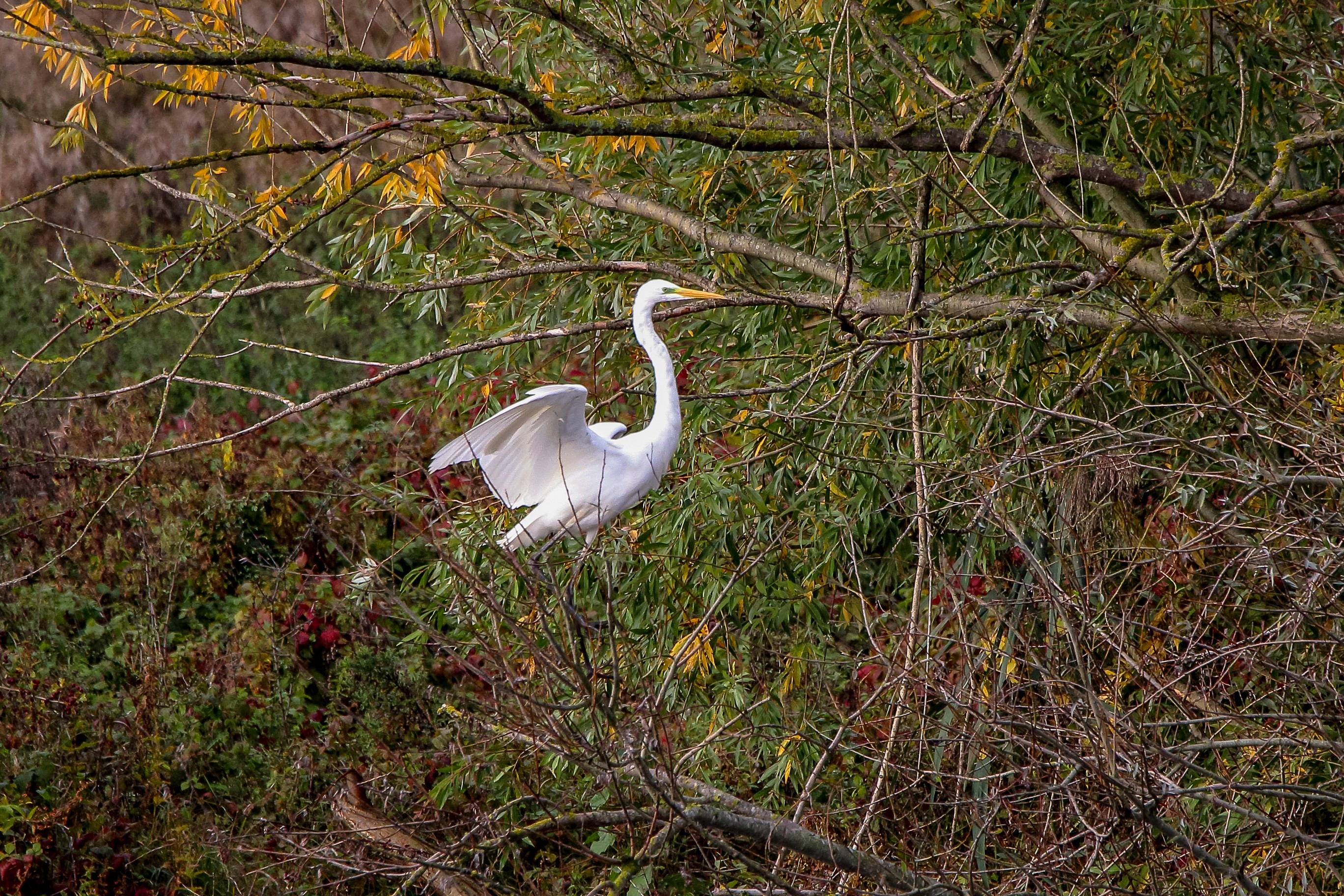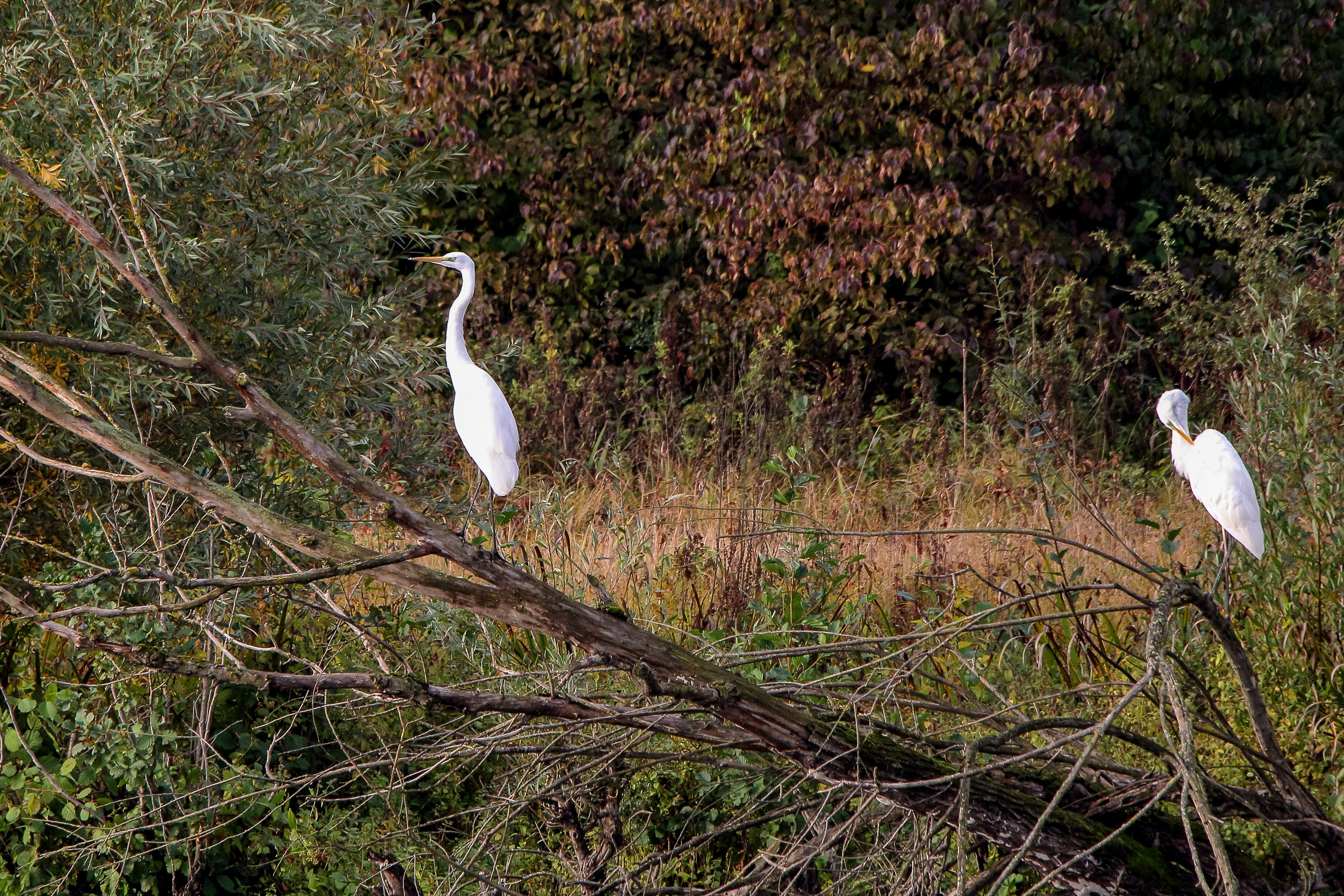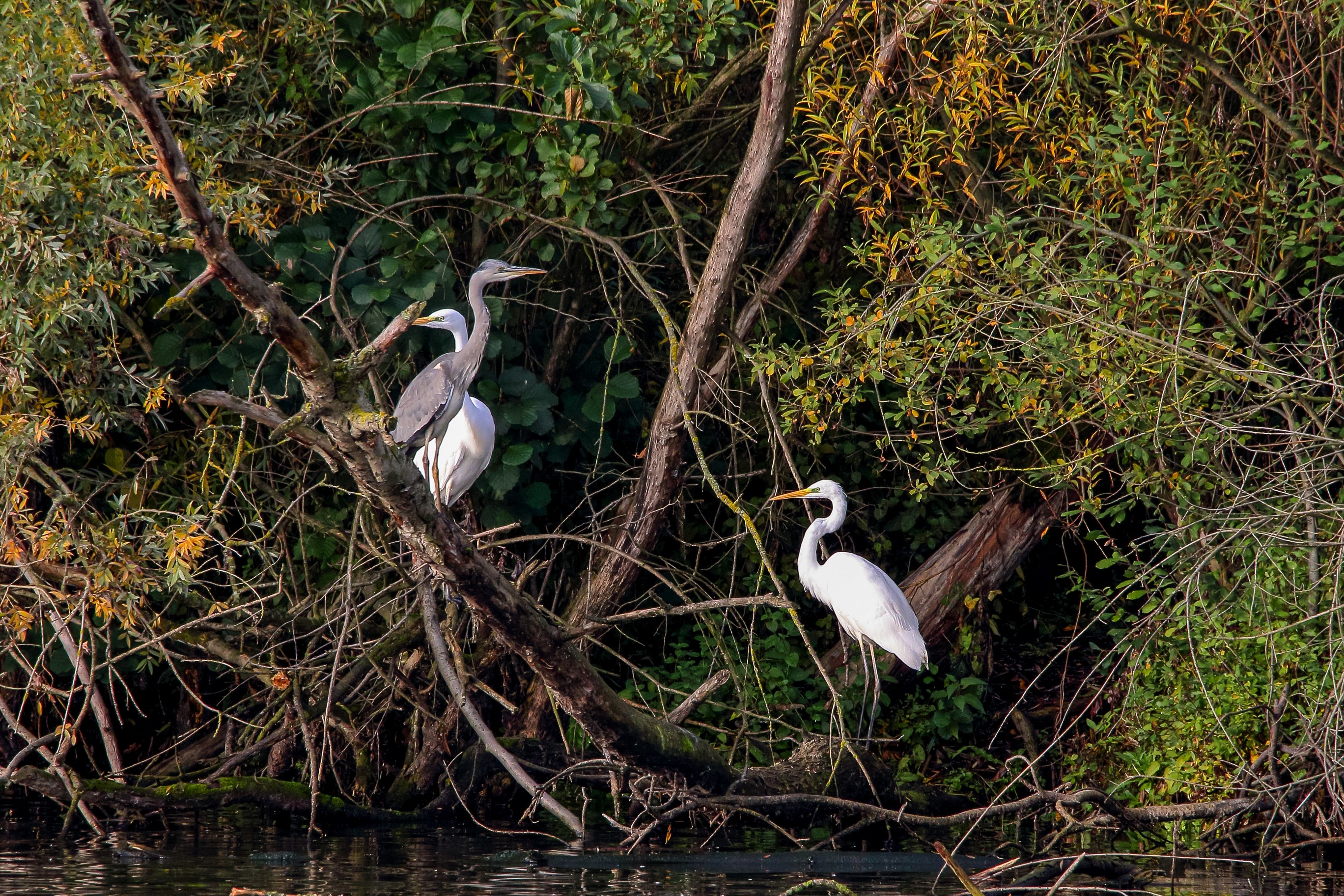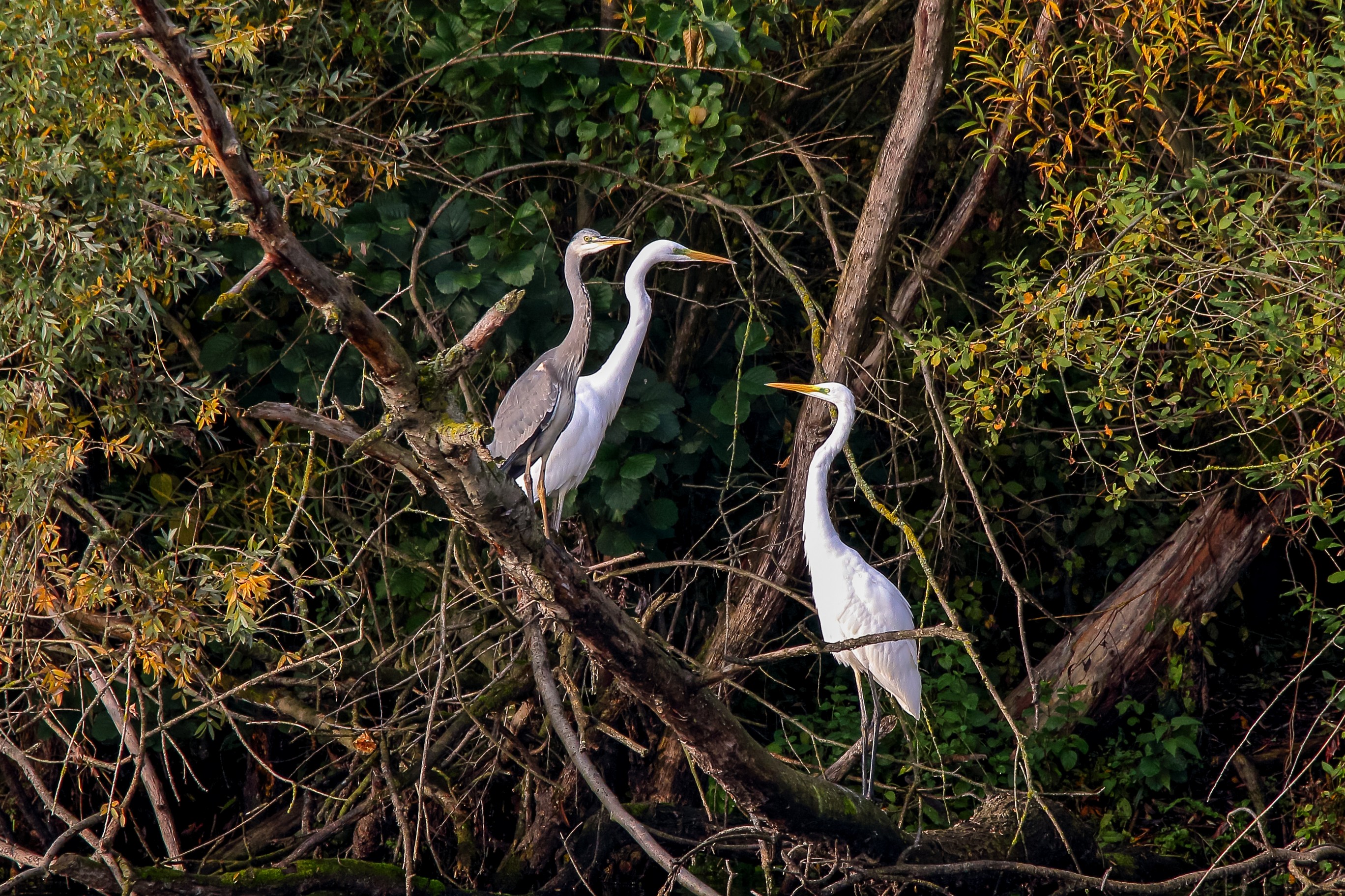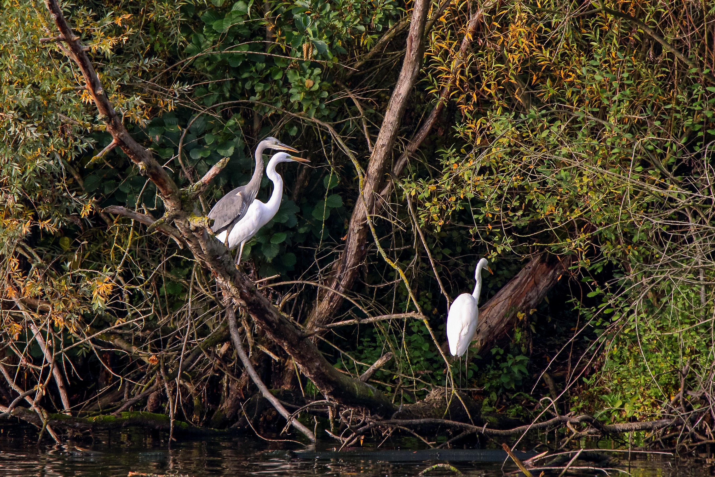 Silberreiher streiten sich um den besten Platz beim Kormoranfischen