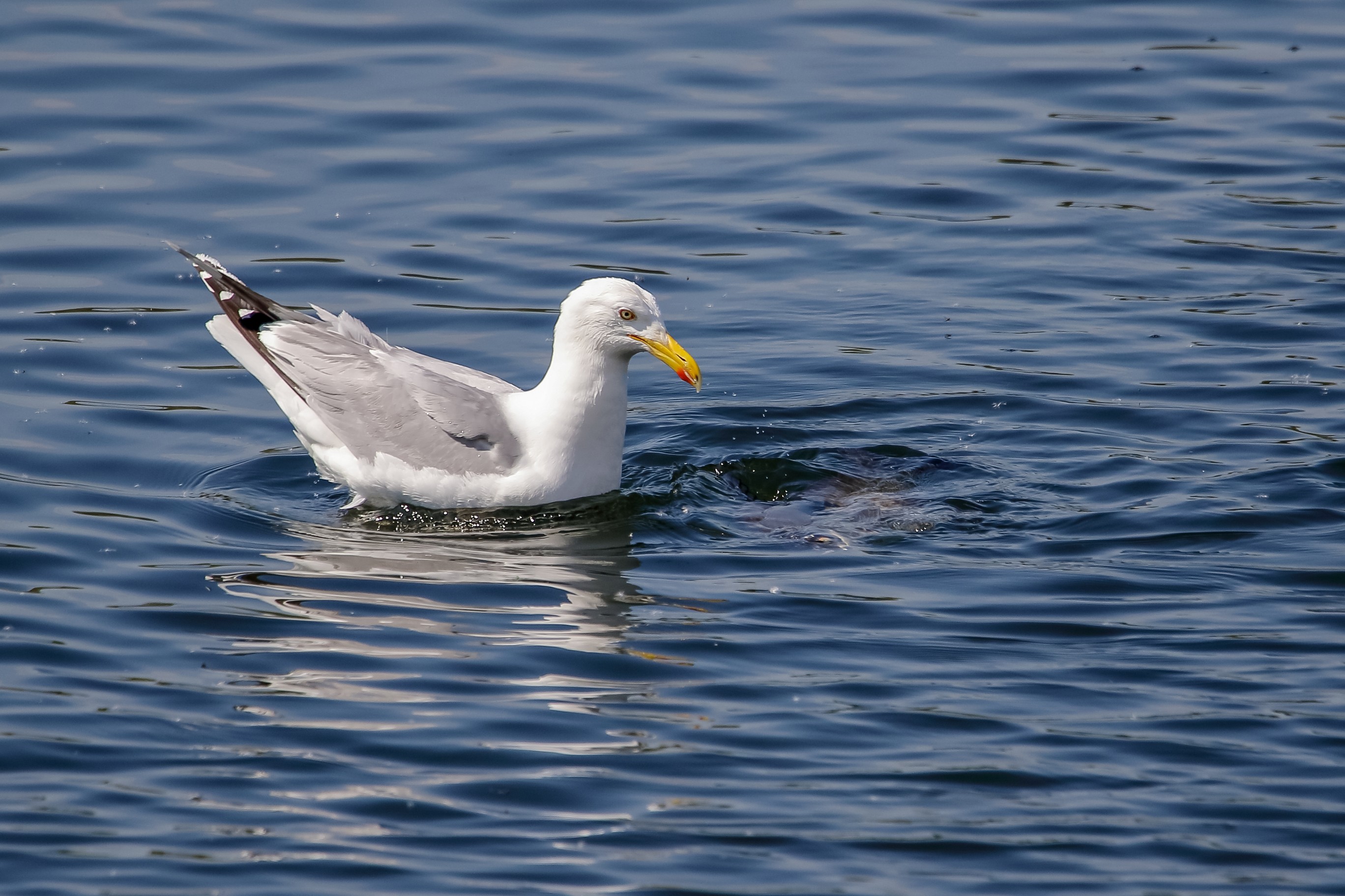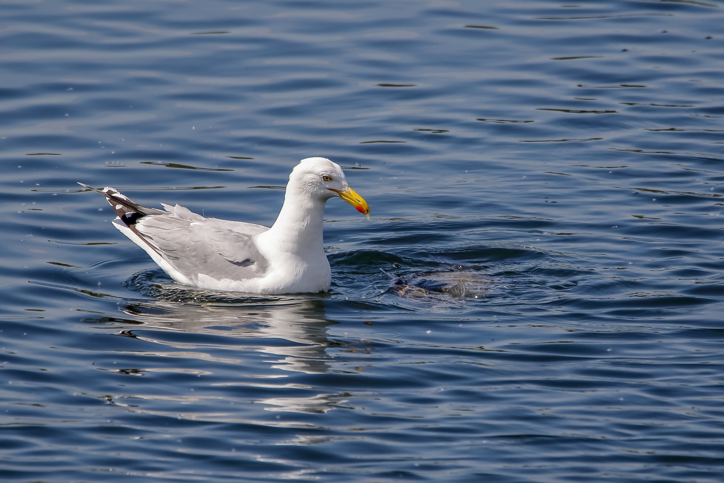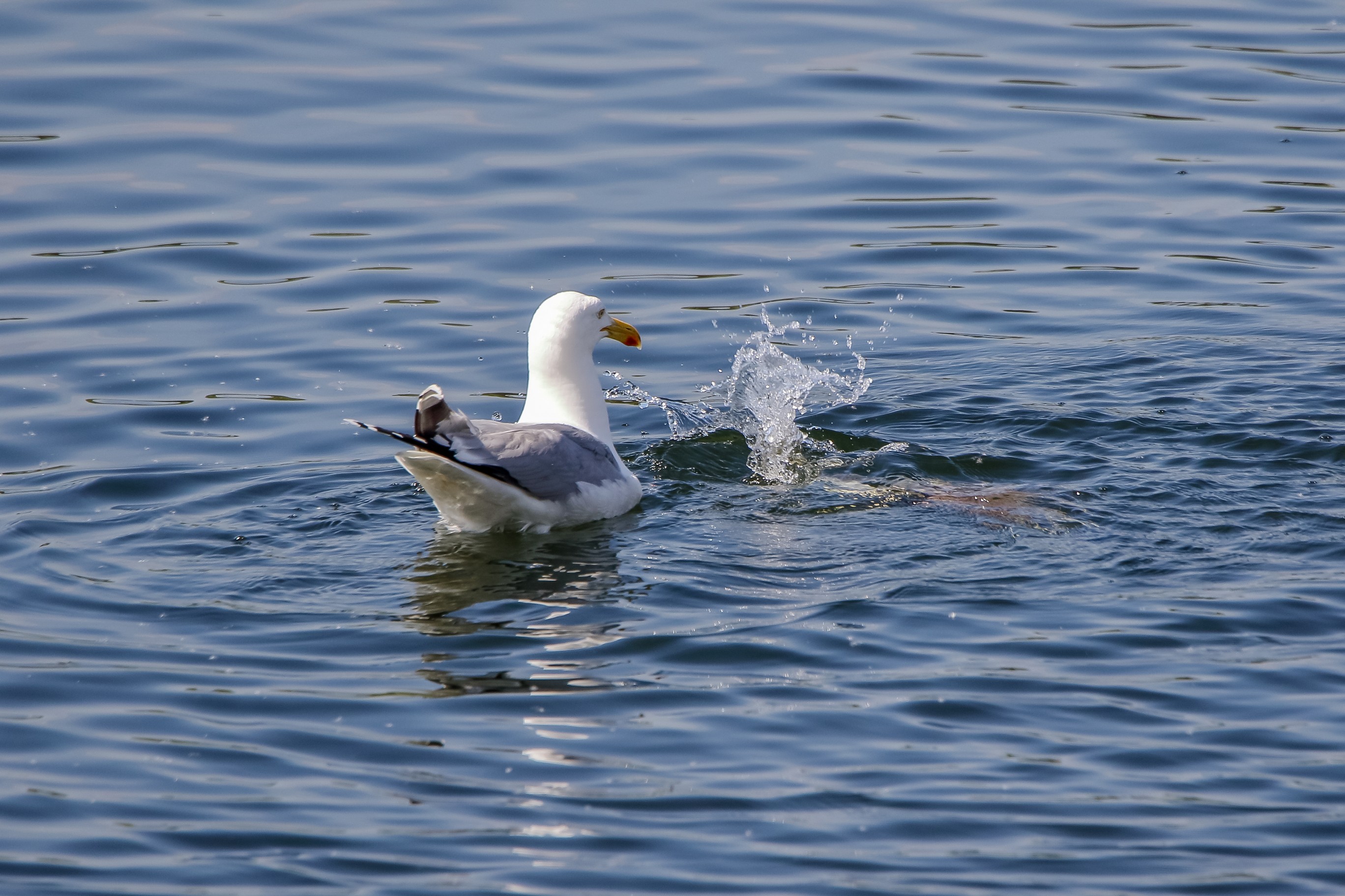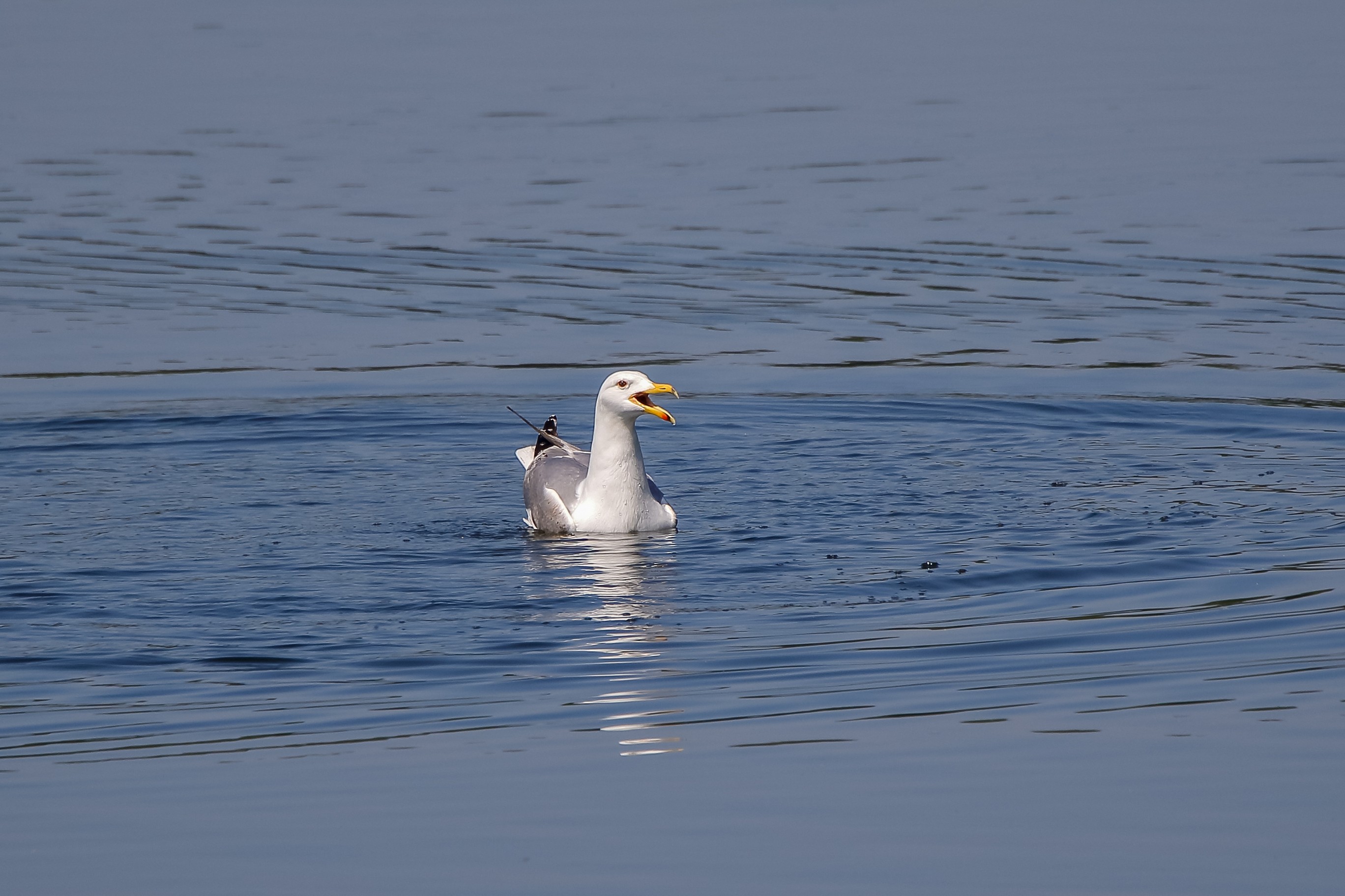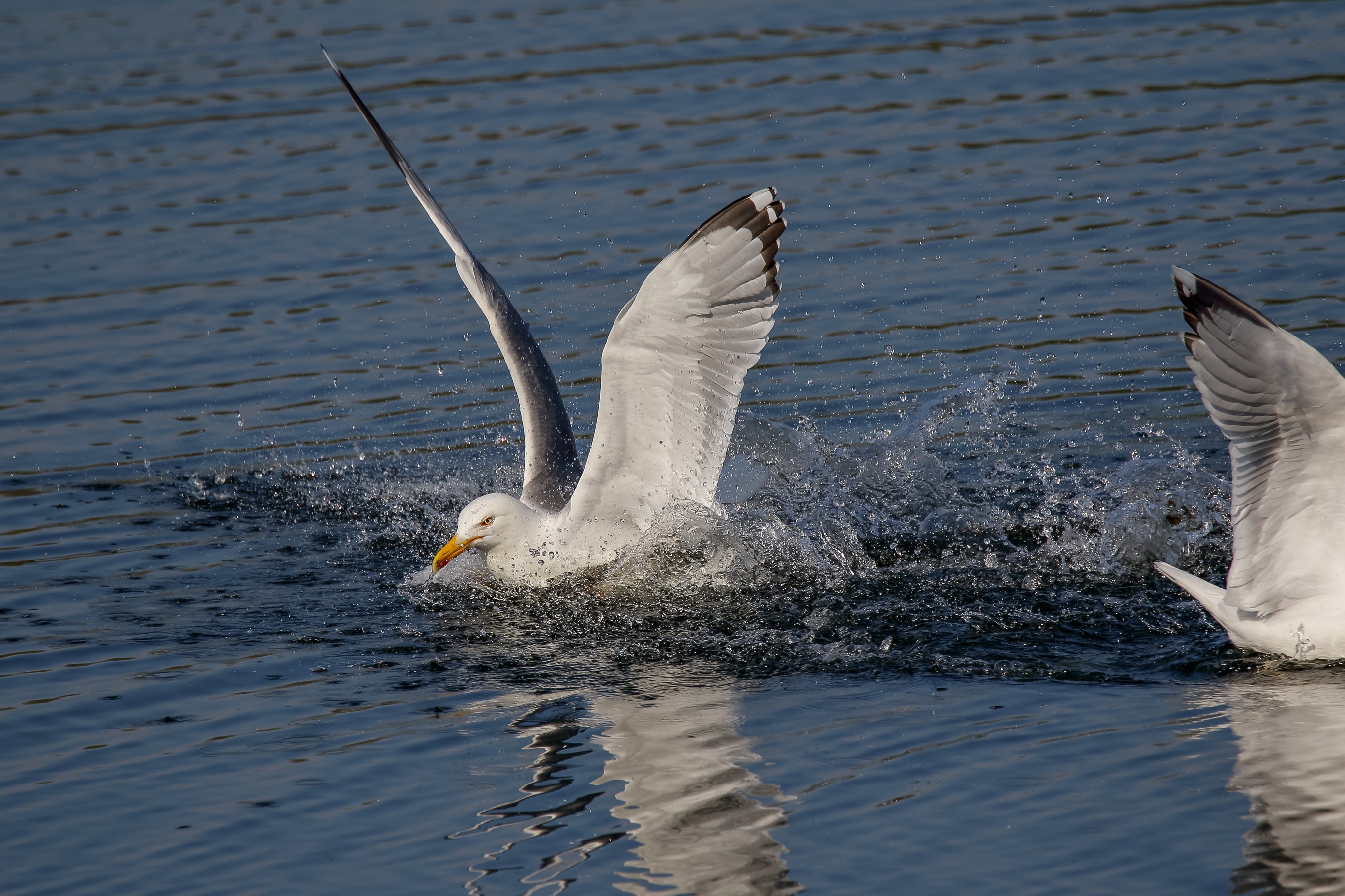 Silbermöwe bemüht sich den Fisch zu zerlegen