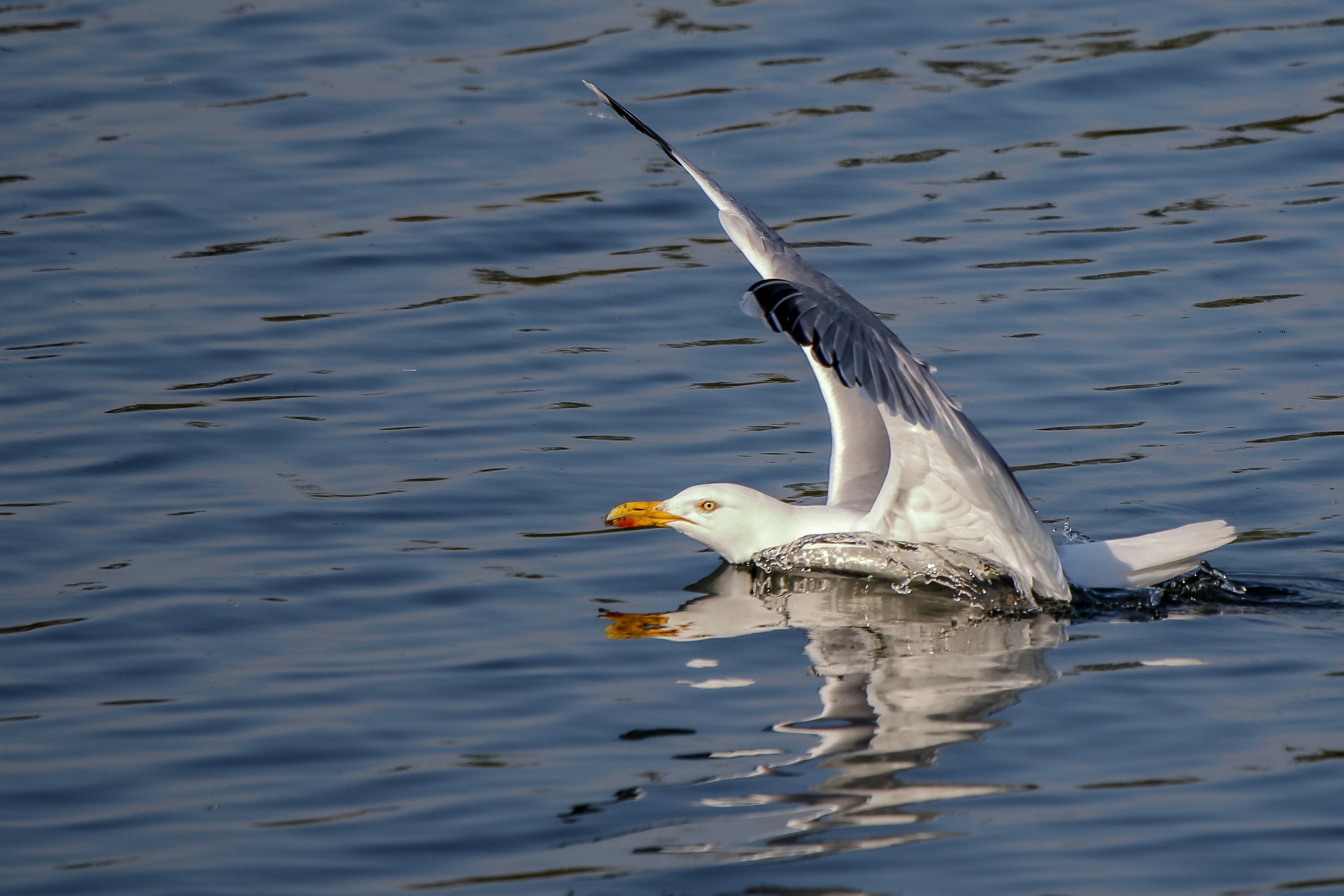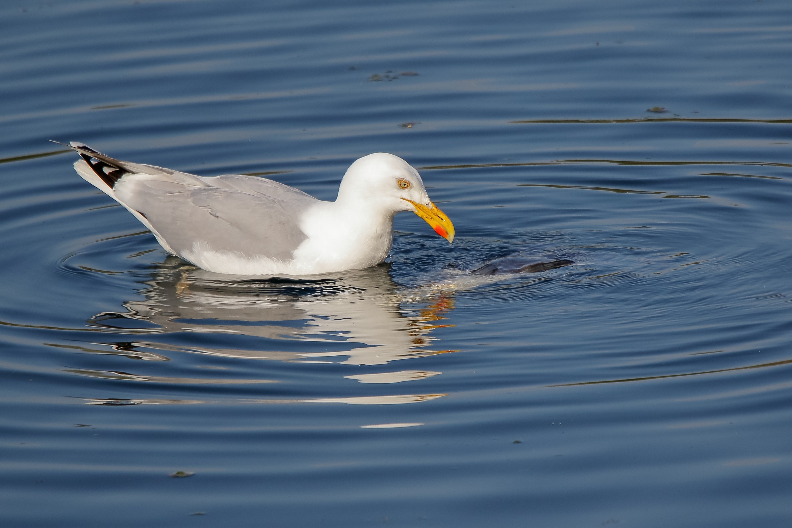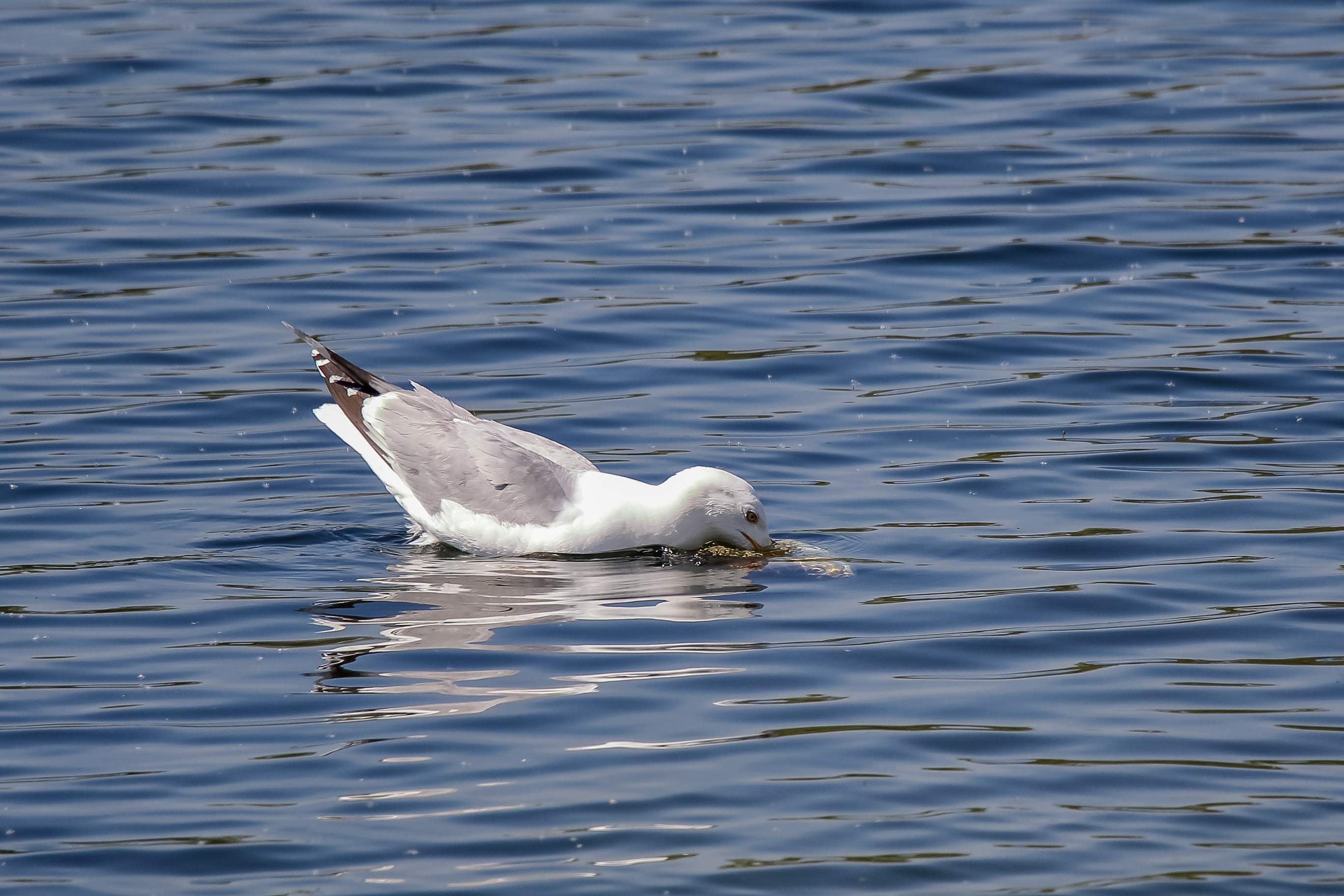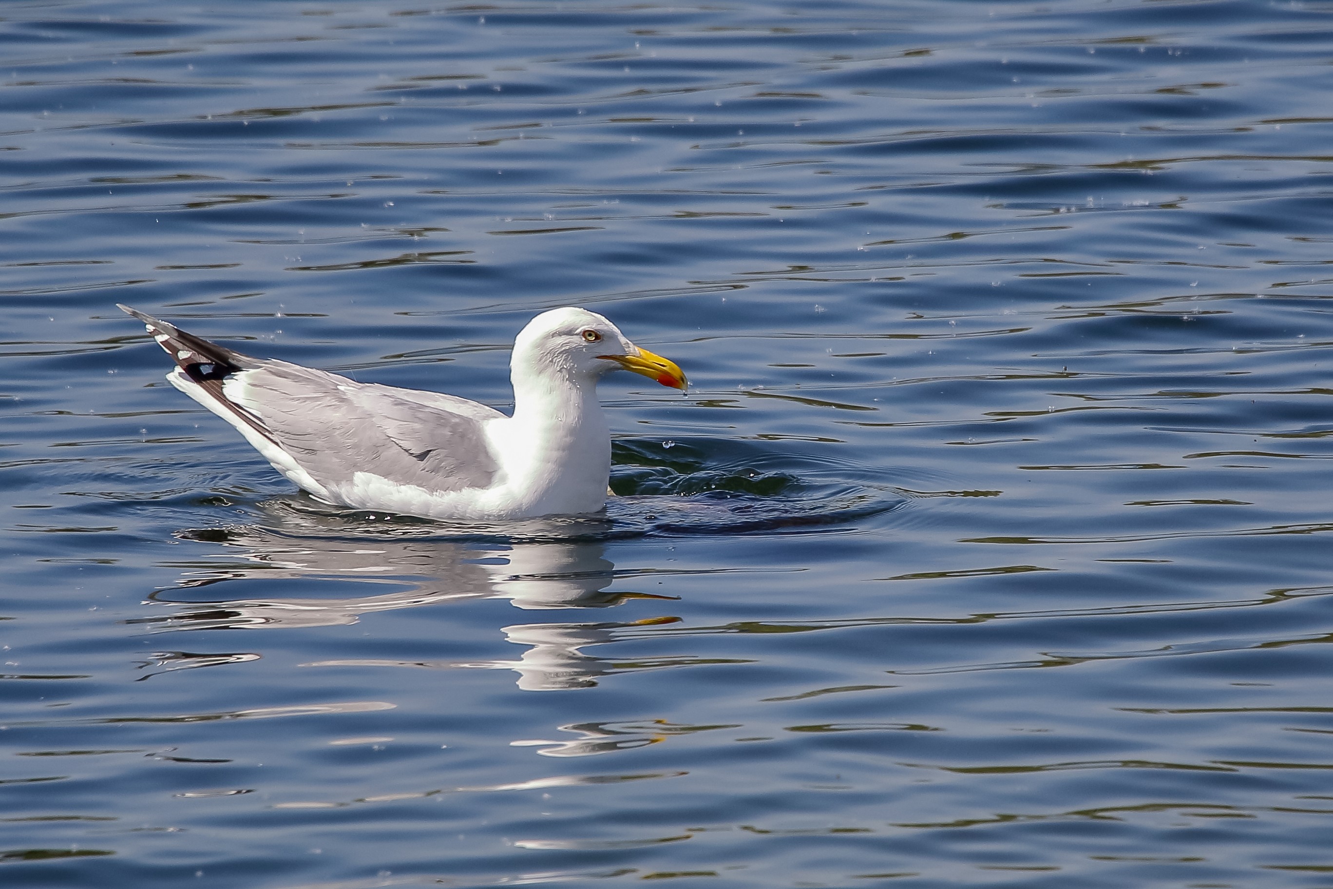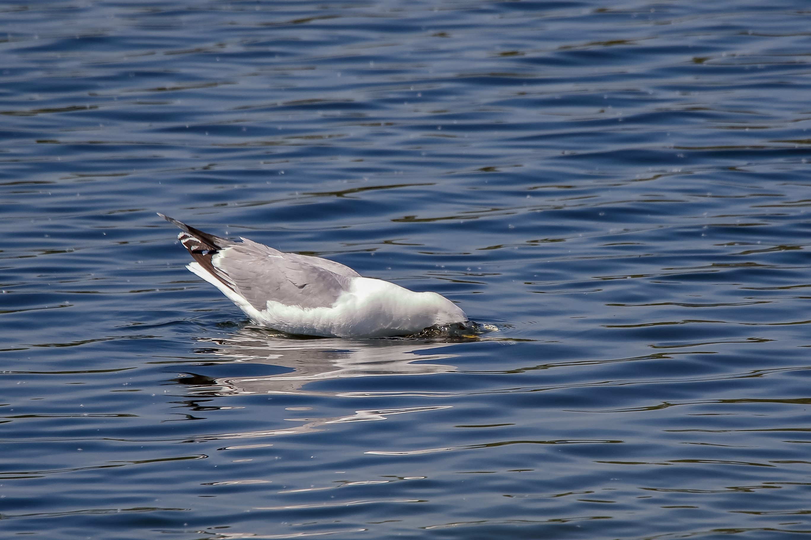 Silbermöwe bemüht sich den Fisch zu zerlegen