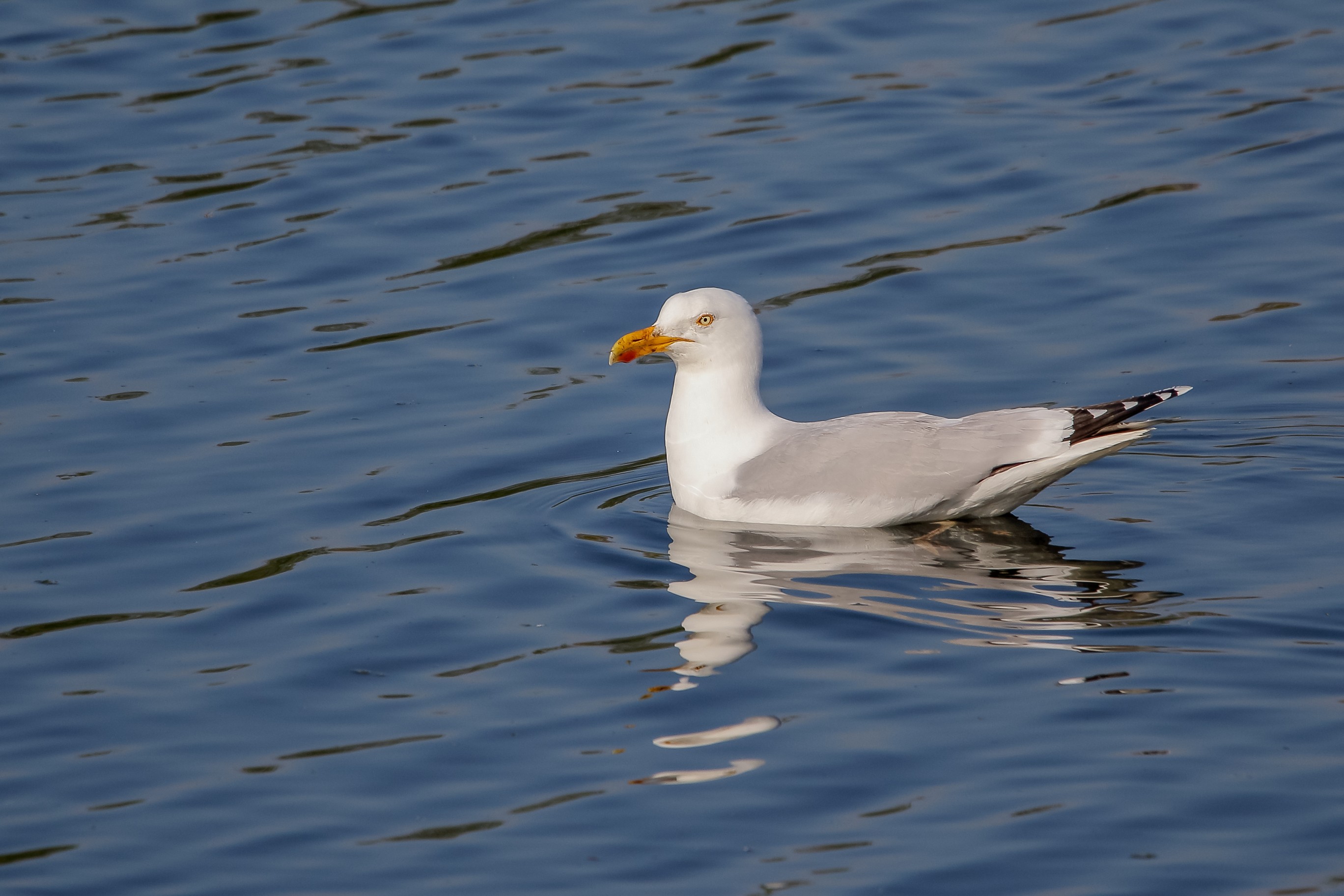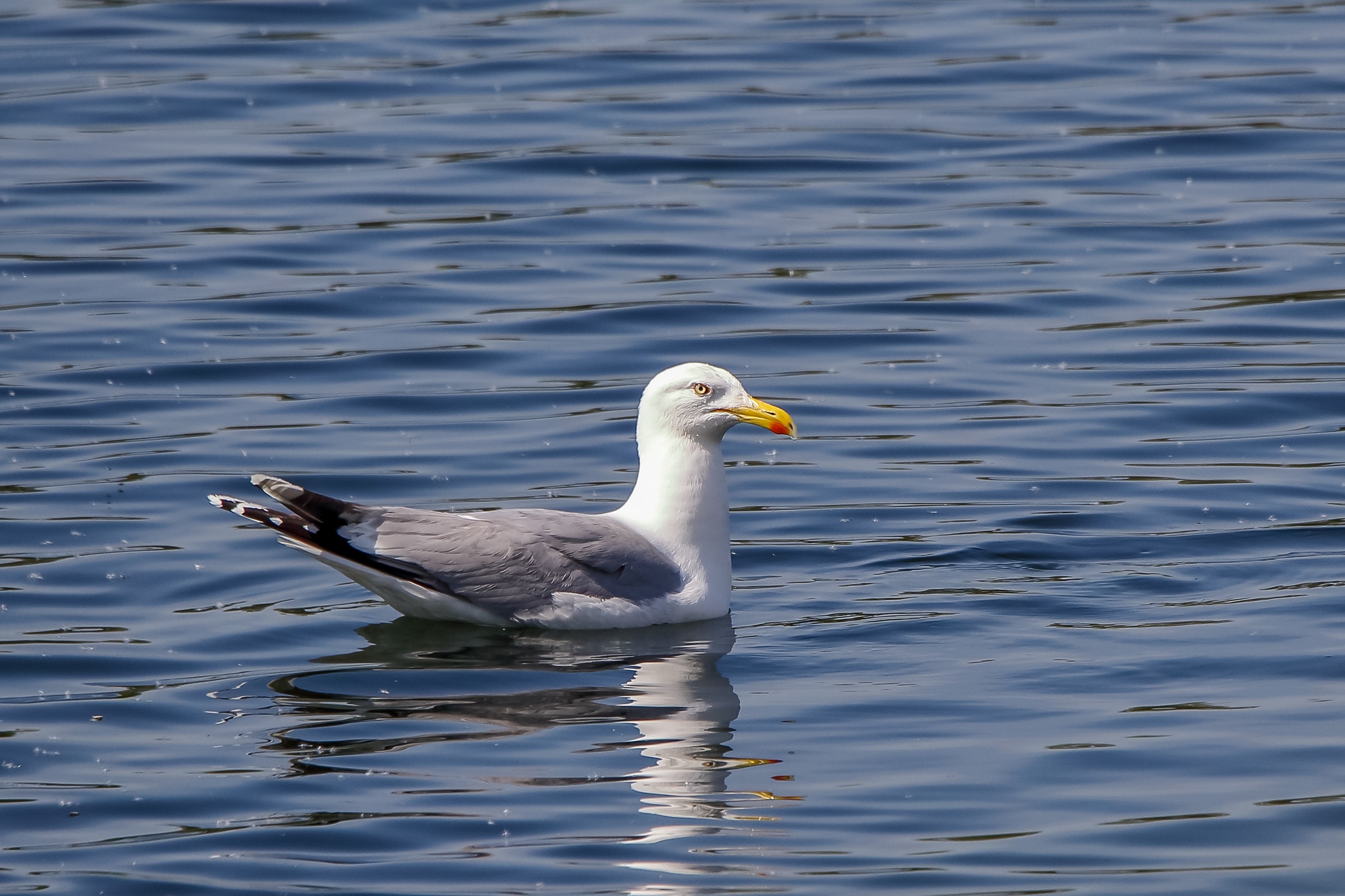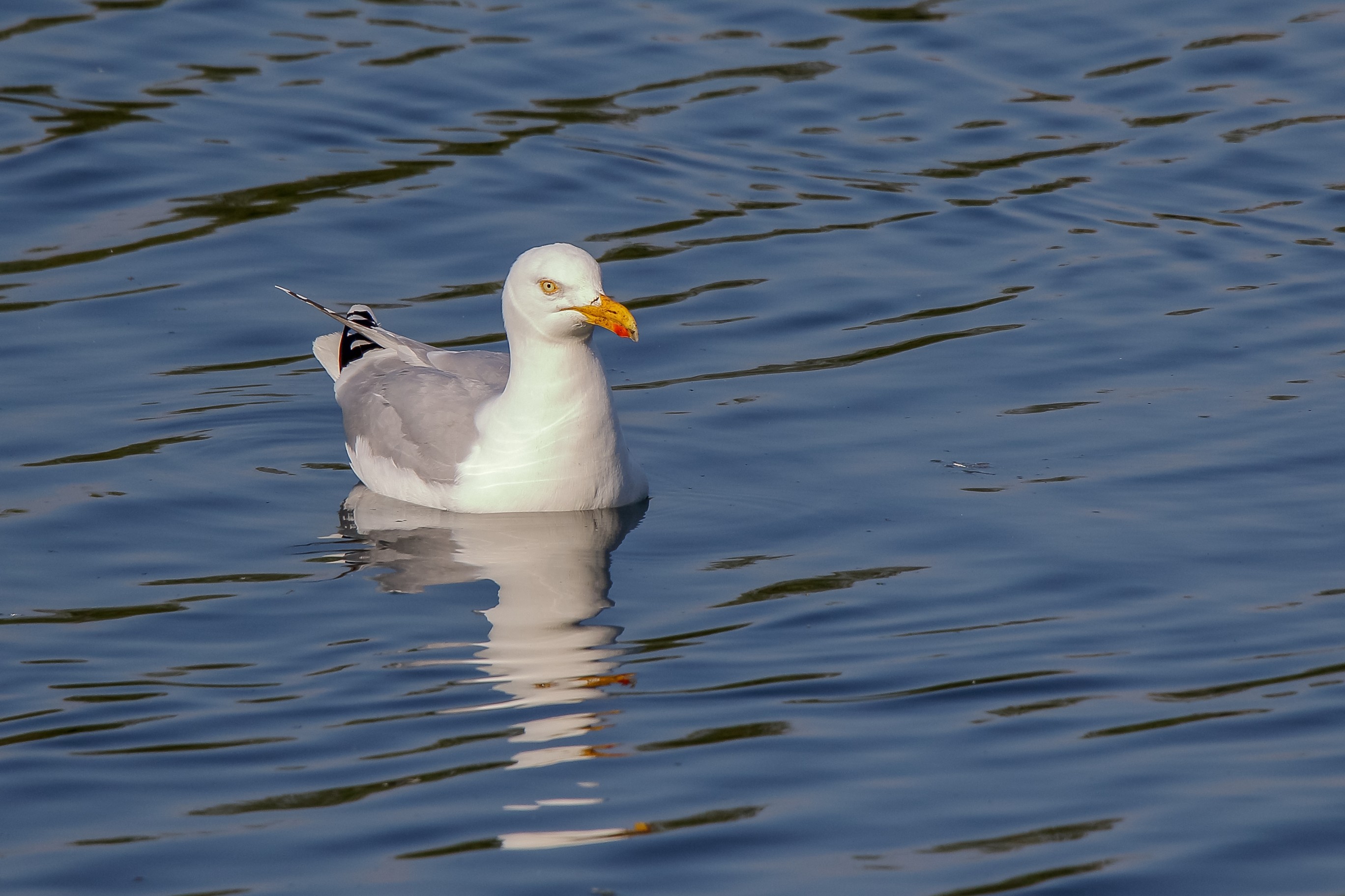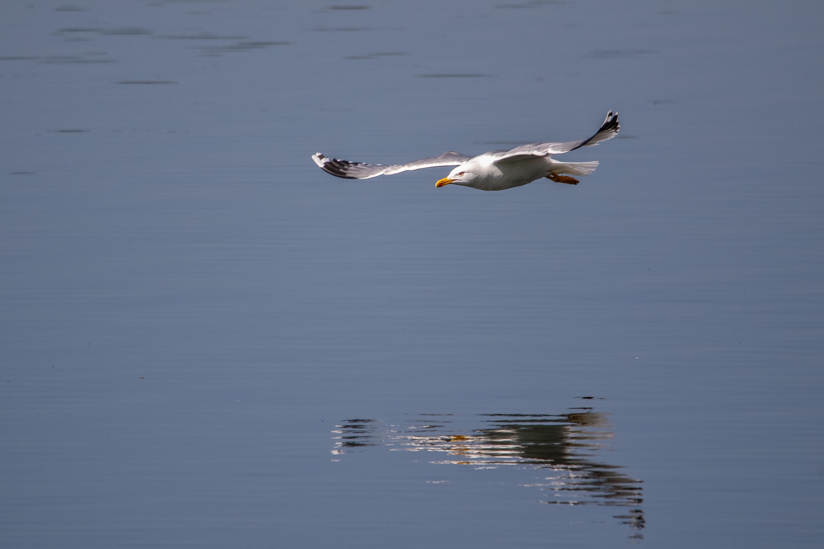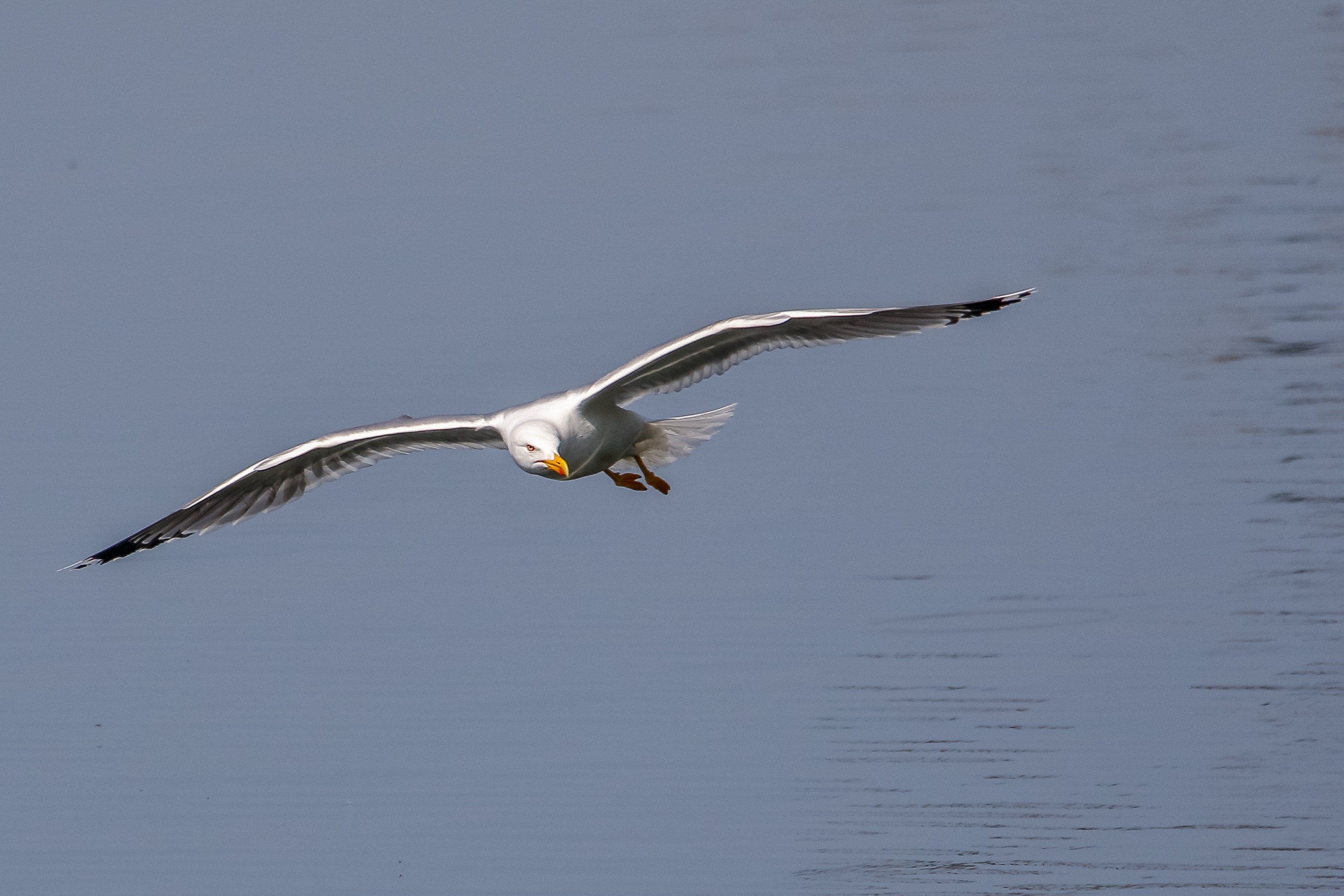 Silbermöwe bemüht sich den Fisch zu zerlegen