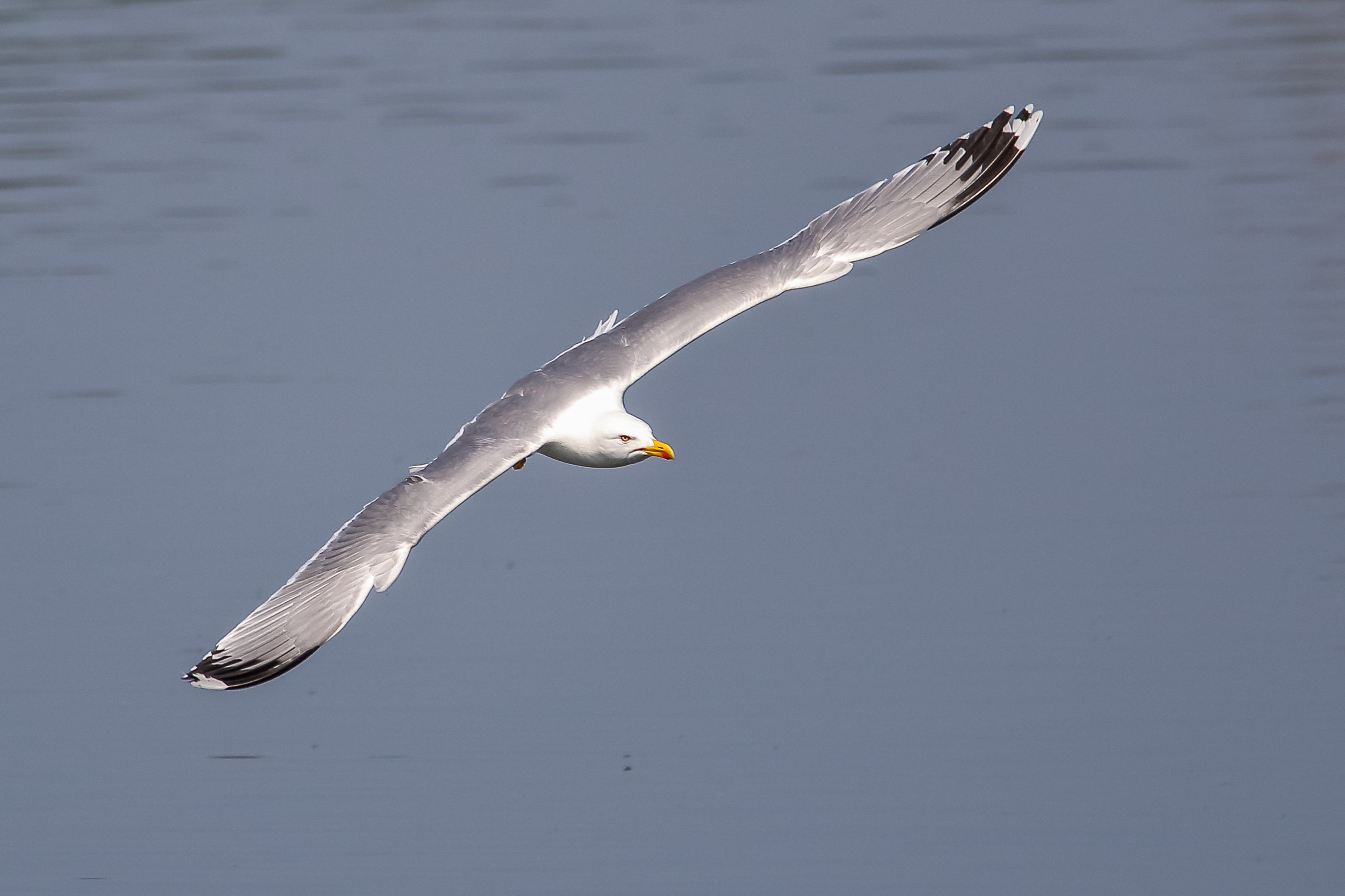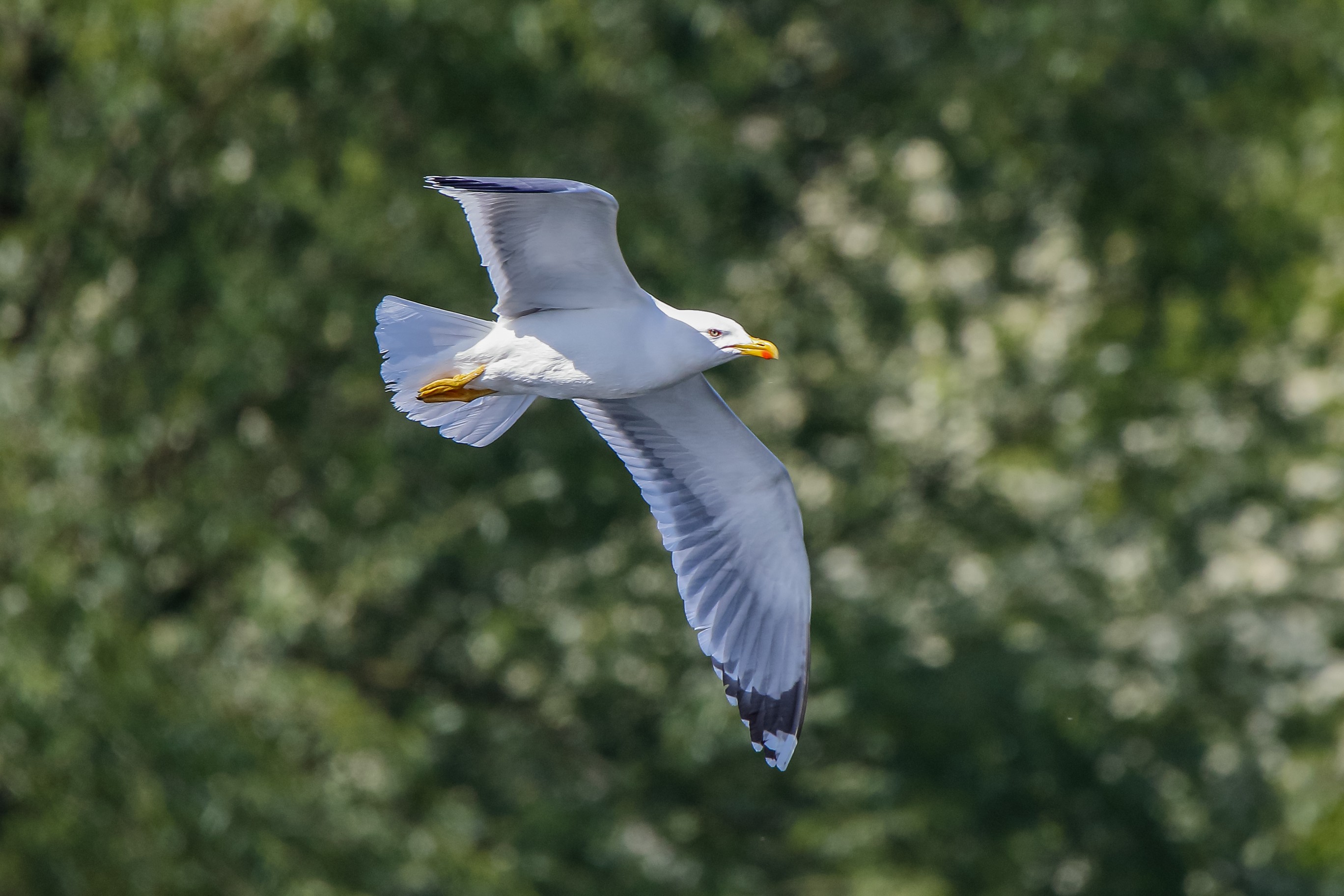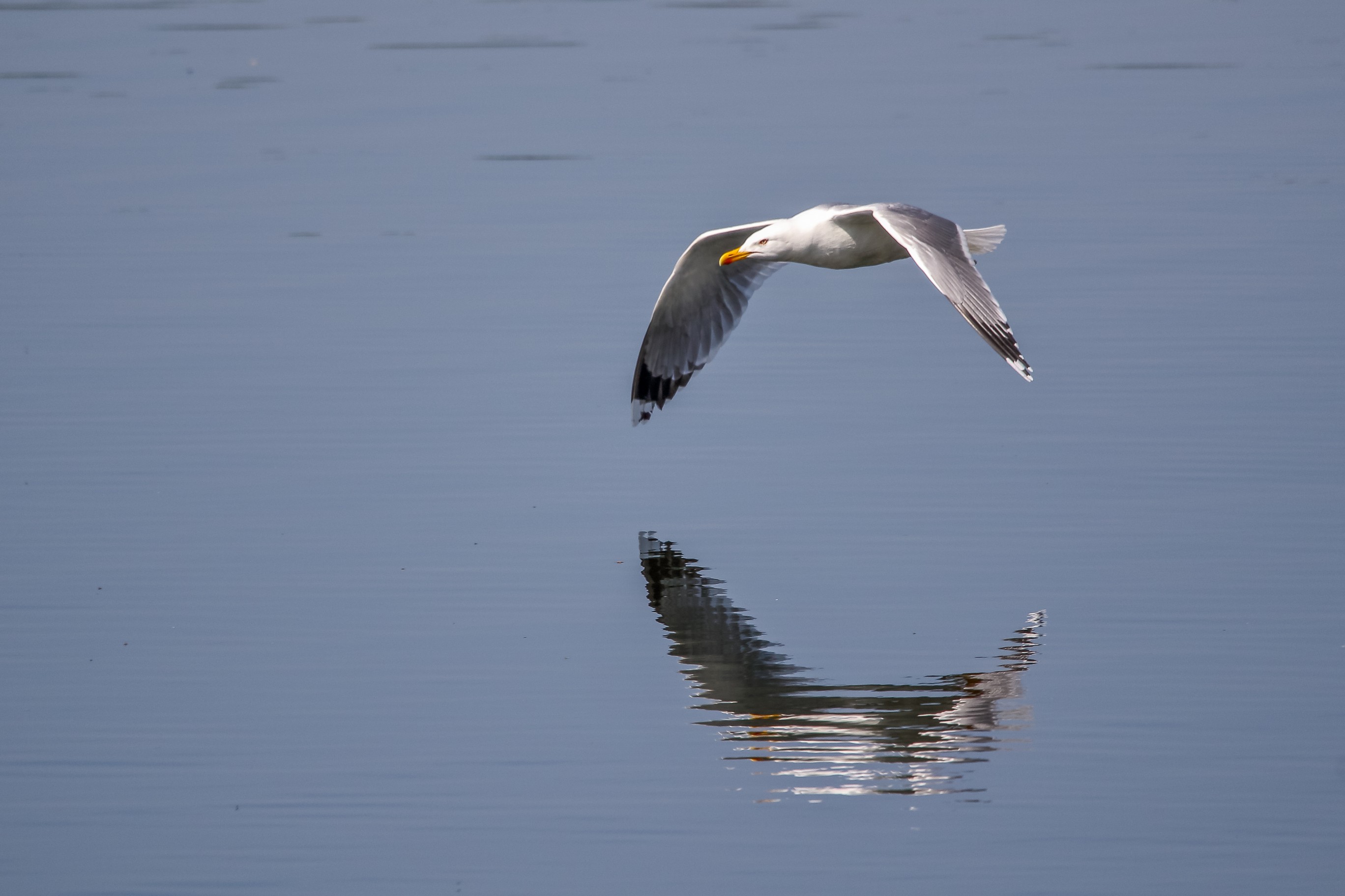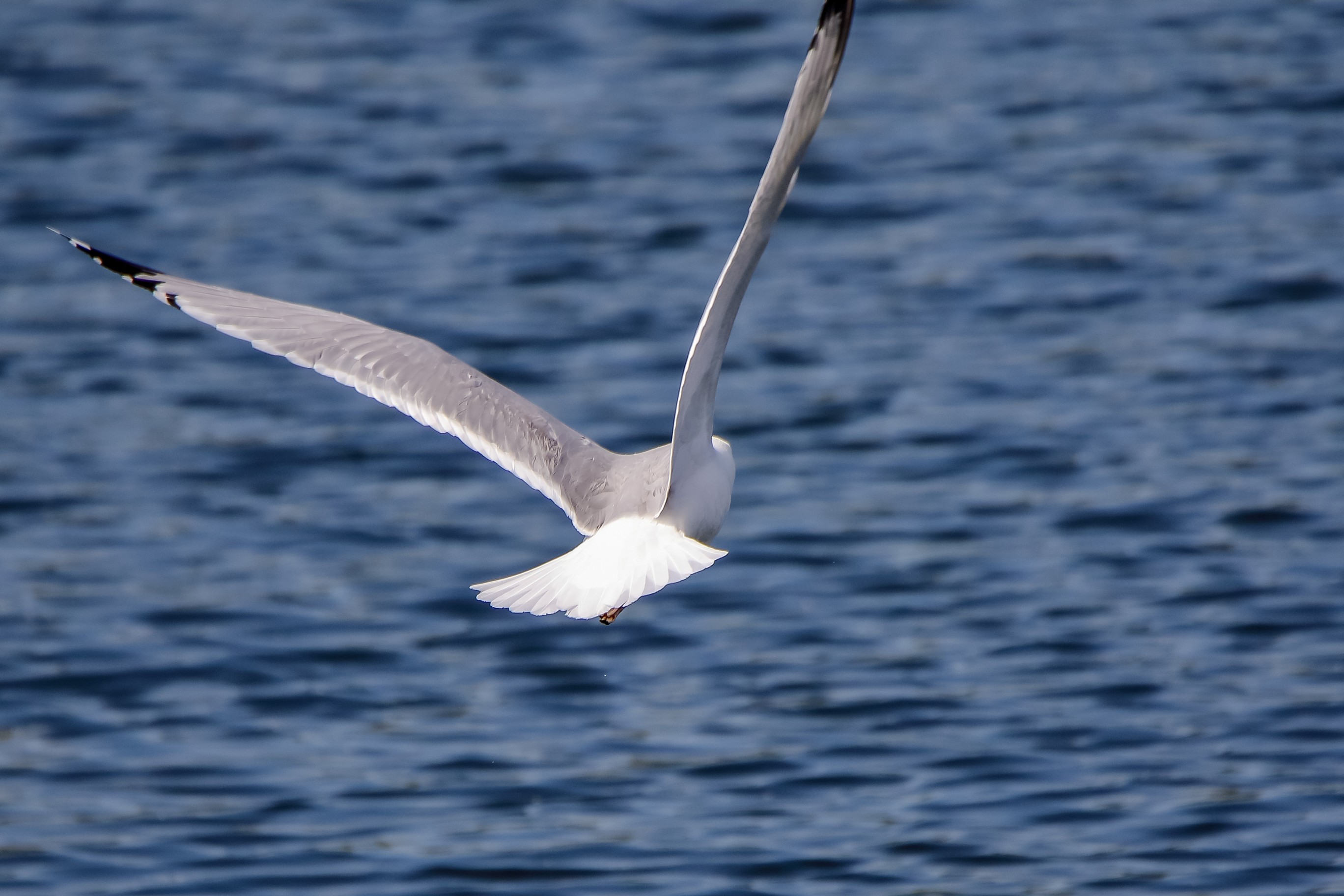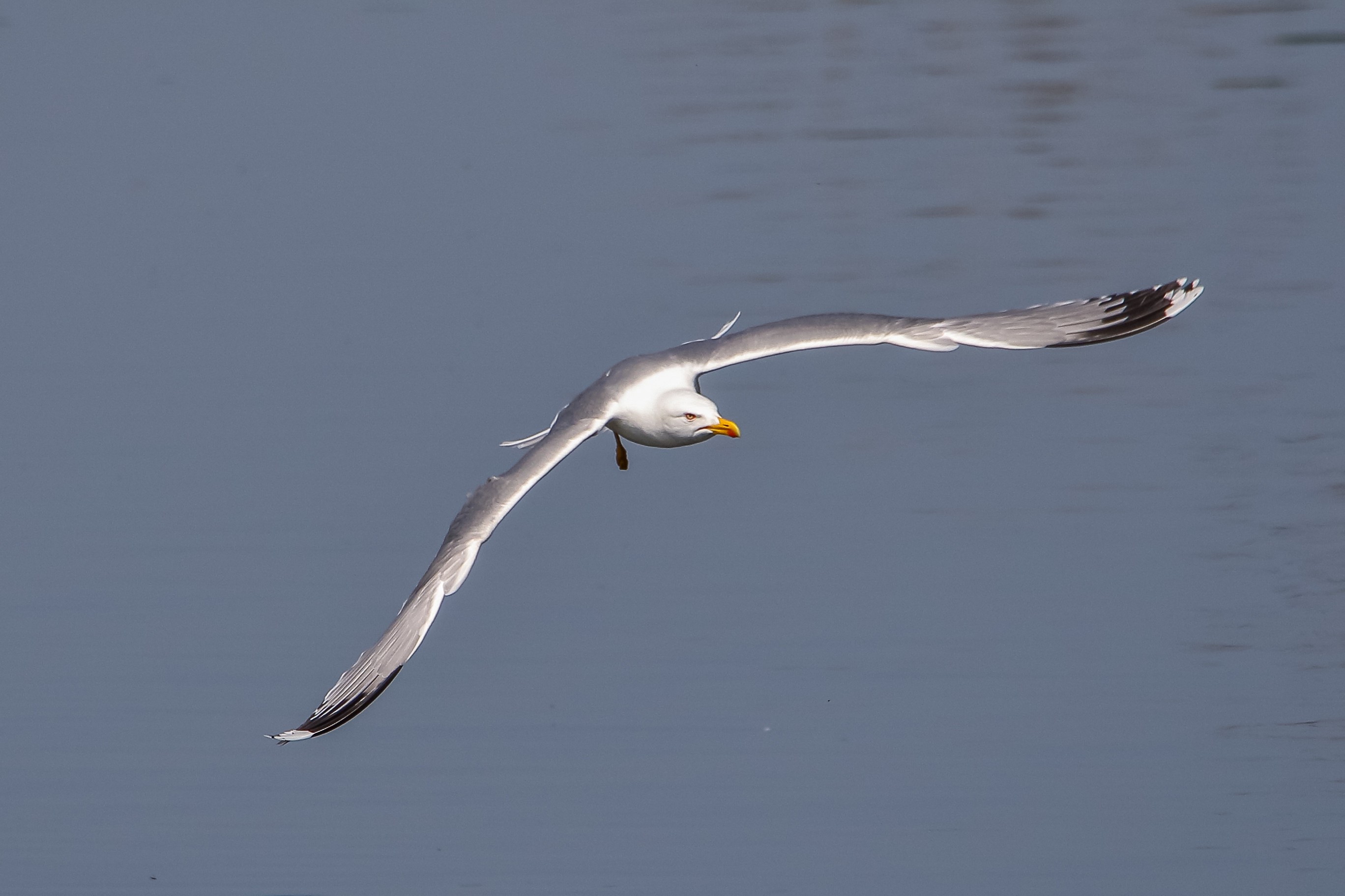 Silbermöwe bemüht sich den Fisch zu zerlegen
