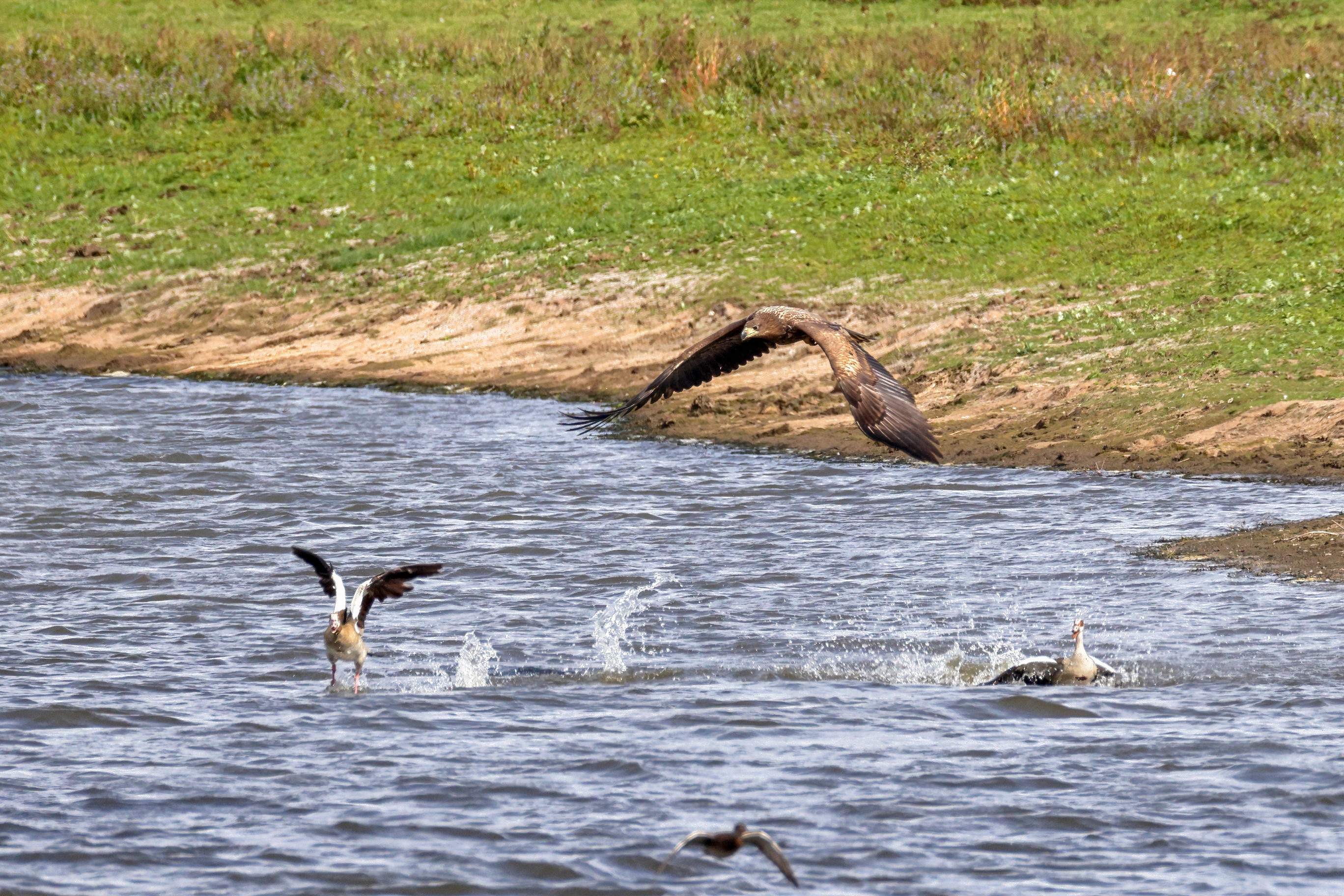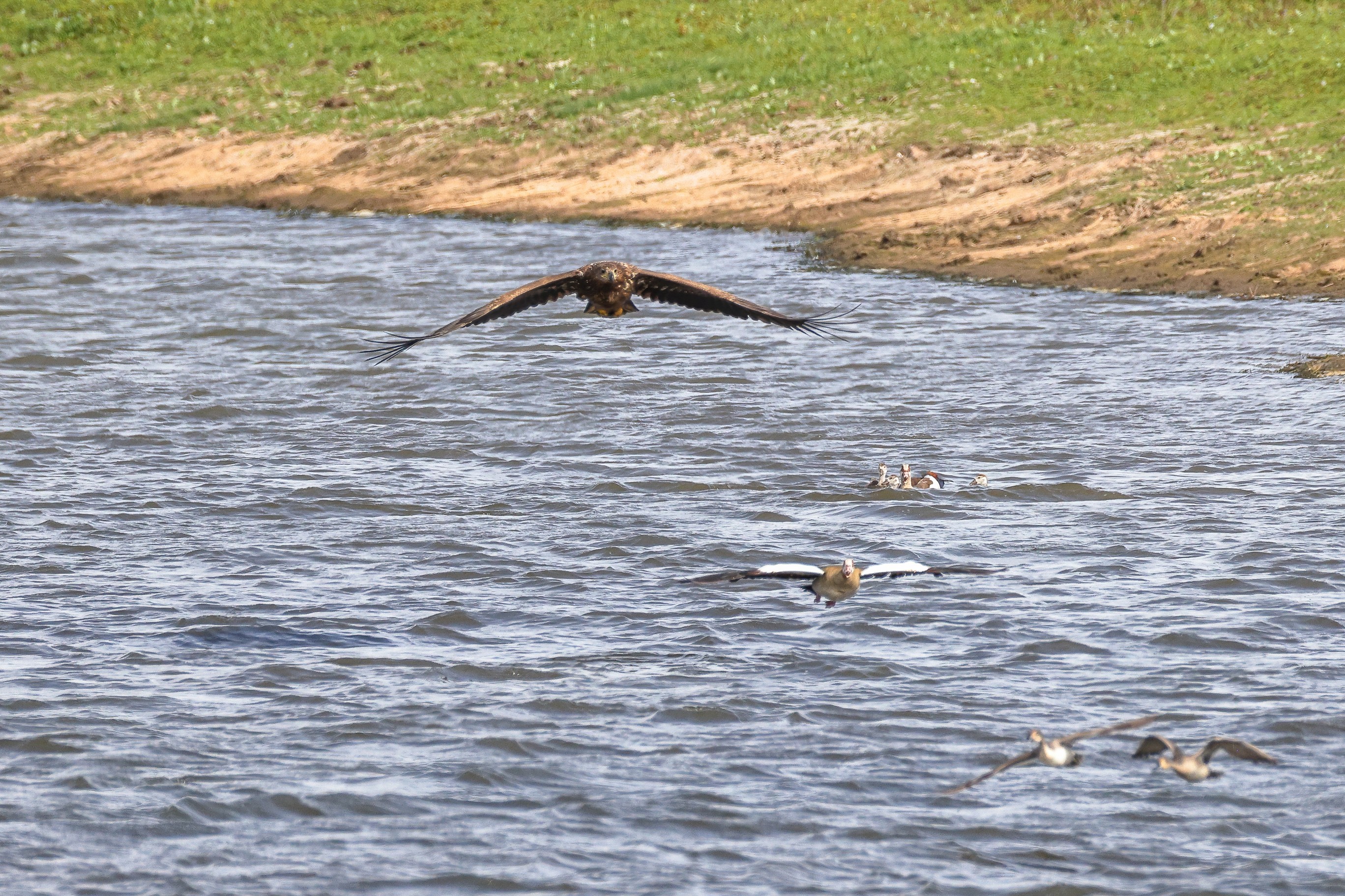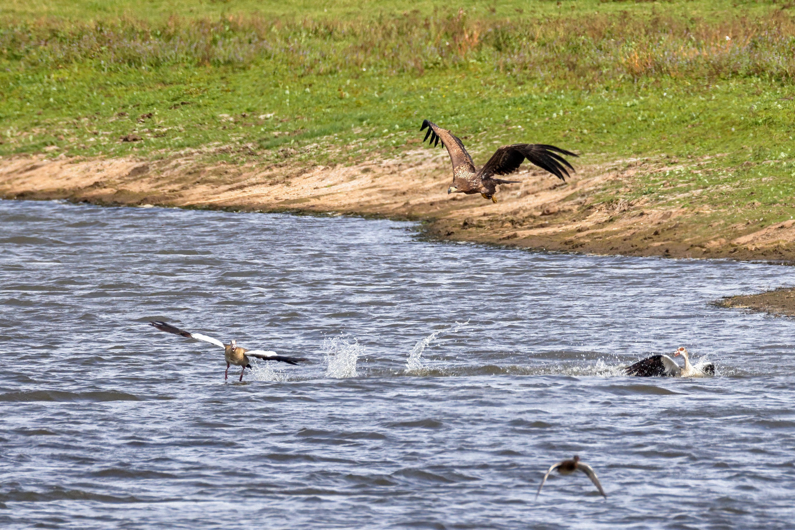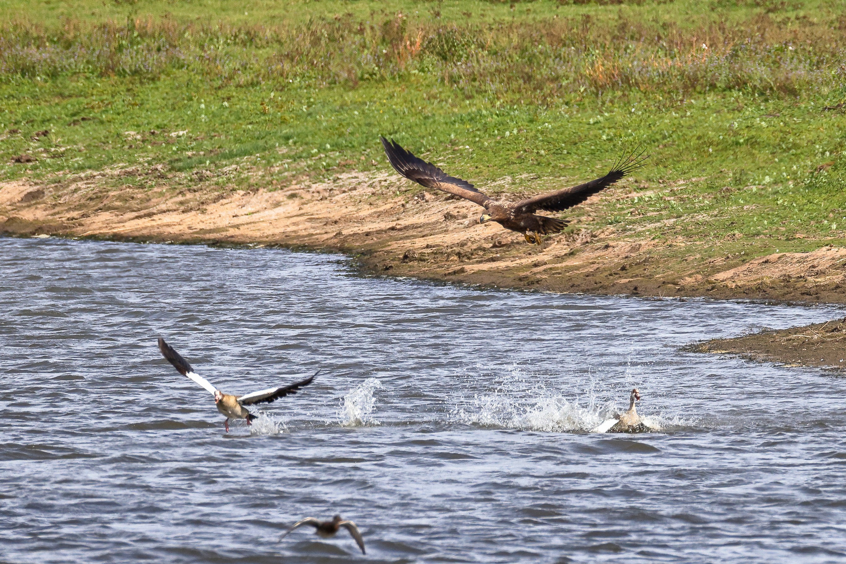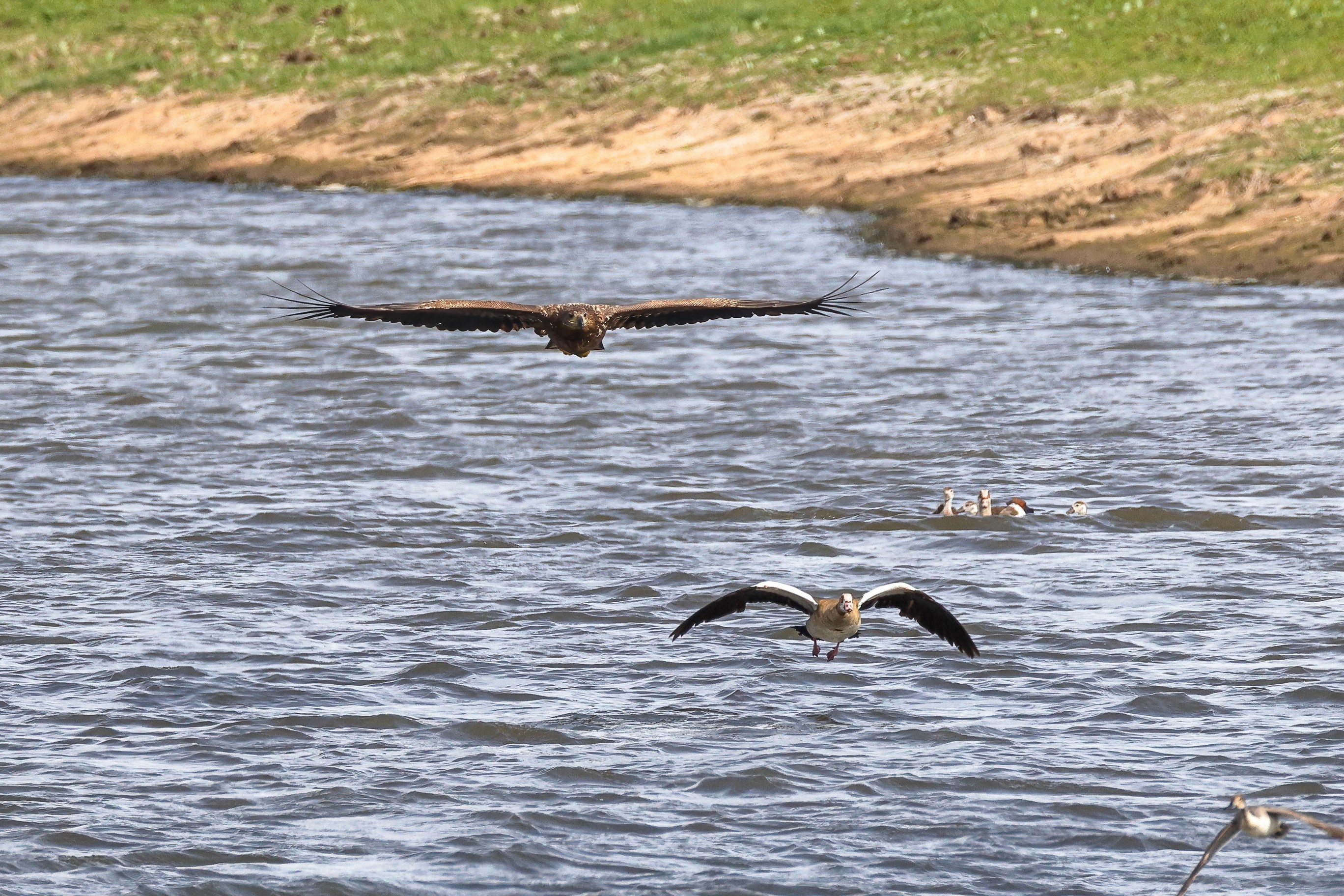 Nilgansfamilie im Focus des Jungseeadlers