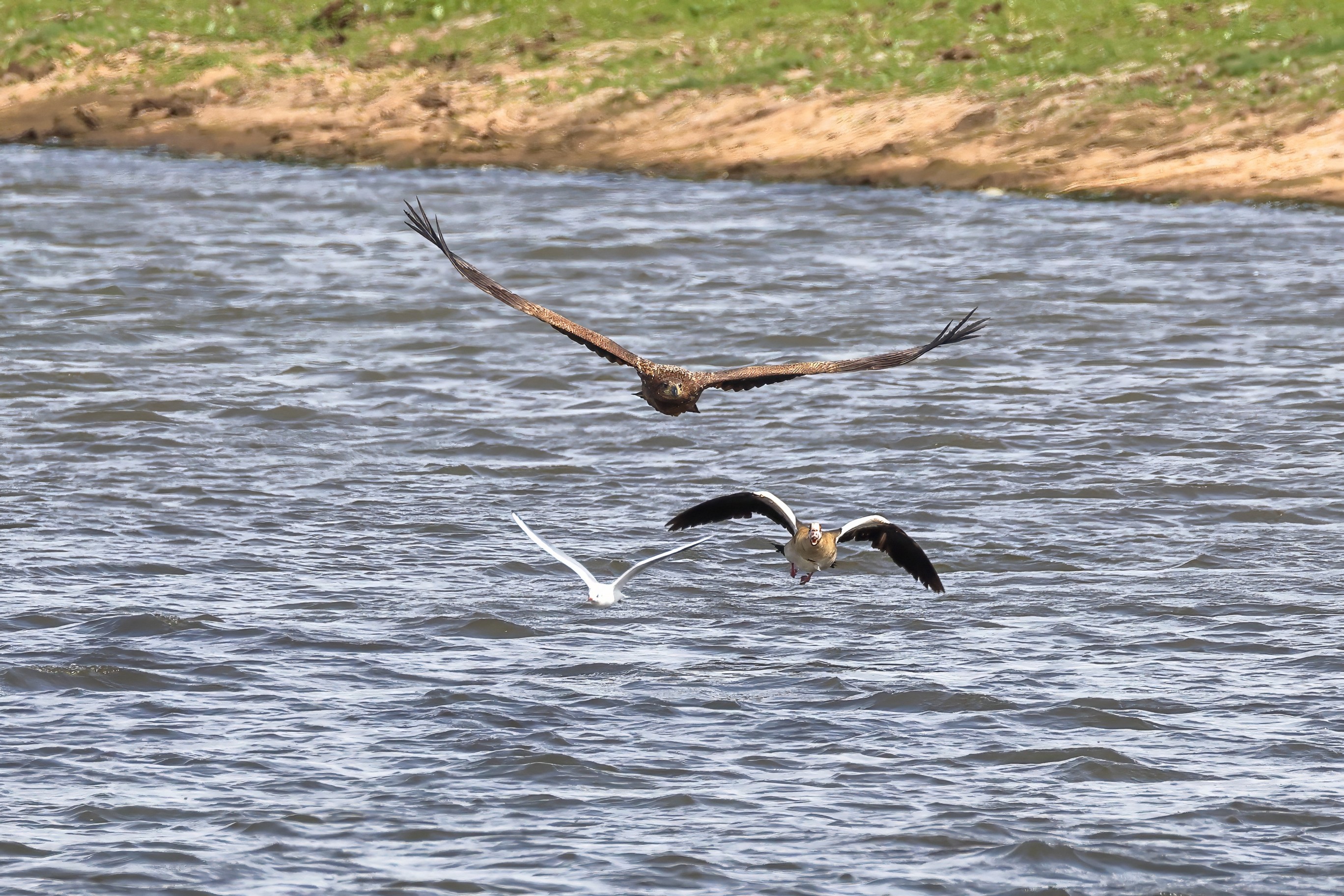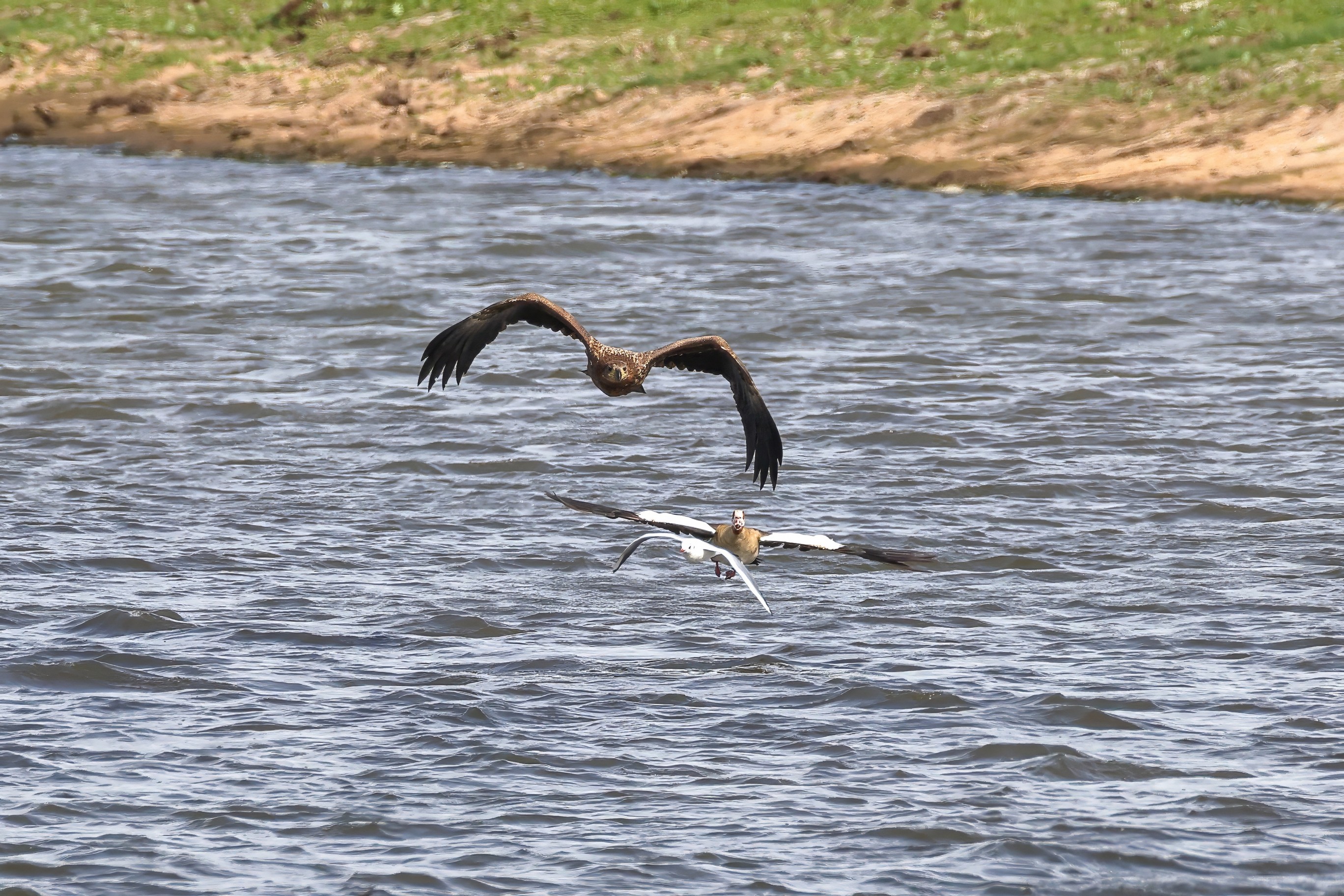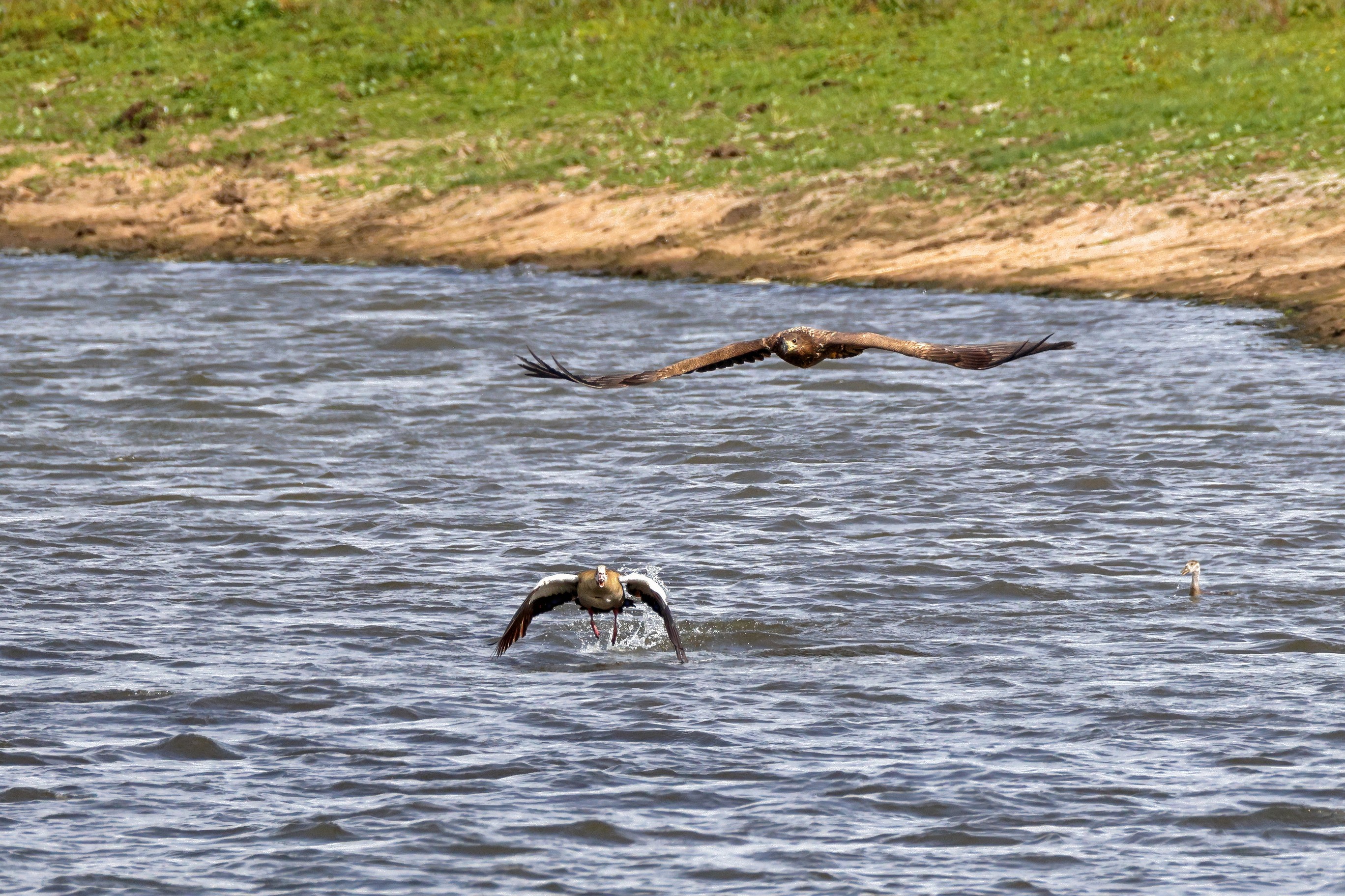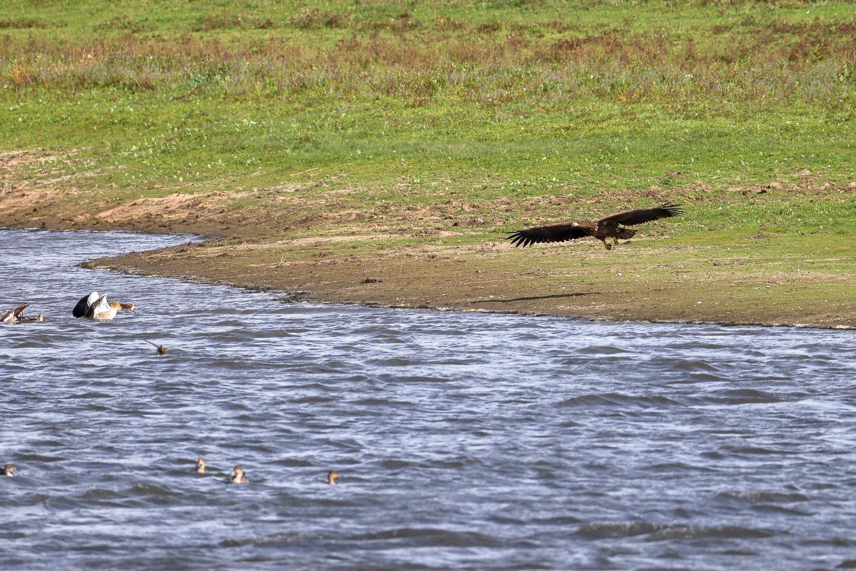 Nilgansfamilie im Focus des Jungseeadlers