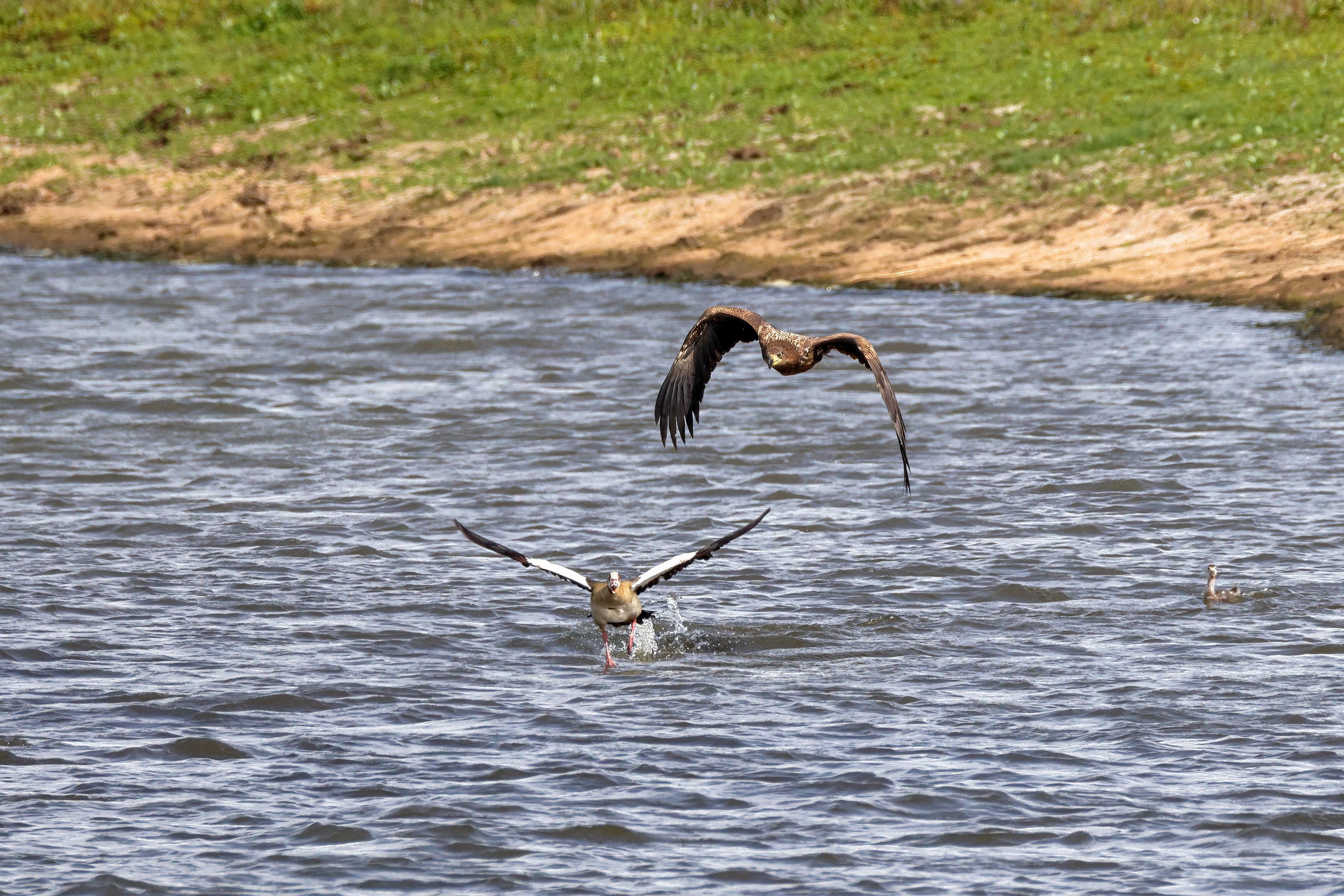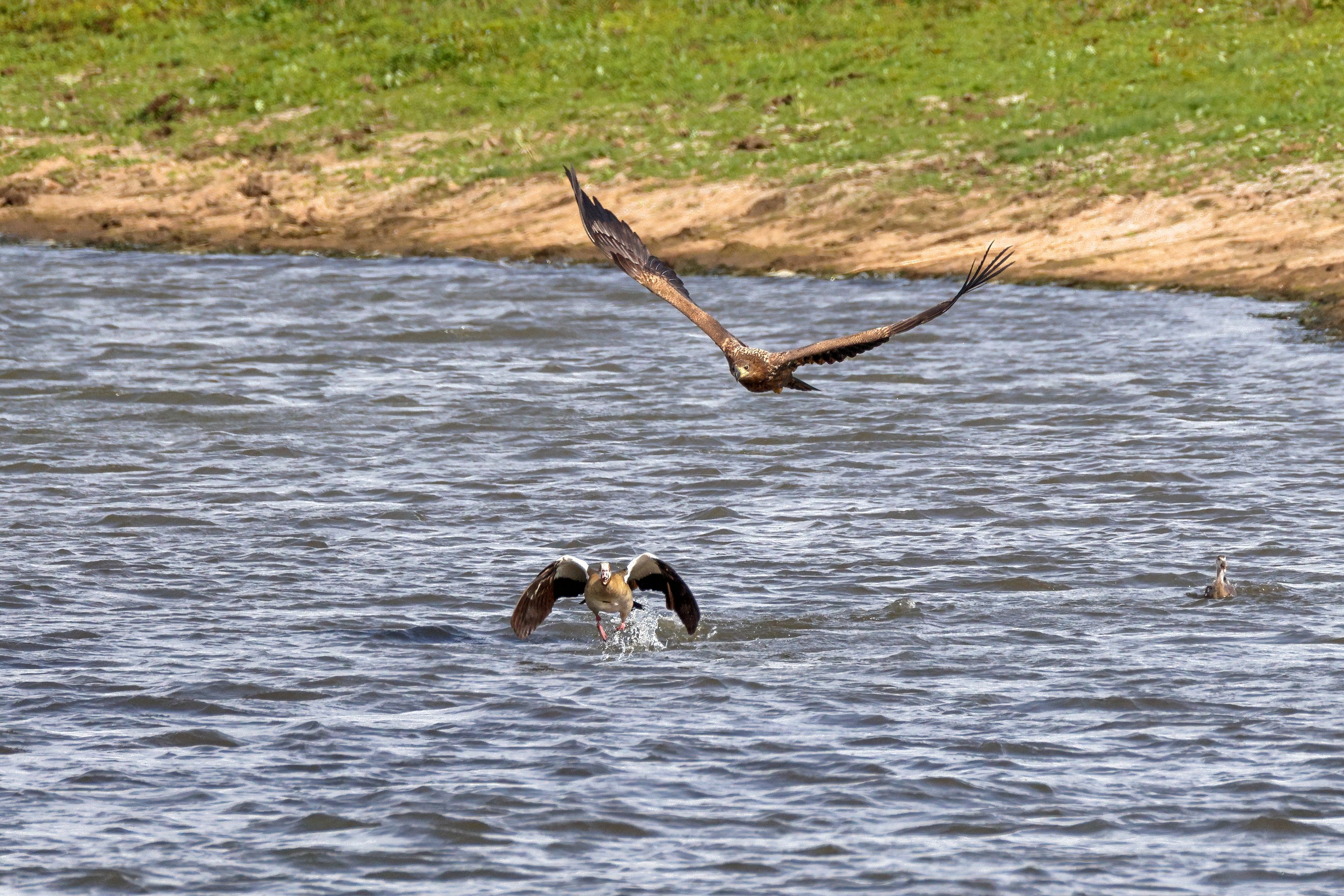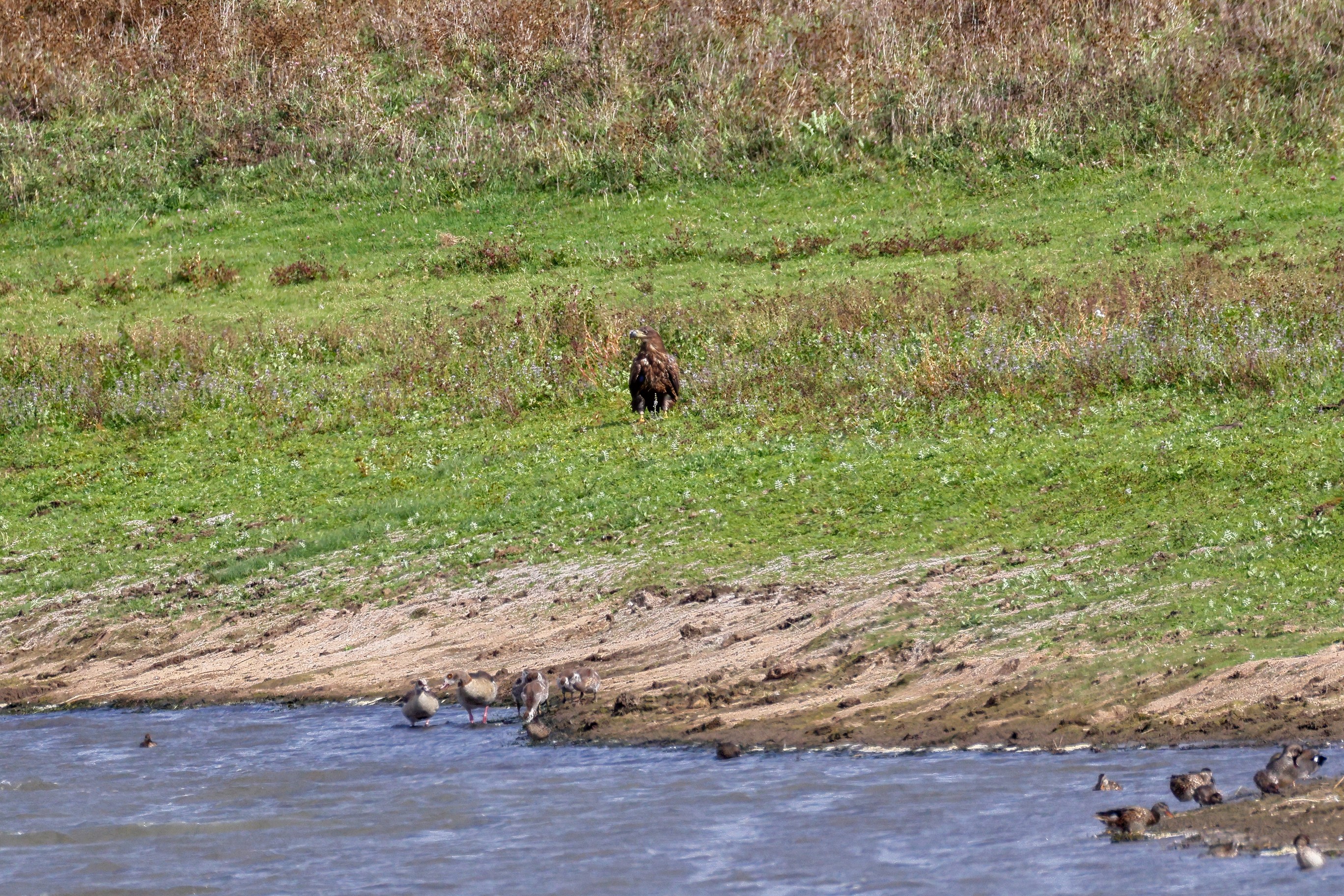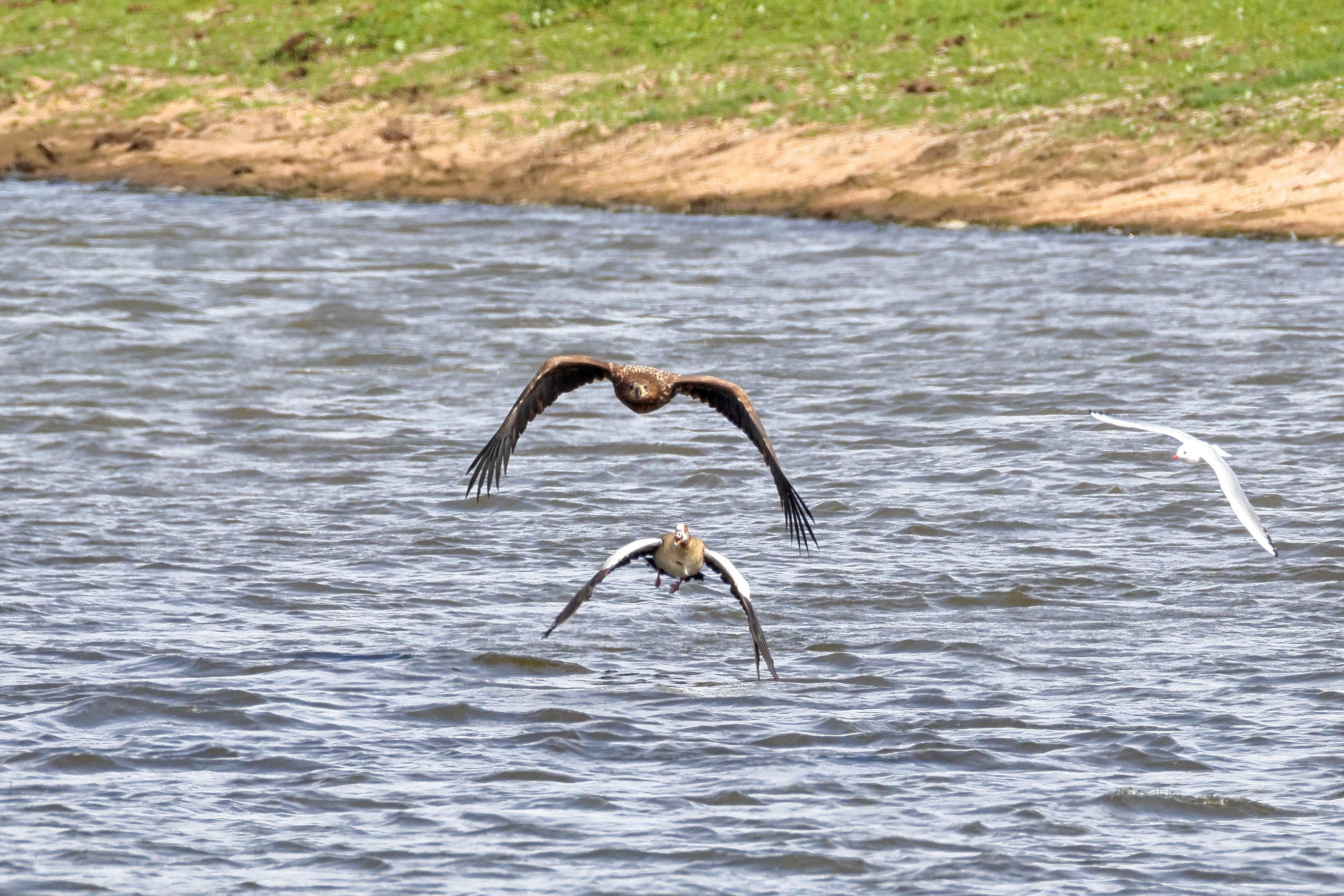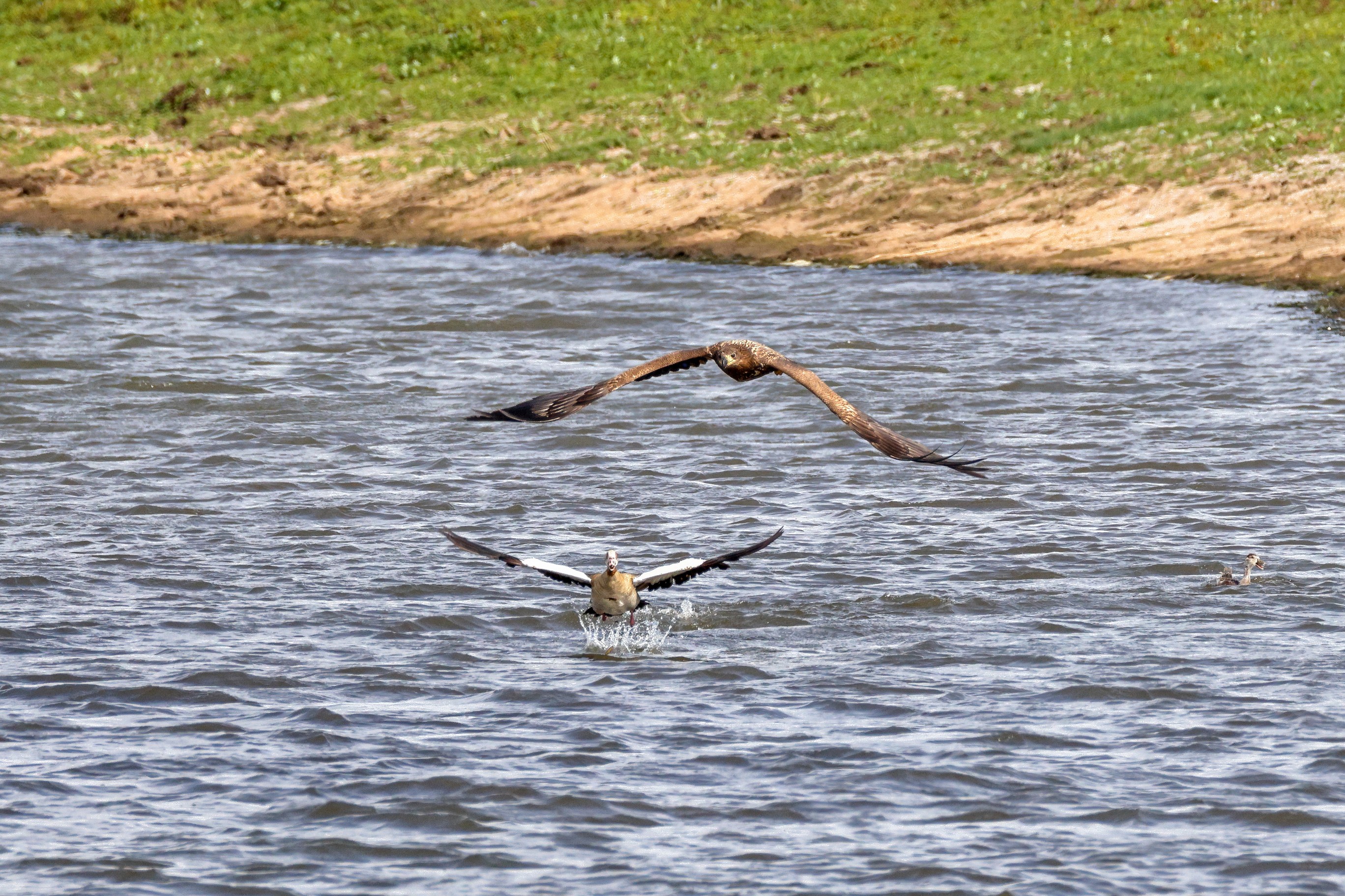 Nilgansfamilie im Focus des Jungseeadlers