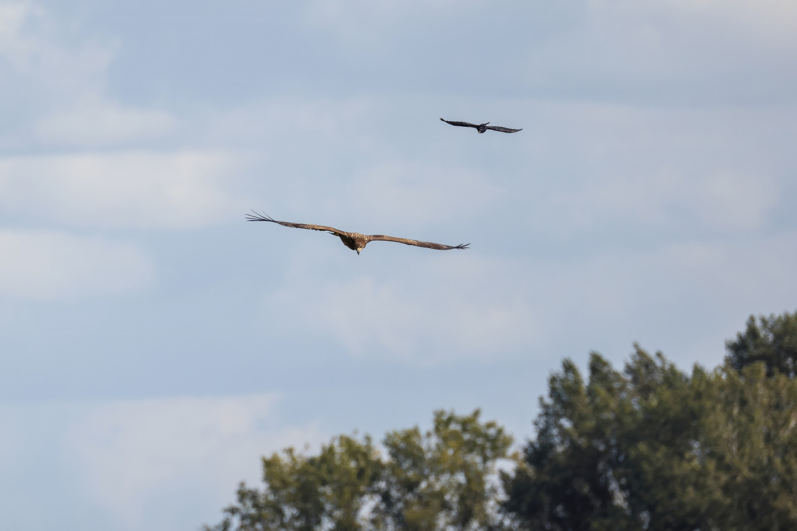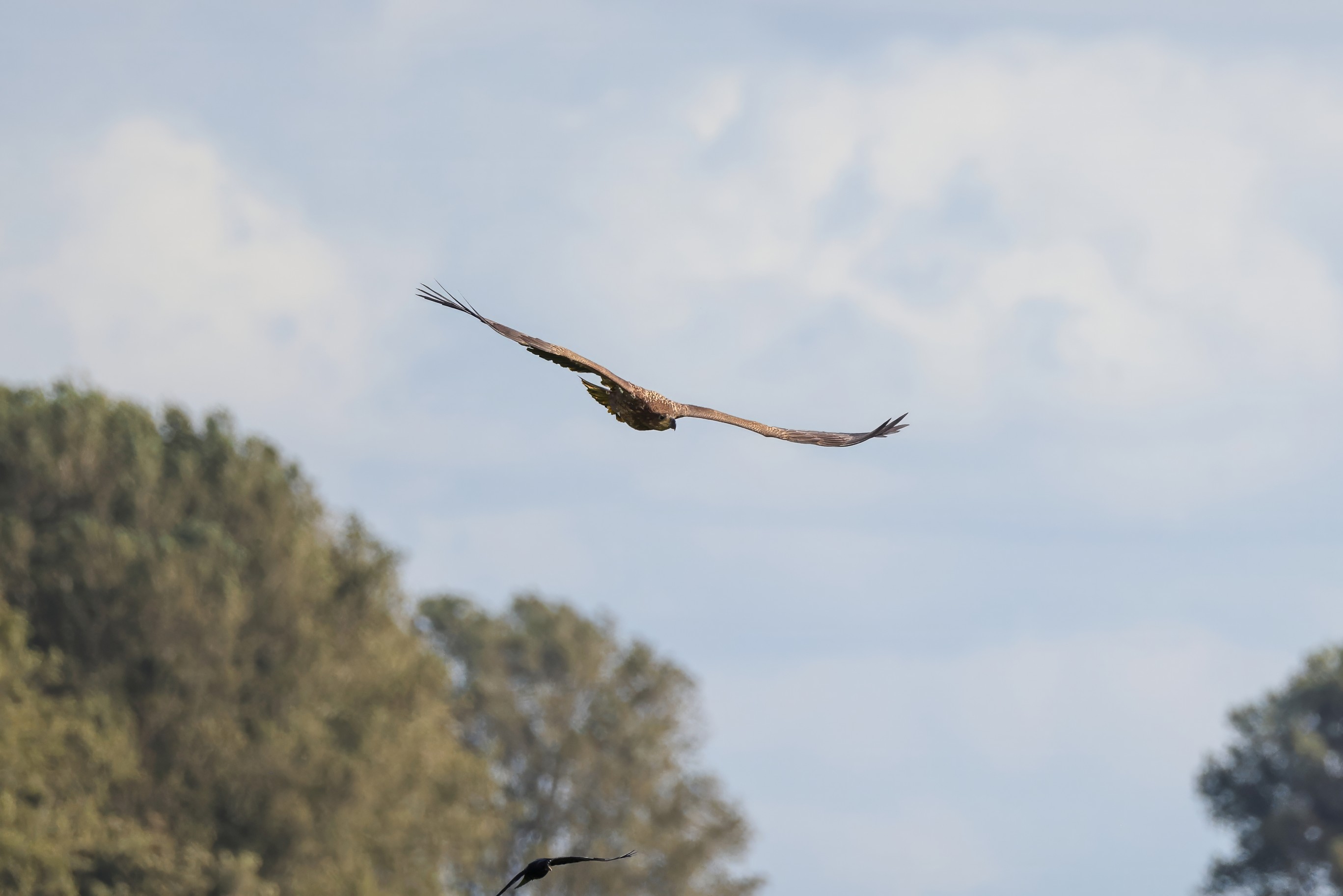 Rohrweihe und junger Rotmilan