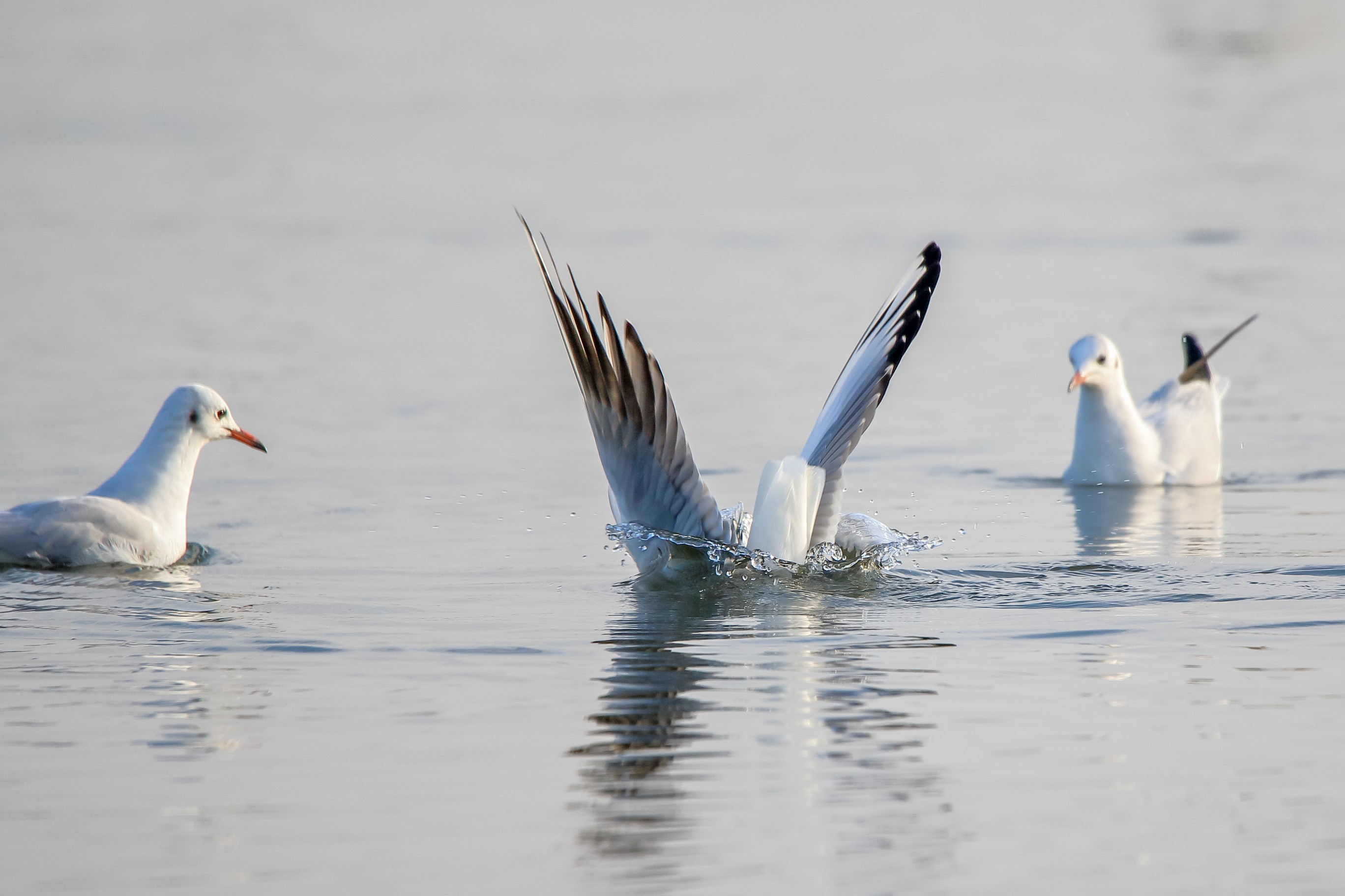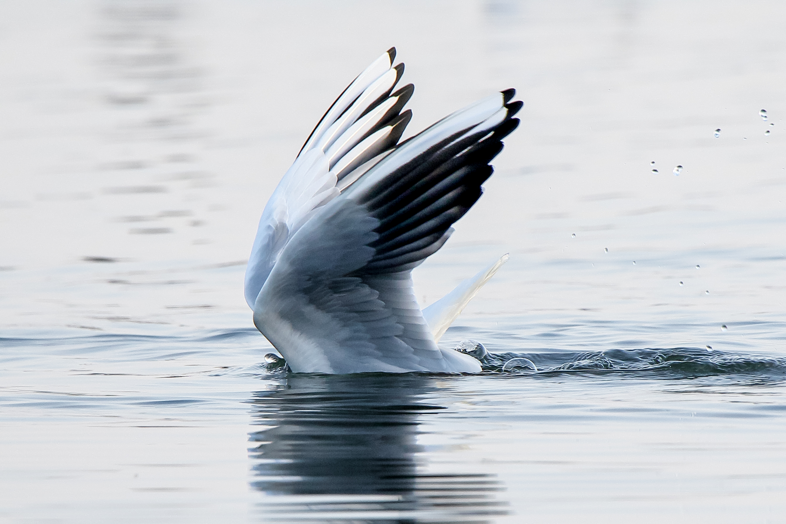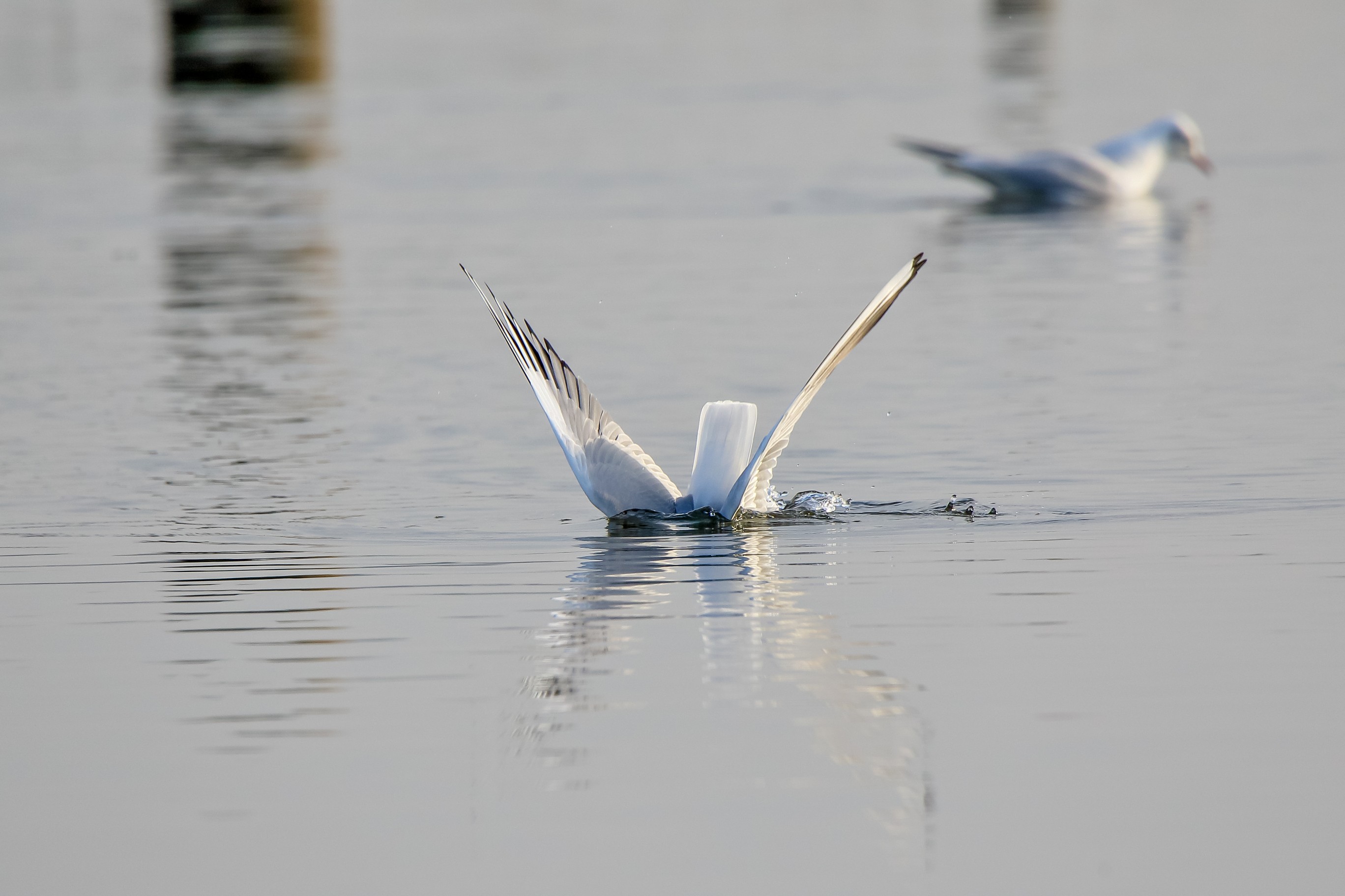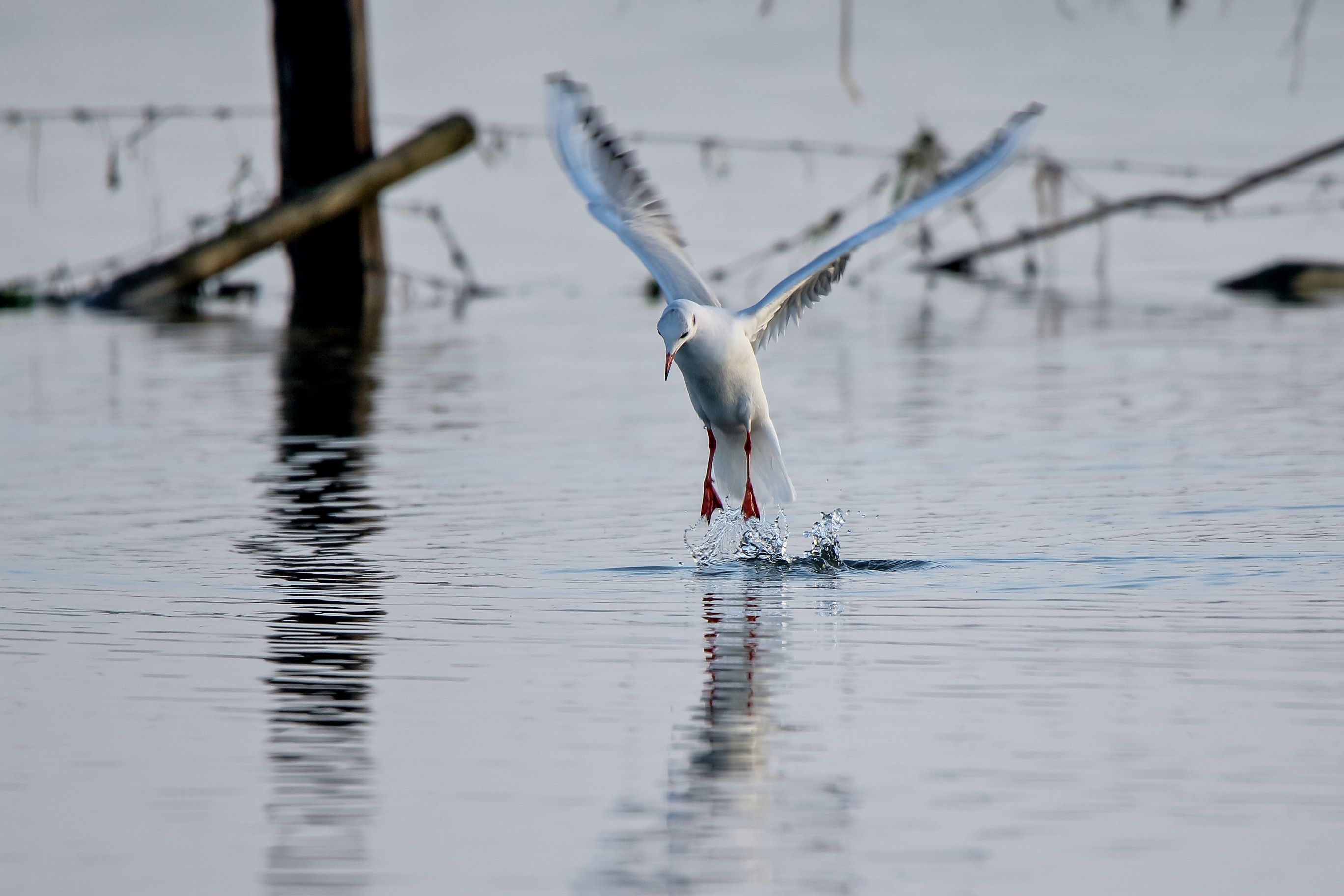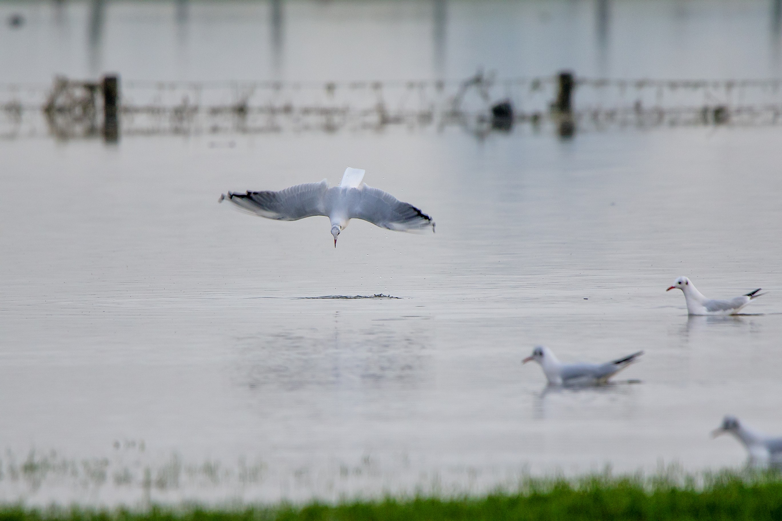Akrobatische Futtersuche der Möwen bei Hochwasser