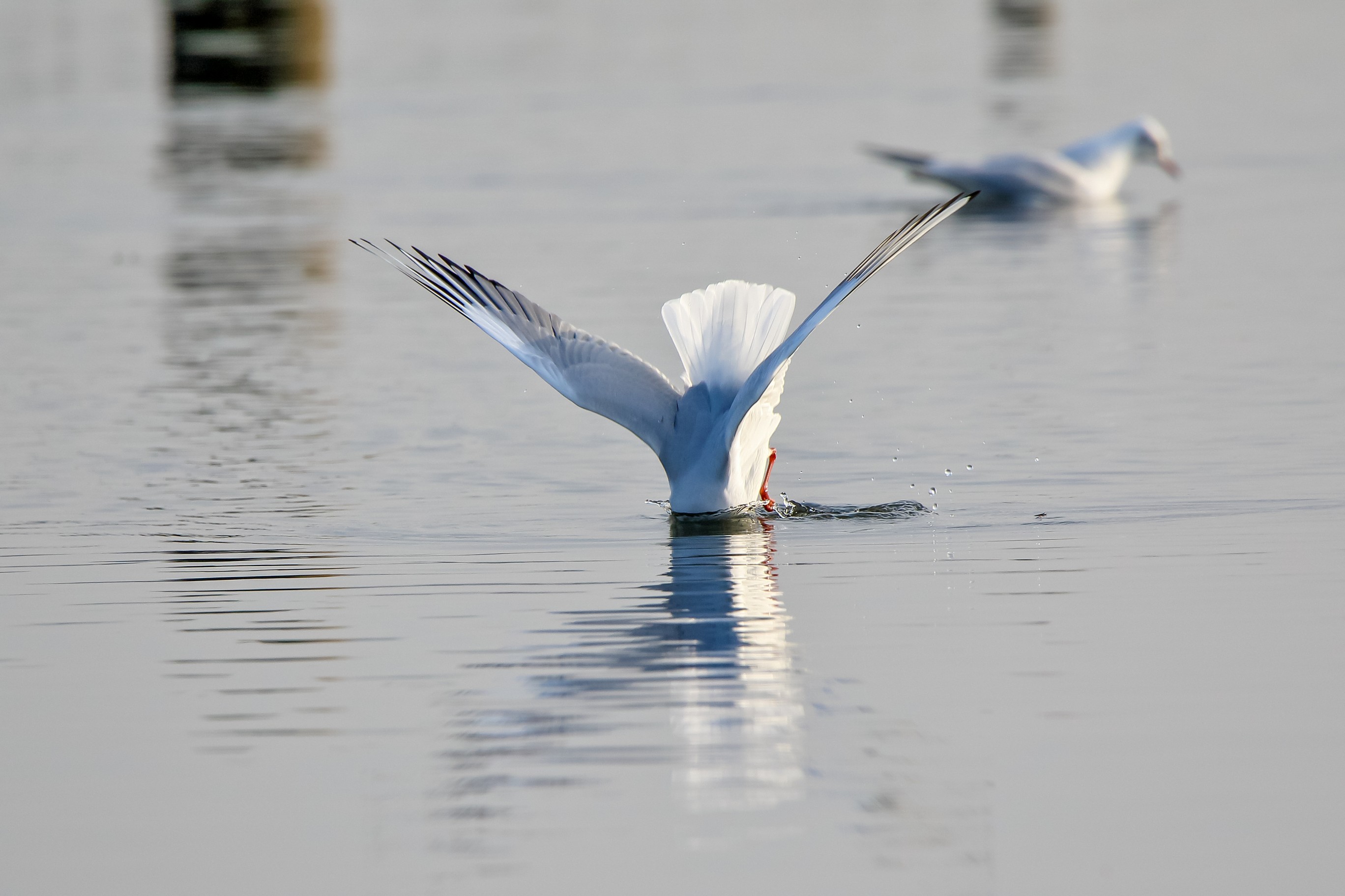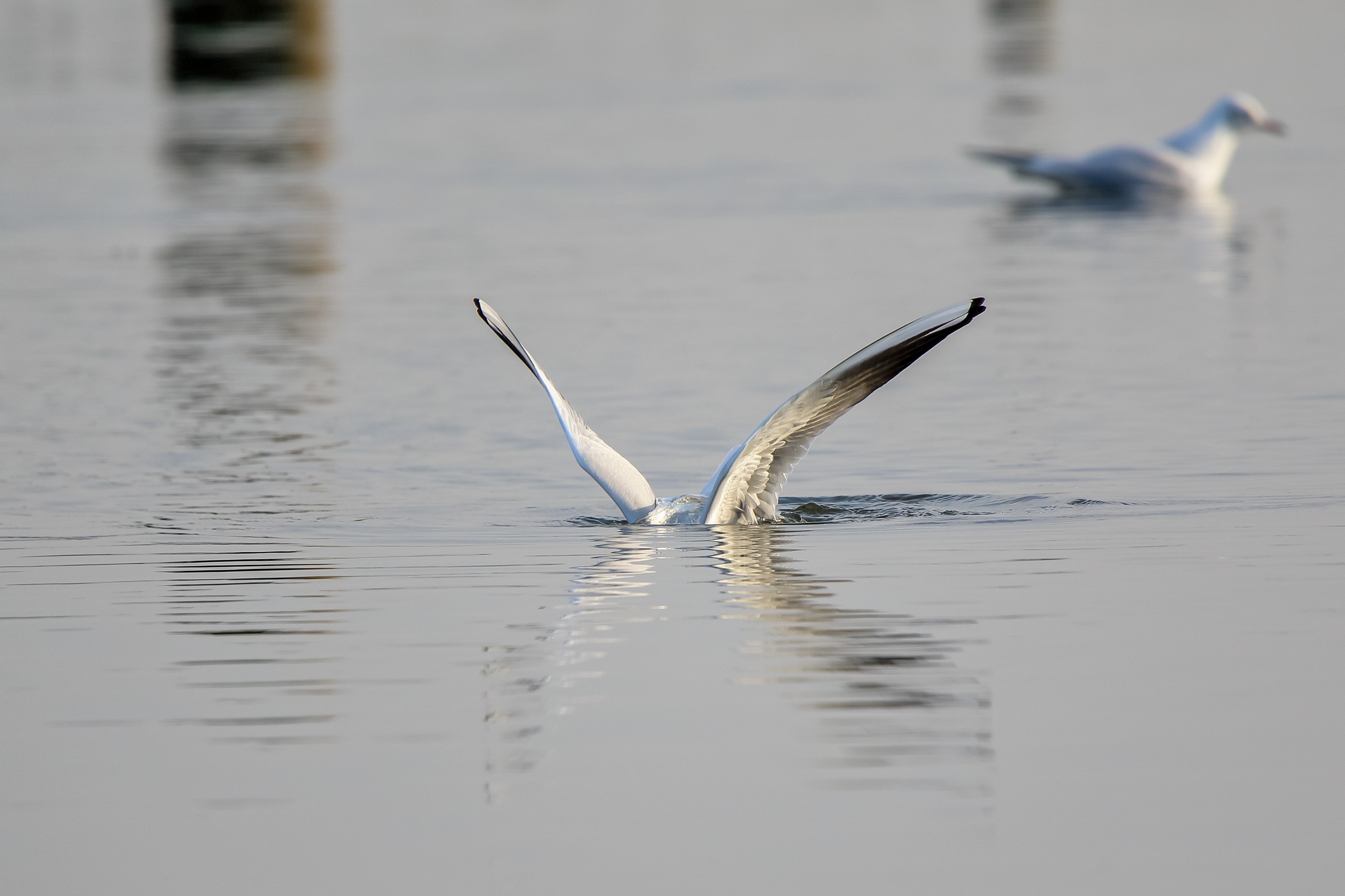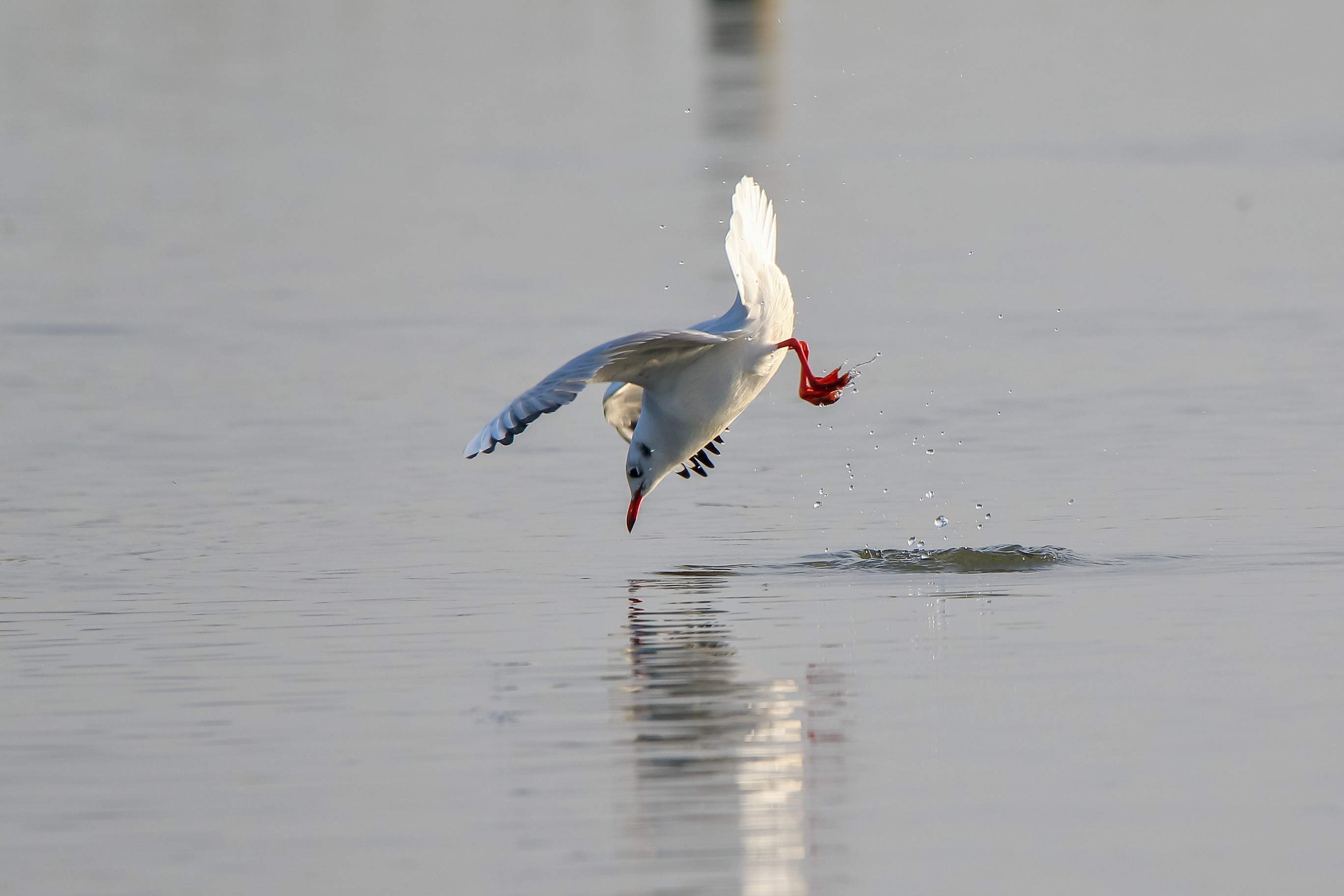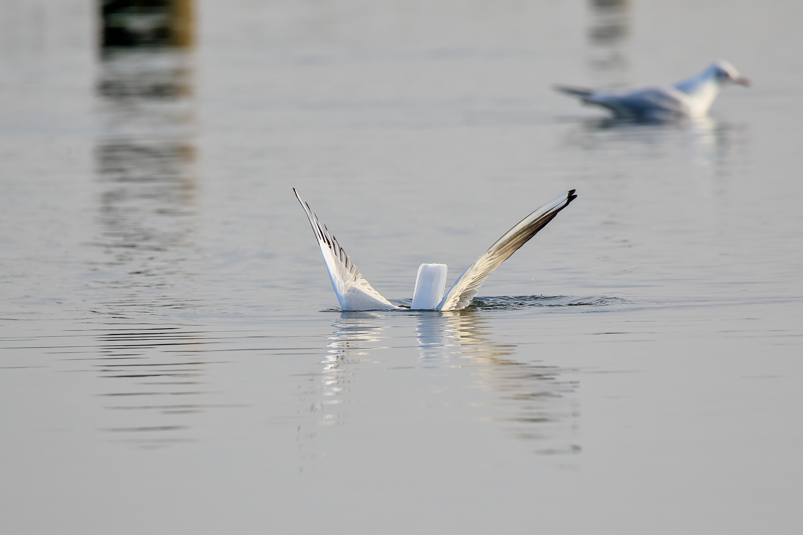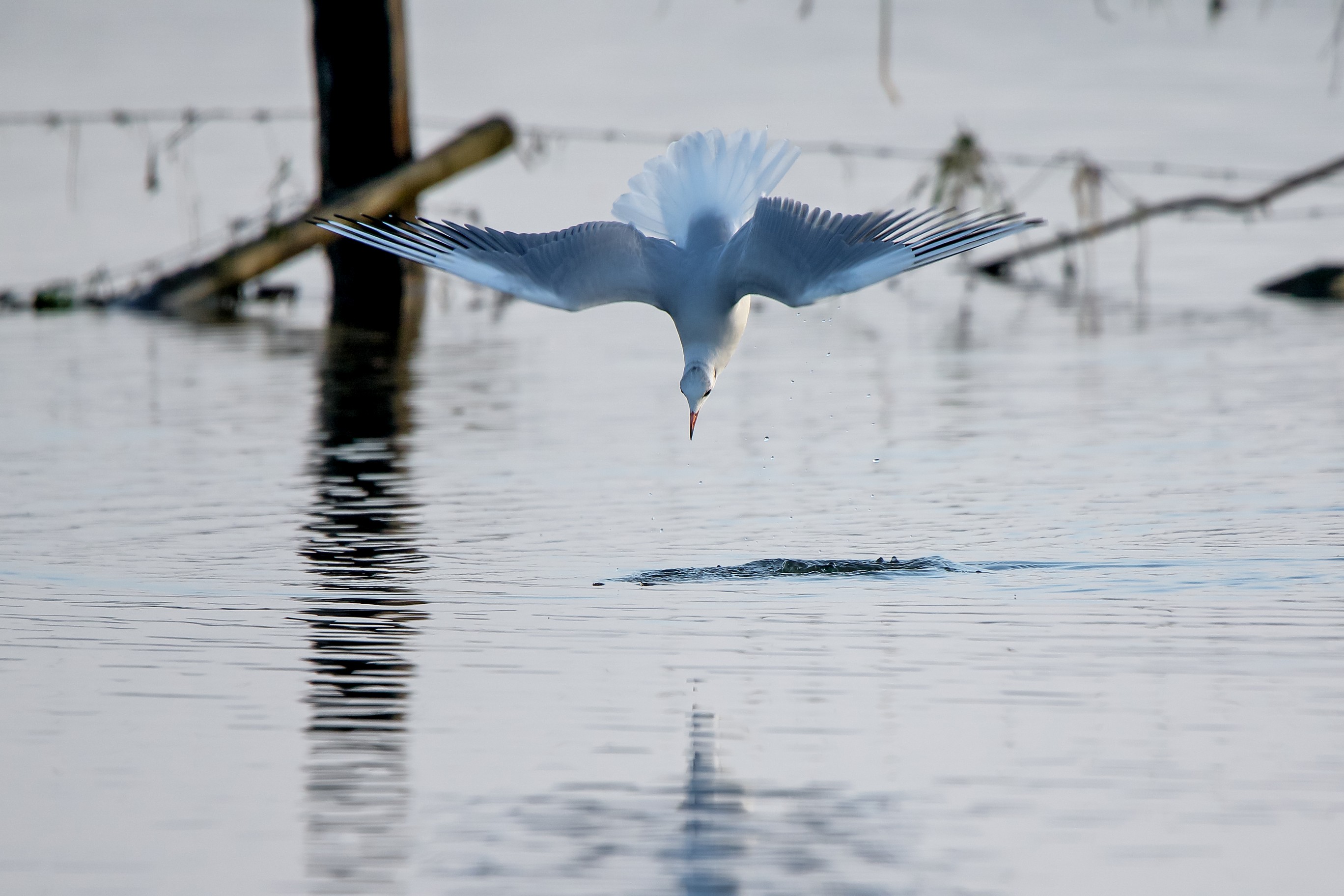 Akrobatische Futtersuche der Möwen bei Hochwasser