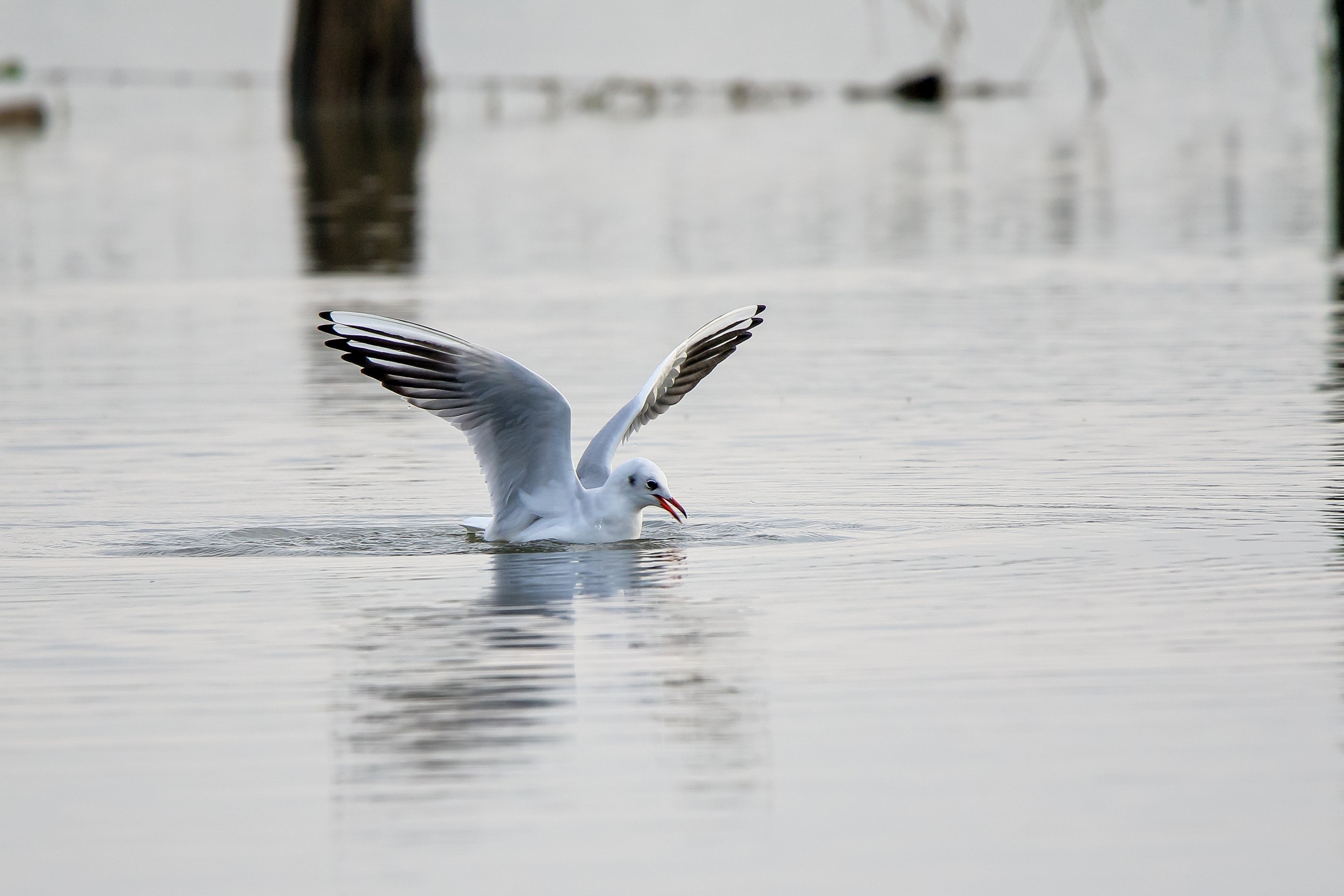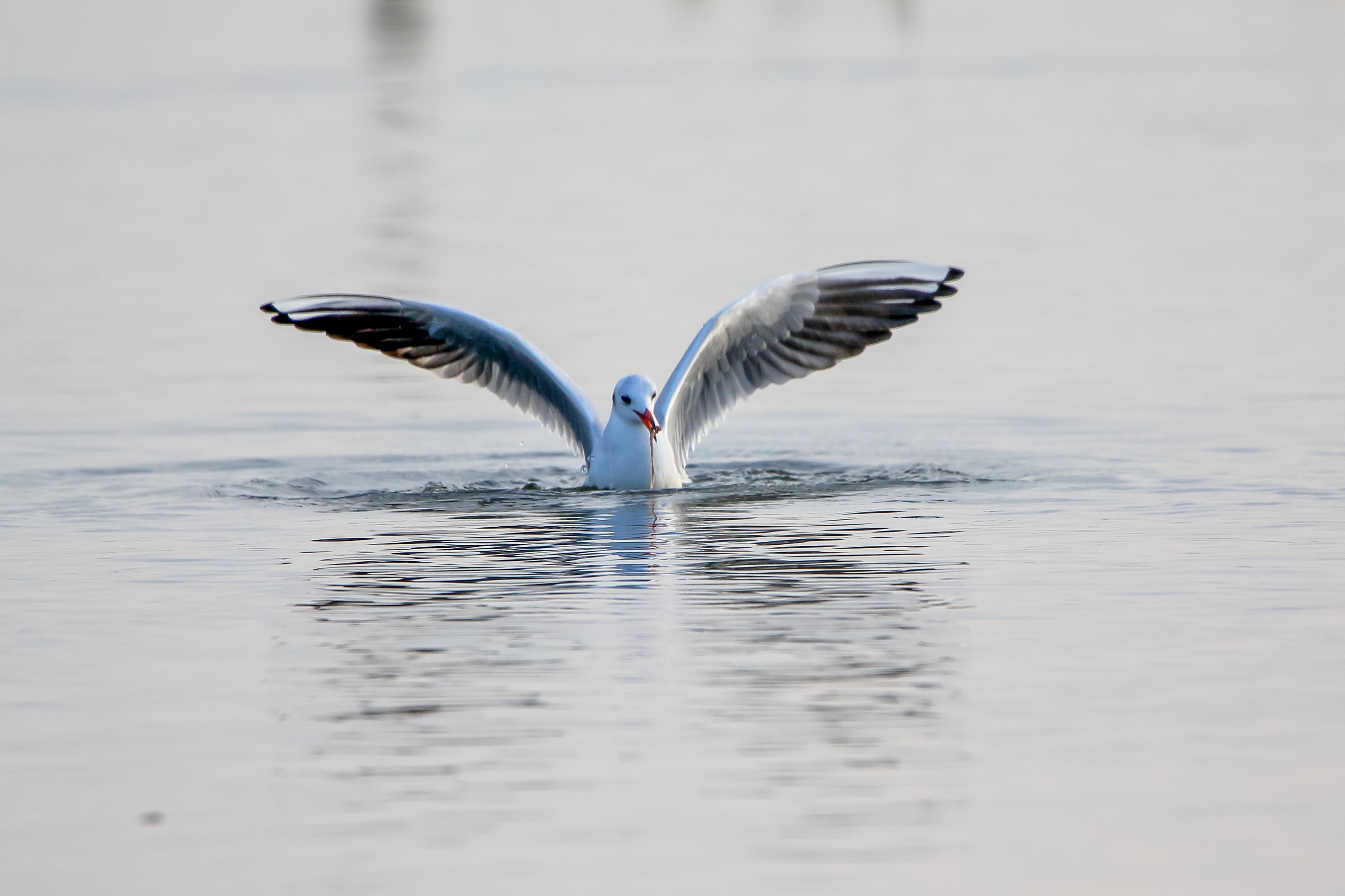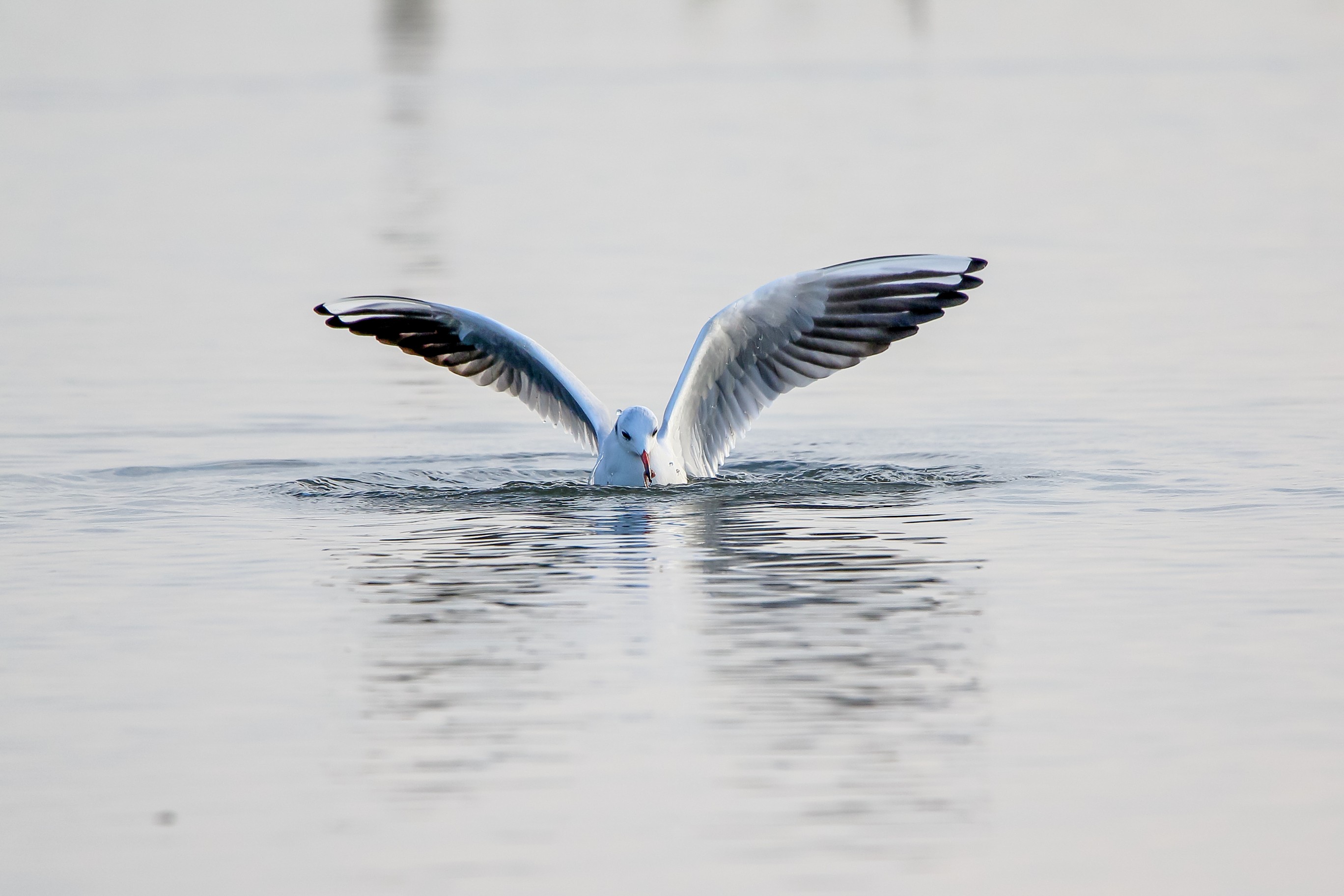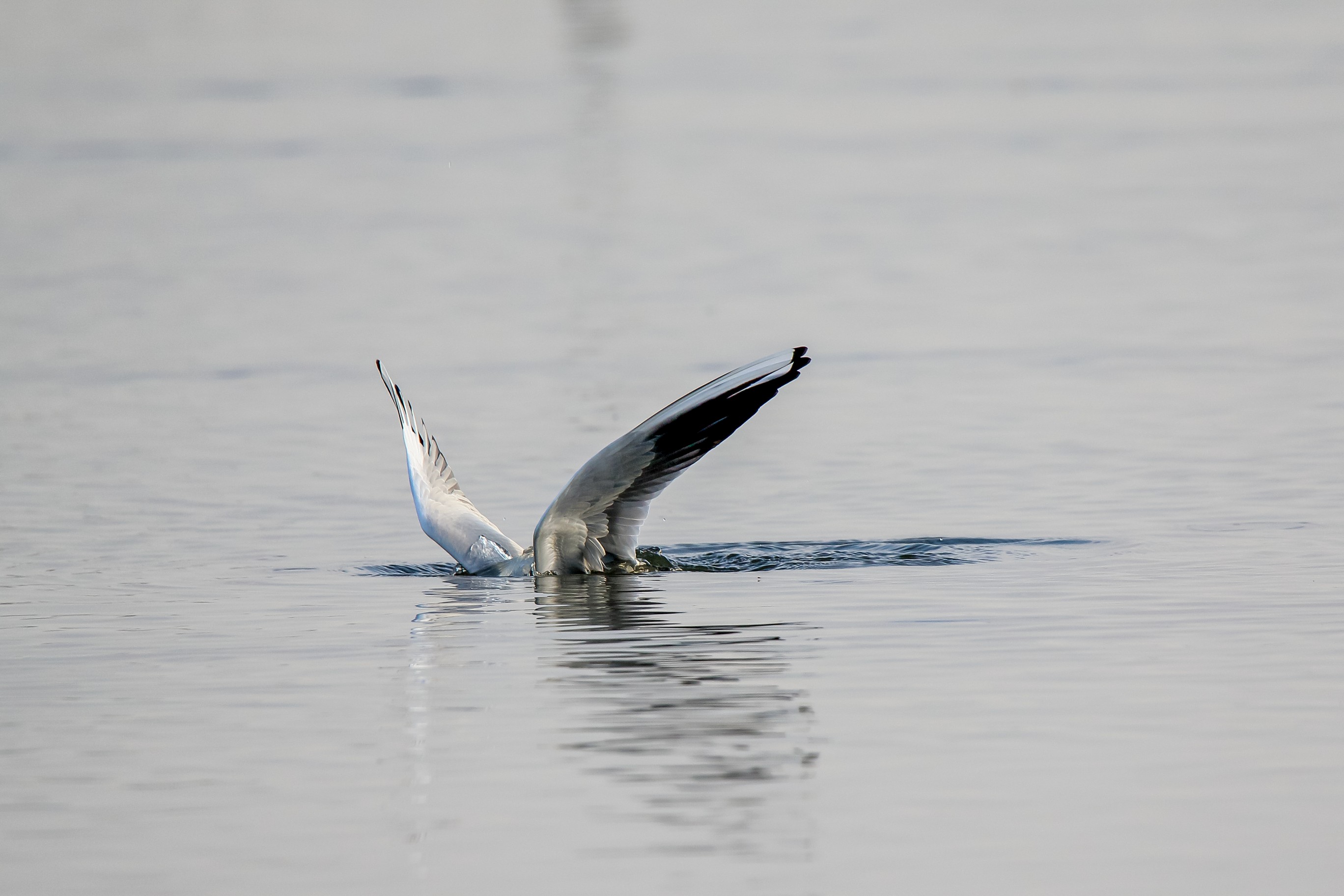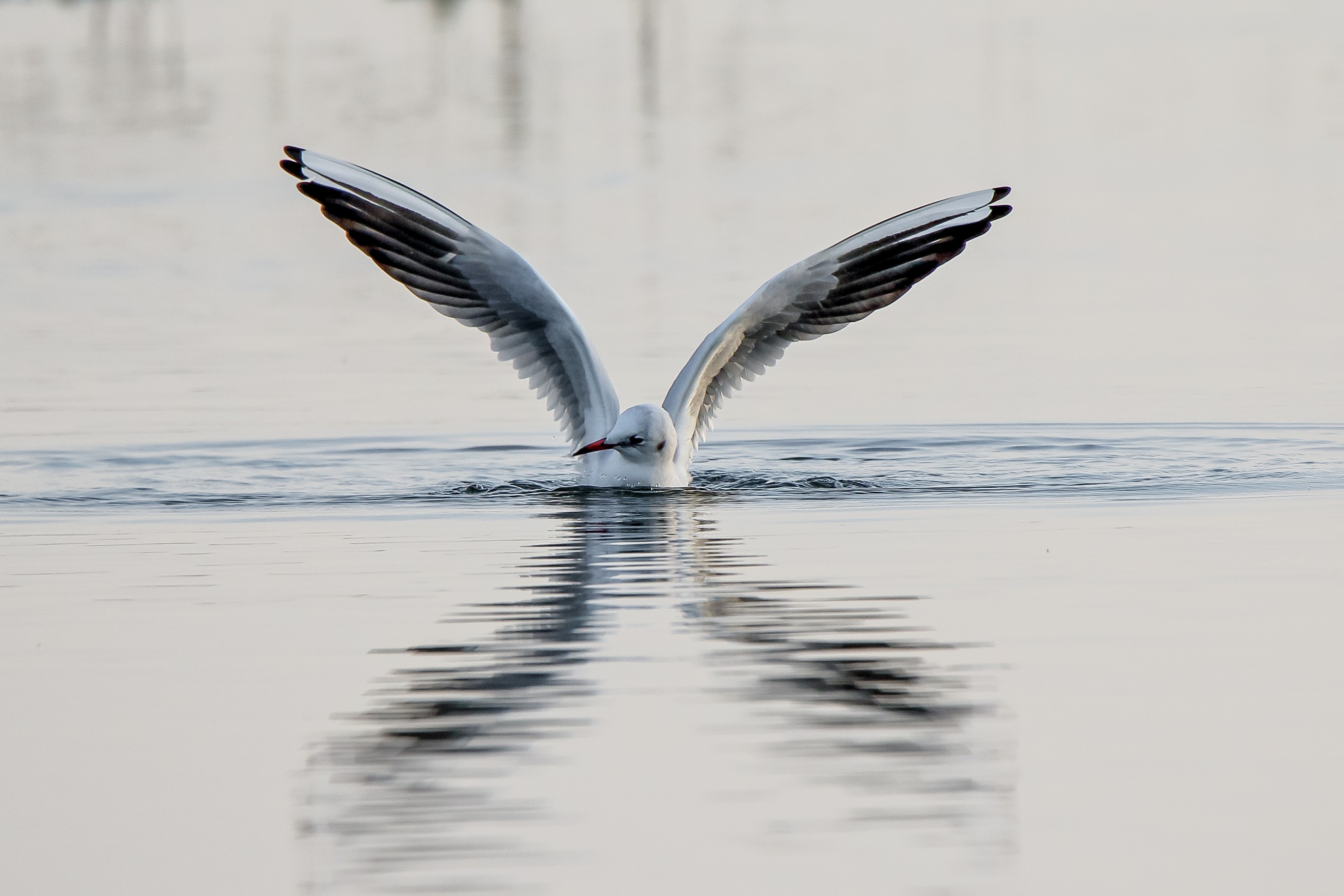 Akrobatische Futtersuche der Möwen bei Hochwasser