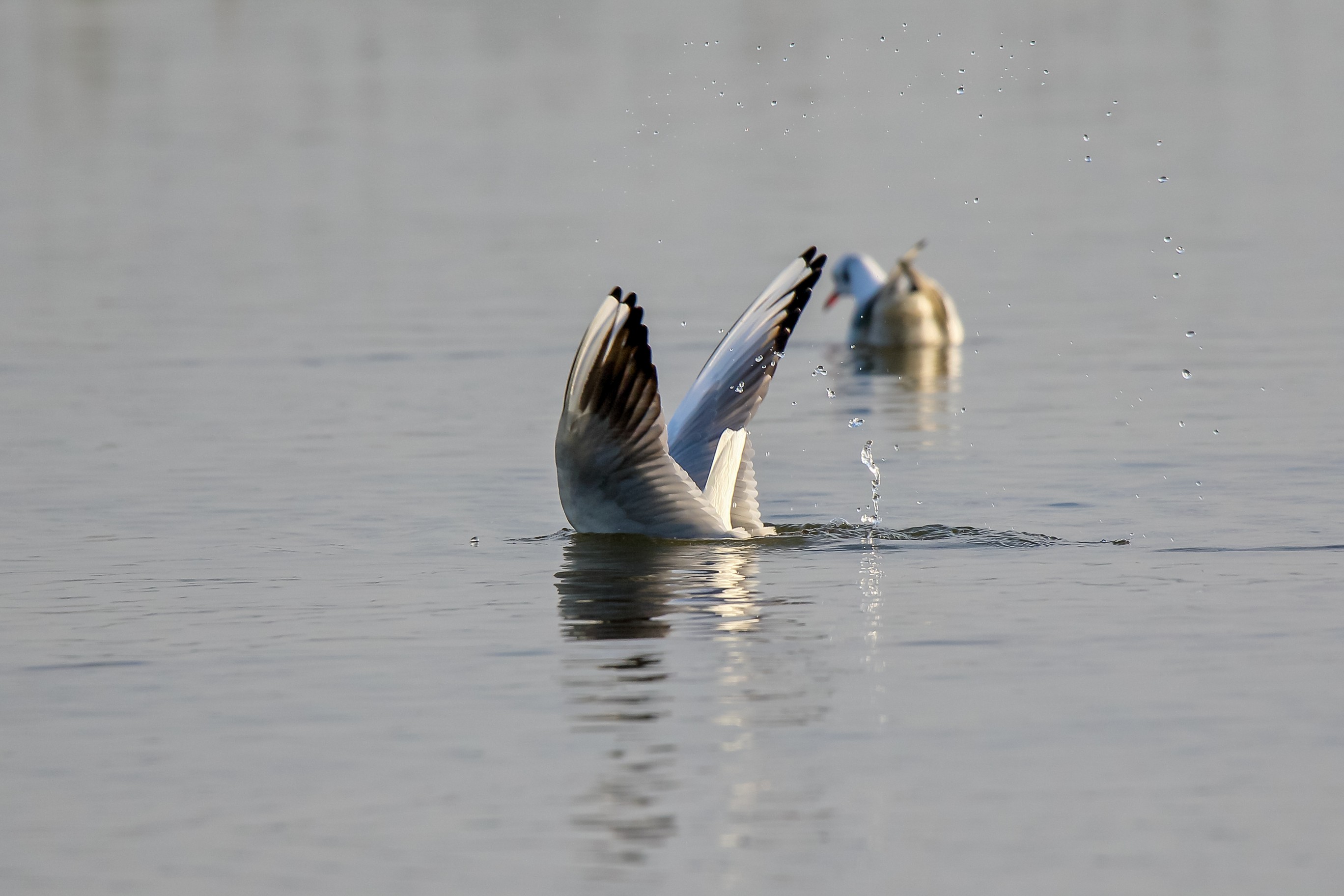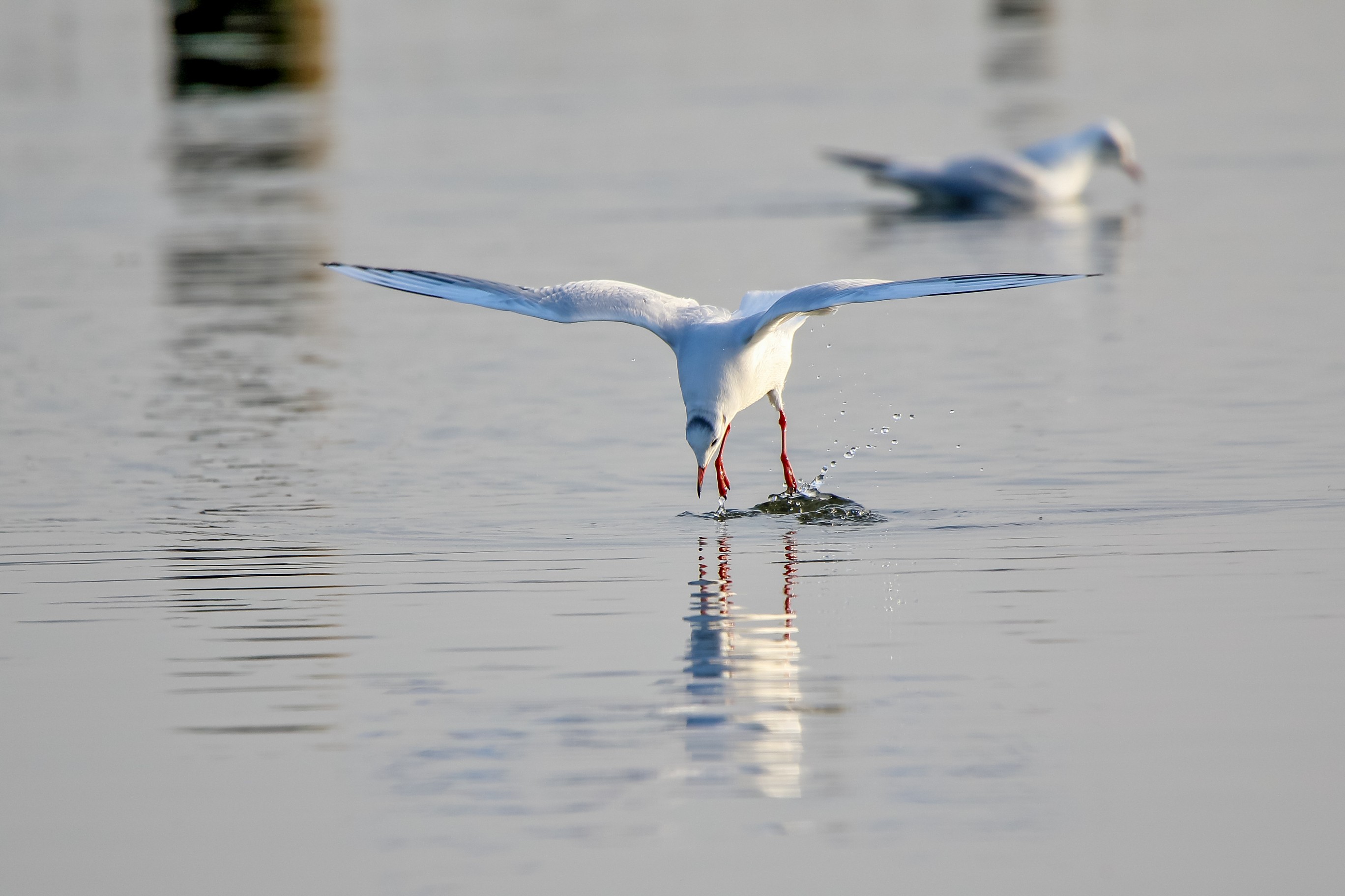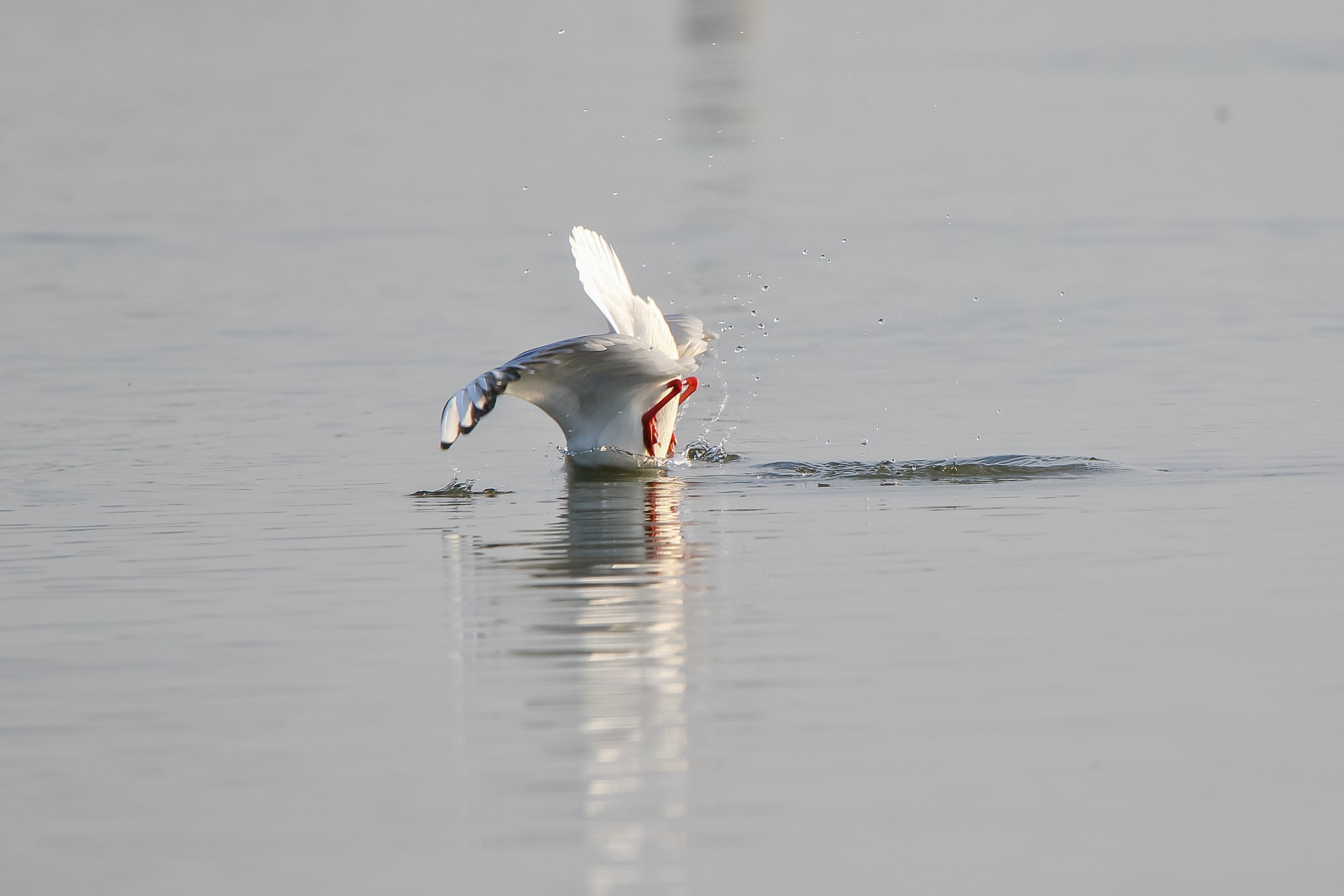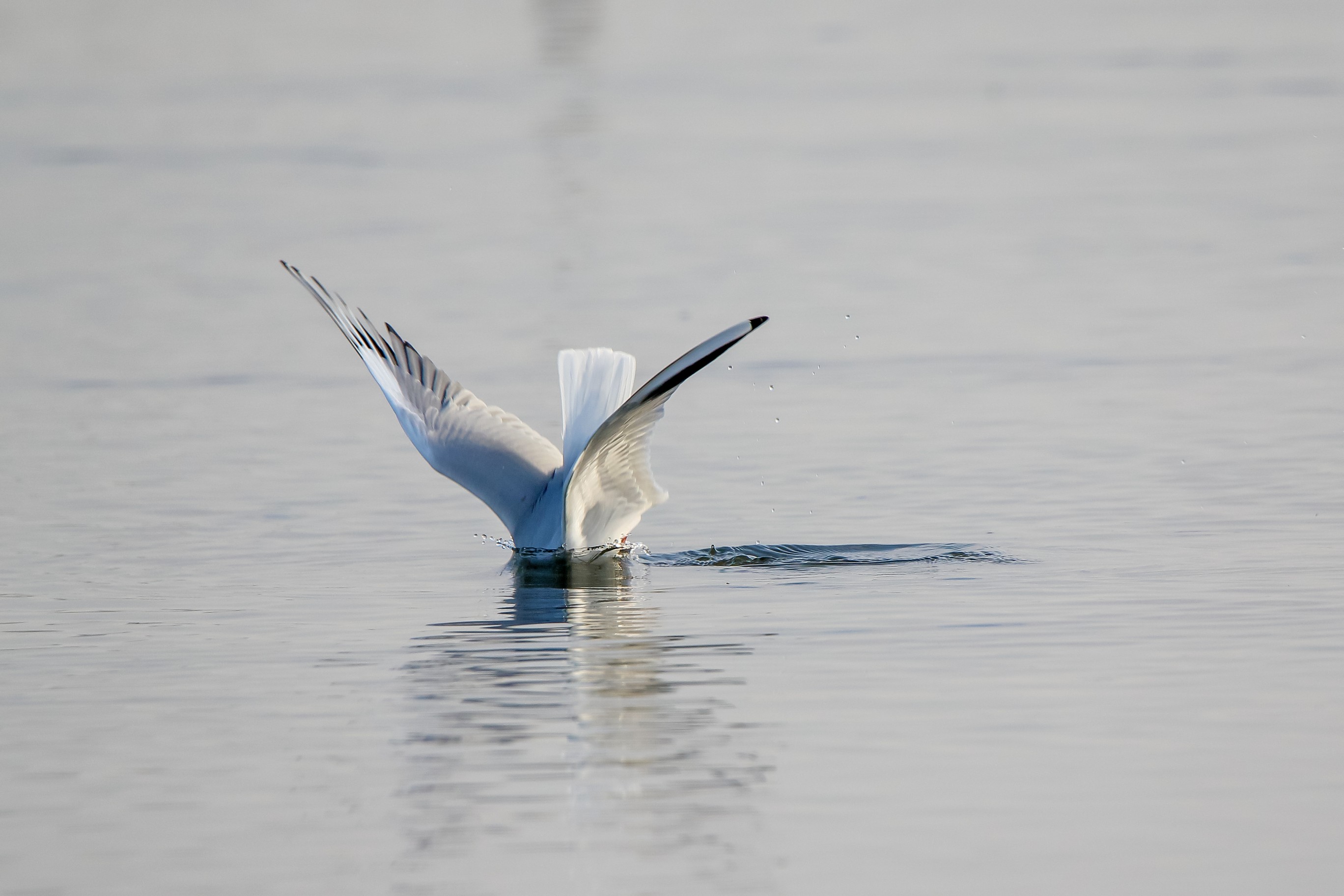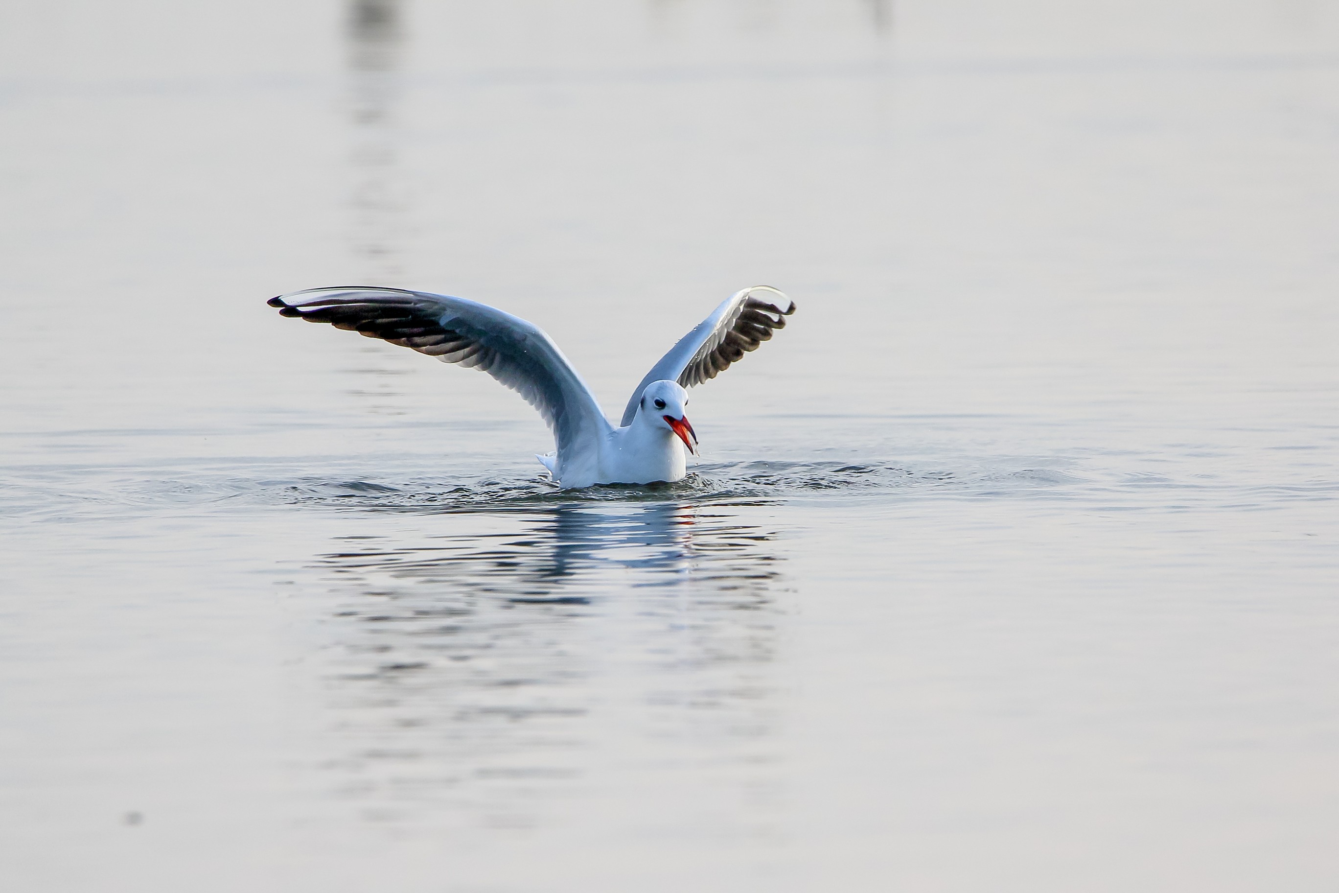Akrobatische Futtersuche der Möwen bei Hochwasser