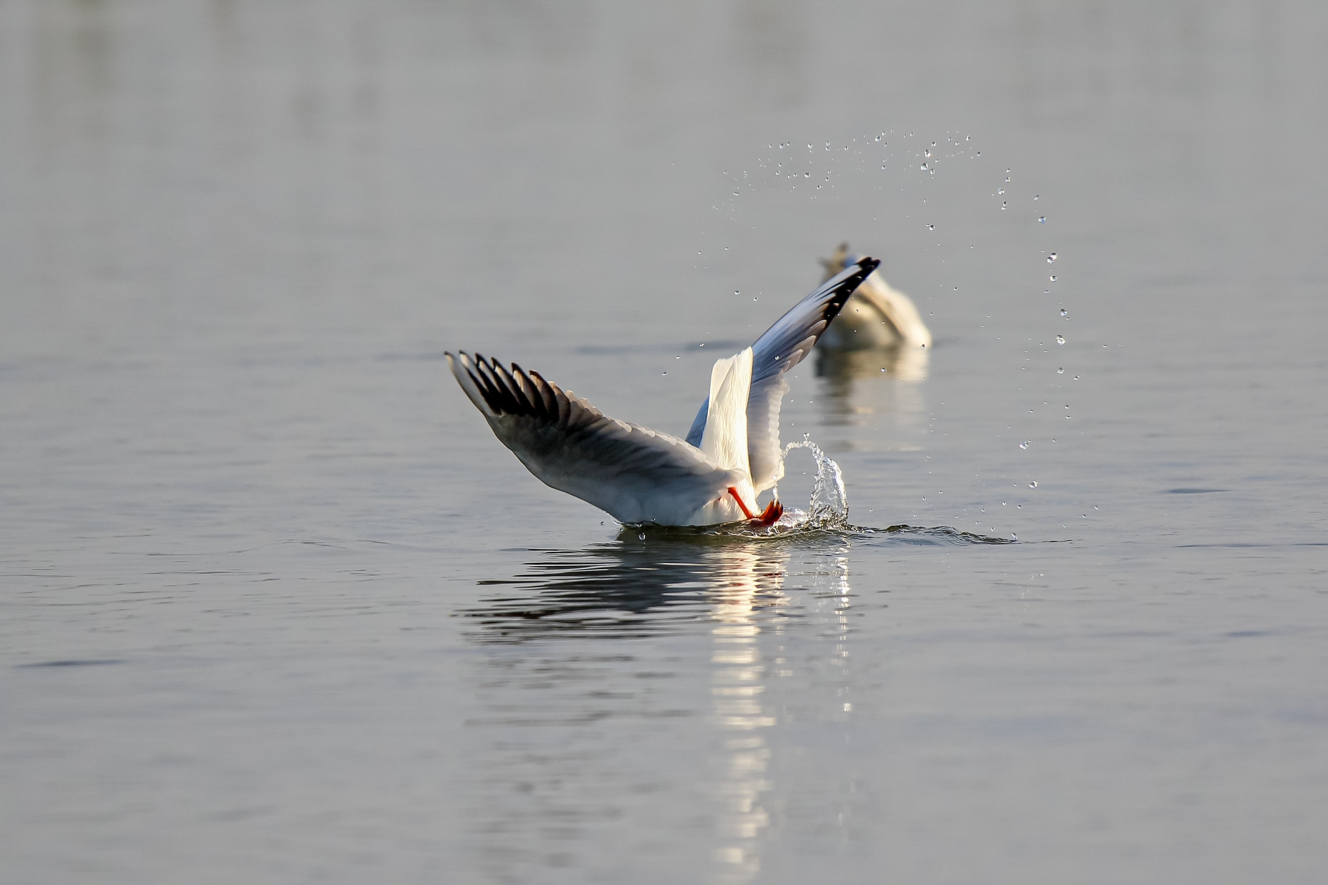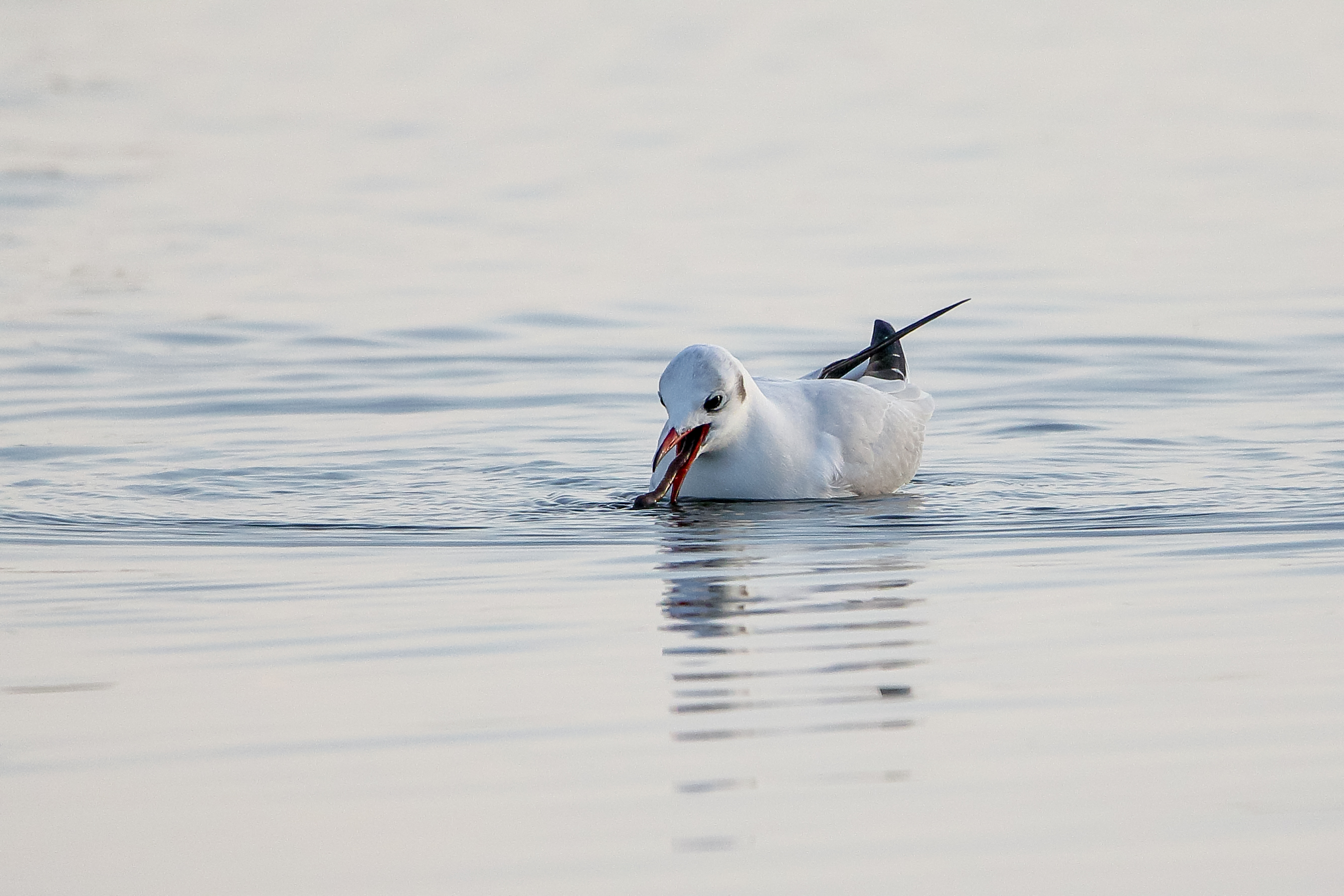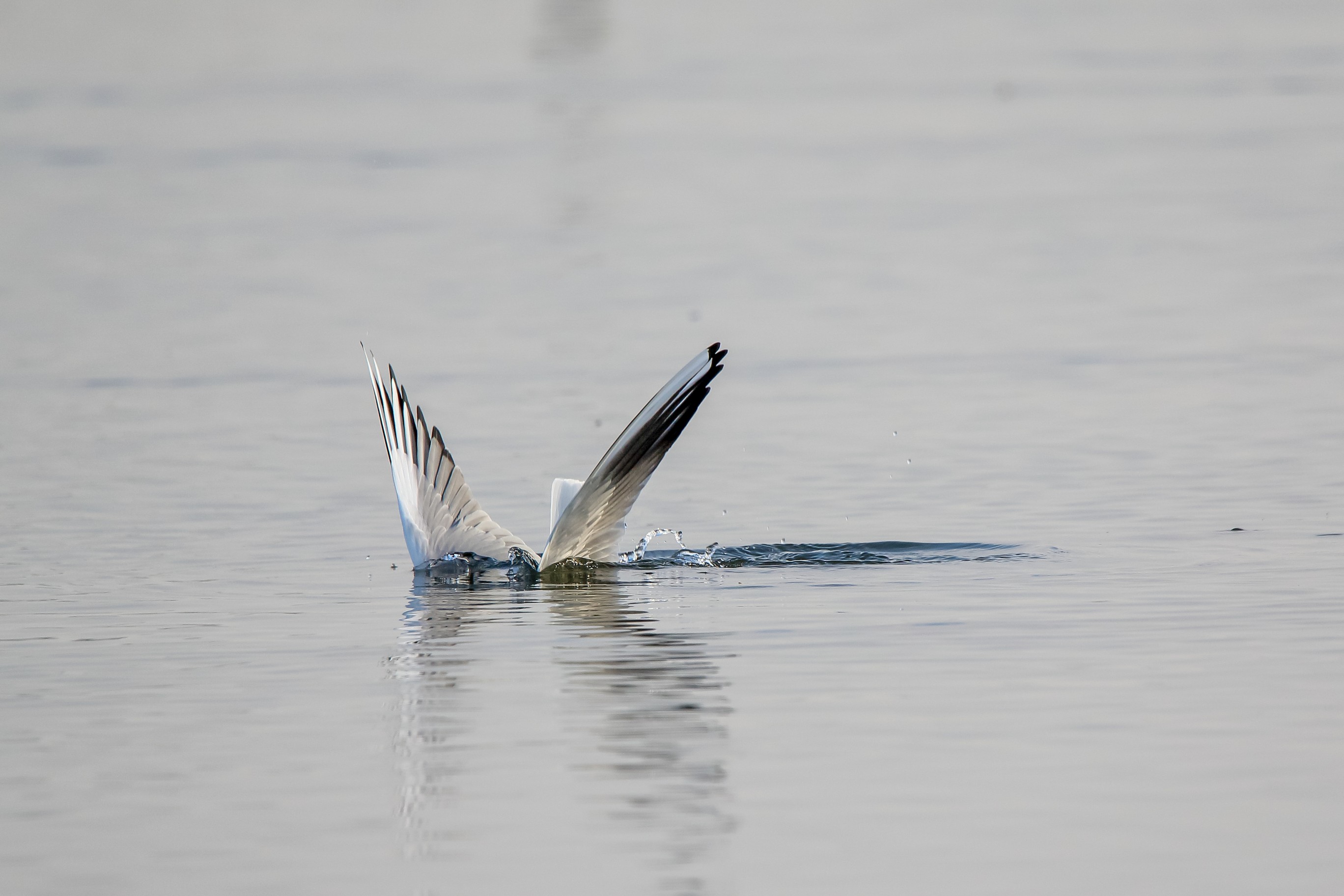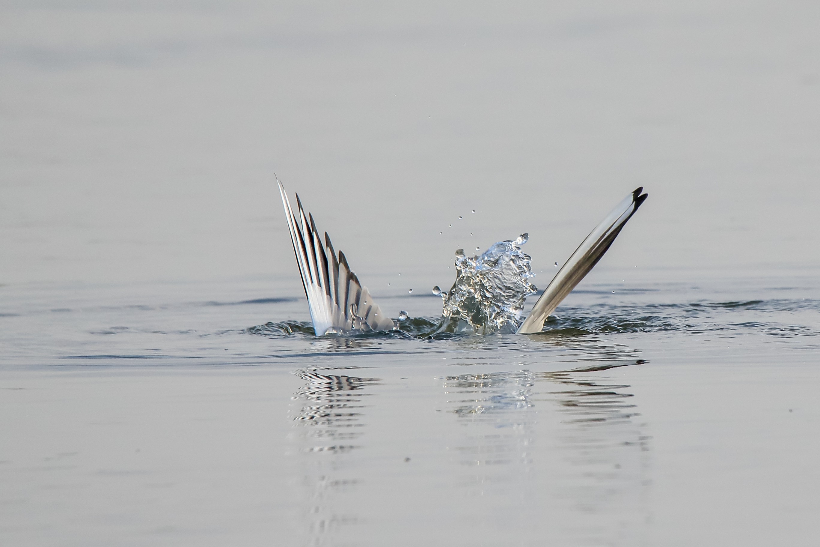 Akrobatische Futtersuche der Möwen bei Hochwasser