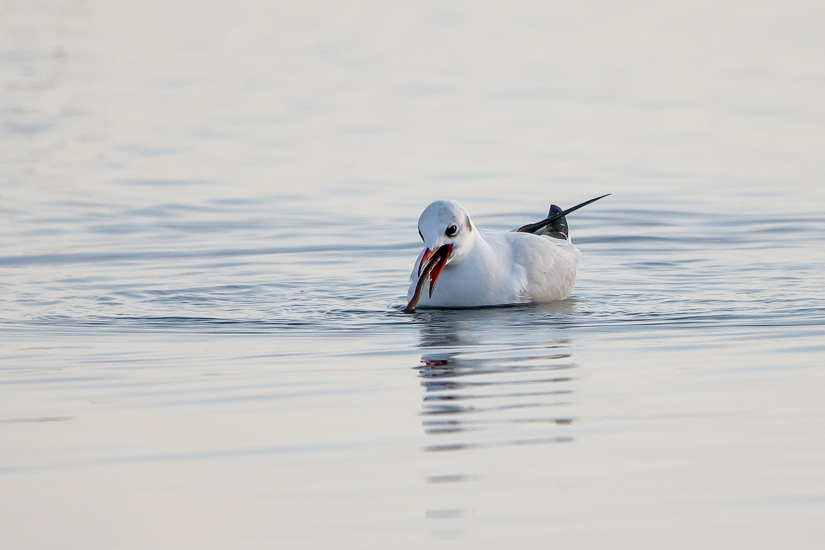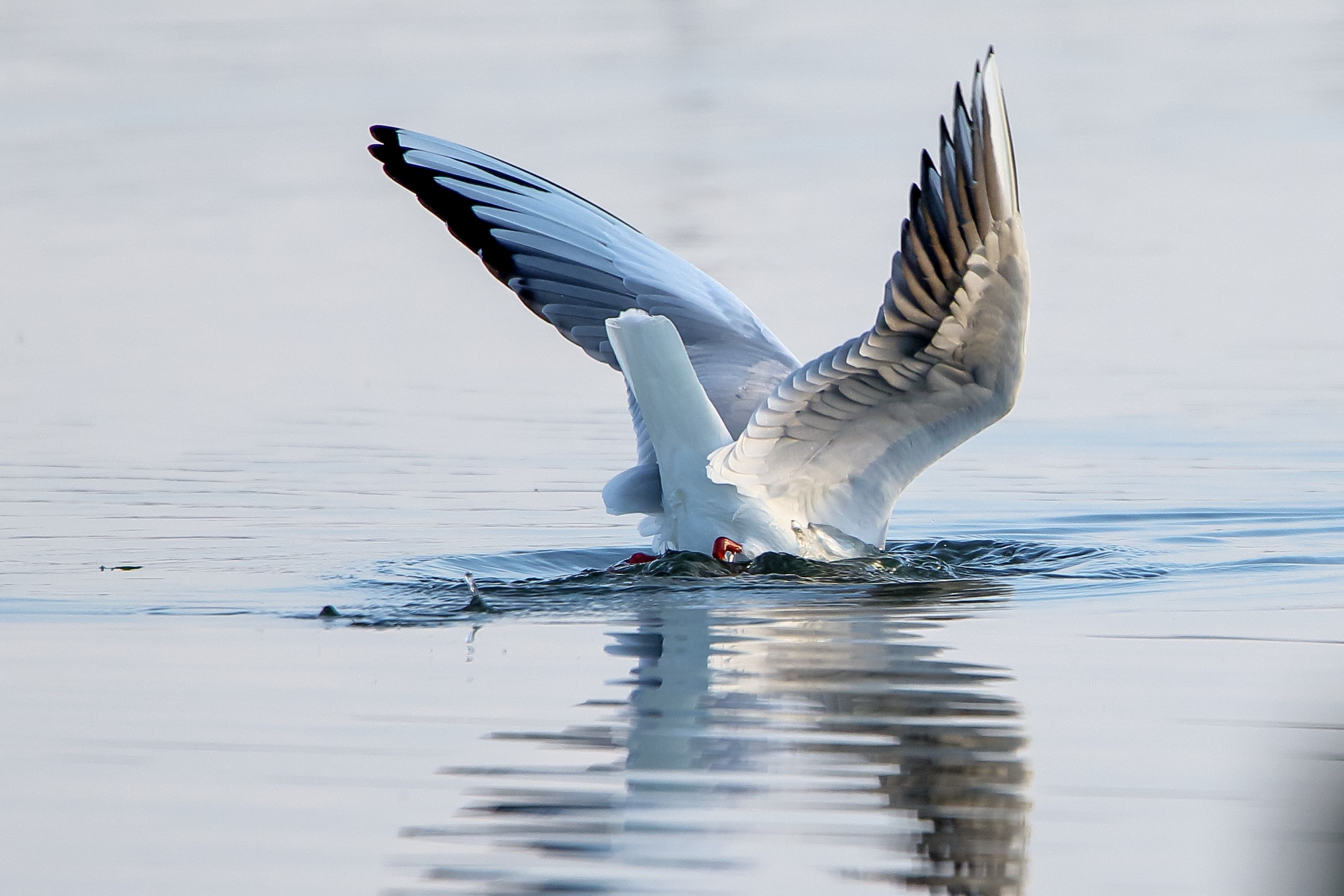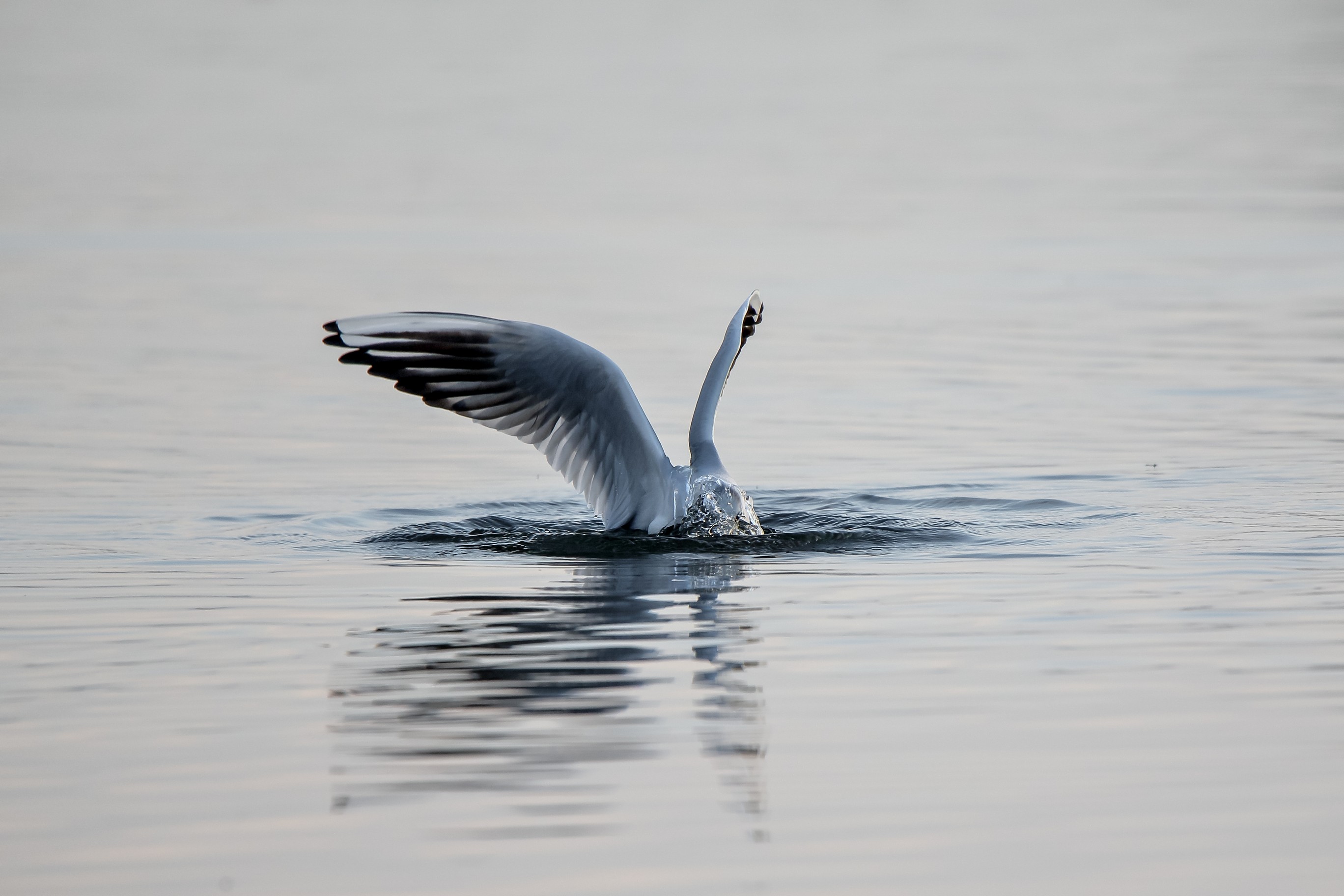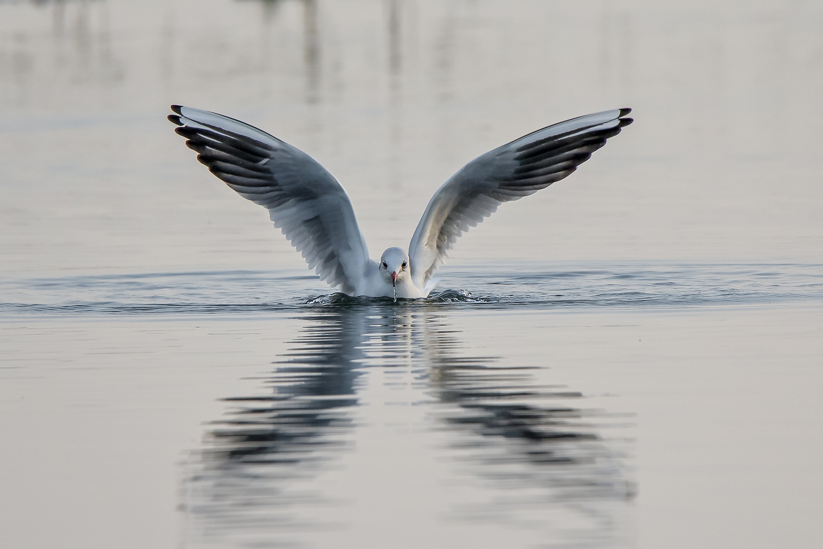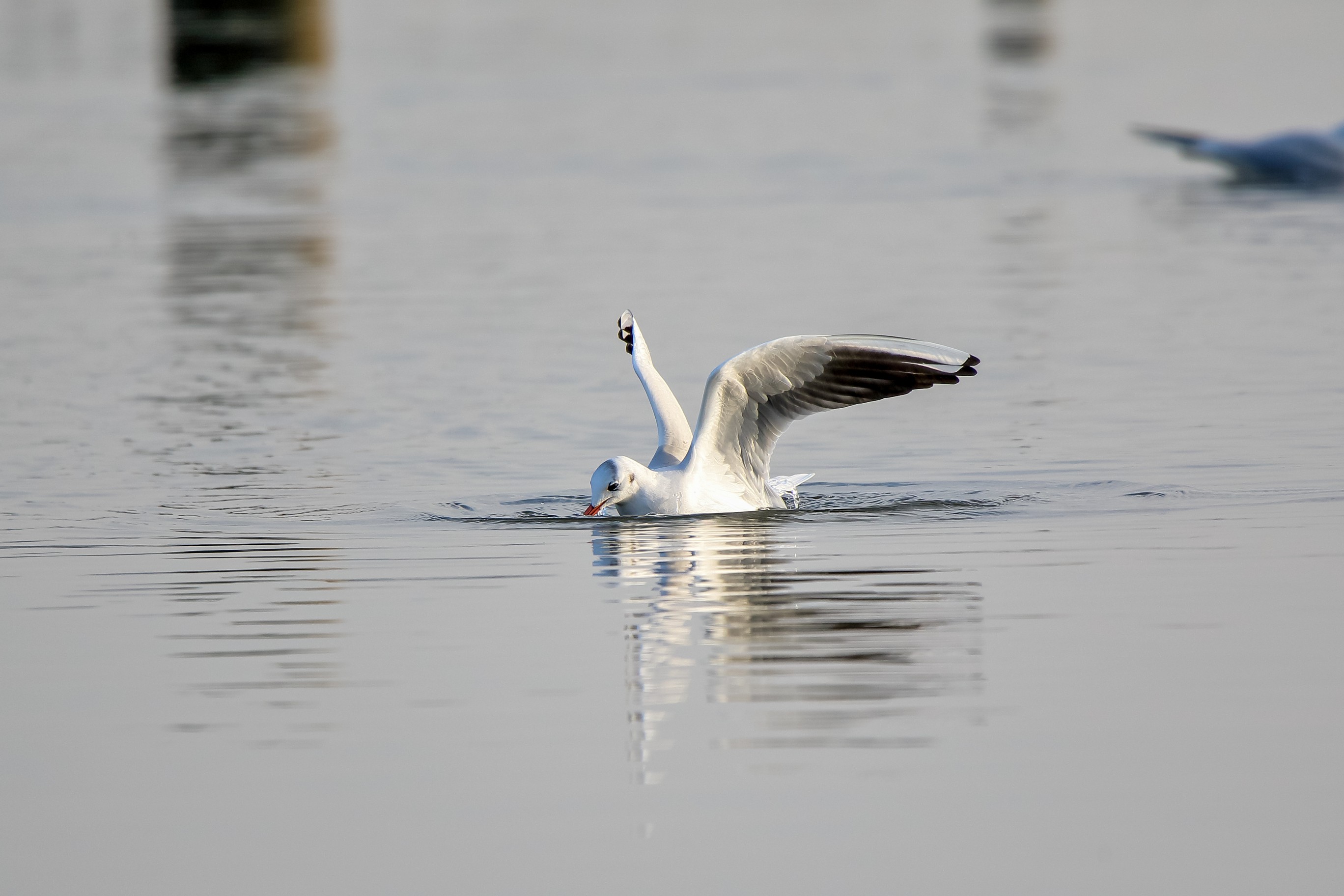Akrobatische Futtersuche der Möwen bei Hochwasser