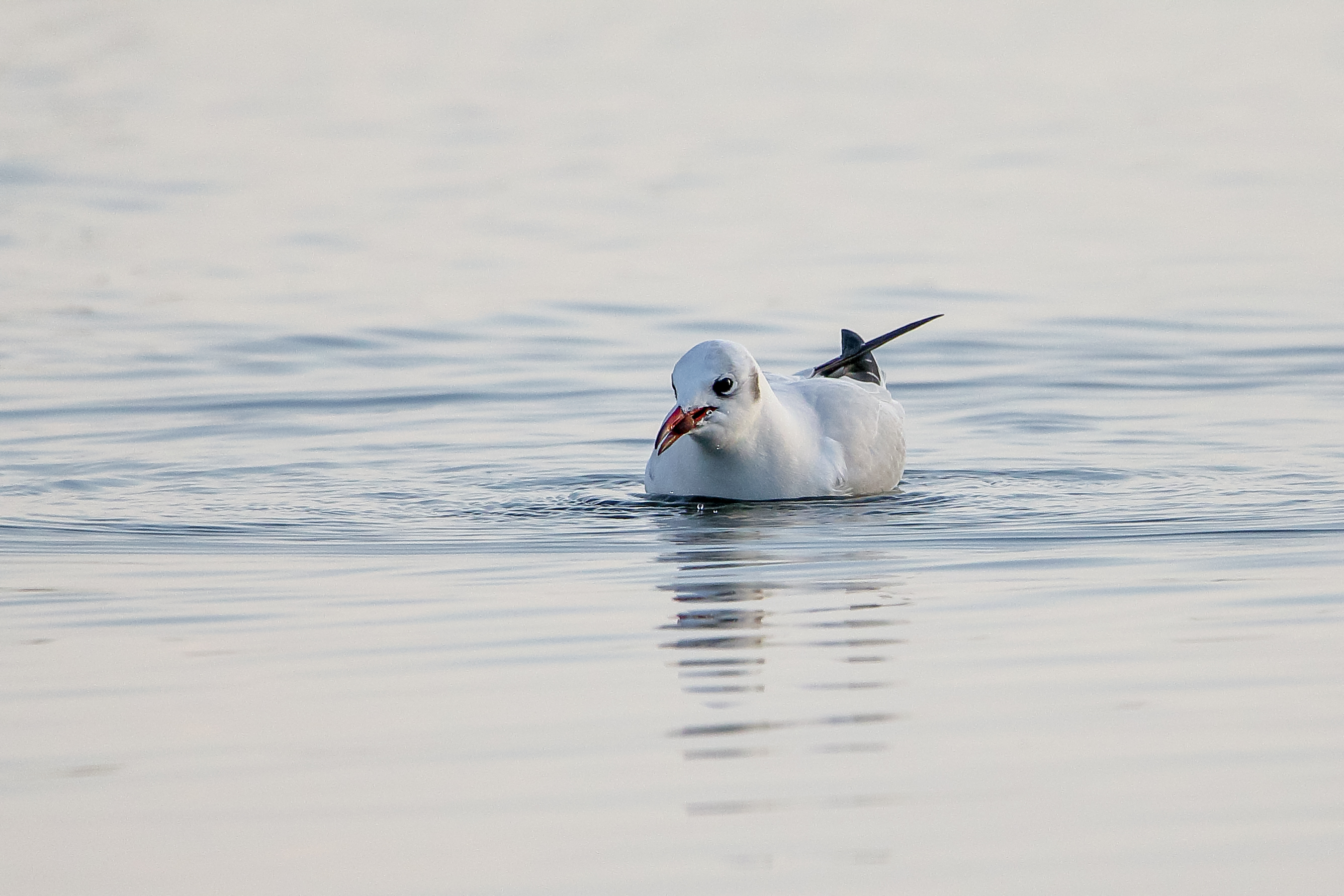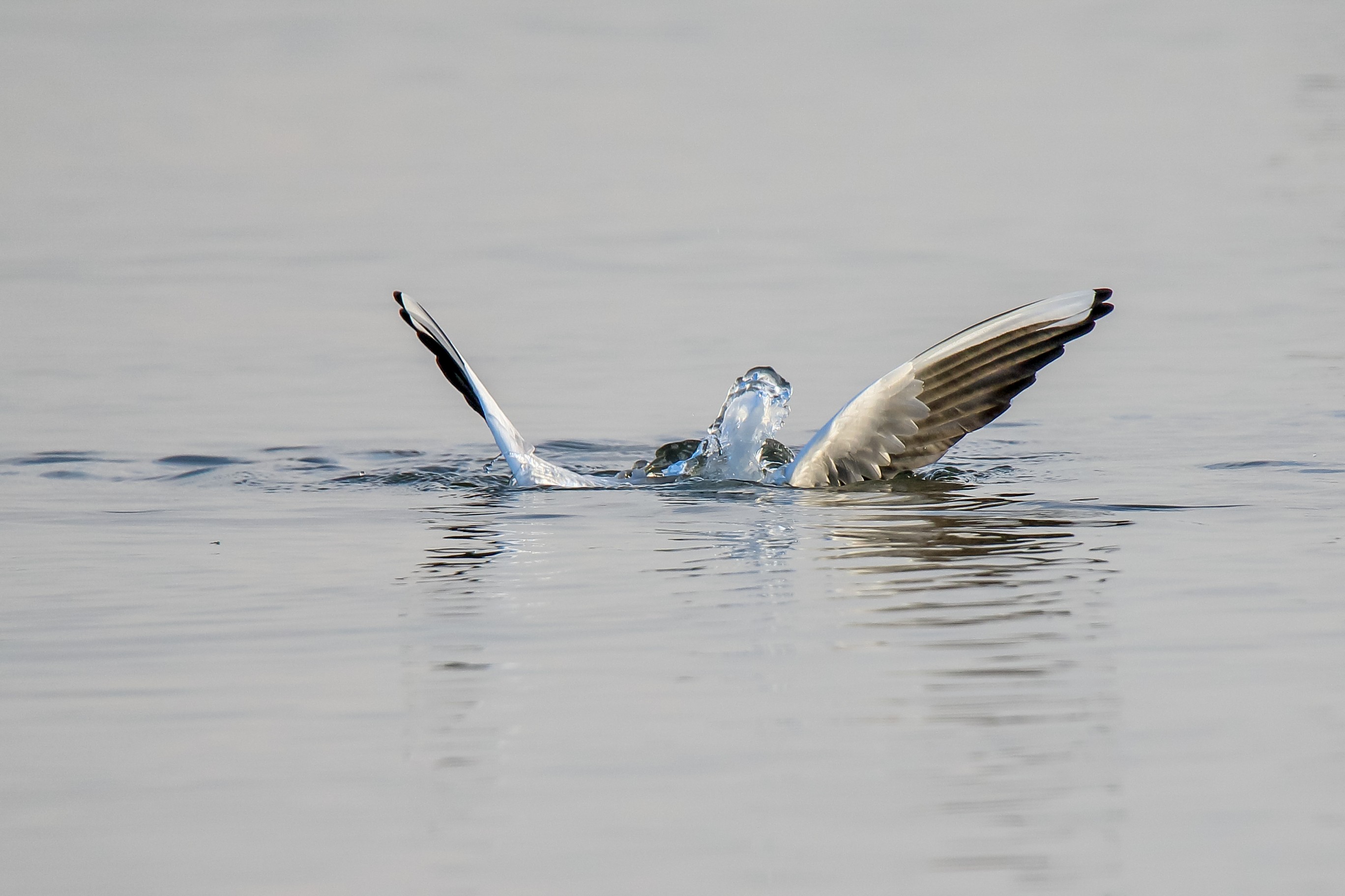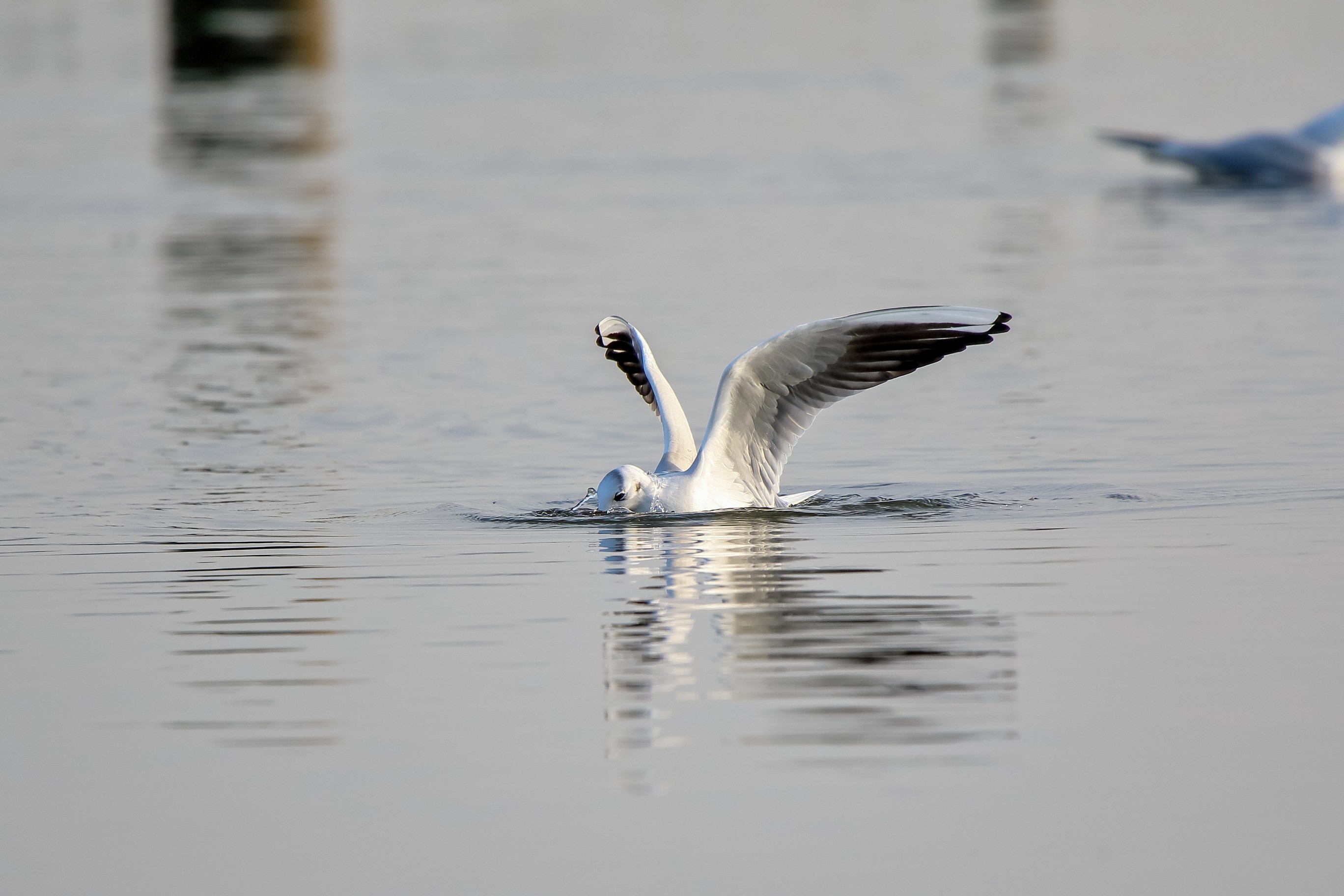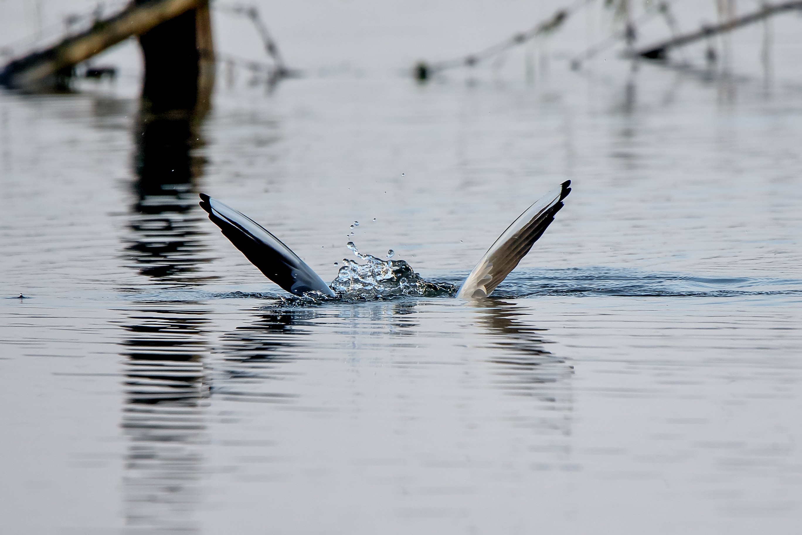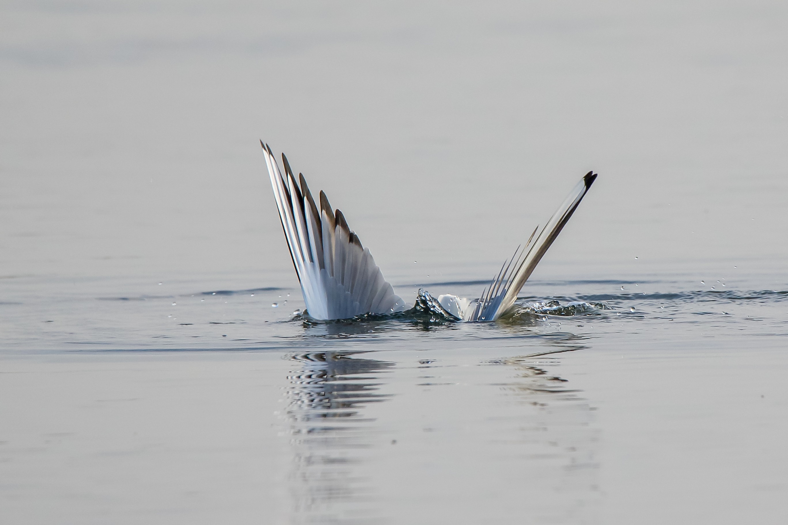 Akrobatische Futtersuche der Möwen bei Hochwasser