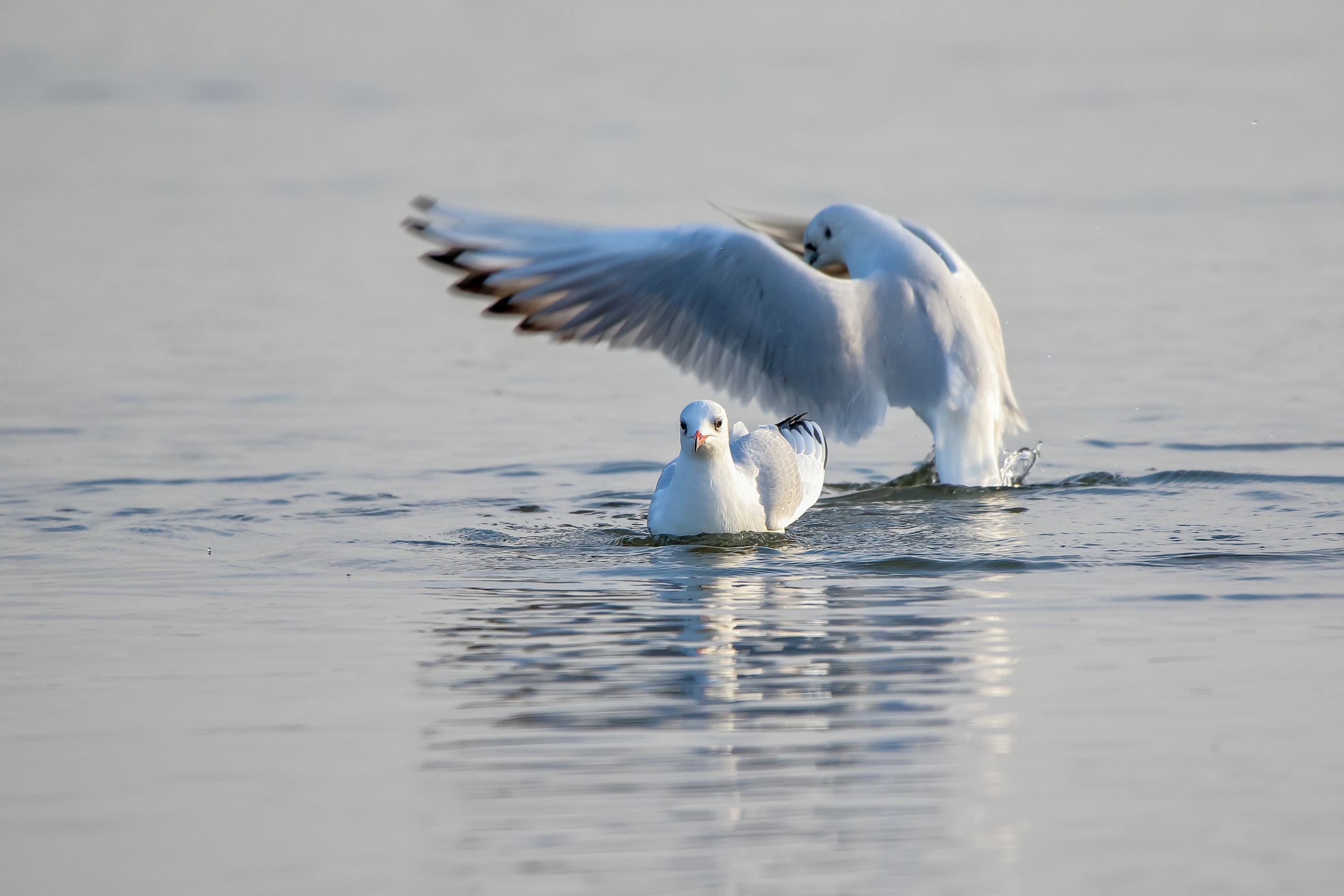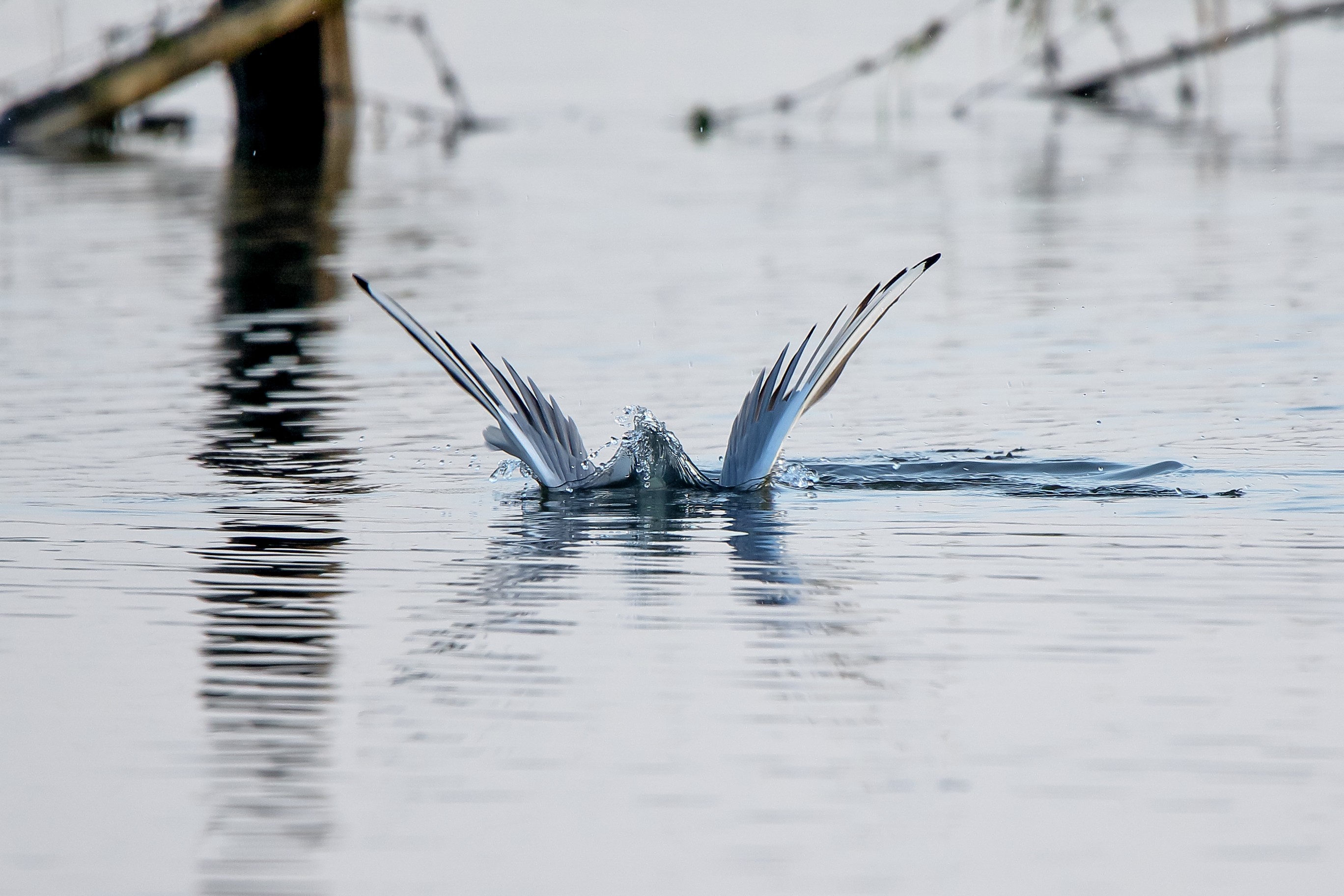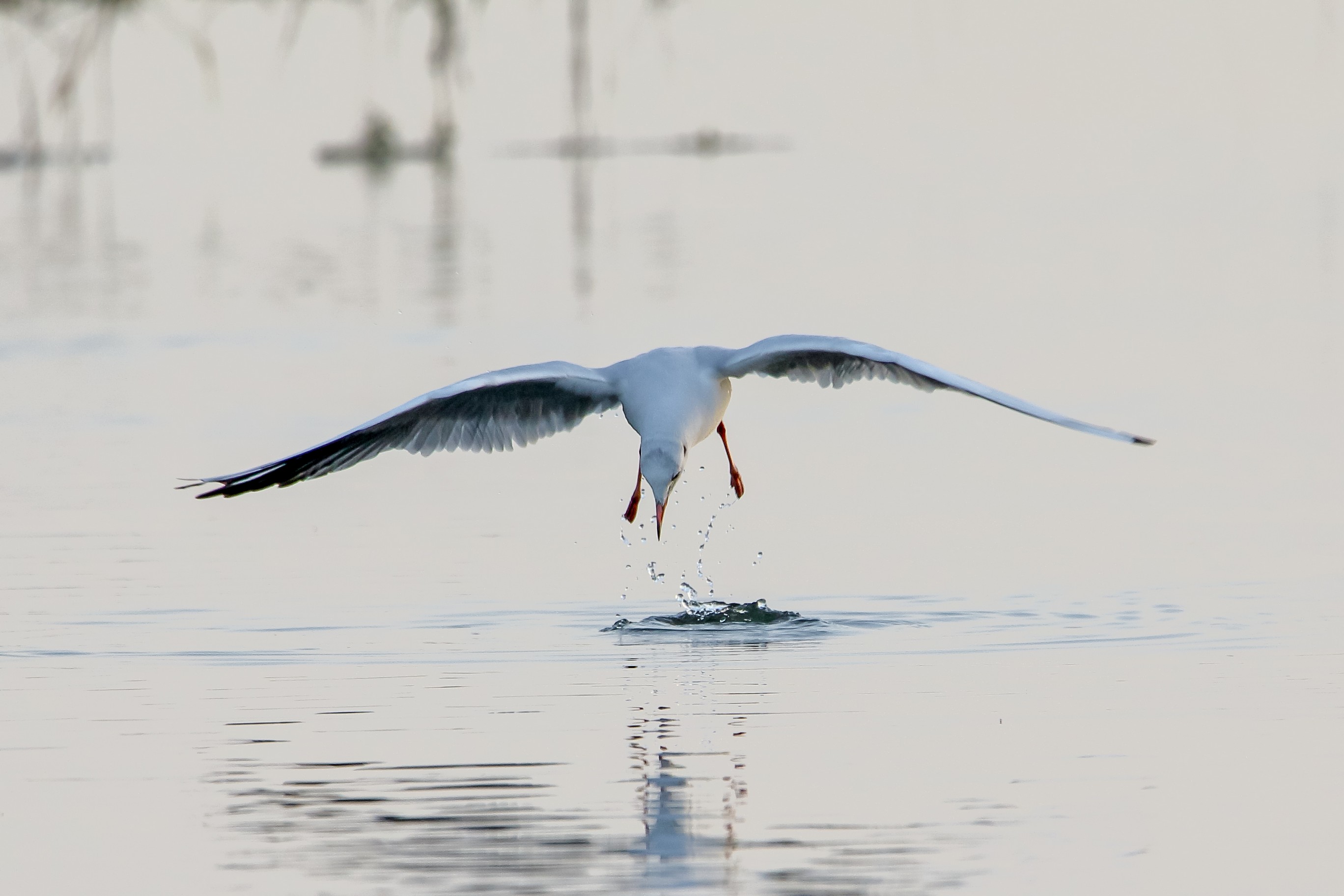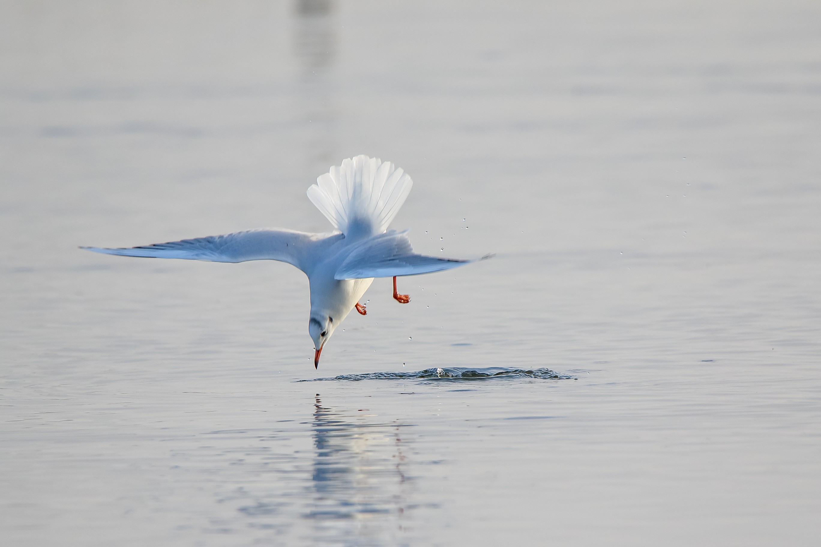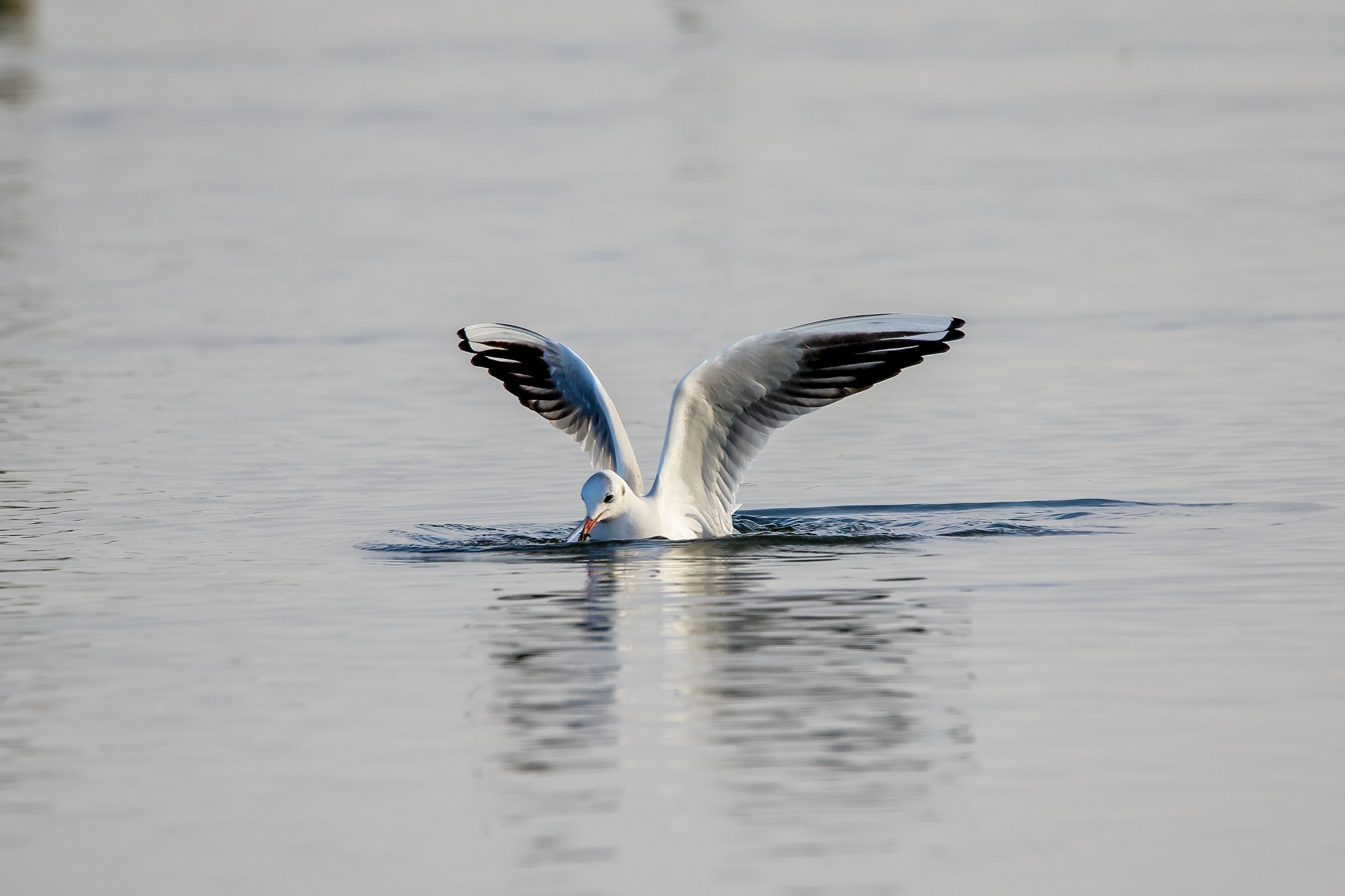 Akrobatische Futtersuche der Möwen bei Hochwasser