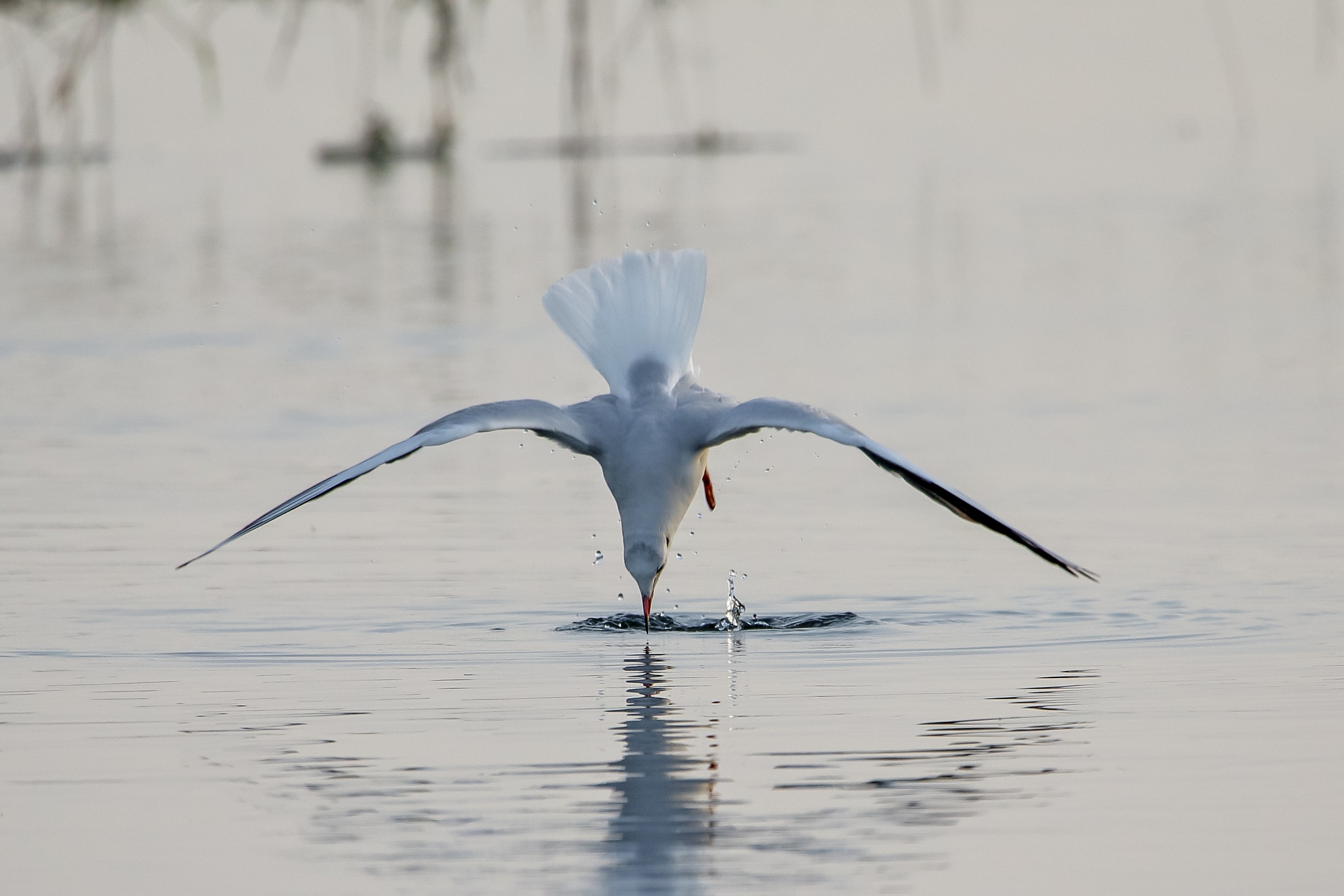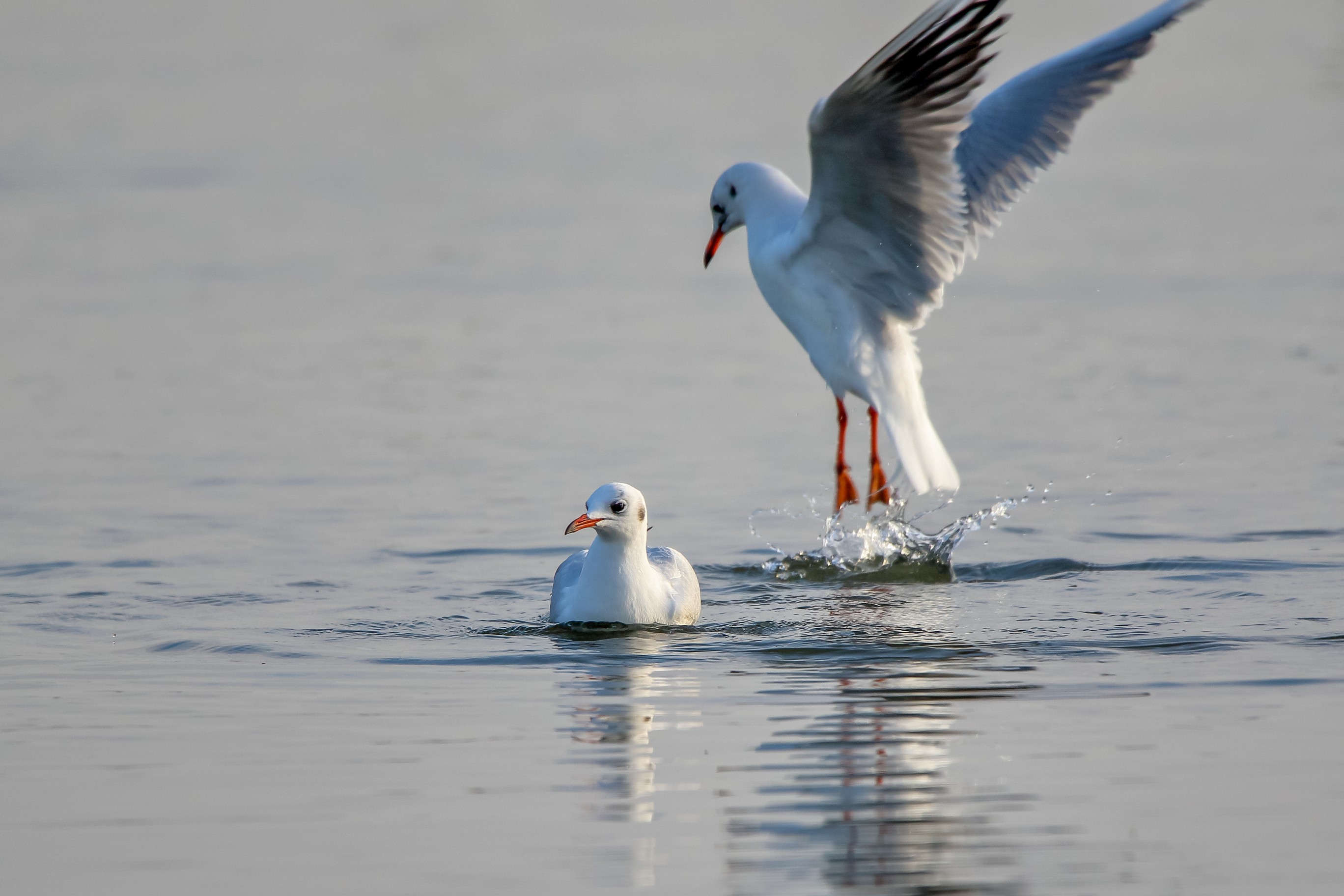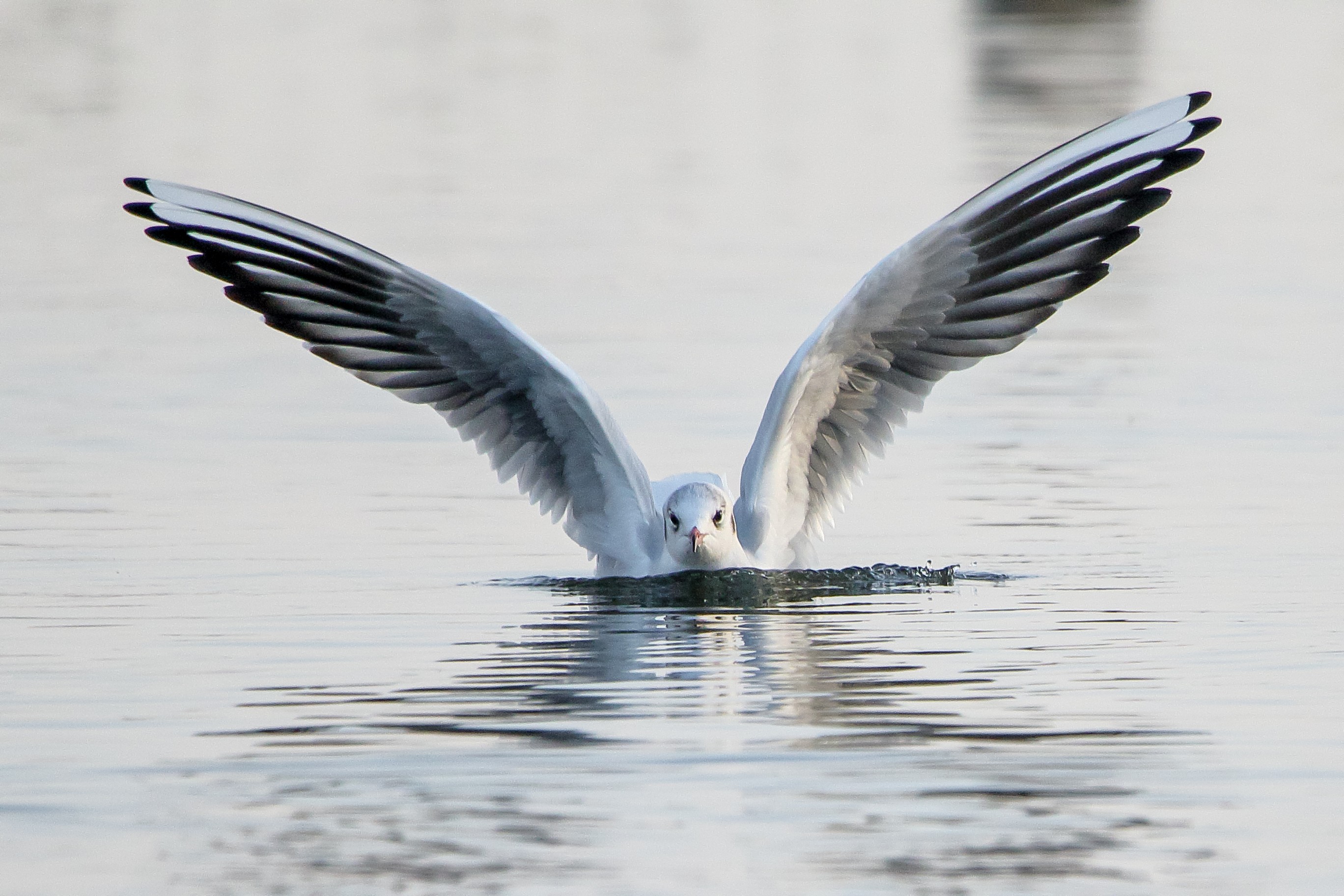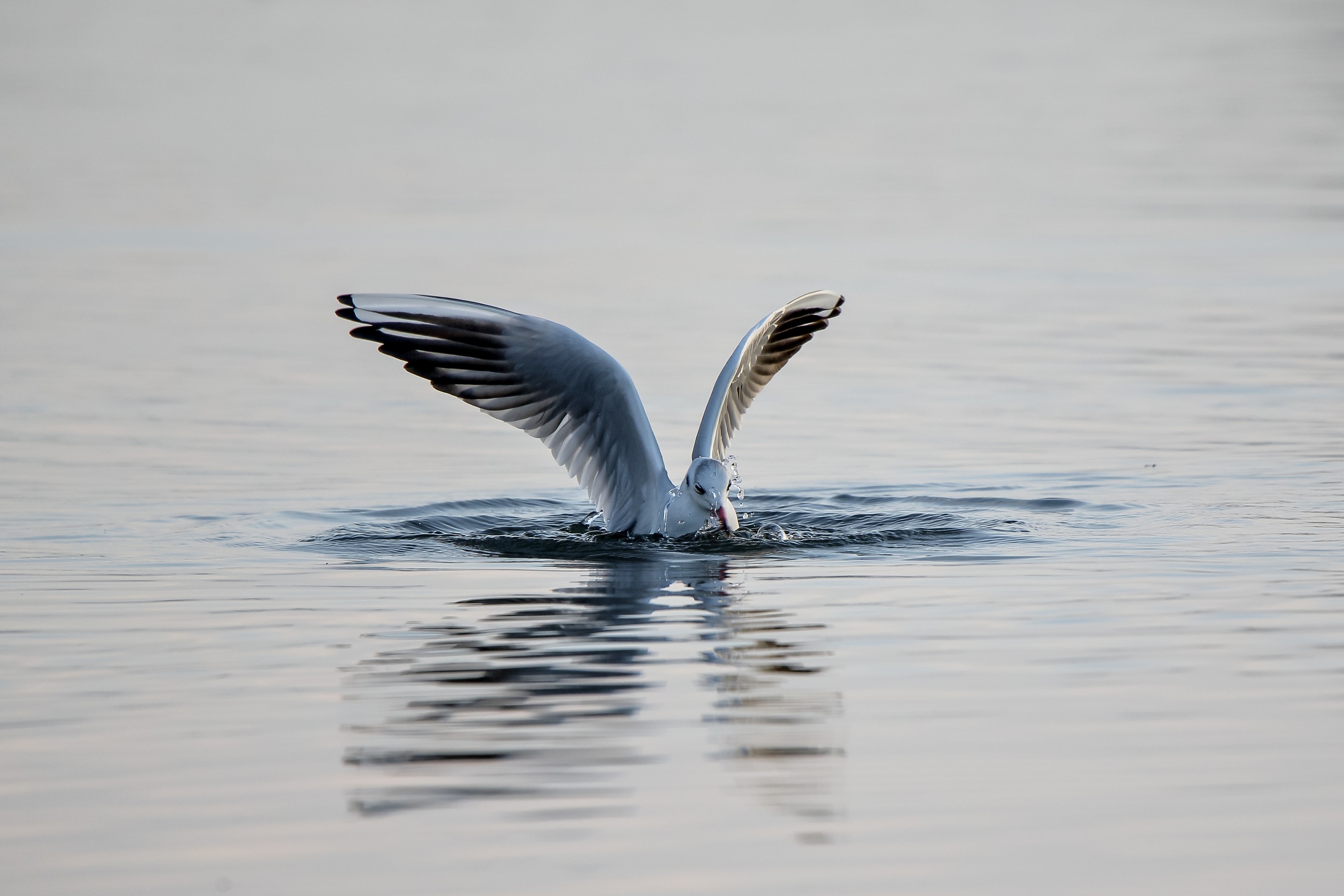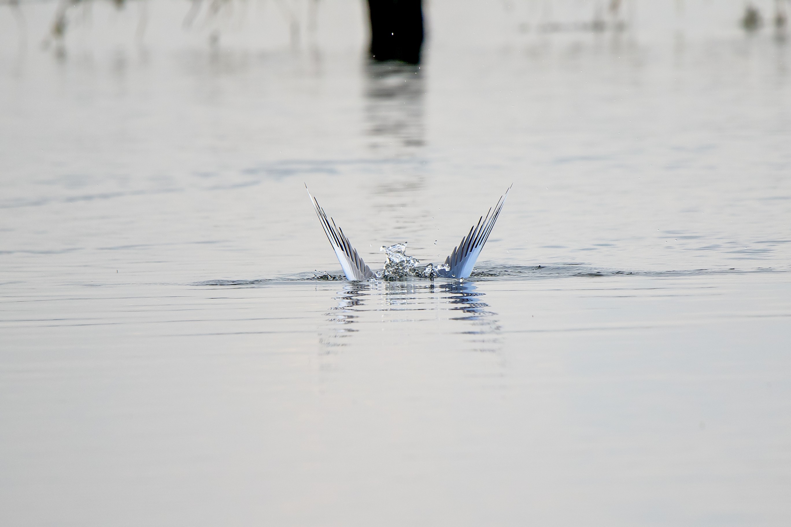 Akrobatische Futtersuche der Möwen bei Hochwasser