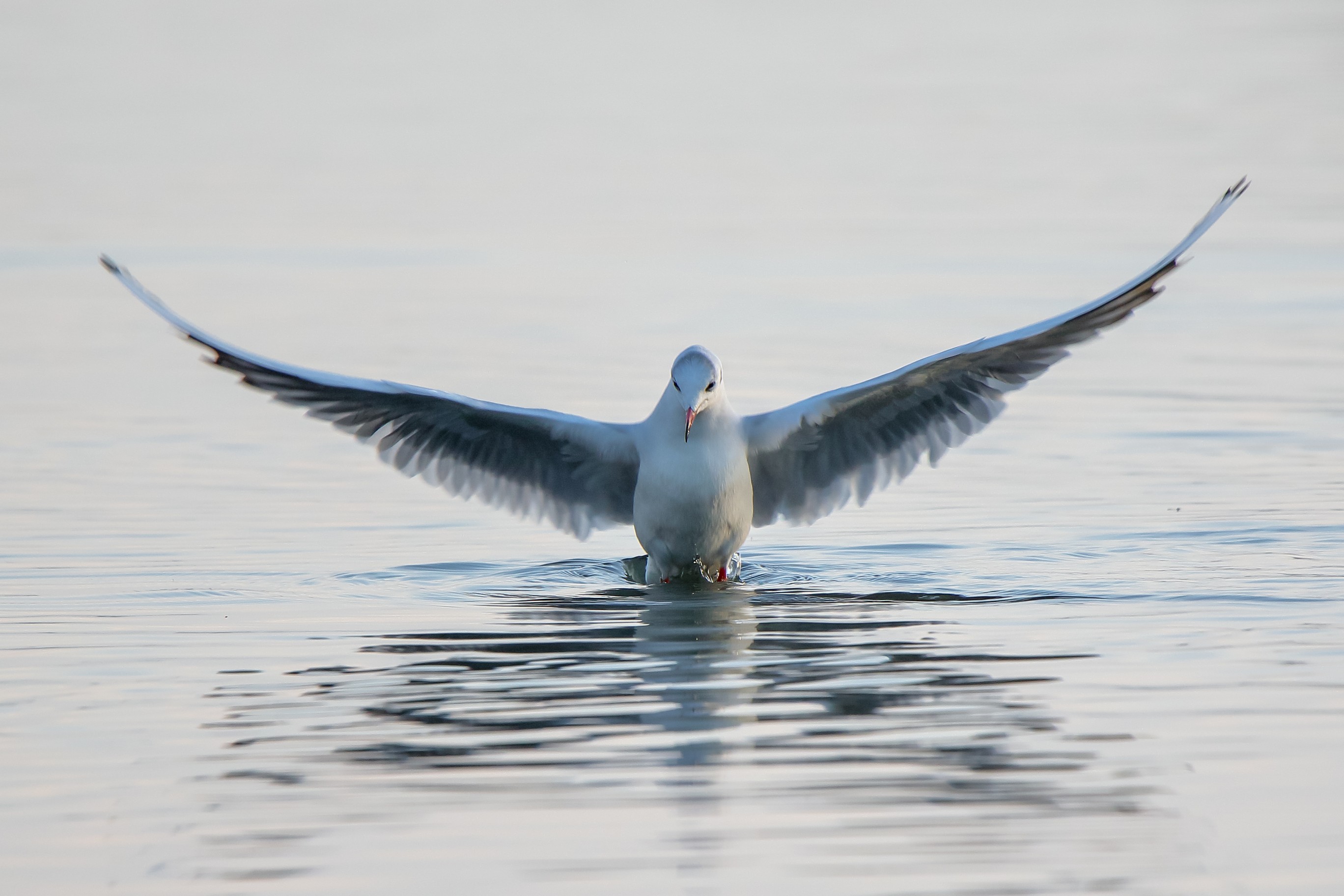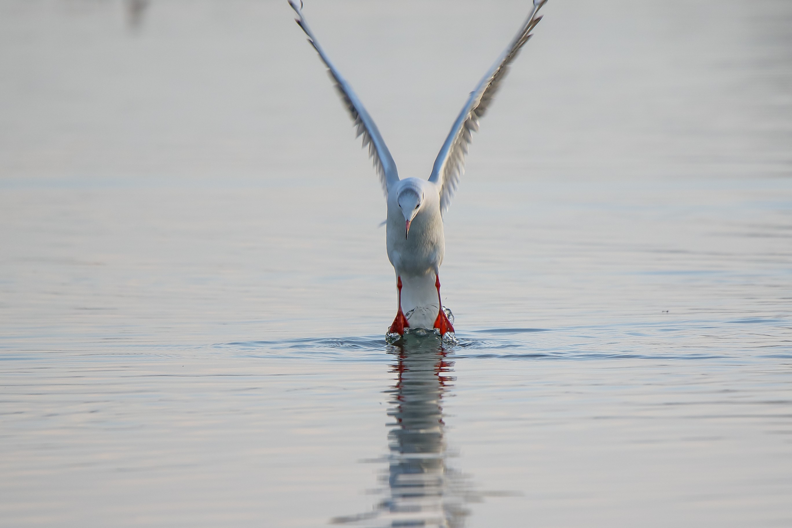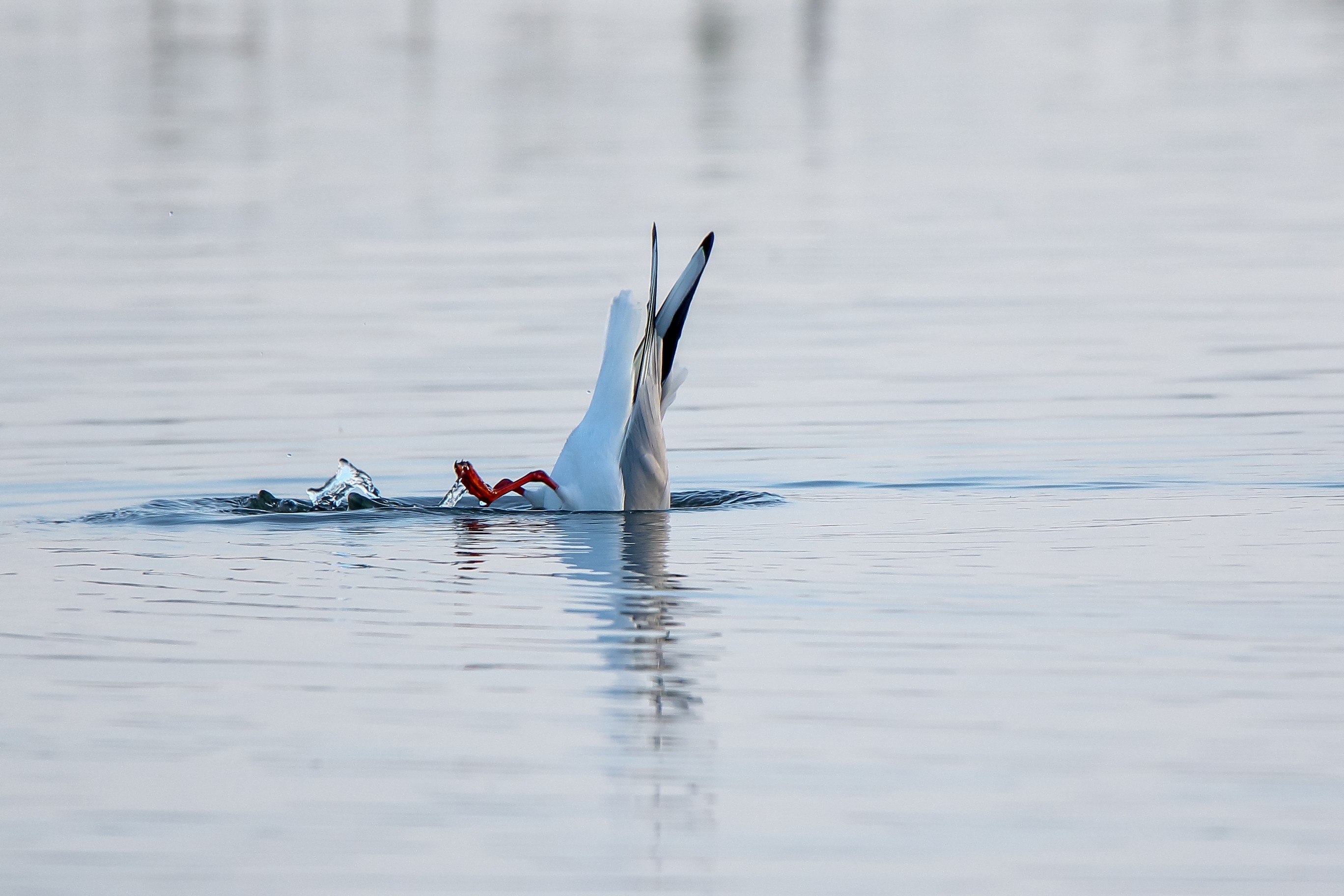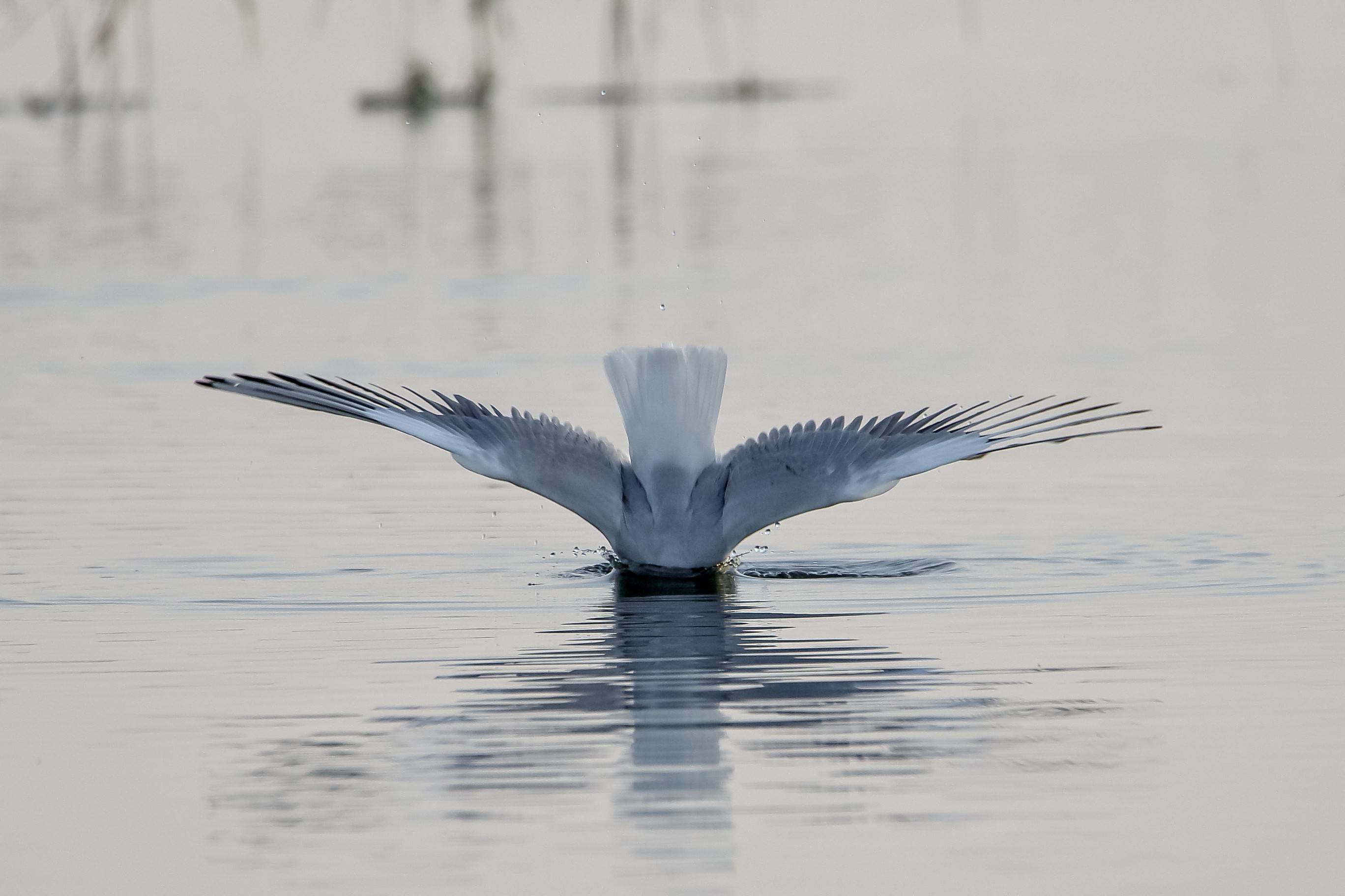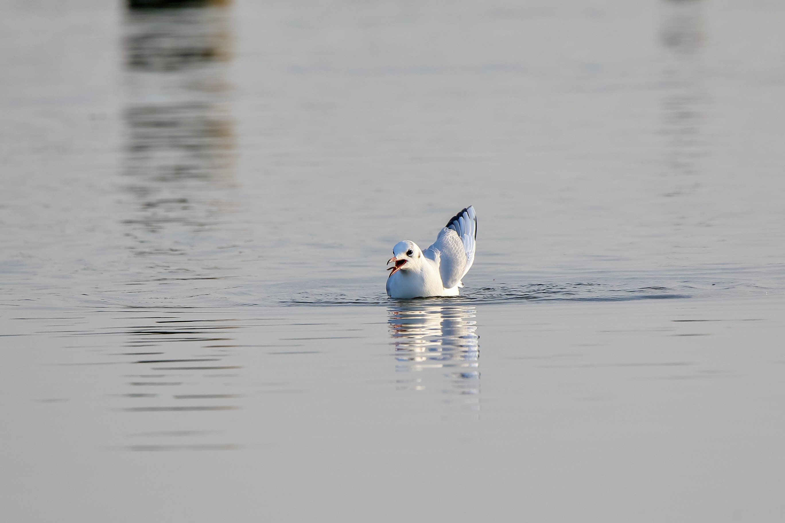 Akrobatische Futtersuche der Möwen bei Hochwasser