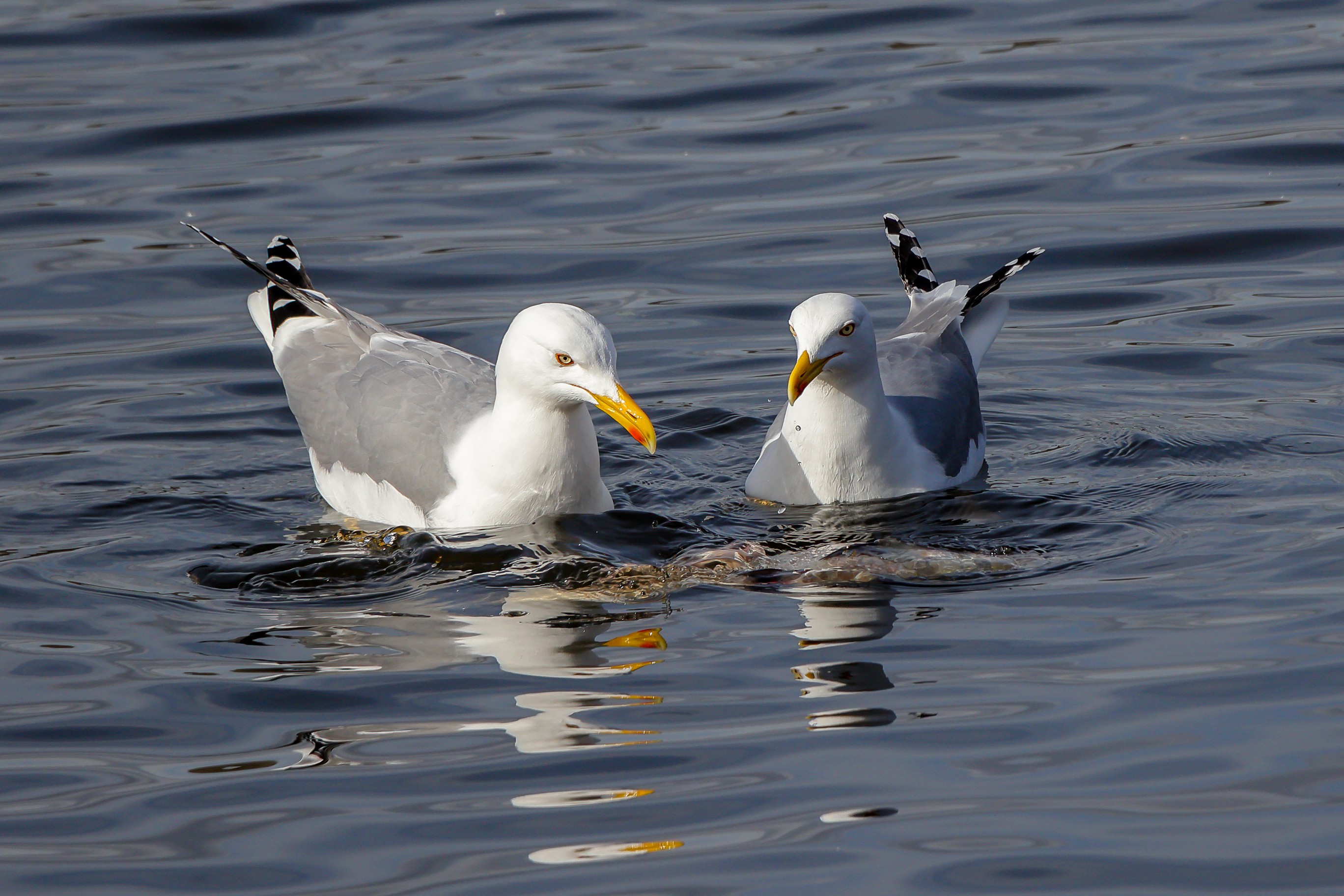 Einträchtiges Möwenpärchen beim Frühstücksmahl