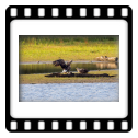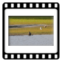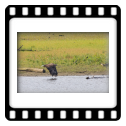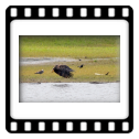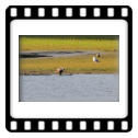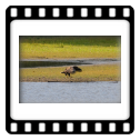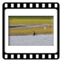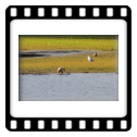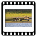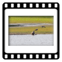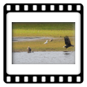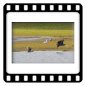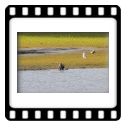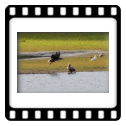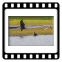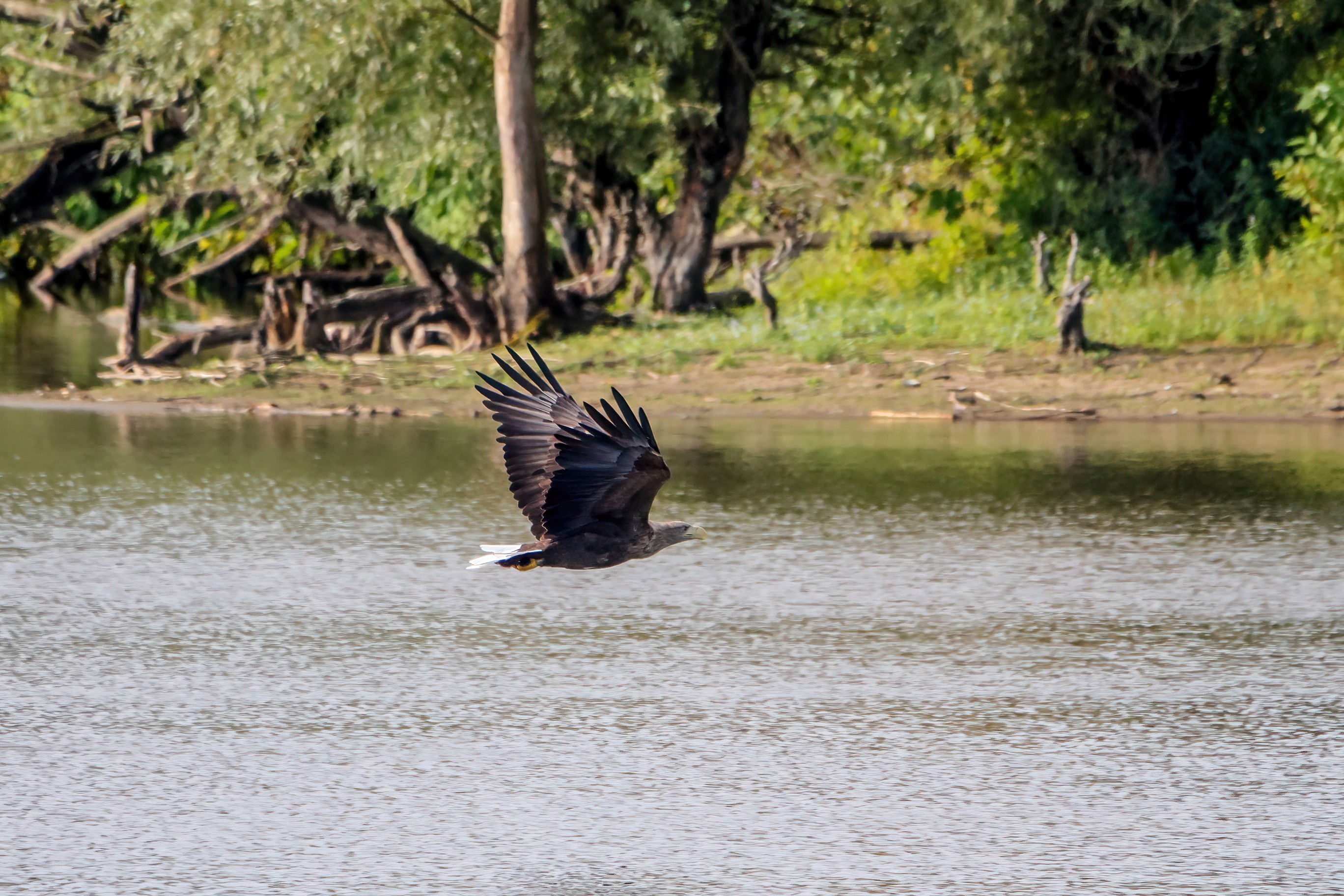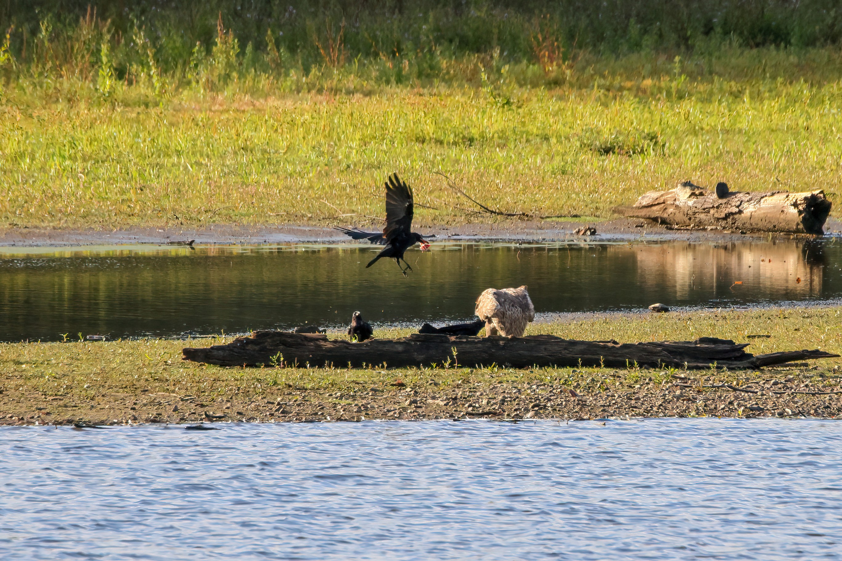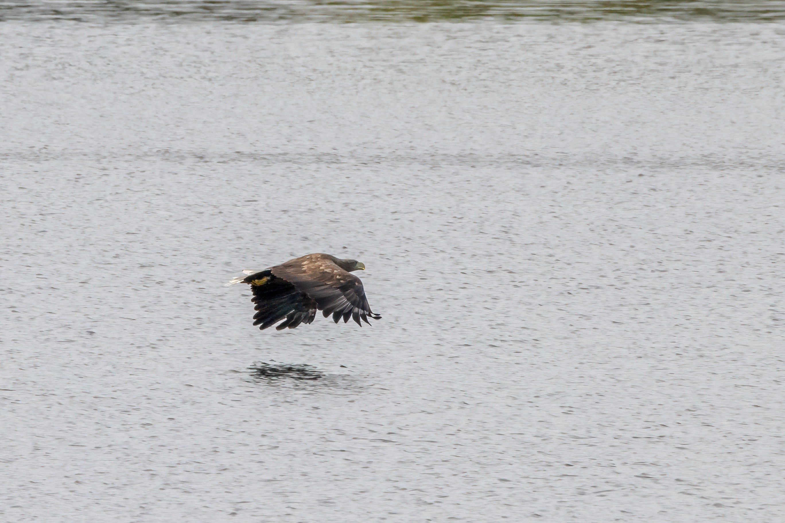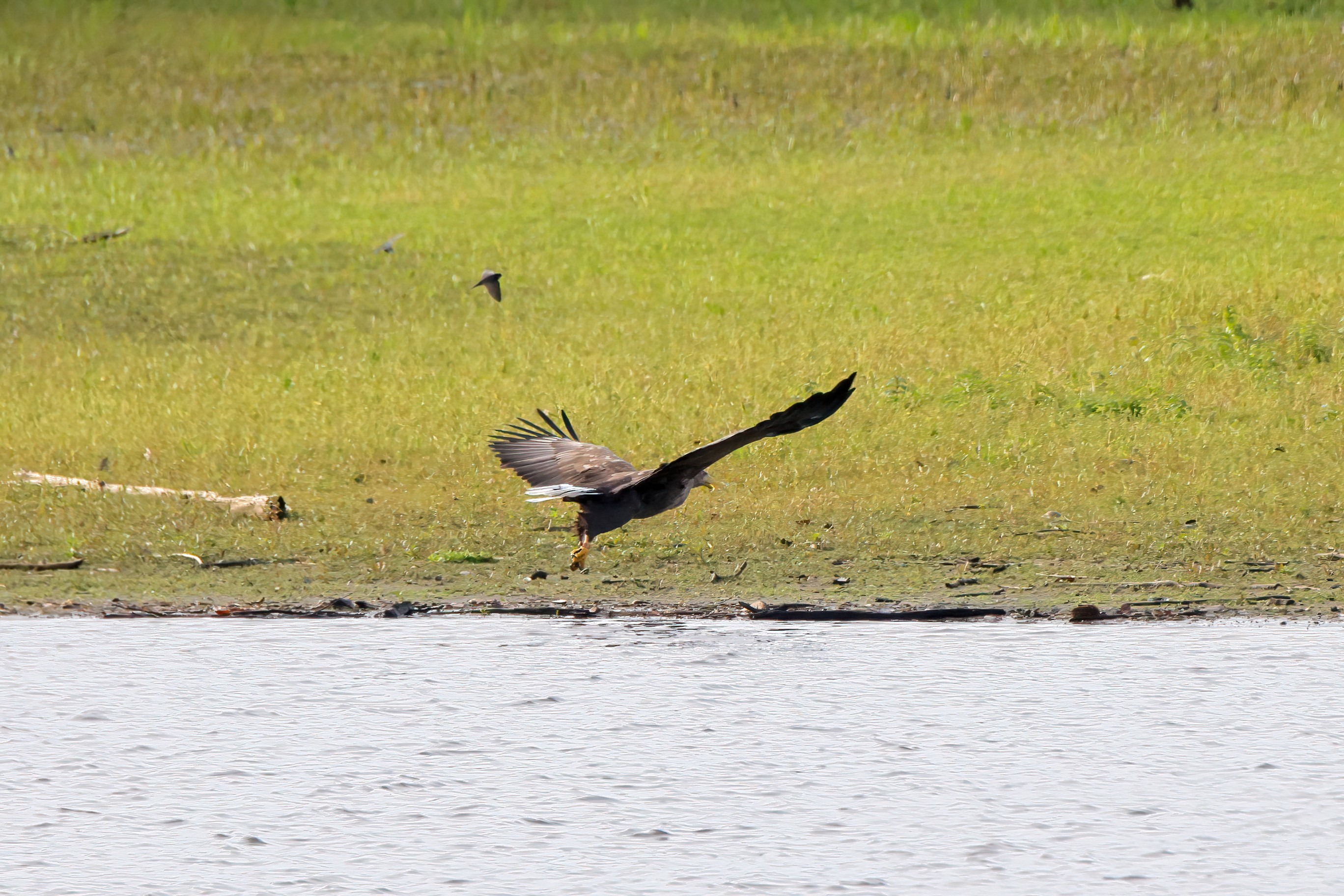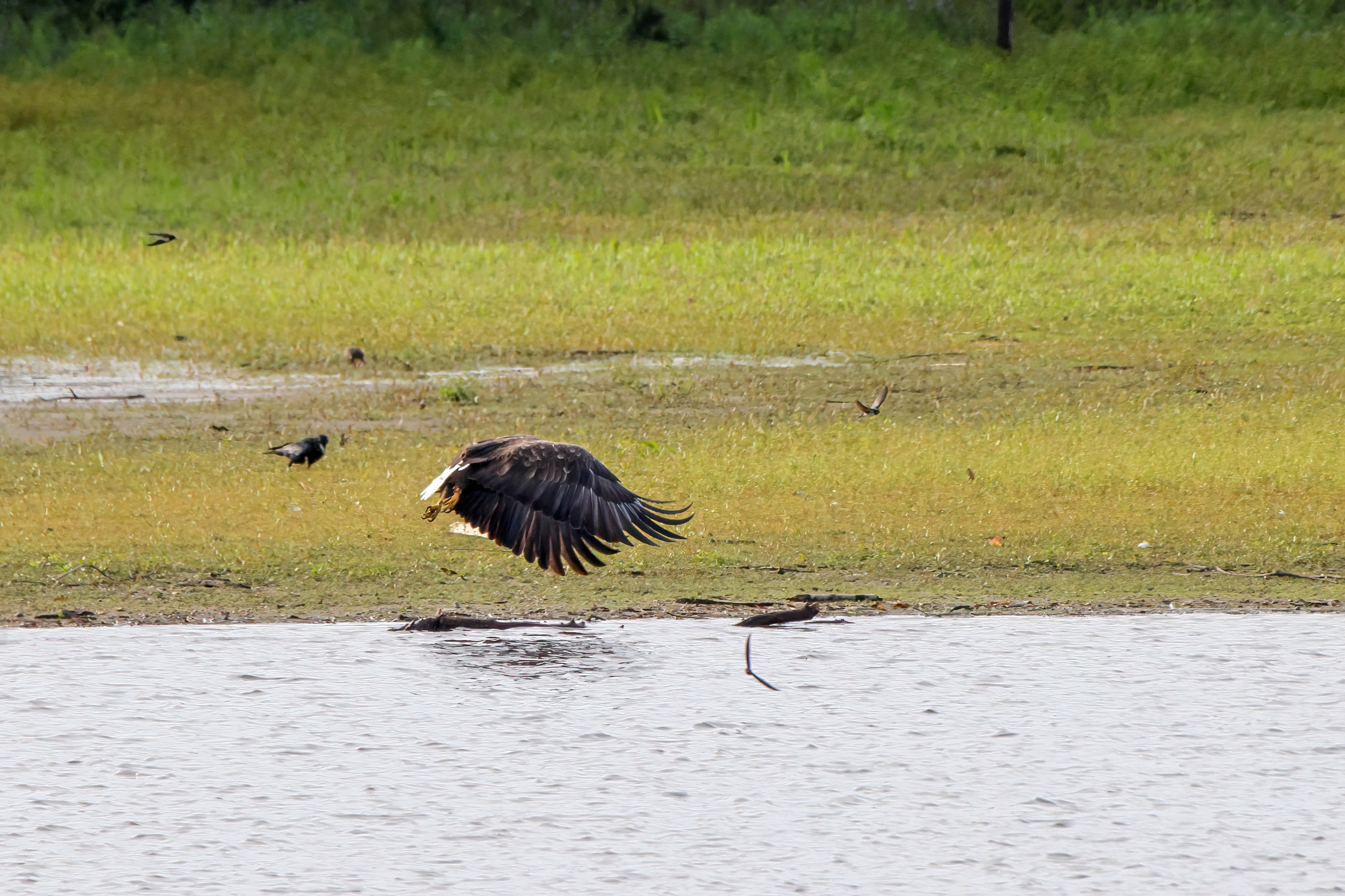 In den vorangegangenen Bildstrecken konnten wir einen Wechsel der Sichtbarkeit des eingedrungenen männlichen Seeadlers sowie des männlichen Habitatsgründers auf der Bislicher Insel nachvollziehen. Am 19. September wurde diese Bildstrecke aus der Beobachtungshütte III aufgenommen, die uns das ursprüngliche Seeadlermännchen in der Gemeinsamkeit mit dem neuen Seeadlerweibchen bei der Nahrungsaufnahme zeigt. Zur Zeit möchte ich keine Prognose über den weiteren Verlauf der hier zu beobachtenden Nähe der beiden Seeadler treffen. Es bleibt abzuwarten wie sich bis zum Jahresende die Seeadler für das kommende Jahr zusammenfinden. Das neue Seeadlerweibchen ist beidseitig beringt, hat dunklere Augen entgegen adulter Artgenossen und verfügt über einen mächtigen Oberkörper. Unser Habitatsgründer ist durch den am rechten Fang befindlichen kupferfarbenen Ring leicht erkennbar.