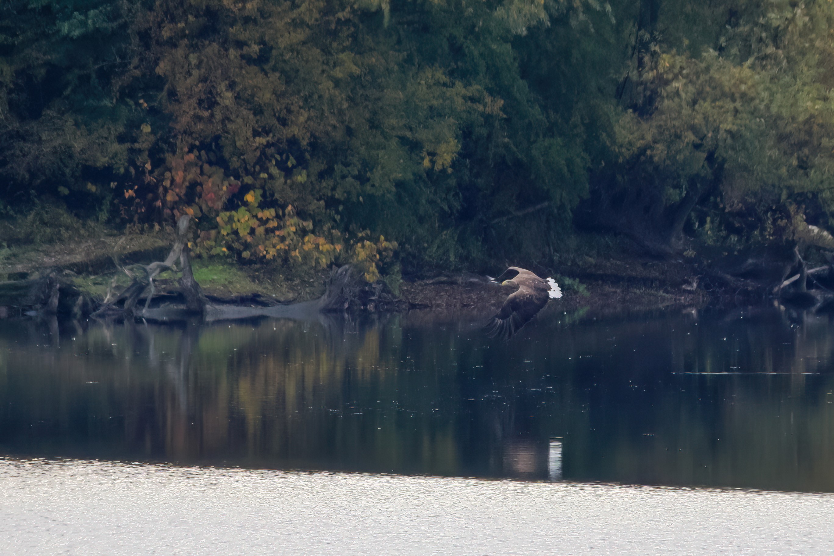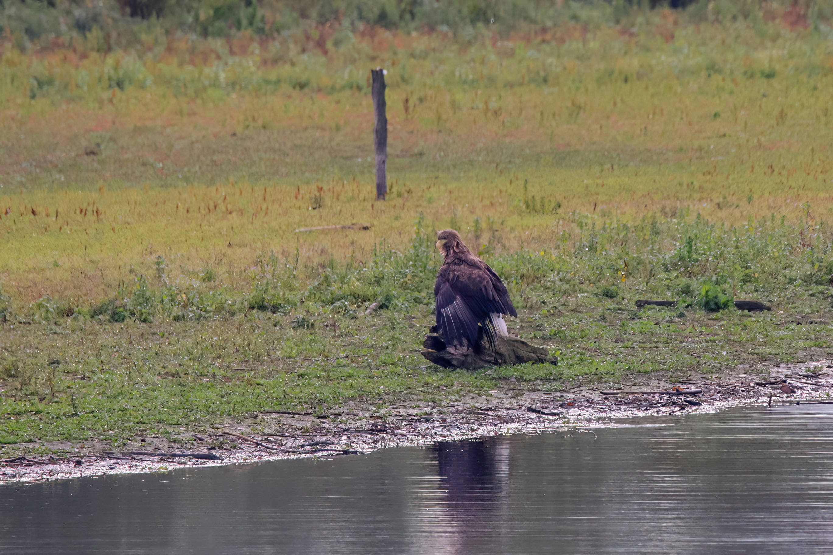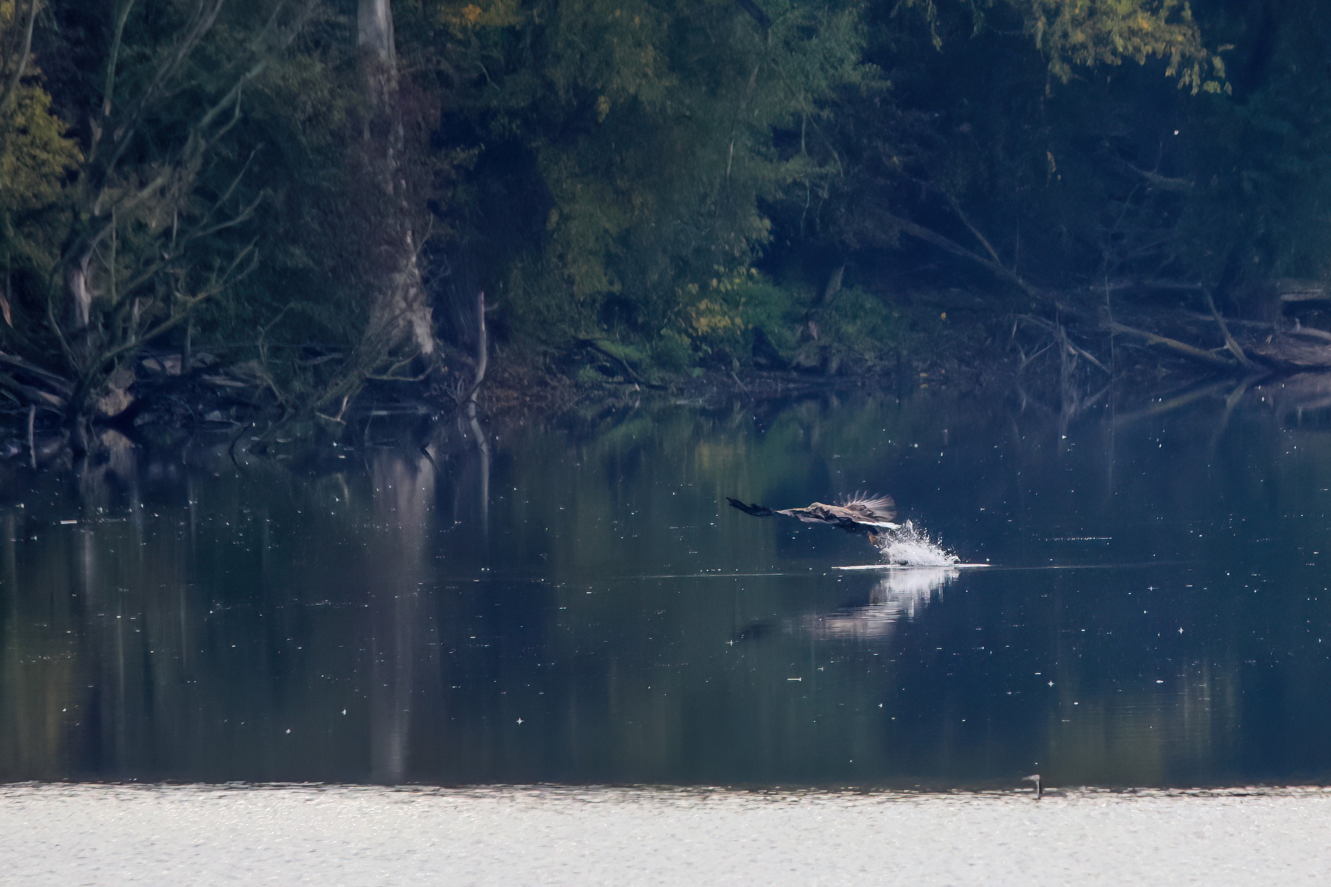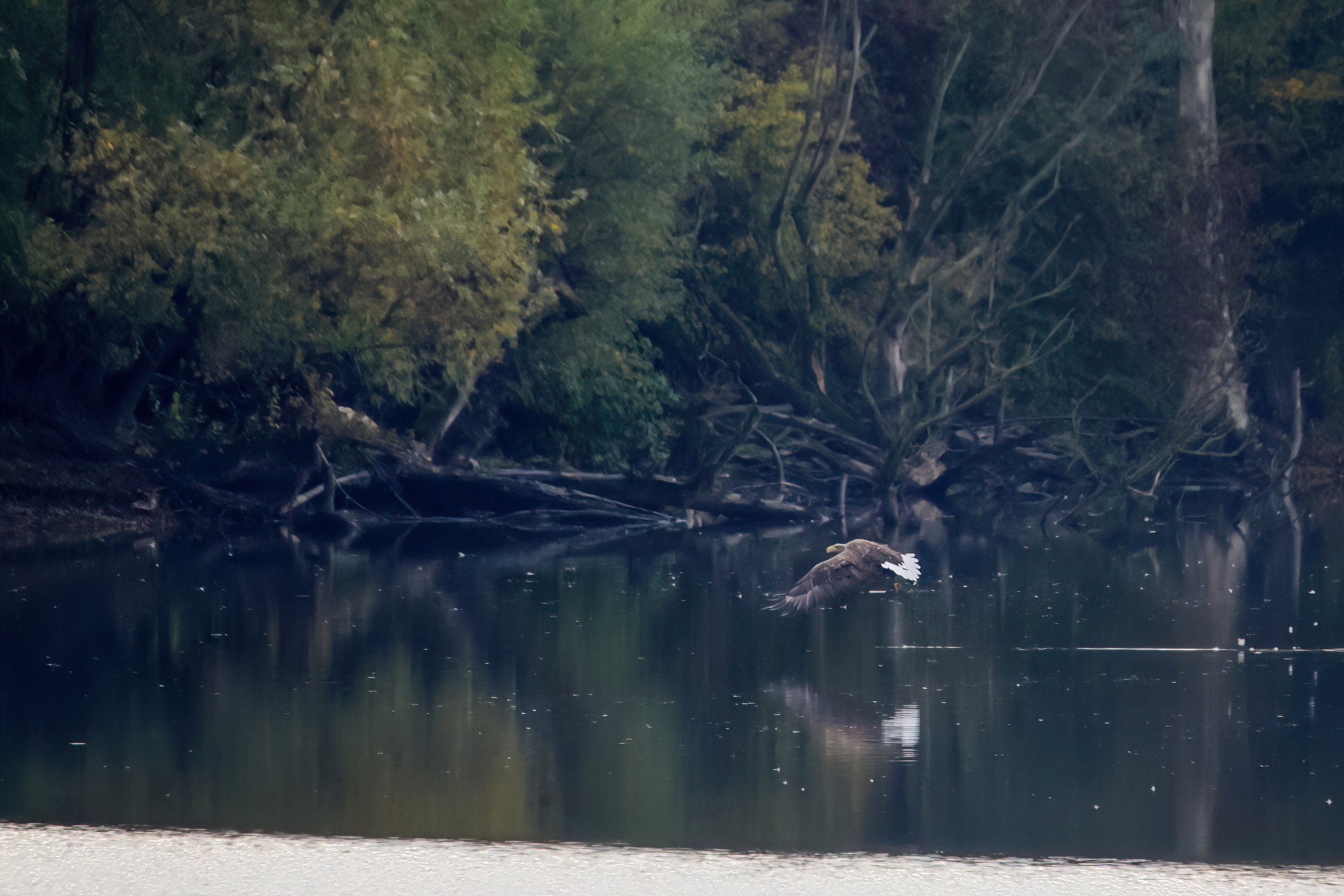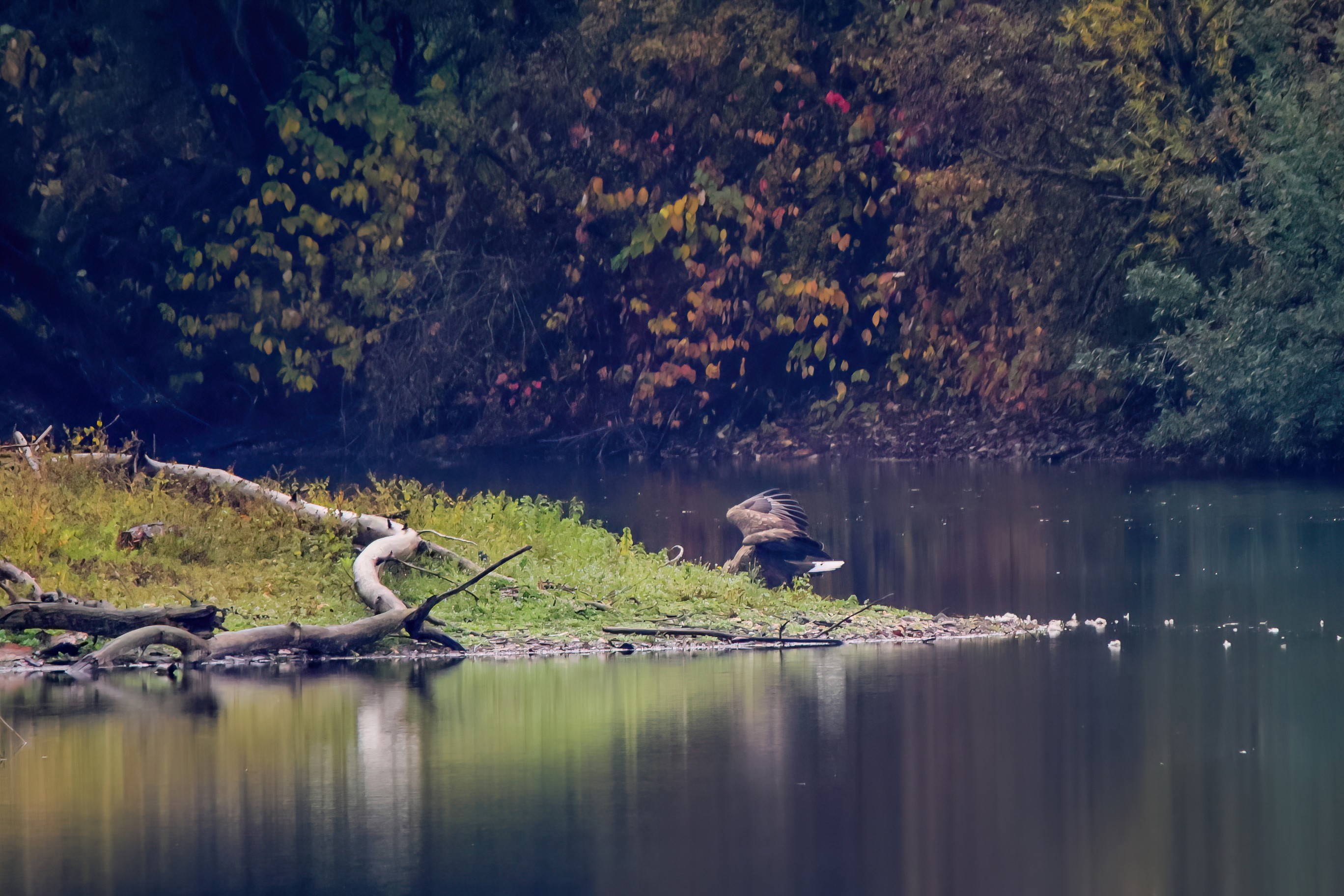 Erfolgreicher Beutefang des neuen Seeadlerweibchens am Ende des Gewässers der Beobchtungshütte III. Im zweiten Anflug wurde eine Stockente geschlagen. Eine weitere Bildstrecke zeigt den Habitatsgründer "Rheingold" mit dem neuen Seeadlerweibchen beim gemeinsamen Badevergnügen.