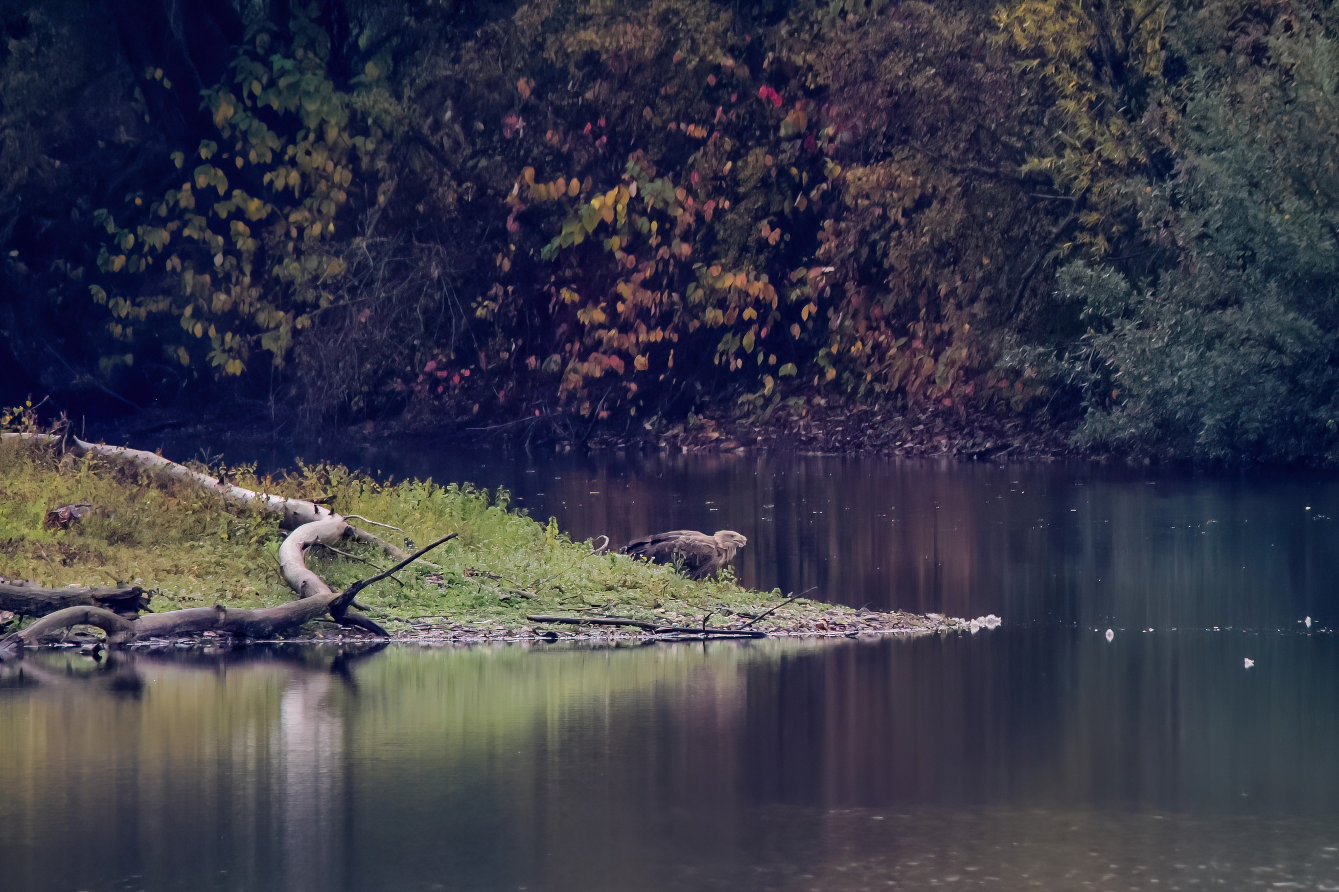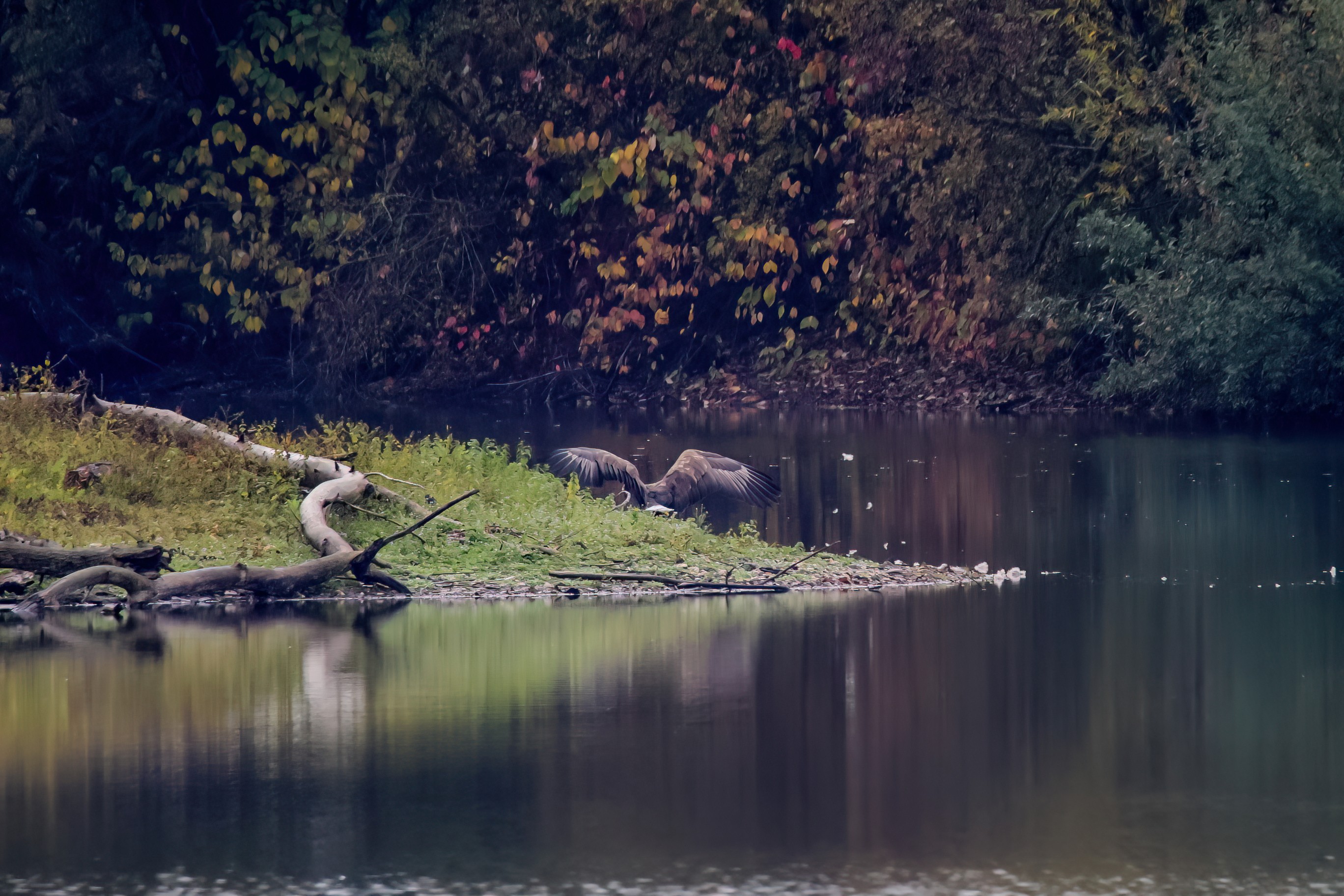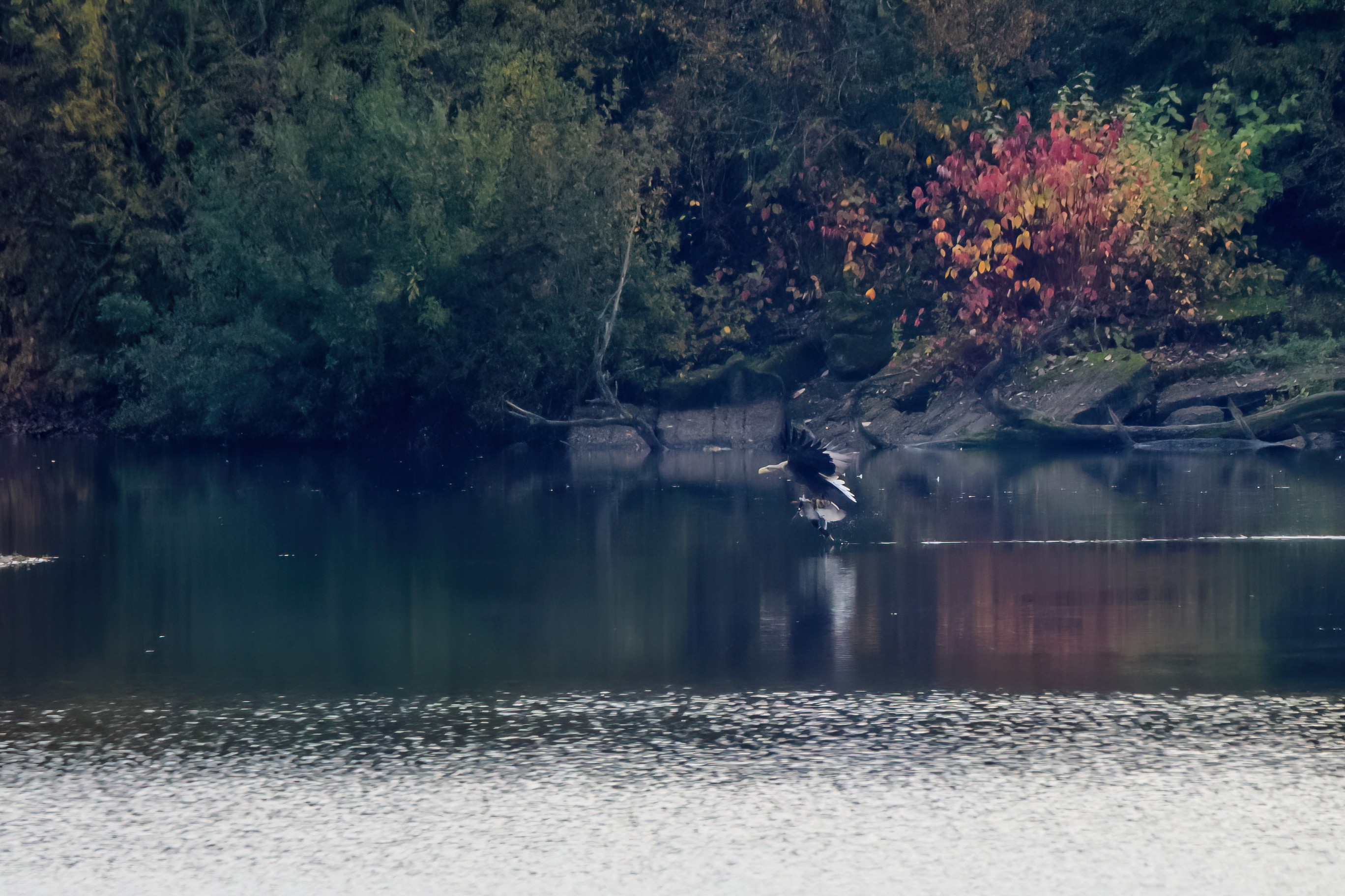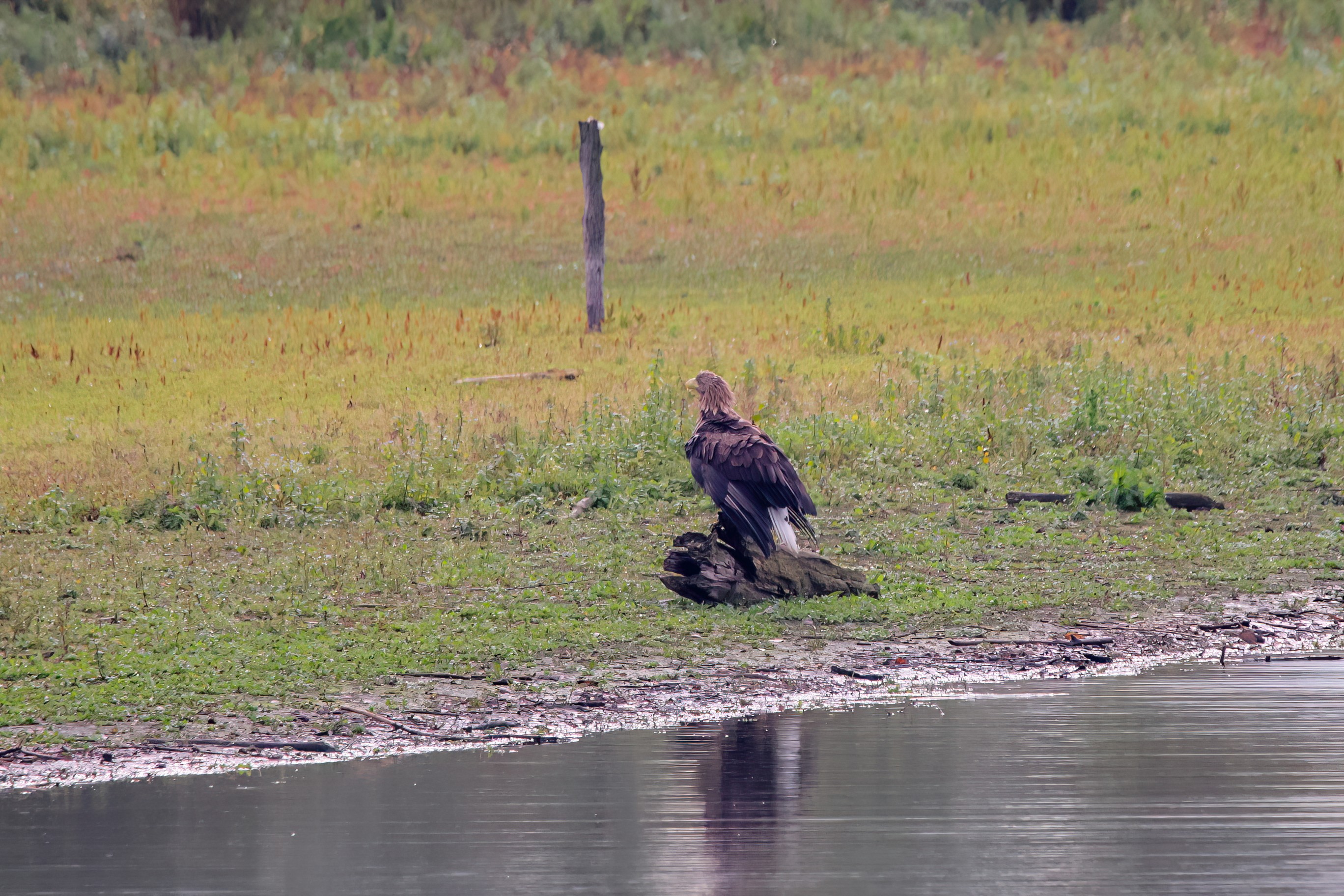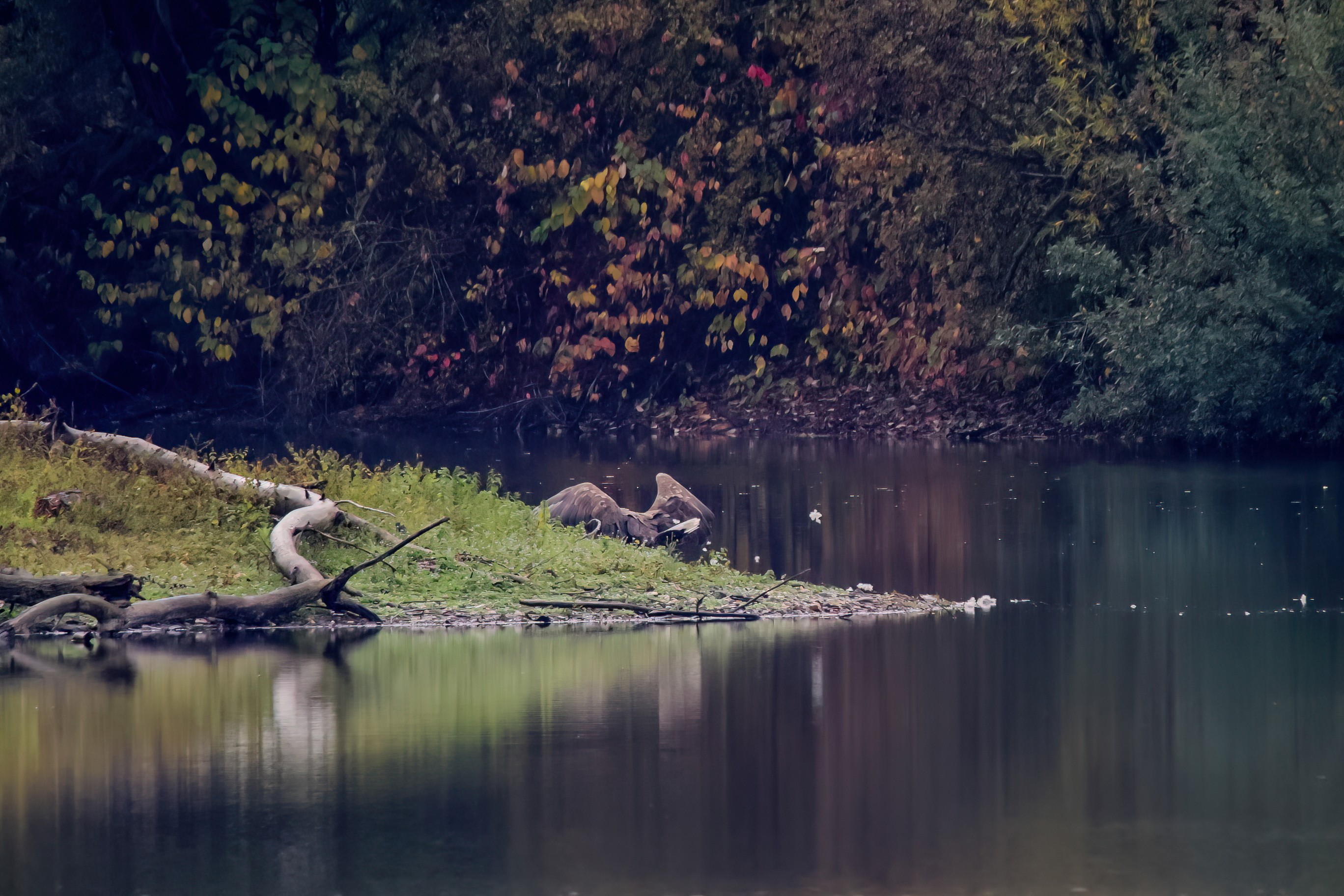 Erfolgreicher Beutefang des neuen Seeadlerweibchens am Ende des Gewässers der Beobchtungshütte III. Im zweiten Anflug wurde eine Stockente geschlagen. Eine weitere Bildstrecke zeigt den Habitatsgründer "Rheingold" mit dem neuen Seeadlerweibchen beim gemeinsamen Badevergnügen.