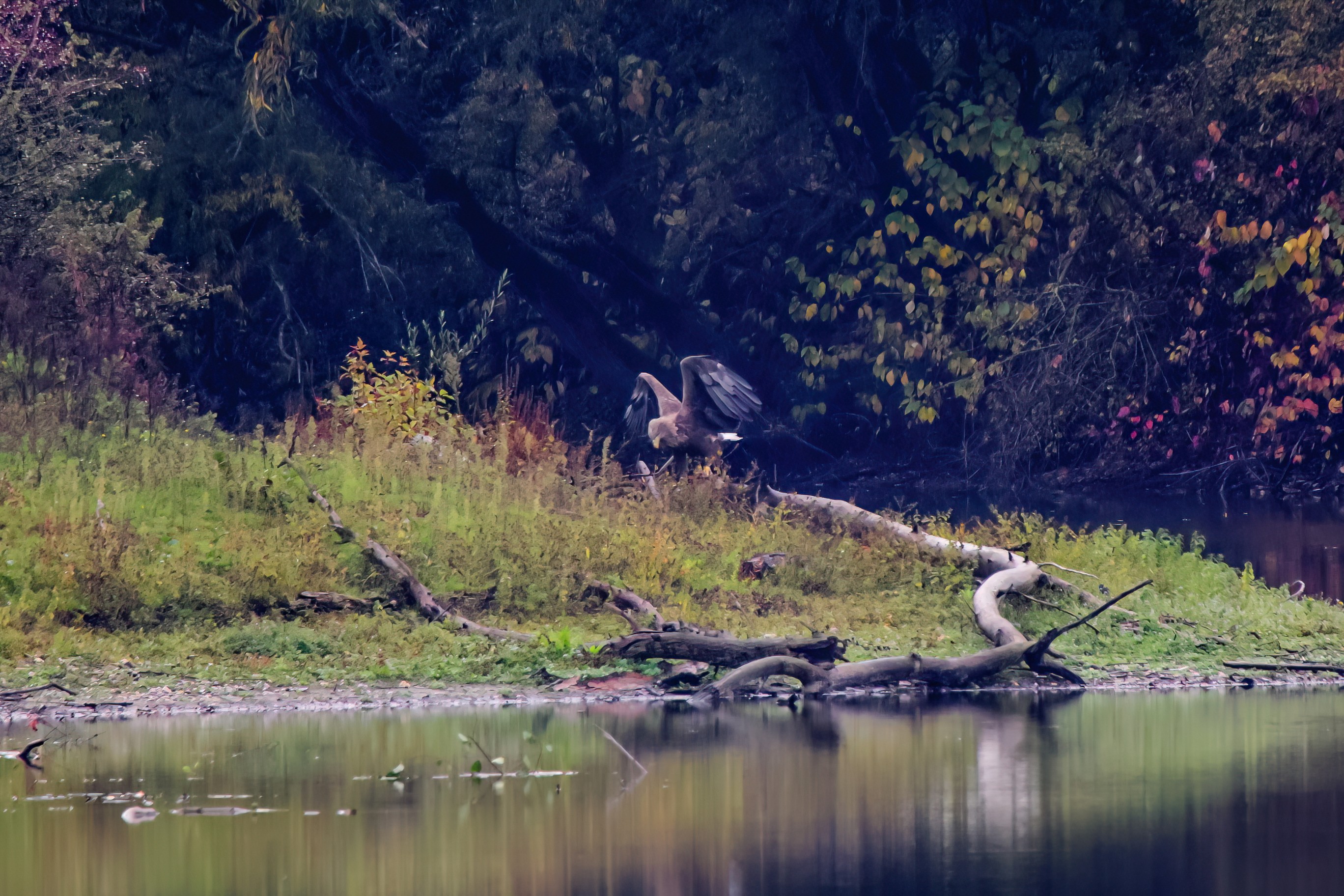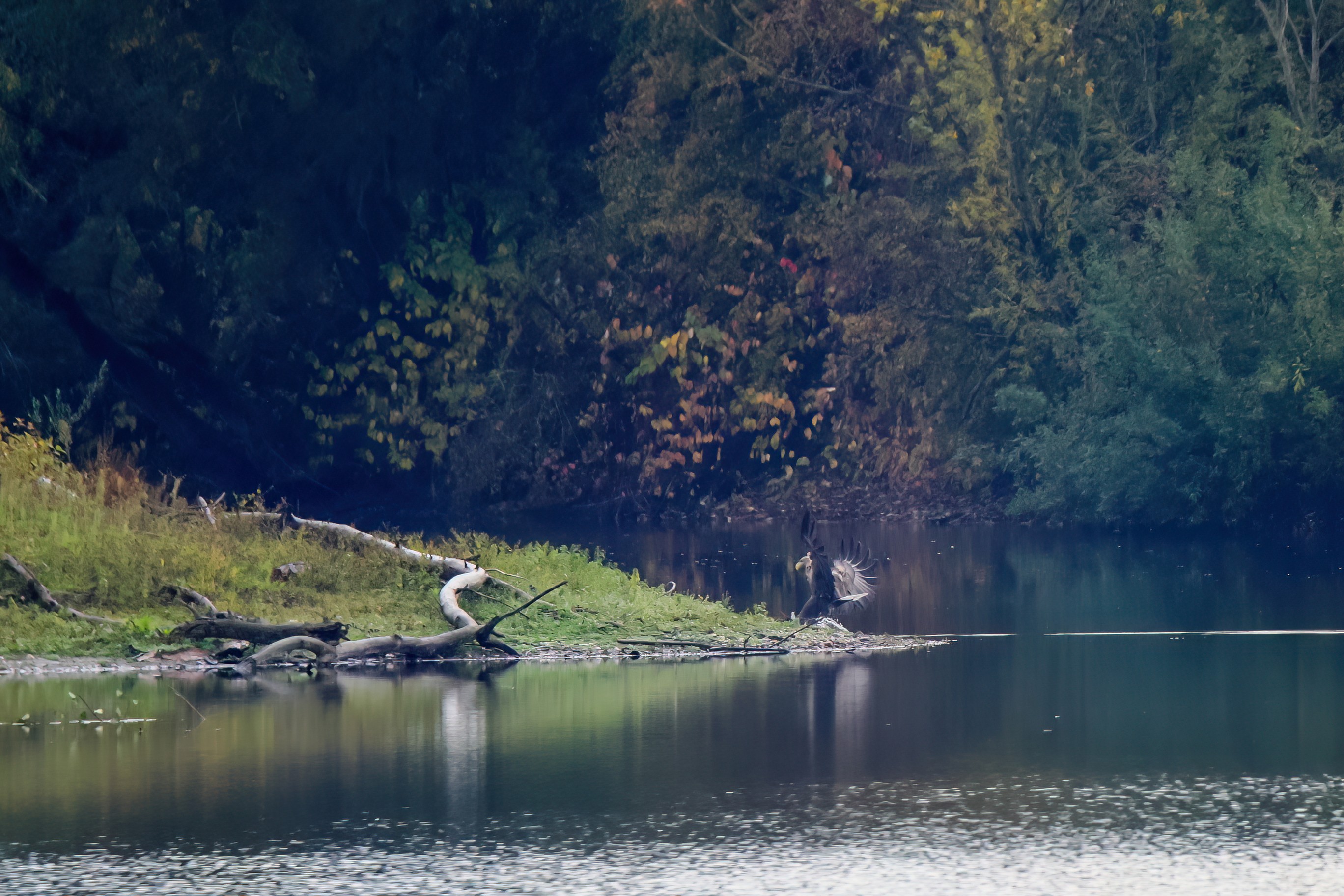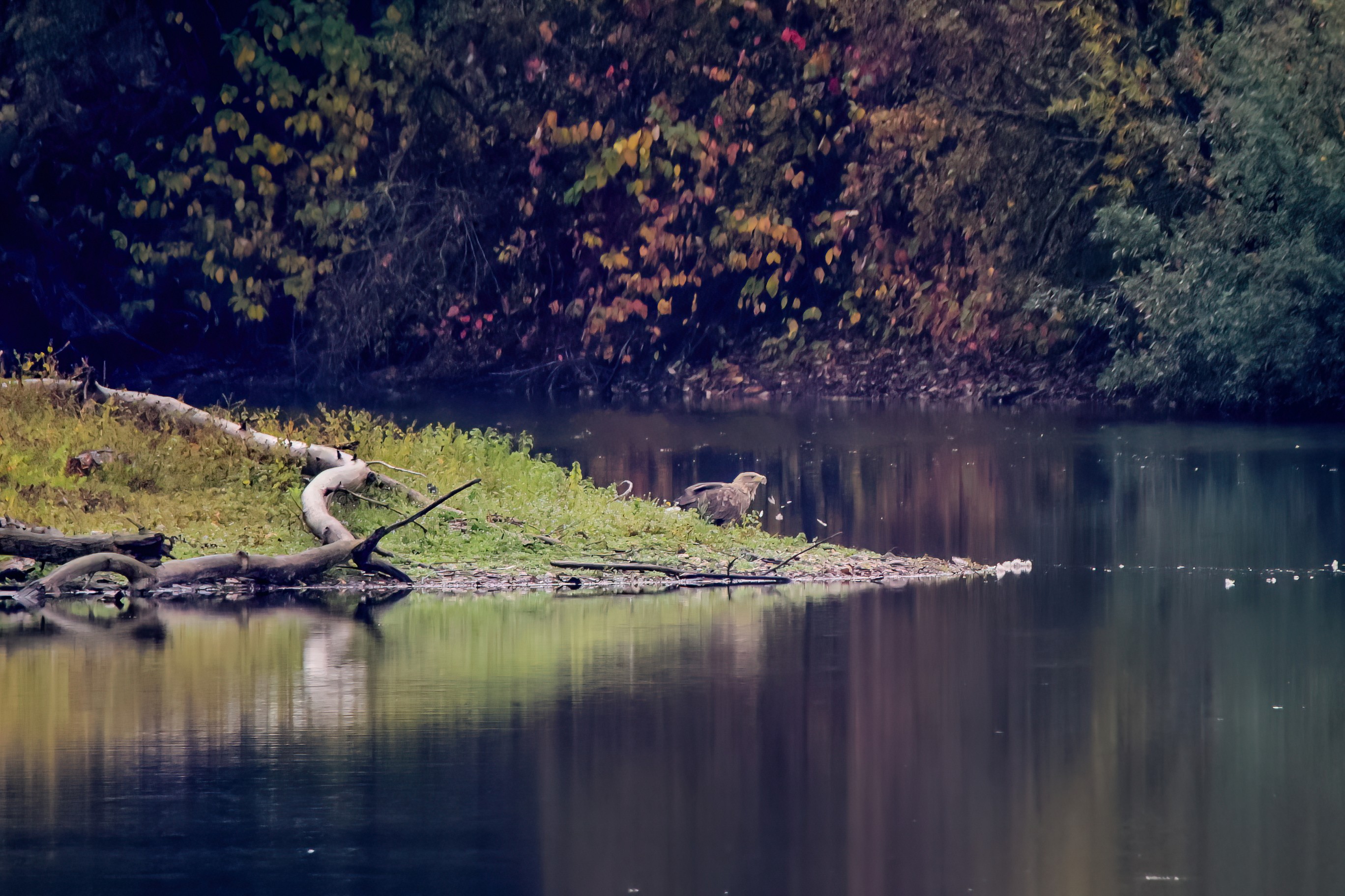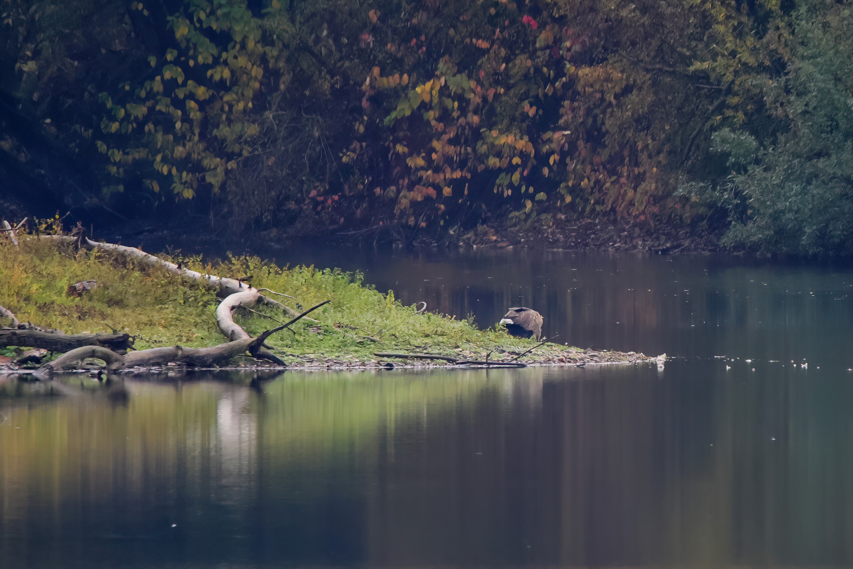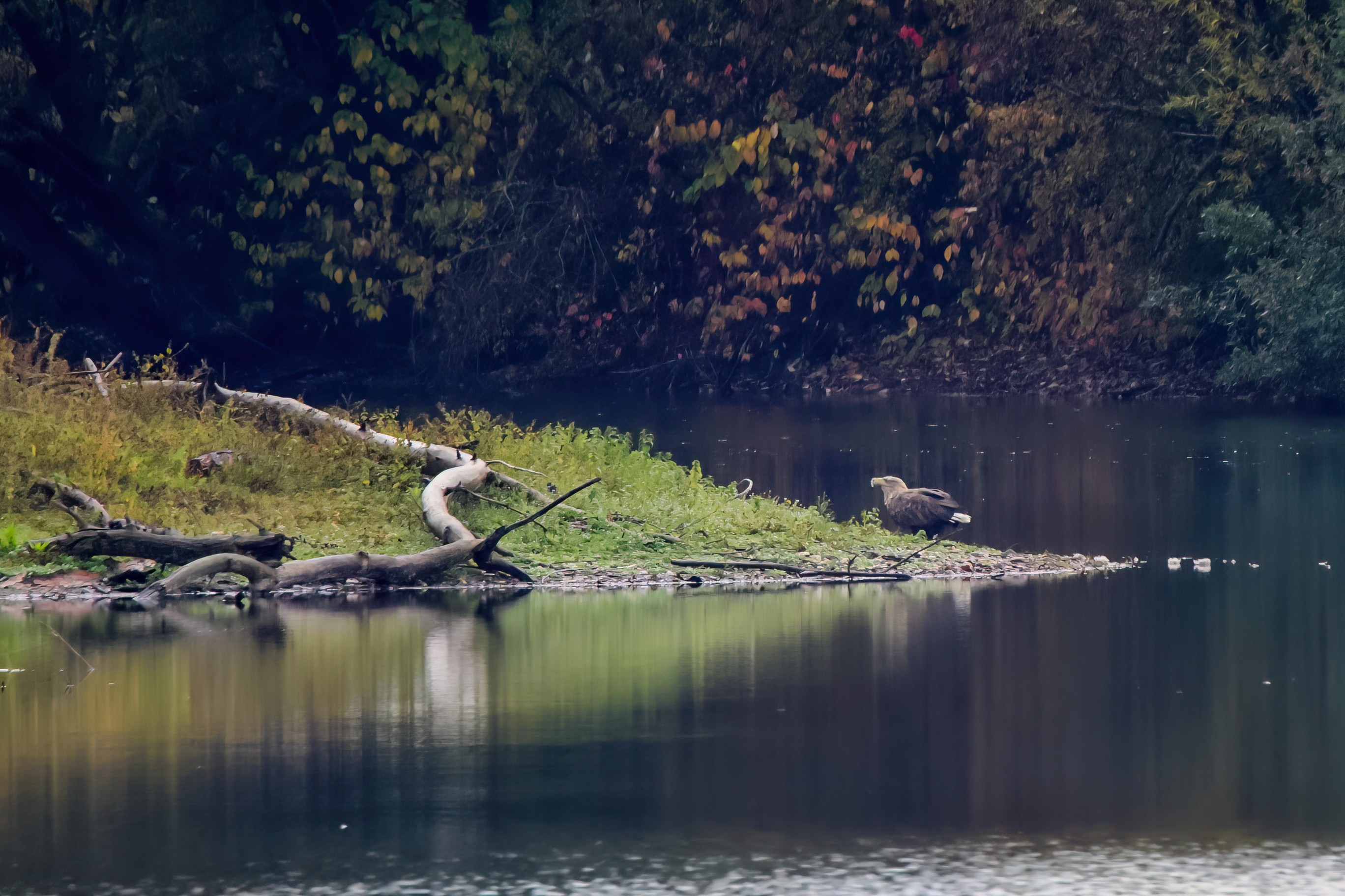 Erfolgreicher Beutefang des neuen Seeadlerweibchens am Ende des Gewässers der Beobchtungshütte III. Im zweiten Anflug wurde eine Stockente geschlagen. Eine weitere Bildstrecke zeigt den Habitatsgründer "Rheingold" mit dem neuen Seeadlerweibchen beim gemeinsamen Badevergnügen.