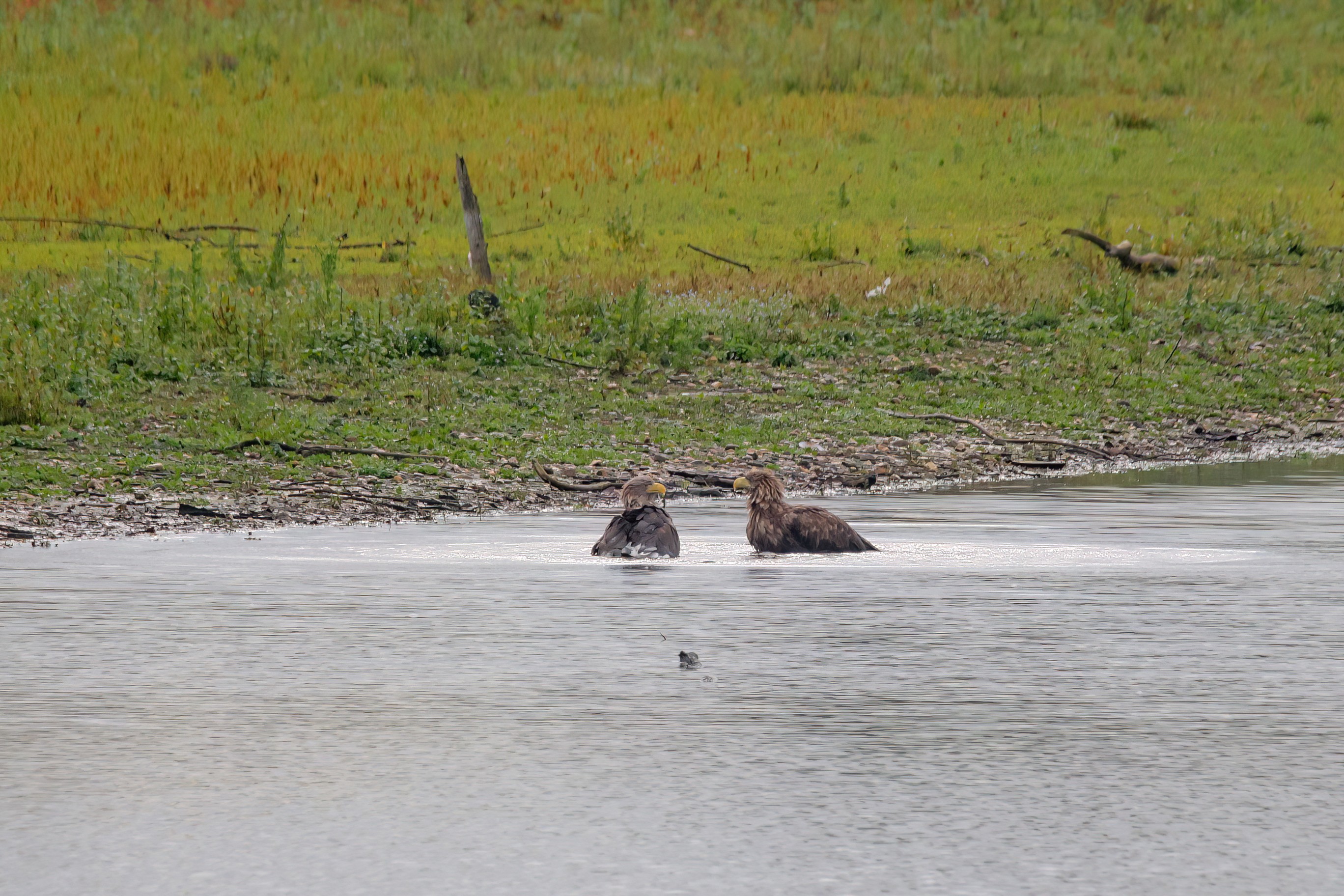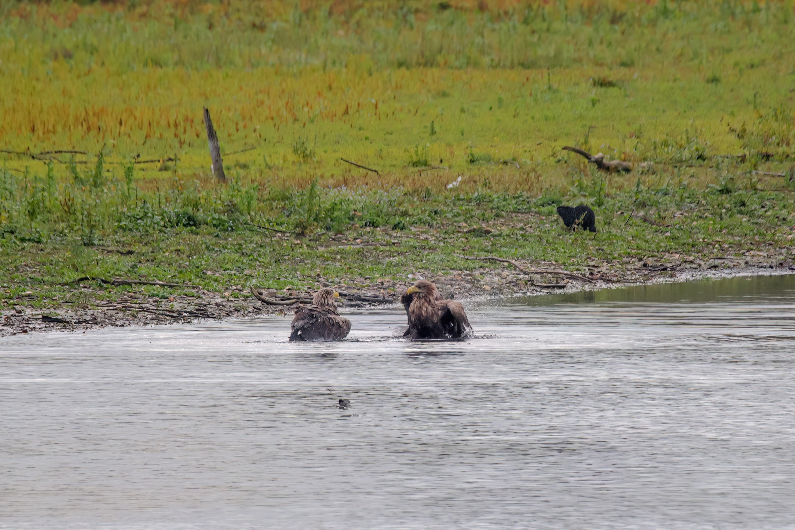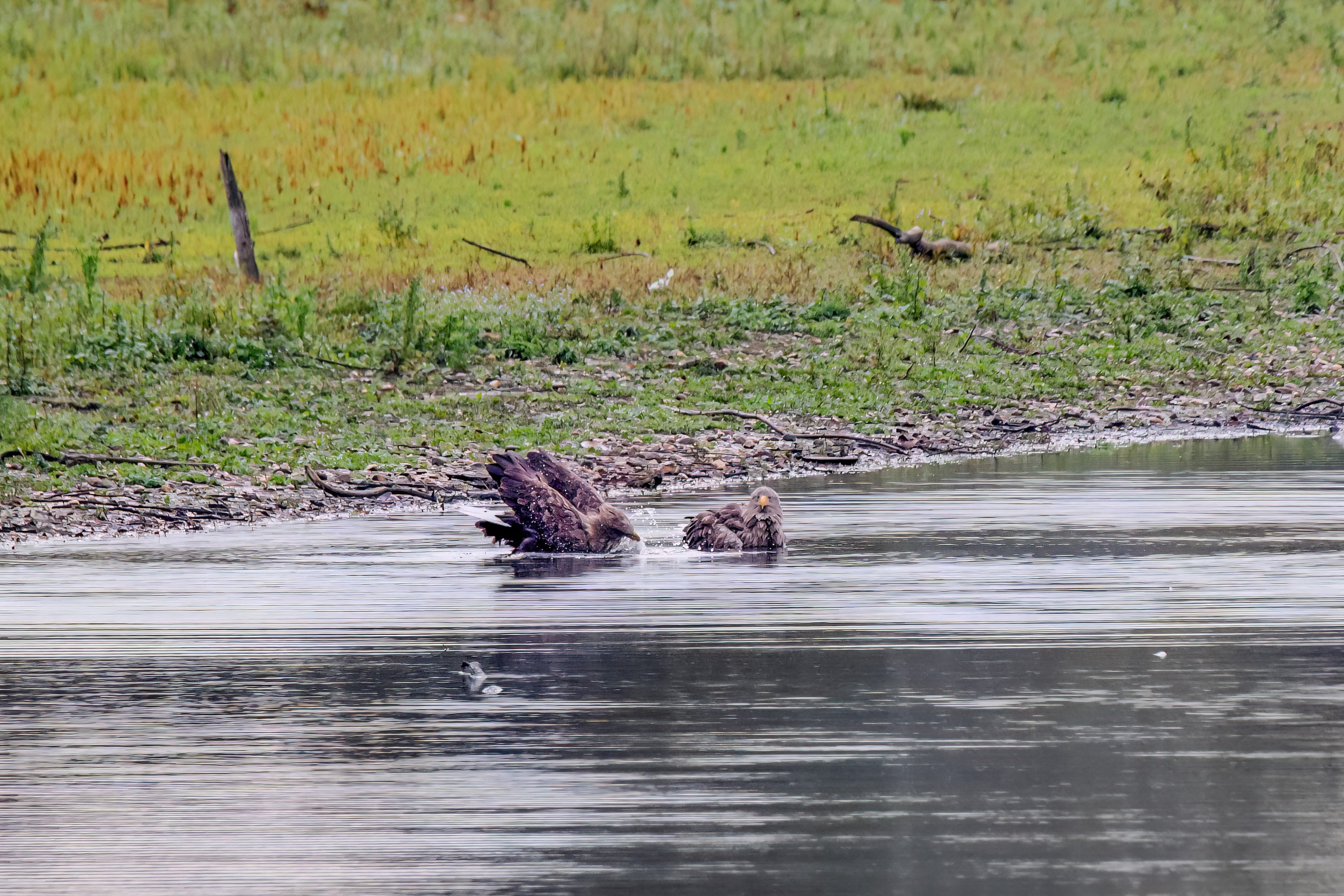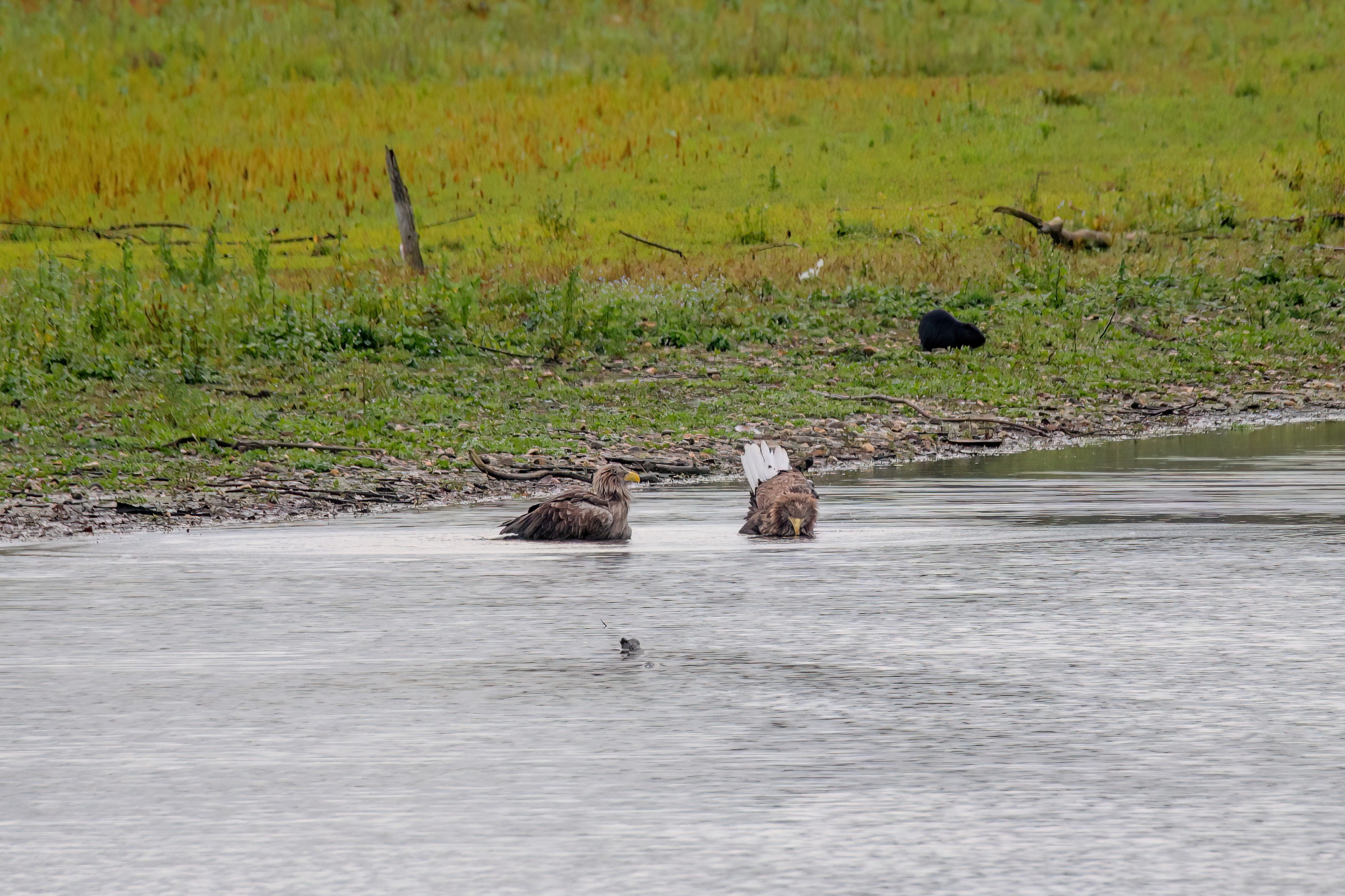 Gemeinsames Badevergnügen des Seeadlerpaares